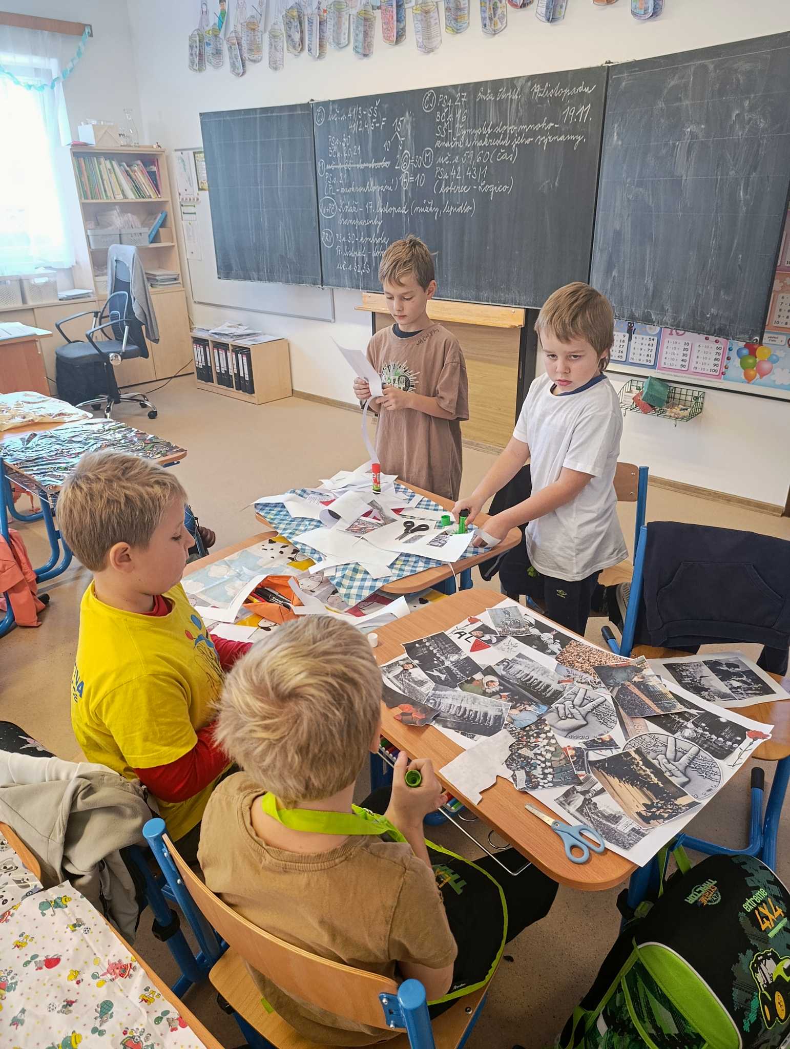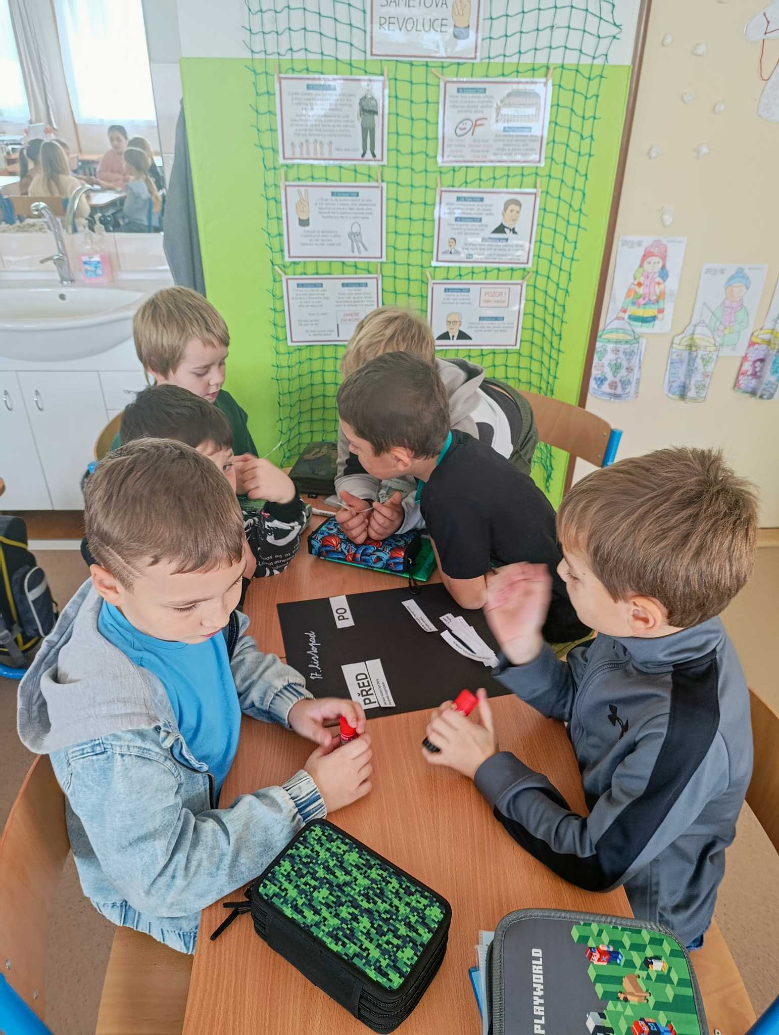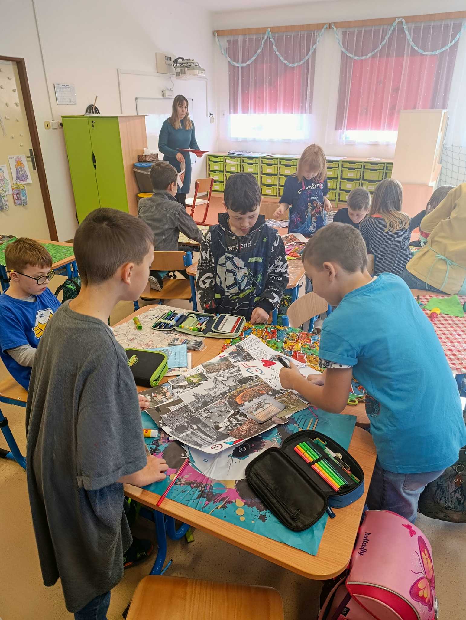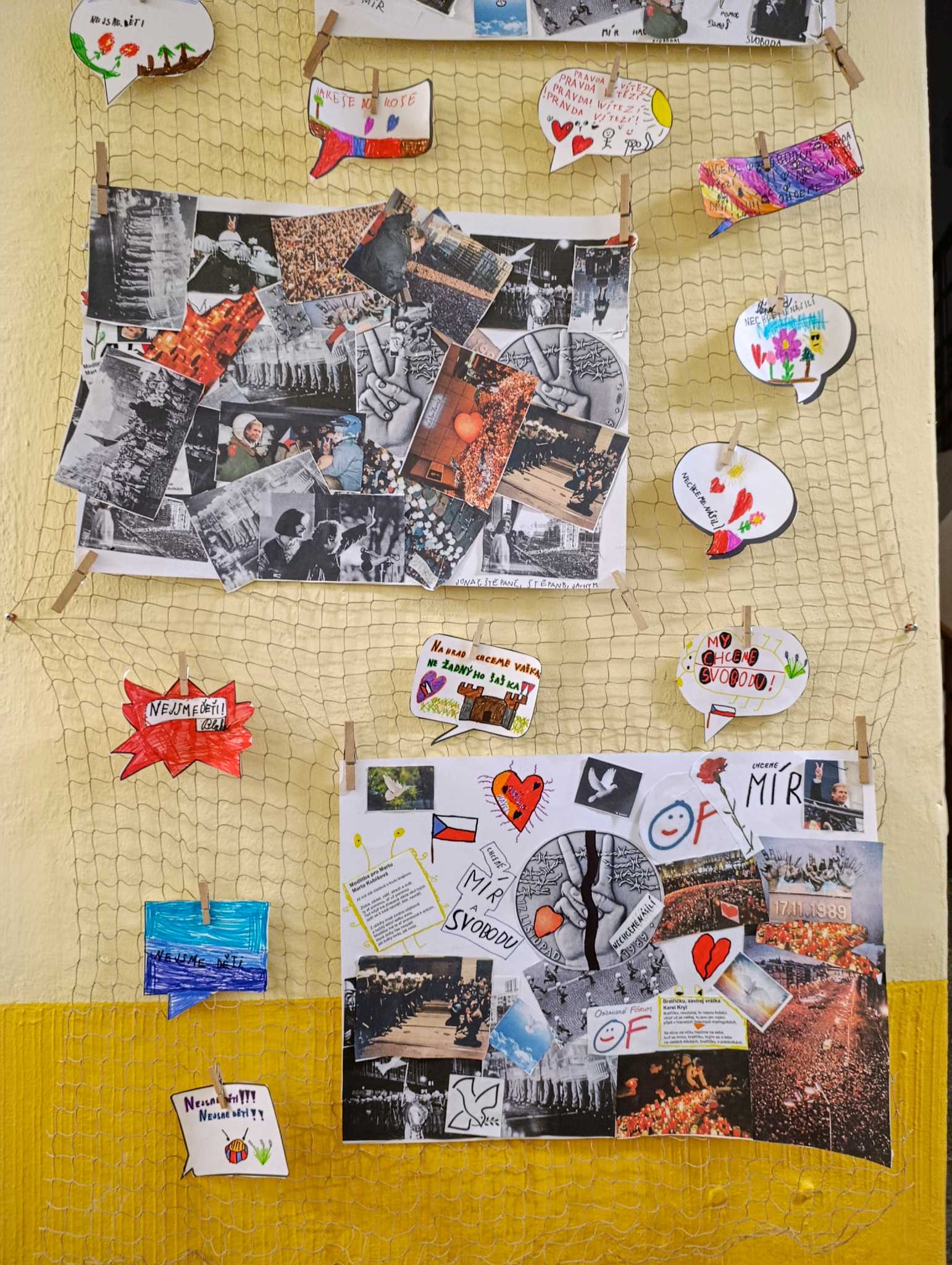Děti ve skupinkách přemýšlely, jaké to bylo před revolucí a po ní. Společně jsme si o všem popovídali. Děti vytvořily koláž a transparenty. Díky příběhům z tehdejší doby jsme se dokázali přenést do minulosti, prožívali jsme starosti a problémy jednotlivých postav. Pustili jsme si i Modlitbu pro Martu.