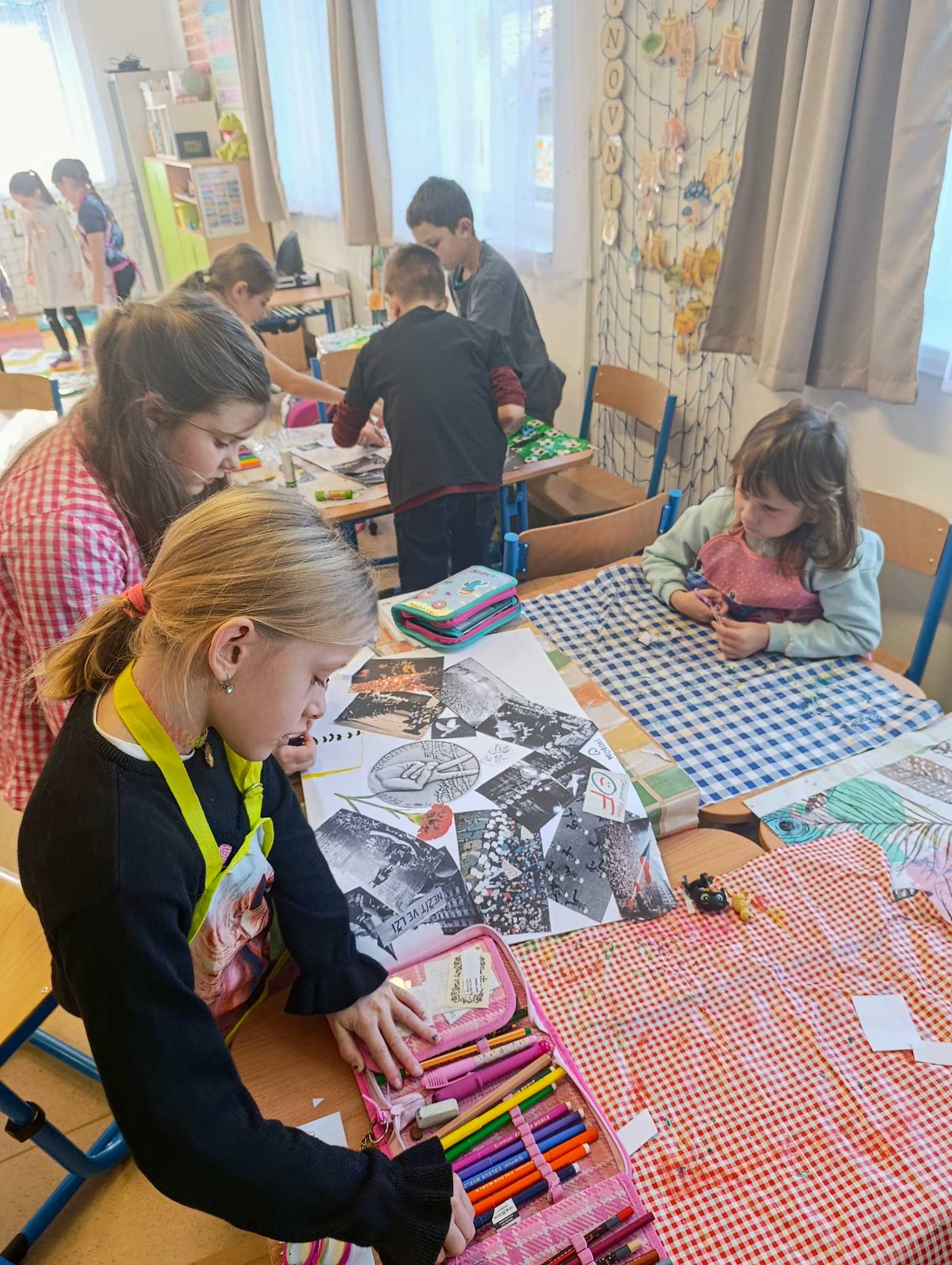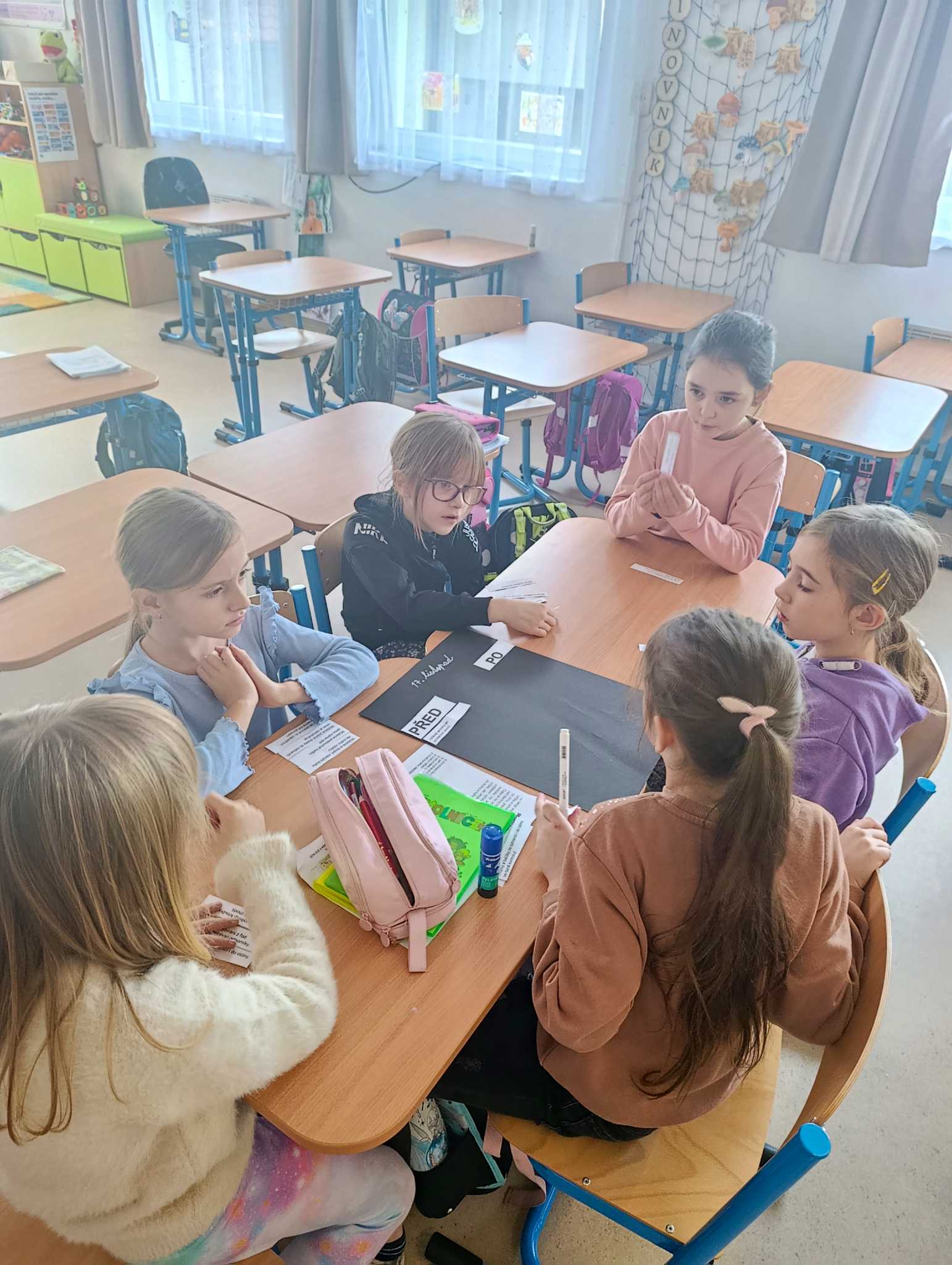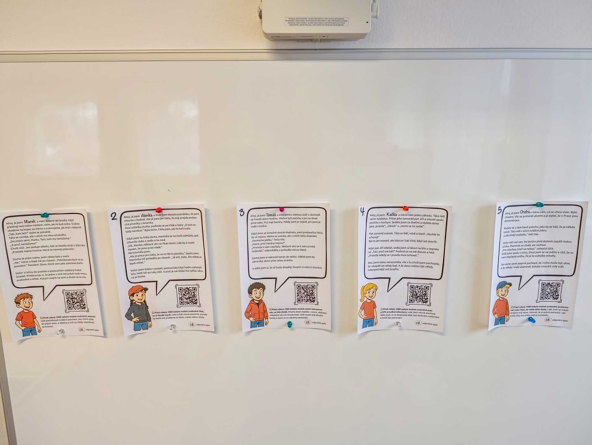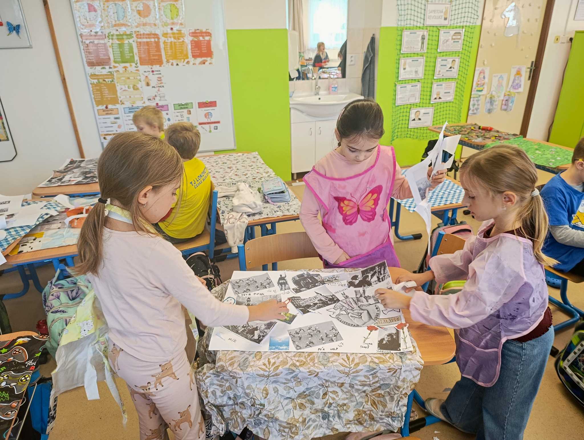 Děti ve skupinkách přemýšlely, jaké to bylo před revolucí a po ní. Společně jsme si o všem popovídali. Děti vytvořily koláž a transparenty. Díky příběhům z tehdejší doby jsme se dokázali přenést do minulosti, prožívali jsme starosti a problémy jednotlivých postav. Pustili jsme si i Modlitbu pro Martu.