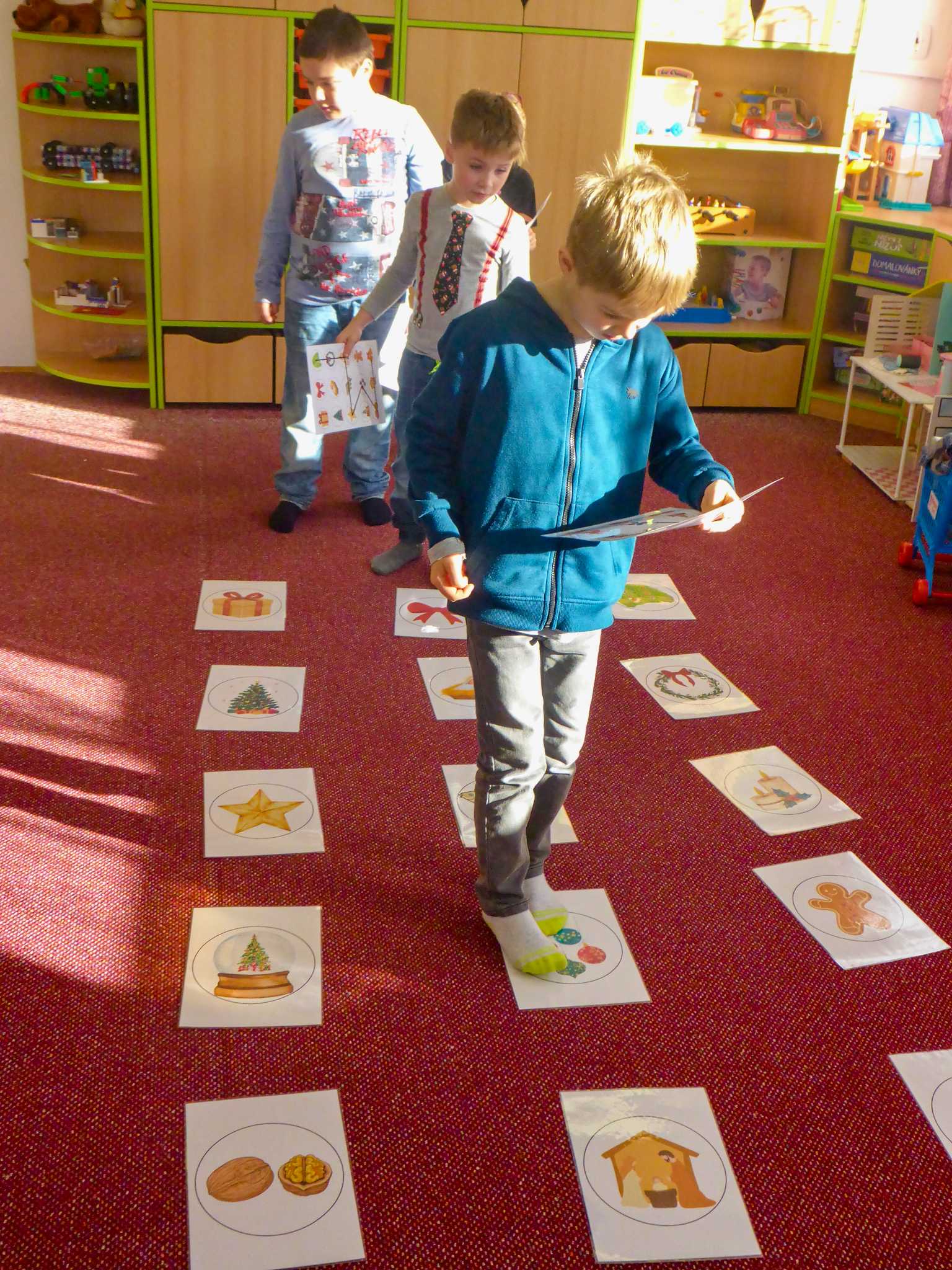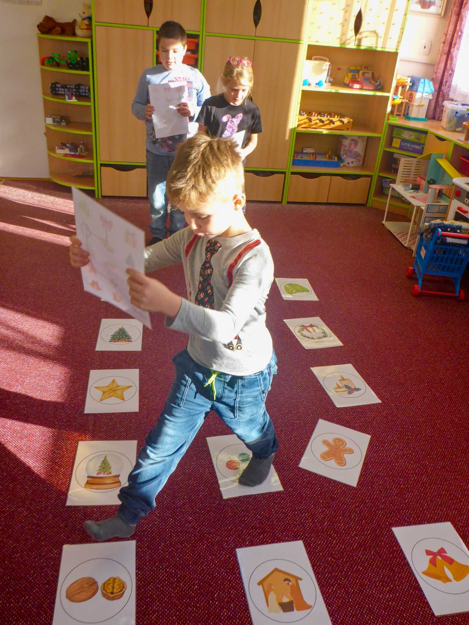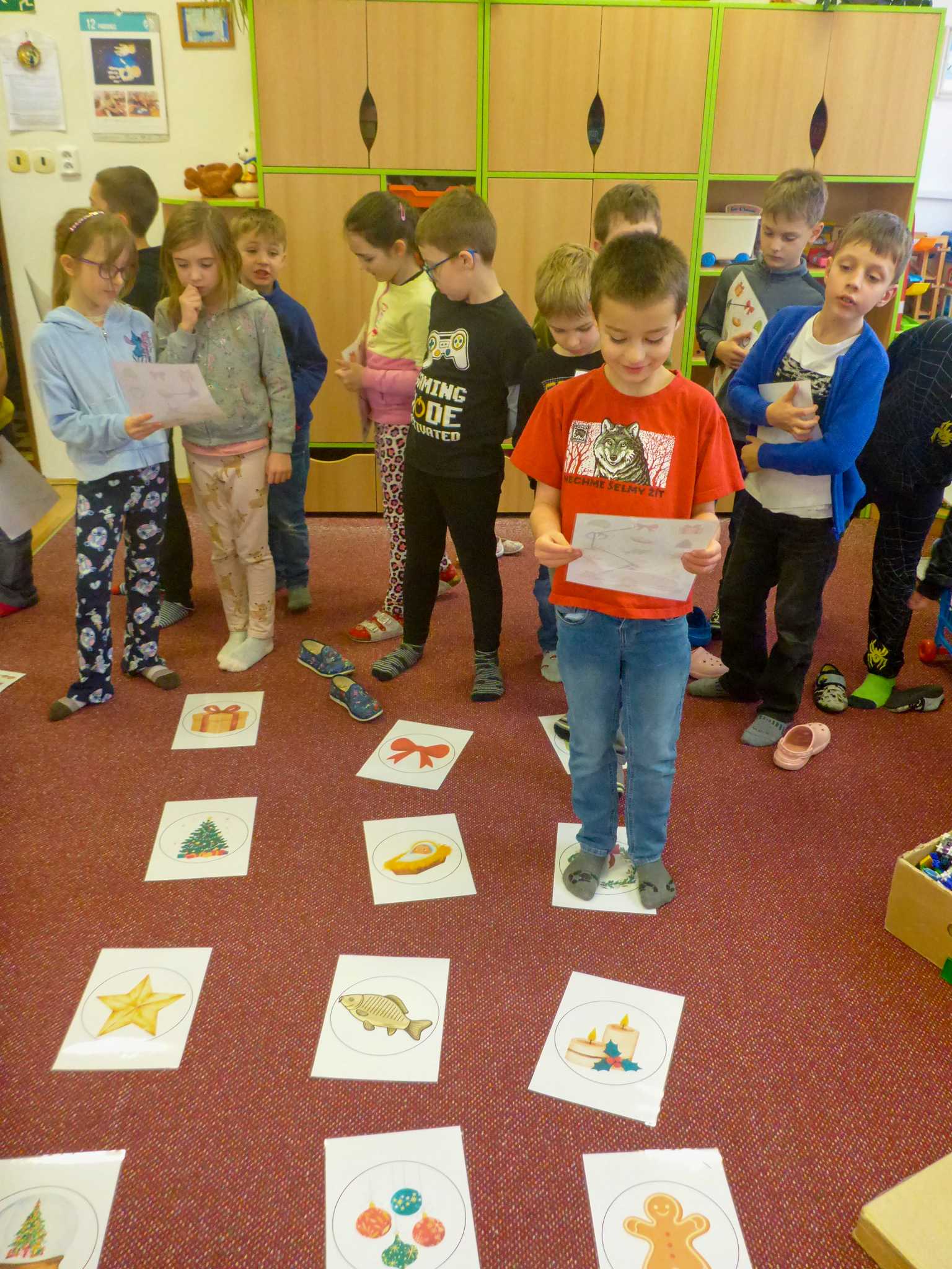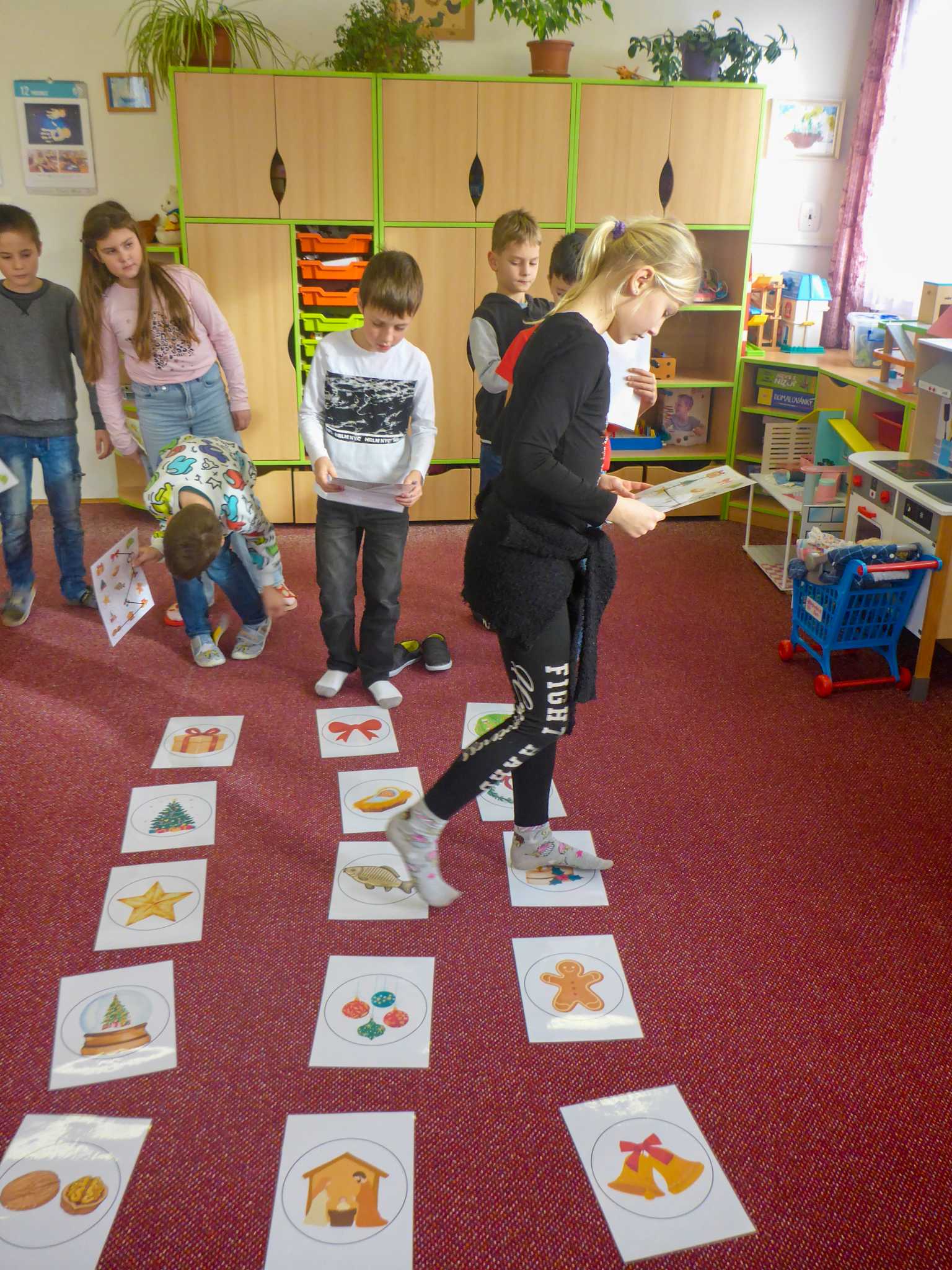 Advent jsme začali pravidelným otevíráním adventních domečků s překvapením. Celý měsíc nás provázely pohádkové postavičky Spejbl s Hurvínkem. Sledovali jsme videa z "Hurvínkova roku". Průběžně se vyráběly vánoční dekorace, přáníčka, zdobily perníčky, vyšívala se vánoční přáníčka a nezapomnělo se ani na vánoční zvyky.