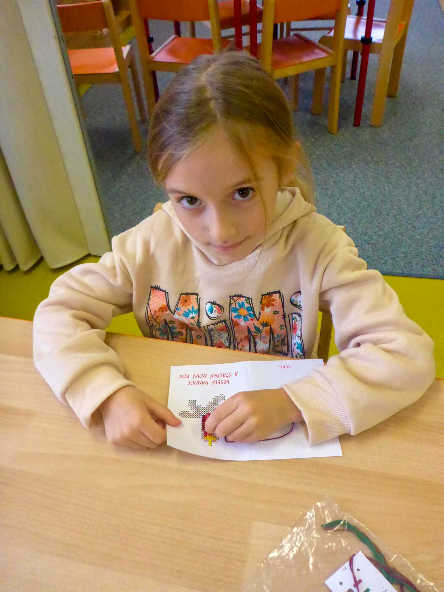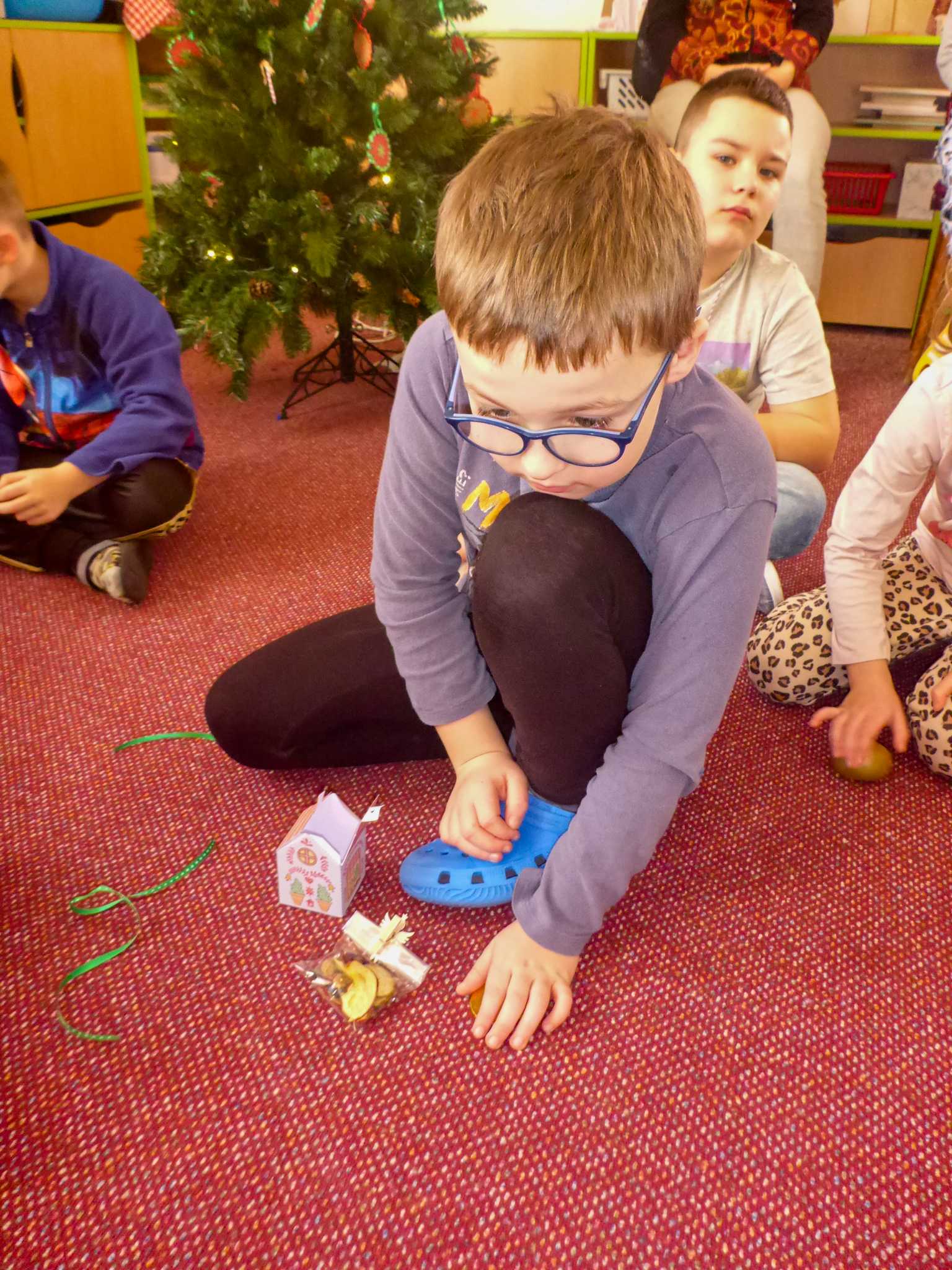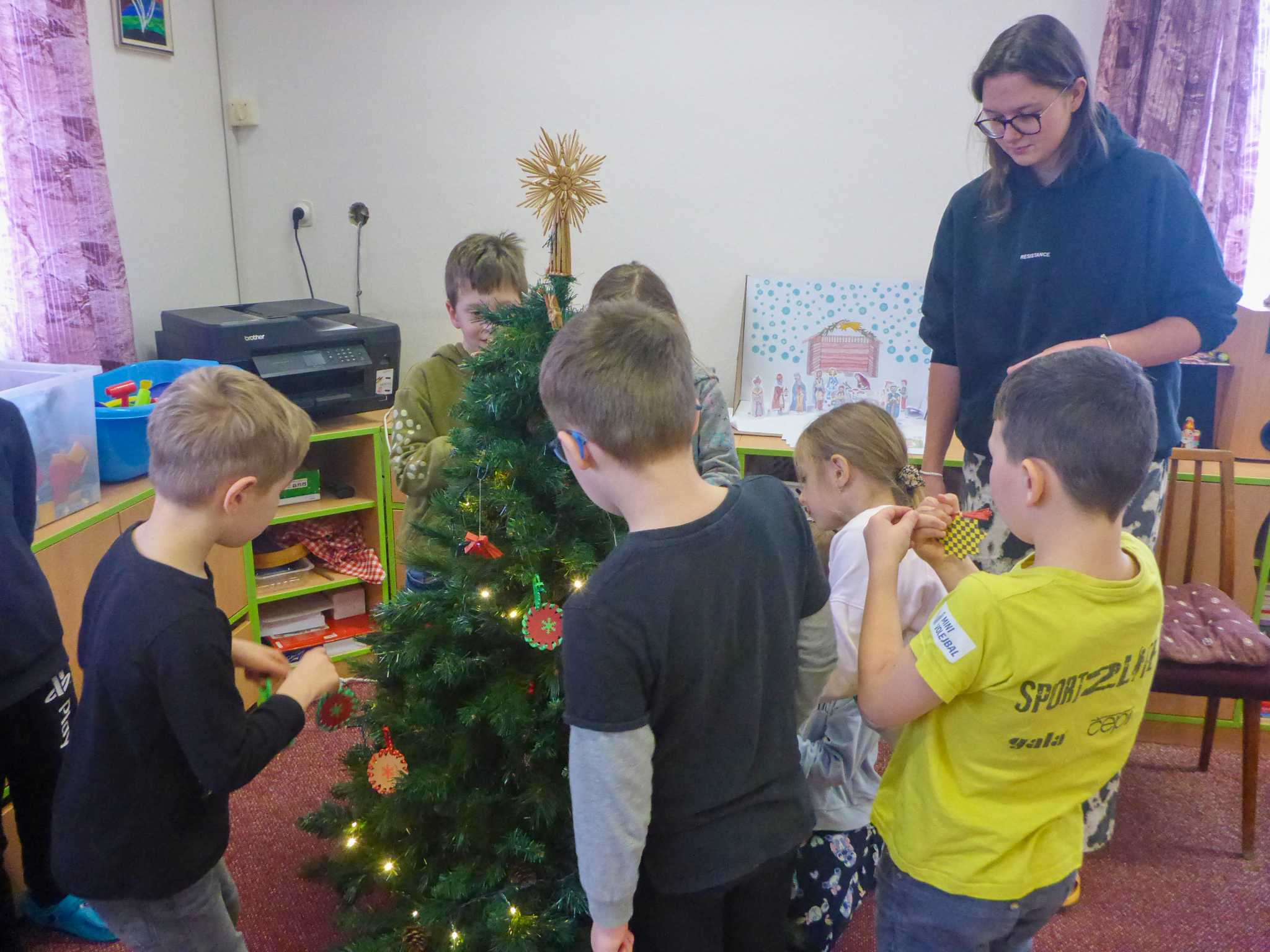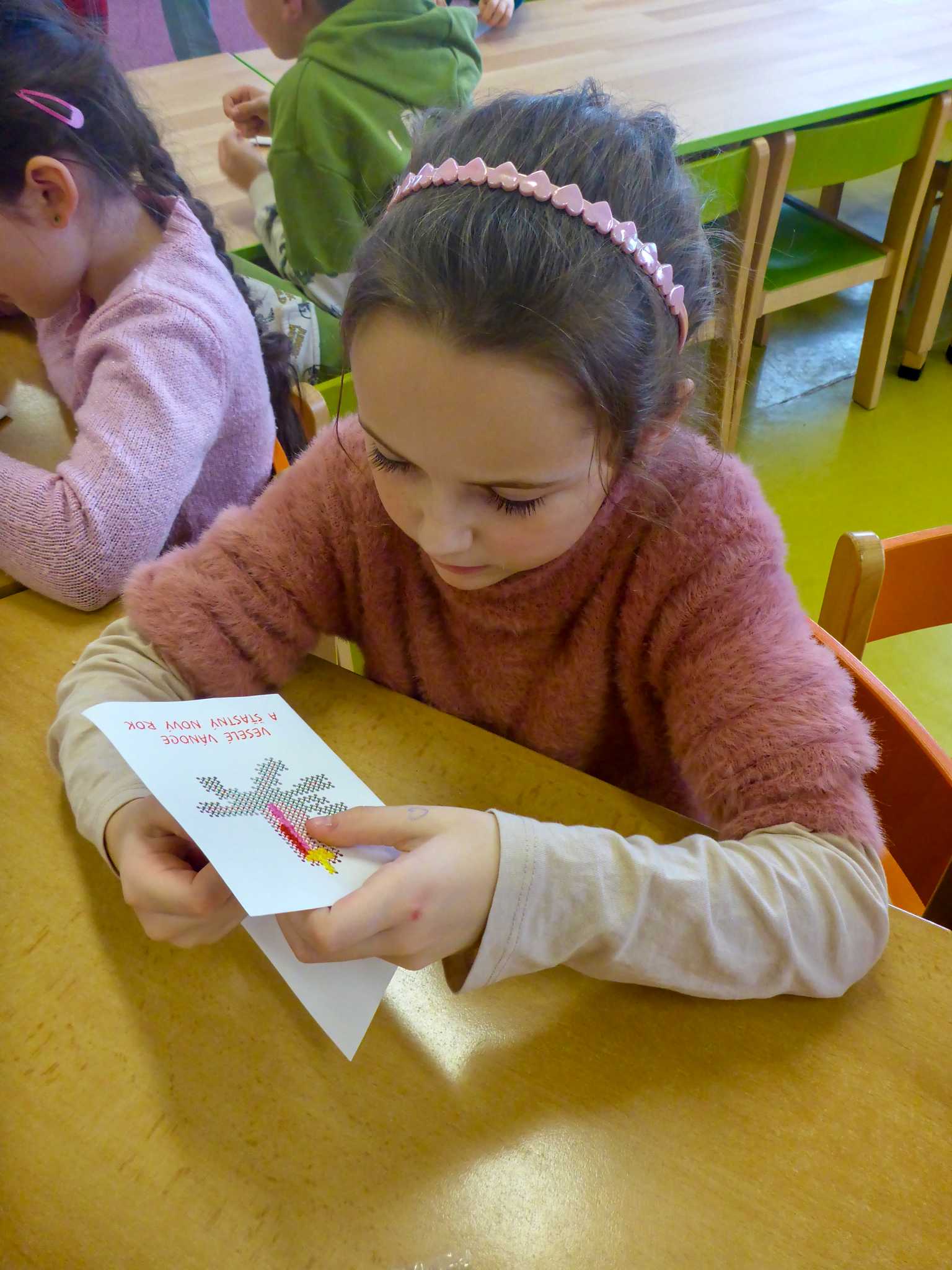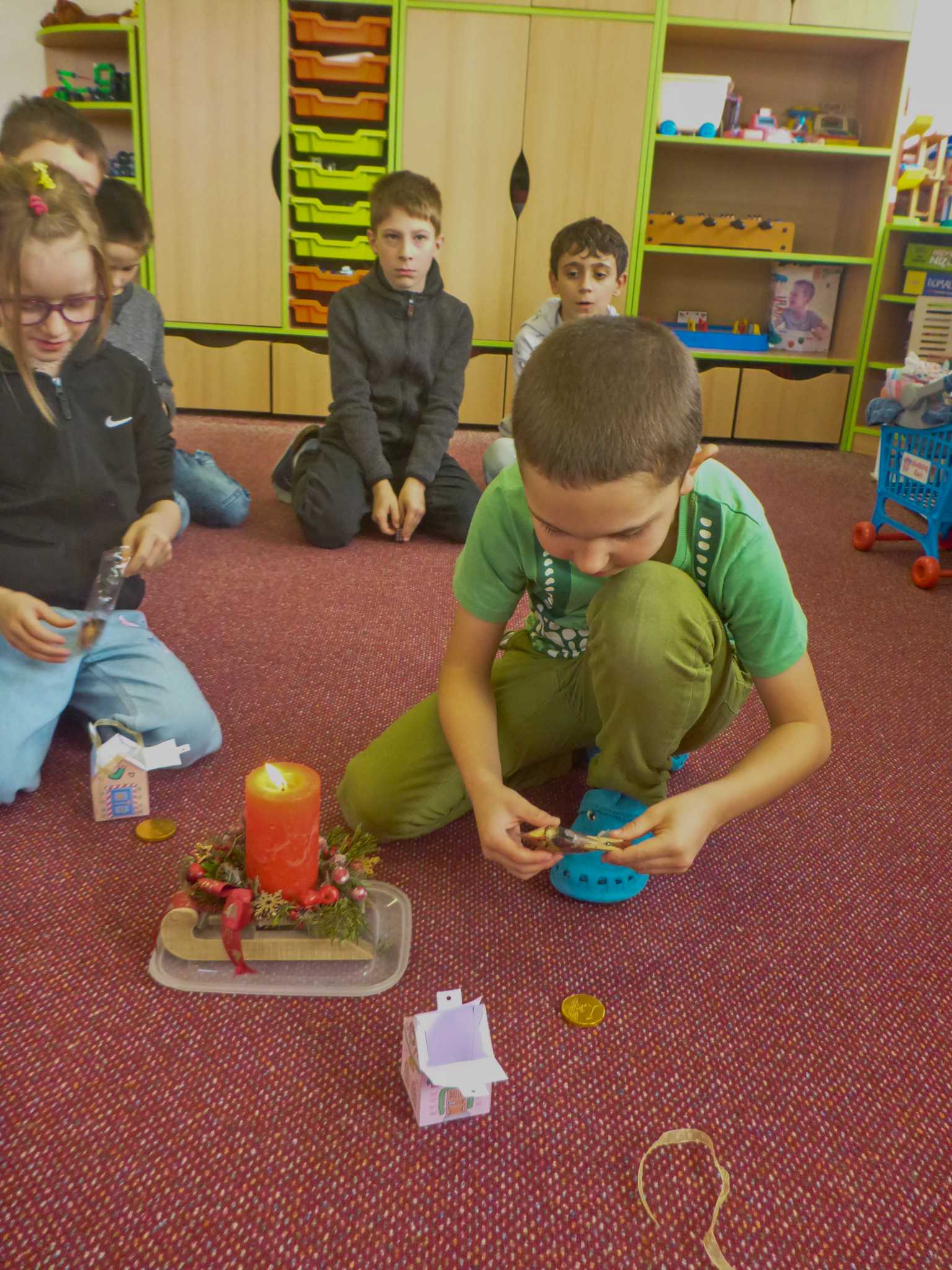 Advent jsme začali pravidelným otevíráním adventních domečků s překvapením. Celý měsíc nás provázely pohádkové postavičky Spejbl s Hurvínkem. Sledovali jsme videa z "Hurvínkova roku". Průběžně se vyráběly vánoční dekorace, přáníčka, zdobily perníčky, vyšívala se vánoční přáníčka a nezapomnělo se ani na vánoční zvyky.