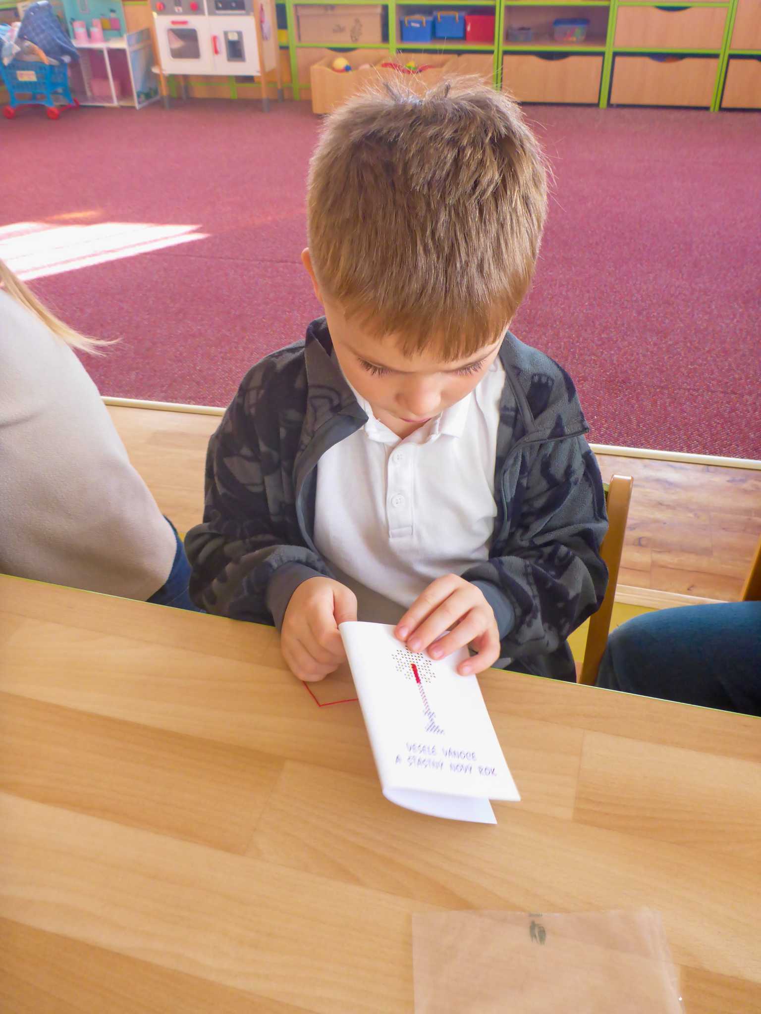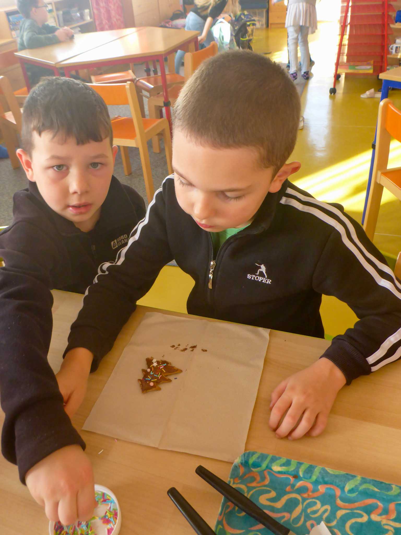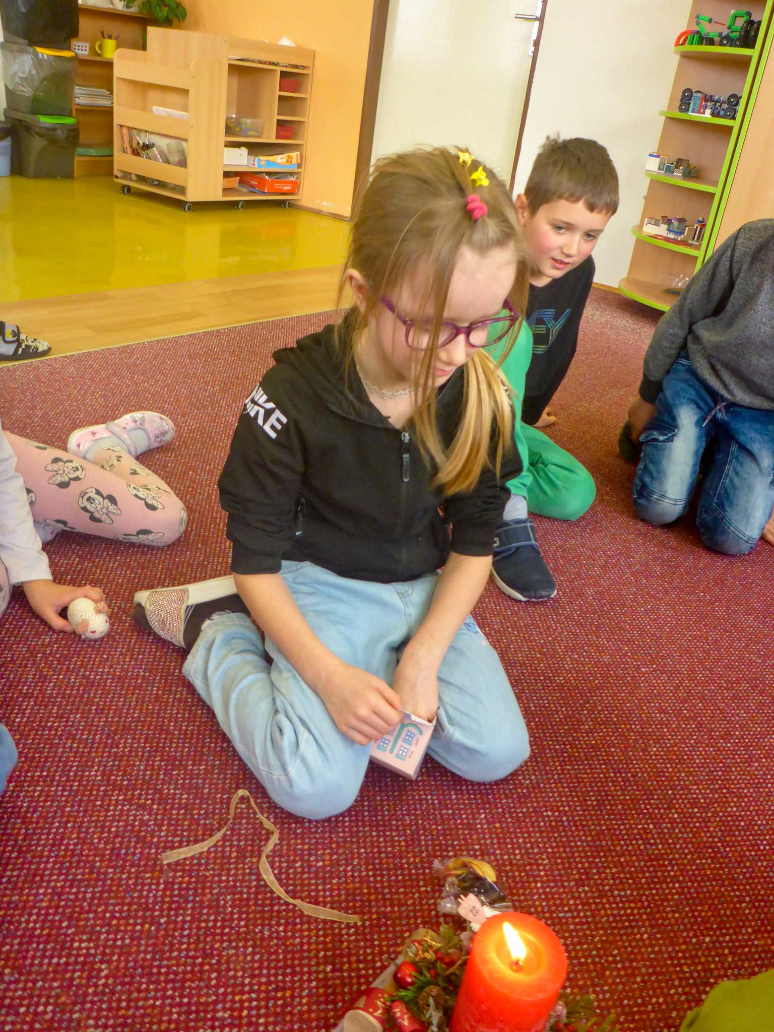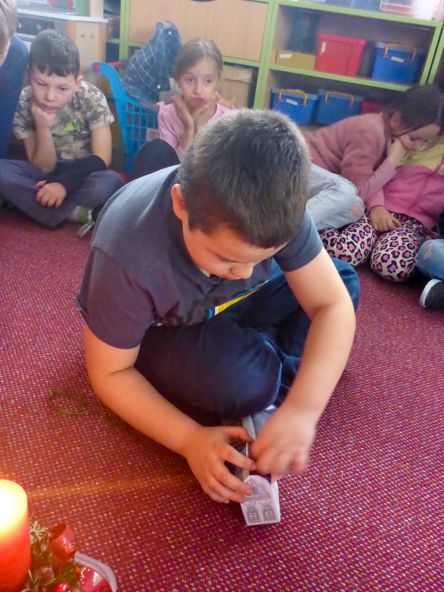 Advent jsme začali pravidelným otevíráním adventních domečků s překvapením. Celý měsíc nás provázely pohádkové postavičky Spejbl s Hurvínkem. Sledovali jsme videa z "Hurvínkova roku". Průběžně se vyráběly vánoční dekorace, přáníčka, zdobily perníčky, vyšívala se vánoční přáníčka a nezapomnělo se ani na vánoční zvyky.