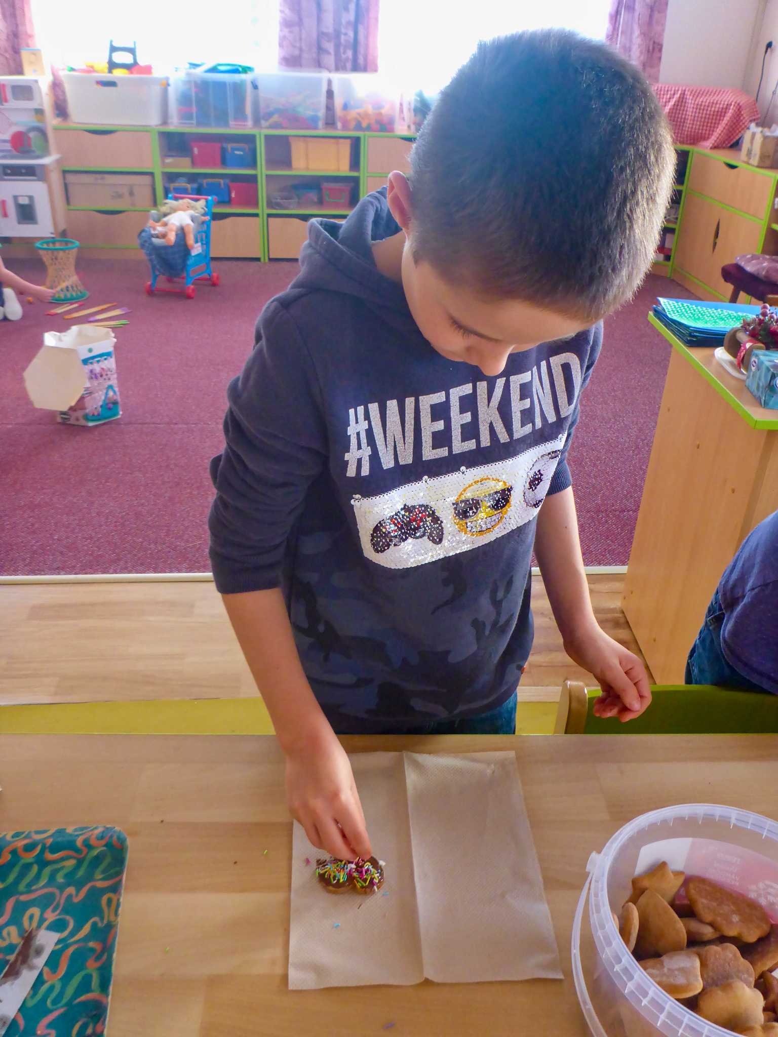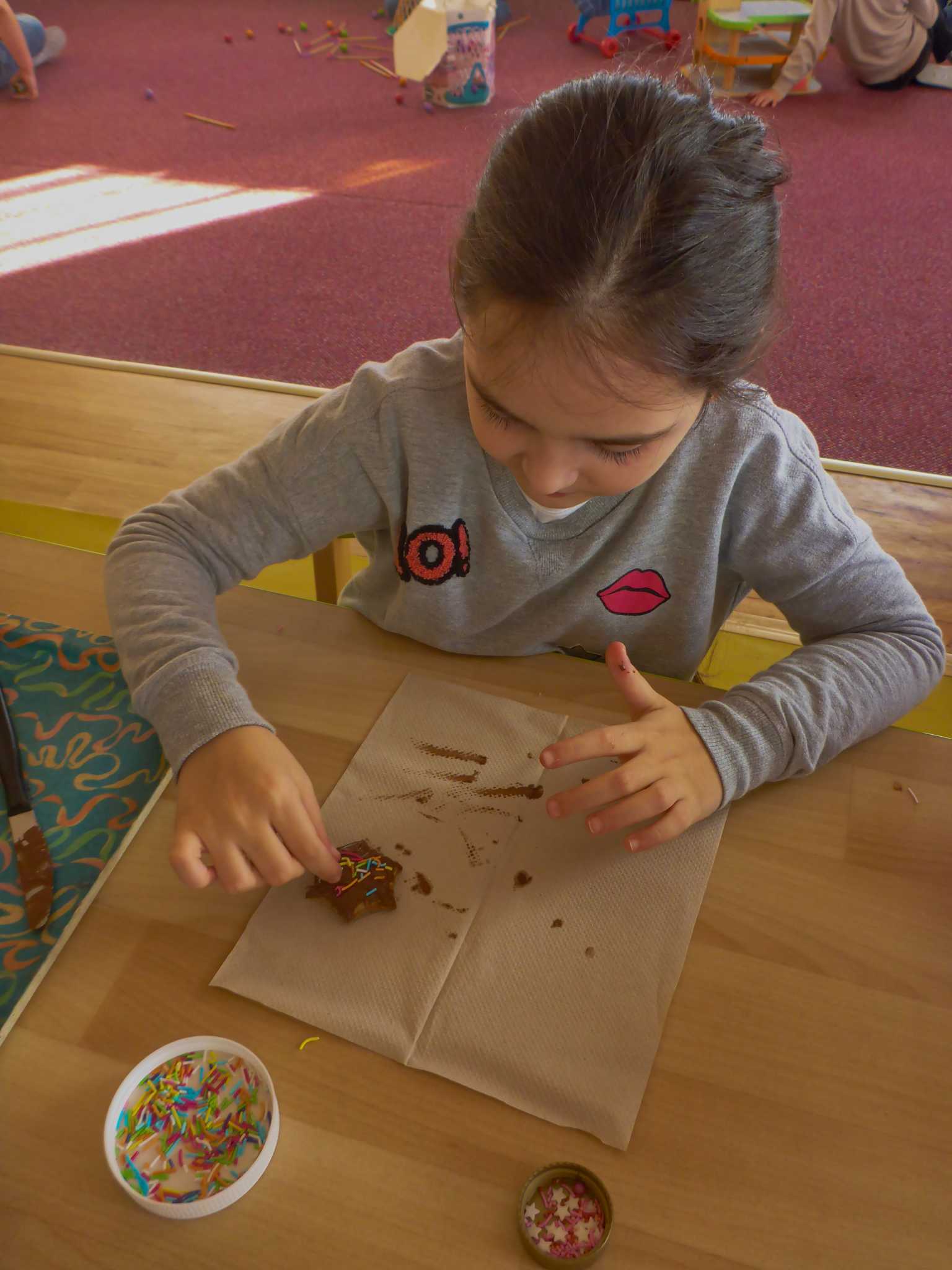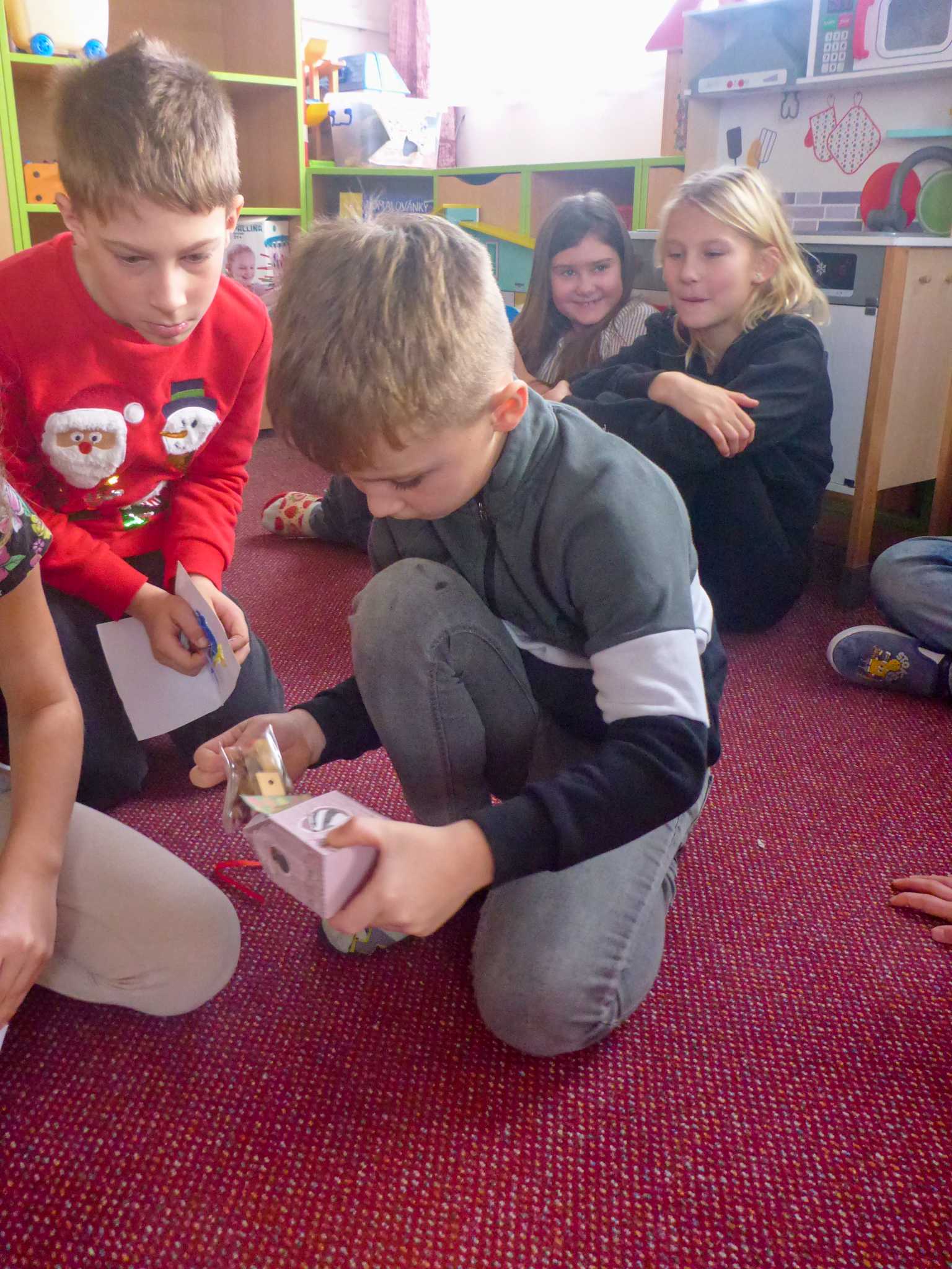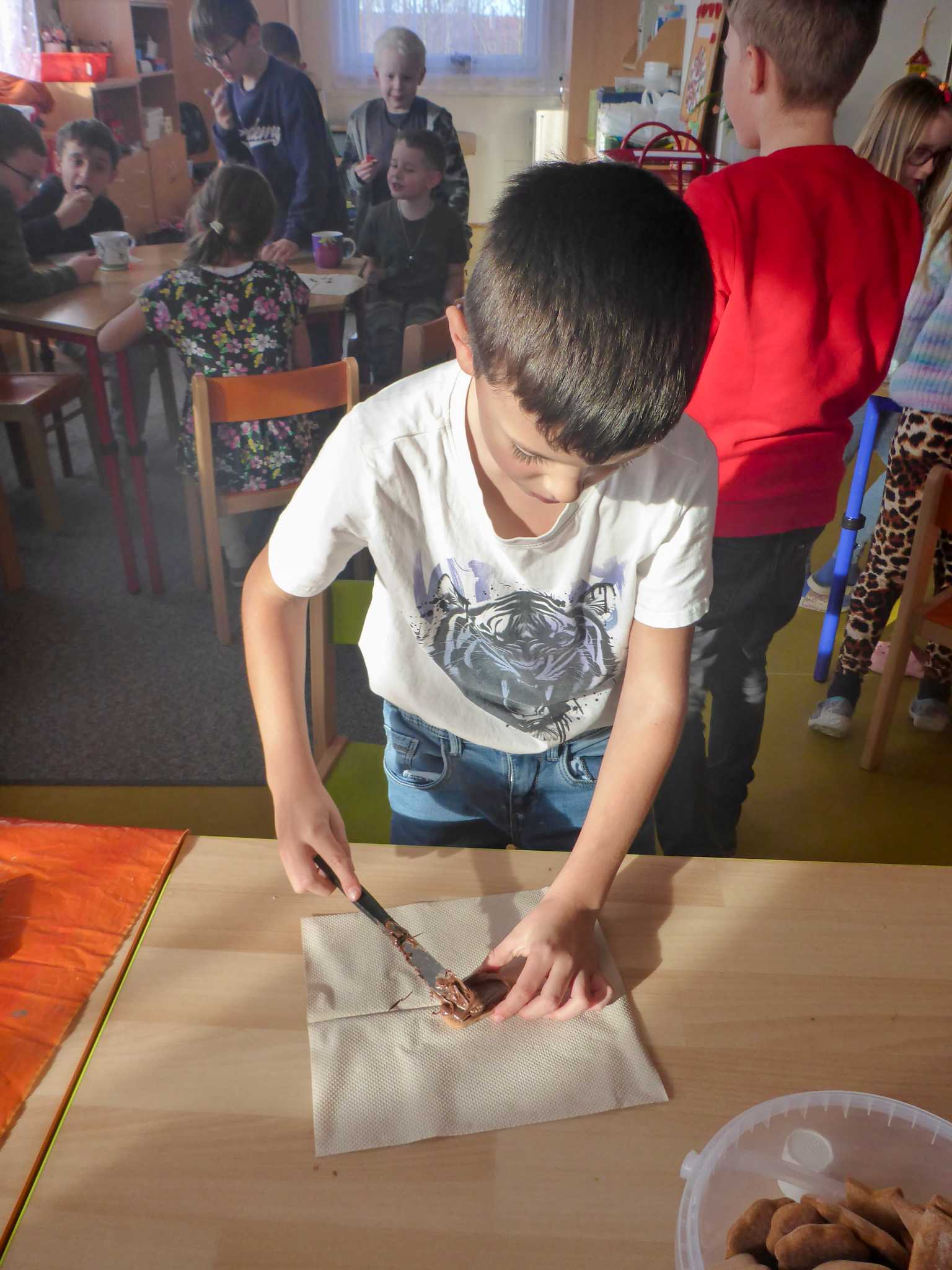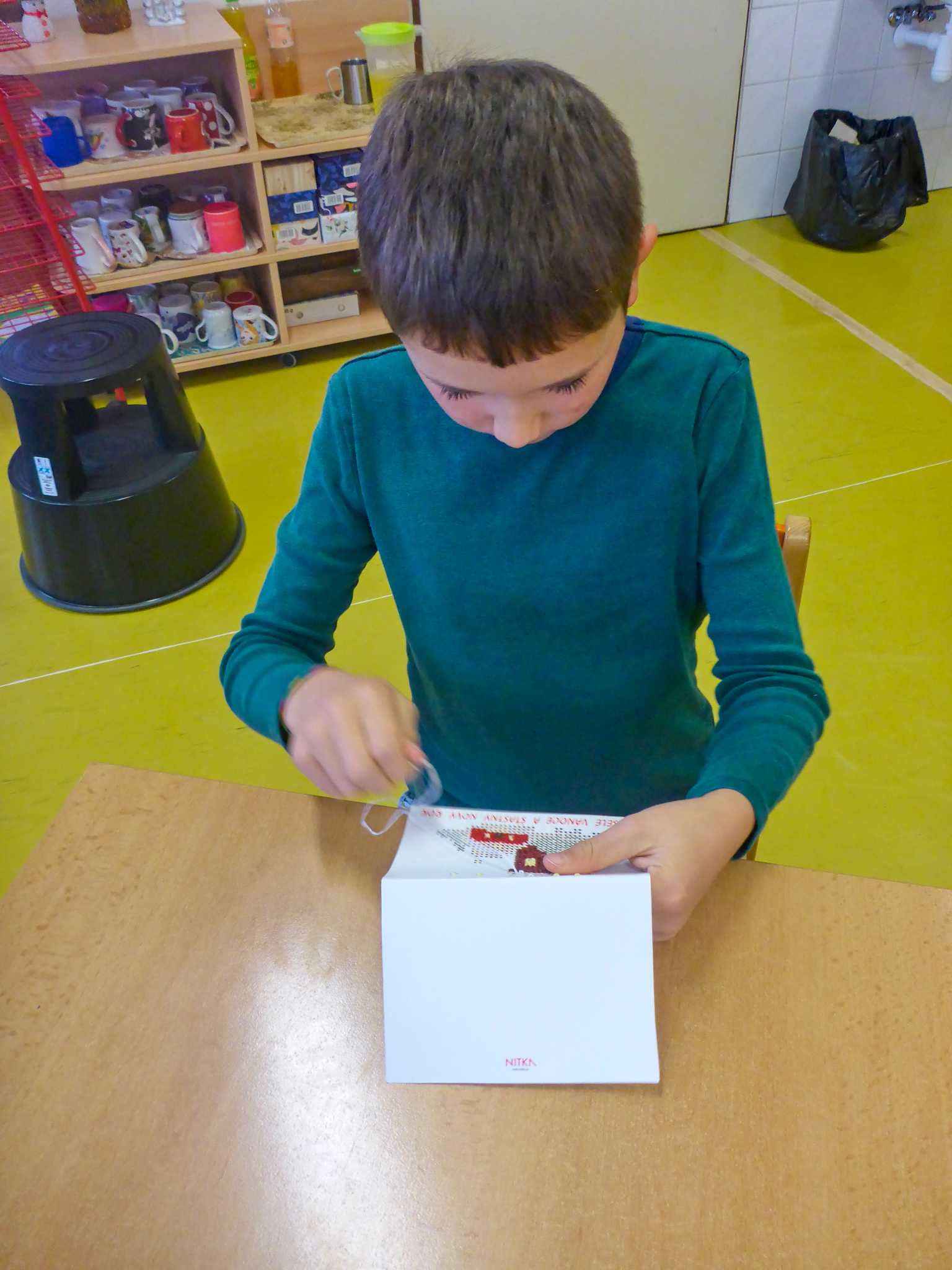 Advent jsme začali pravidelným otevíráním adventních domečků s překvapením. Celý měsíc nás provázely pohádkové postavičky Spejbl s Hurvínkem. Sledovali jsme videa z "Hurvínkova roku". Průběžně se vyráběly vánoční dekorace, přáníčka, zdobily perníčky, vyšívala se vánoční přáníčka a nezapomnělo se ani na vánoční zvyky.