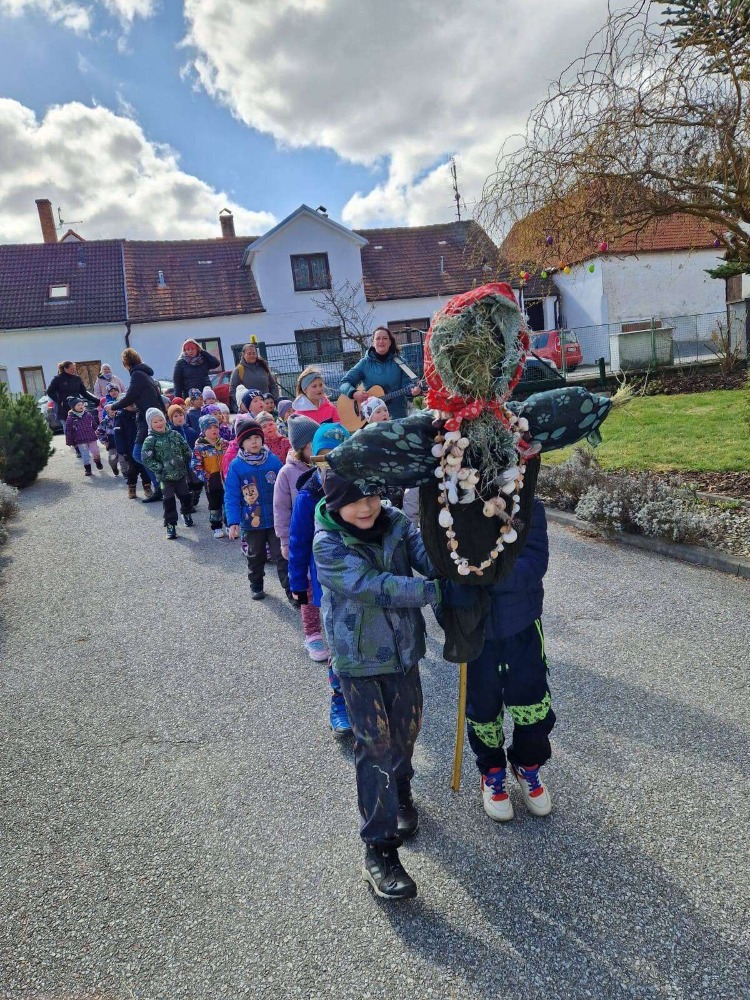 Březen je měsícem nového života, probouzení přírody a radostného vítání jara. I u nás v mateřské škole se nesl v tomto duchu, a proto jsme většinu našich aktivit zaměřili právě na poznávání přírody a jejích proměn. Společně s dětmi jsme pozorovali první jarní květiny rozkvétající v zahradách, všímali si probouzejícího se hmyzu a s nadšením jsme přivítali návrat čápů. Děti měly možnost vnímat změny v přírodě všemi smysly a učily se o nich přirozenou a hravou formou. Velkým zážitkem byla také návštěva velešínské knihovny, kde si pro nás paní knihovnice připravily velmi pěkný a pestrý program. Děti se do všech aktivit zapojily a odnesly si spoustu nových zážitků. Do knihovny se vždy rádi vracíme a už nyní se těšíme na další setkání. Naši předškoláci pokračují v plaveckém výcviku, ve kterém dělají velké pokroky. Je radost sledovat, jak se postupně zdokonalují a získávají větší jistotu ve vodě. Pokračování oblíbené akce z loňského roku – Noc s Andersenem – bylo pro předškolní děti velkou výzvou. Děti se hravou formou seznamovaly s literaturou a knihami, přičemž letošním hlavním tématem byla kniha „Žofka“ od Miloše Macourka. Pro mnohé z nich to byla první noc bez rodičů, a o to větší zaslouží pochvalu – všechny ji zvládly skvěle. Na konci měsíce jsme se společně rozloučili se zimou tradičním způsobem. Děti vyrobily Moranu a za zpěvu písní jsme ji odnesli k rybníku, kde jsme ji symbolicky vhodili do vody. Tím jsme přivítali jaro a těšíme se, co nám přinesou nadcházející dny plné slunce, barev a nových zážitků. Březen byl u nás plný objevování, radosti a společných zážitků – a my už se těšíme na další jarní dobrodružství.