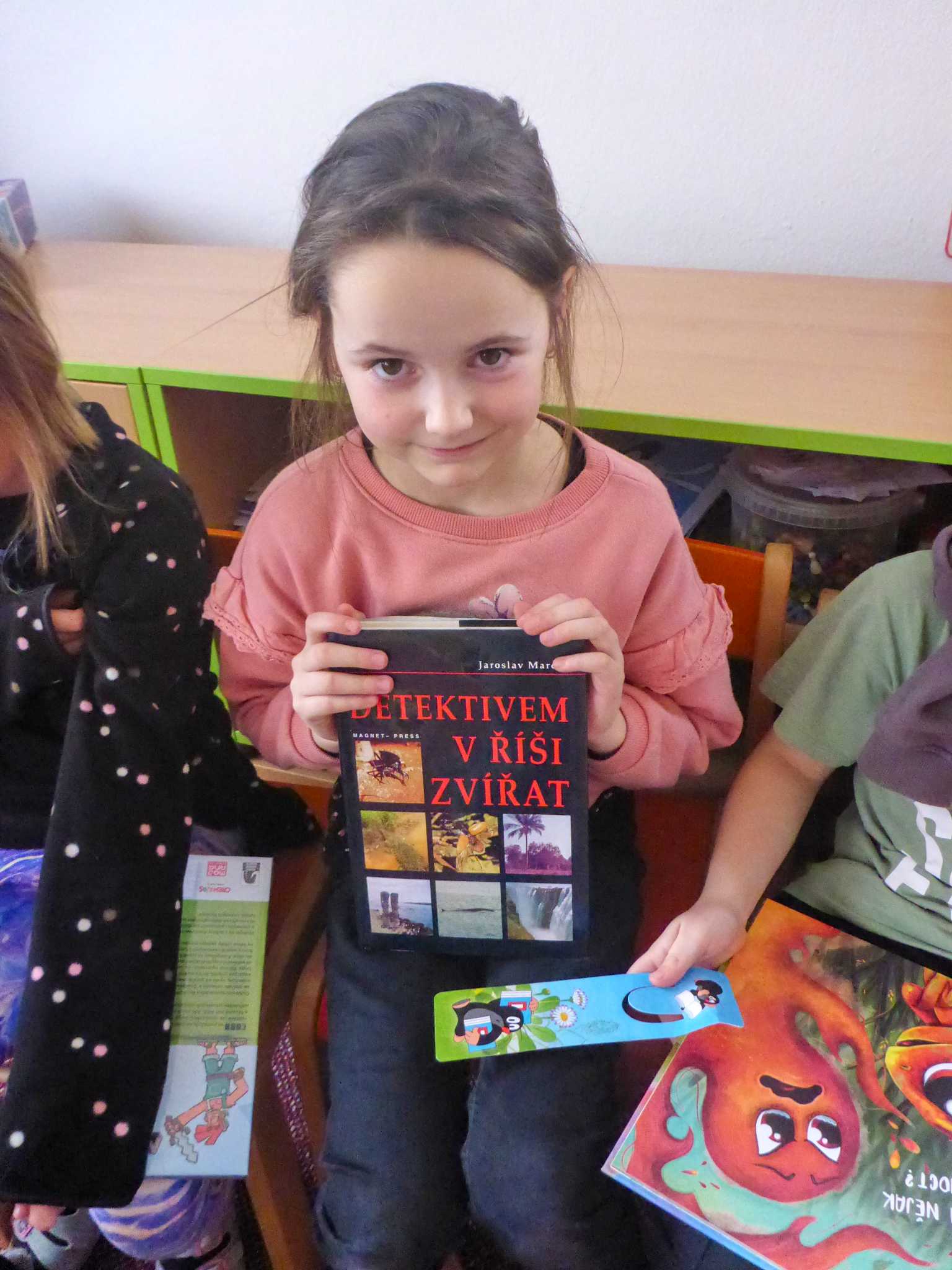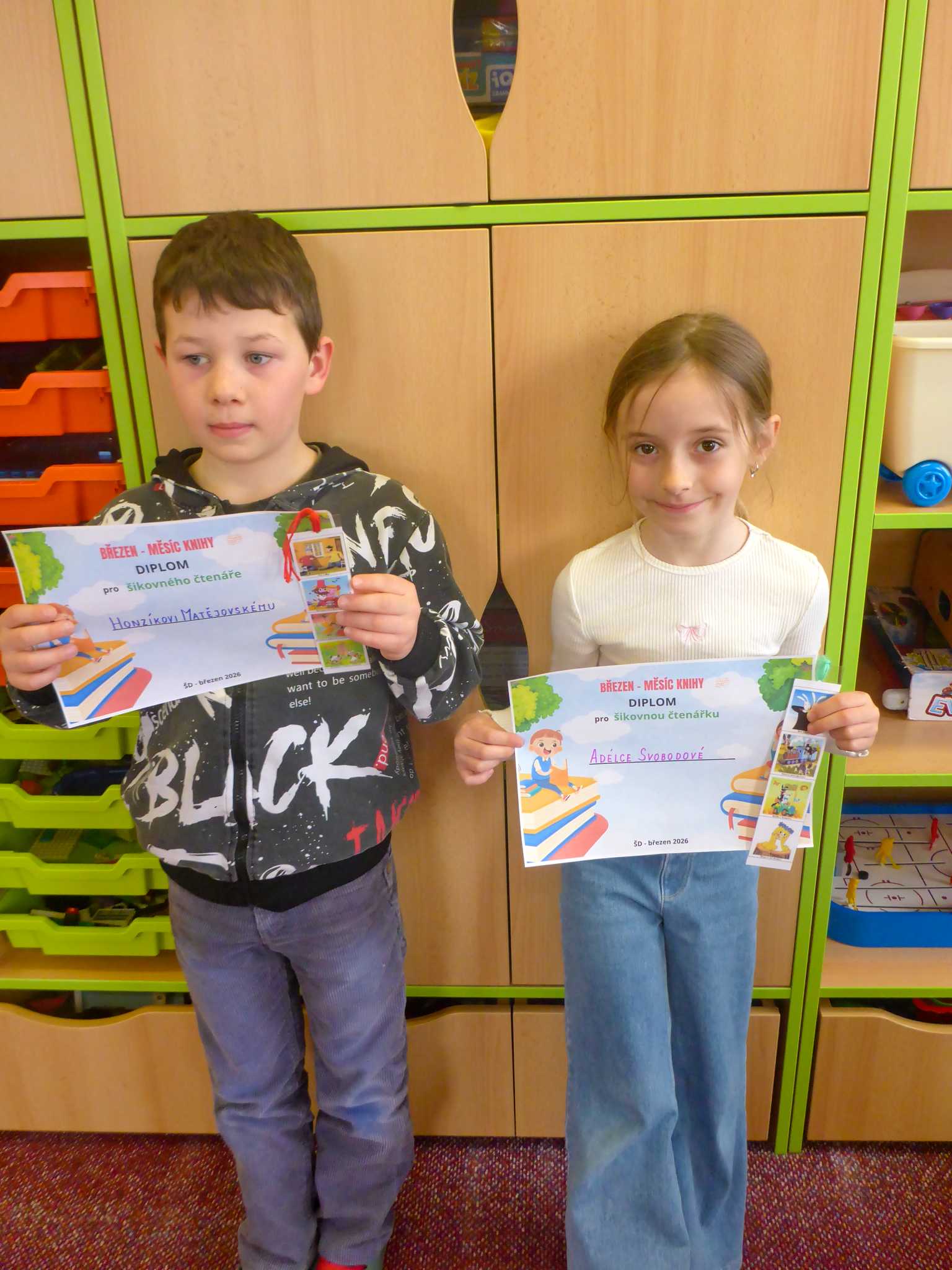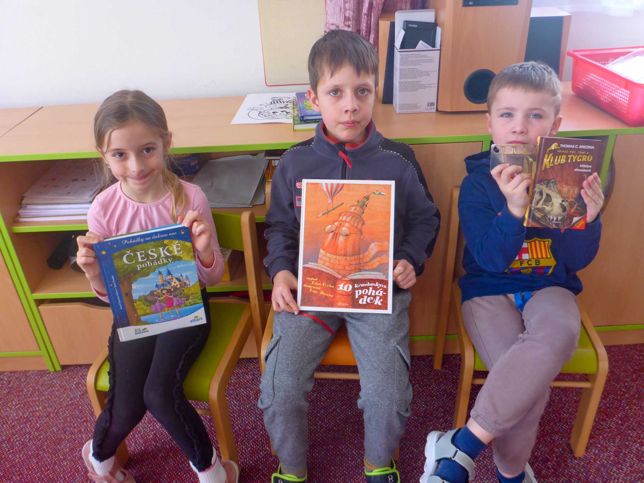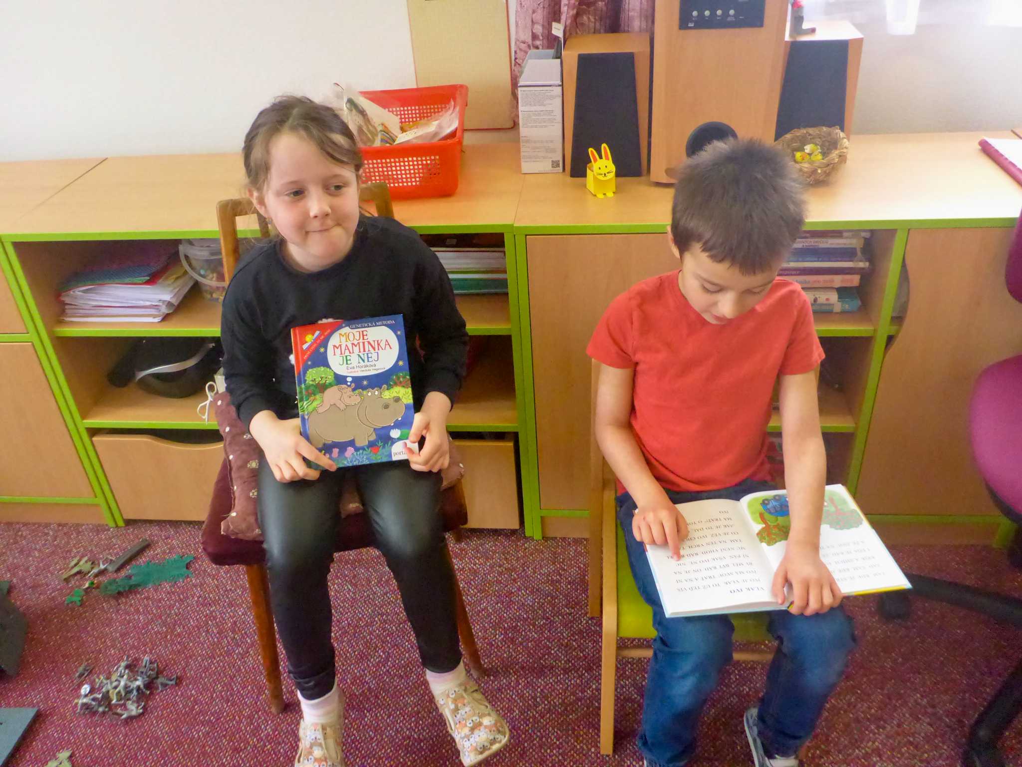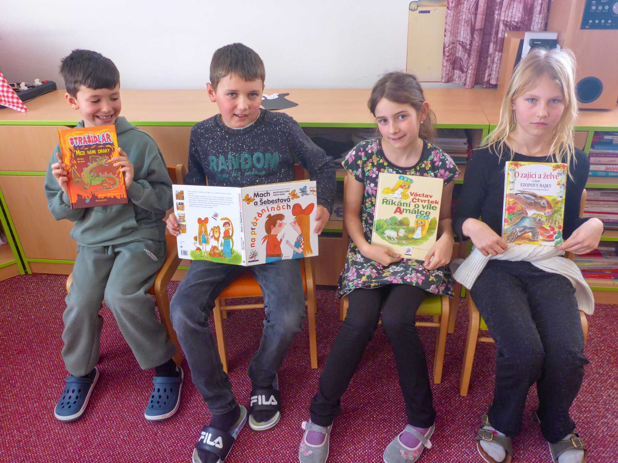 Po celý březen, jak je už zvykem, nás provázely knihy z našich domácích knihovniček. Téměř každý si odprezentoval nějakou svoji oblíbenou knihu. Úspěšně se zapojili i šikovní prvňáčci. Za odměnu každý dostal Večerníčkovou záložku do knihy a nejšikovnější čtenáři si odnesli i diplom.
