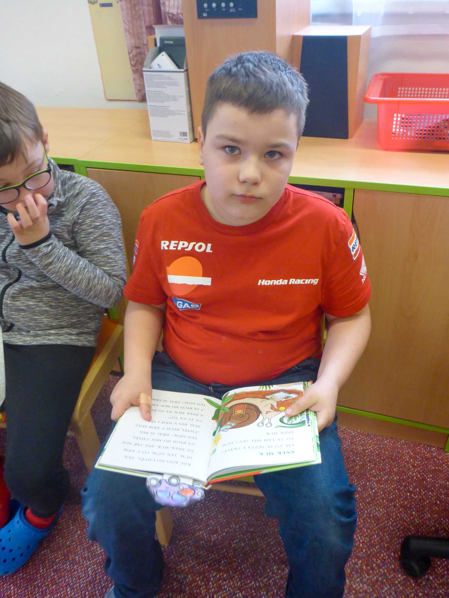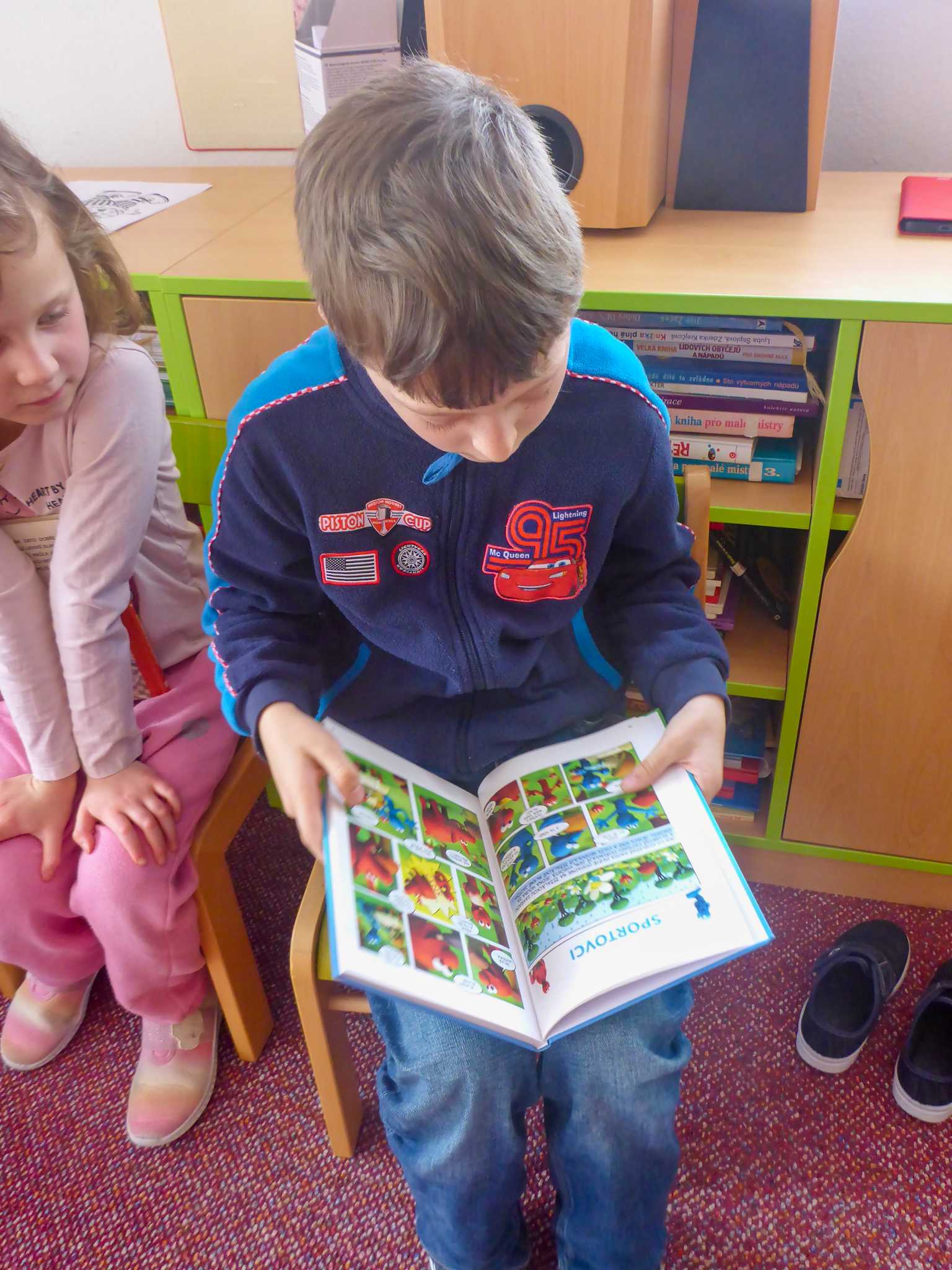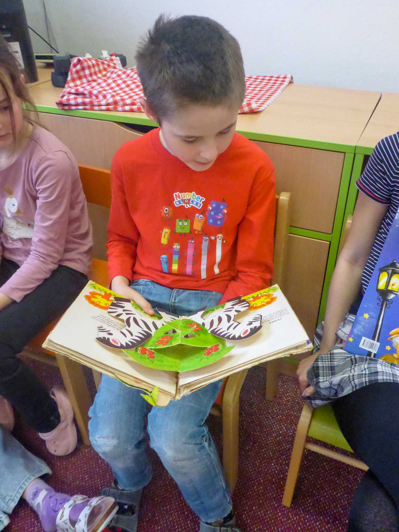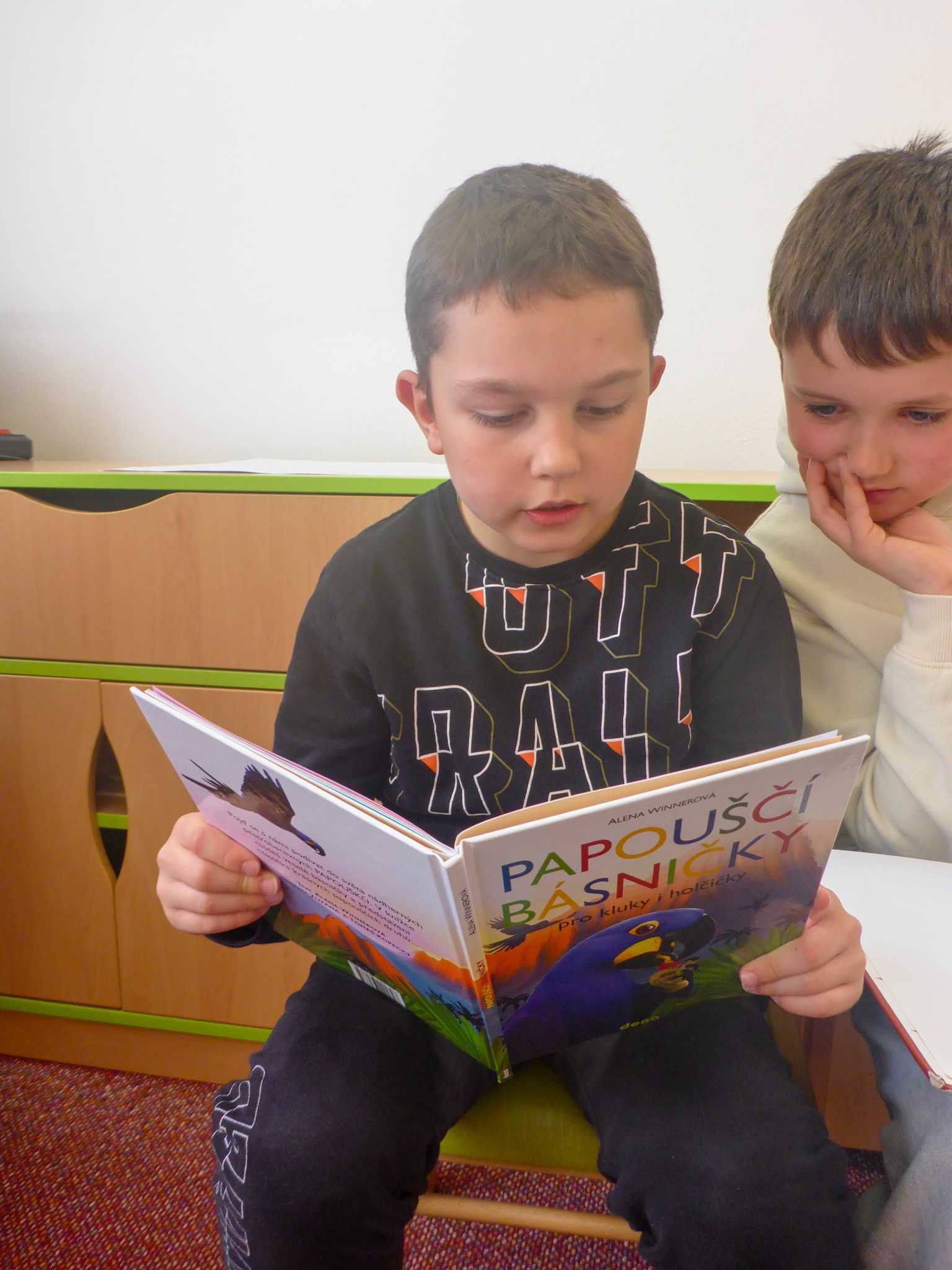 Po celý březen, jak je už zvykem, nás provázely knihy z našich domácích knihovniček. Téměř každý si odprezentoval nějakou svoji oblíbenou knihu. Úspěšně se zapojili i šikovní prvňáčci. Za odměnu každý dostal Večerníčkovou záložku do knihy a nejšikovnější čtenáři si odnesli i diplom.