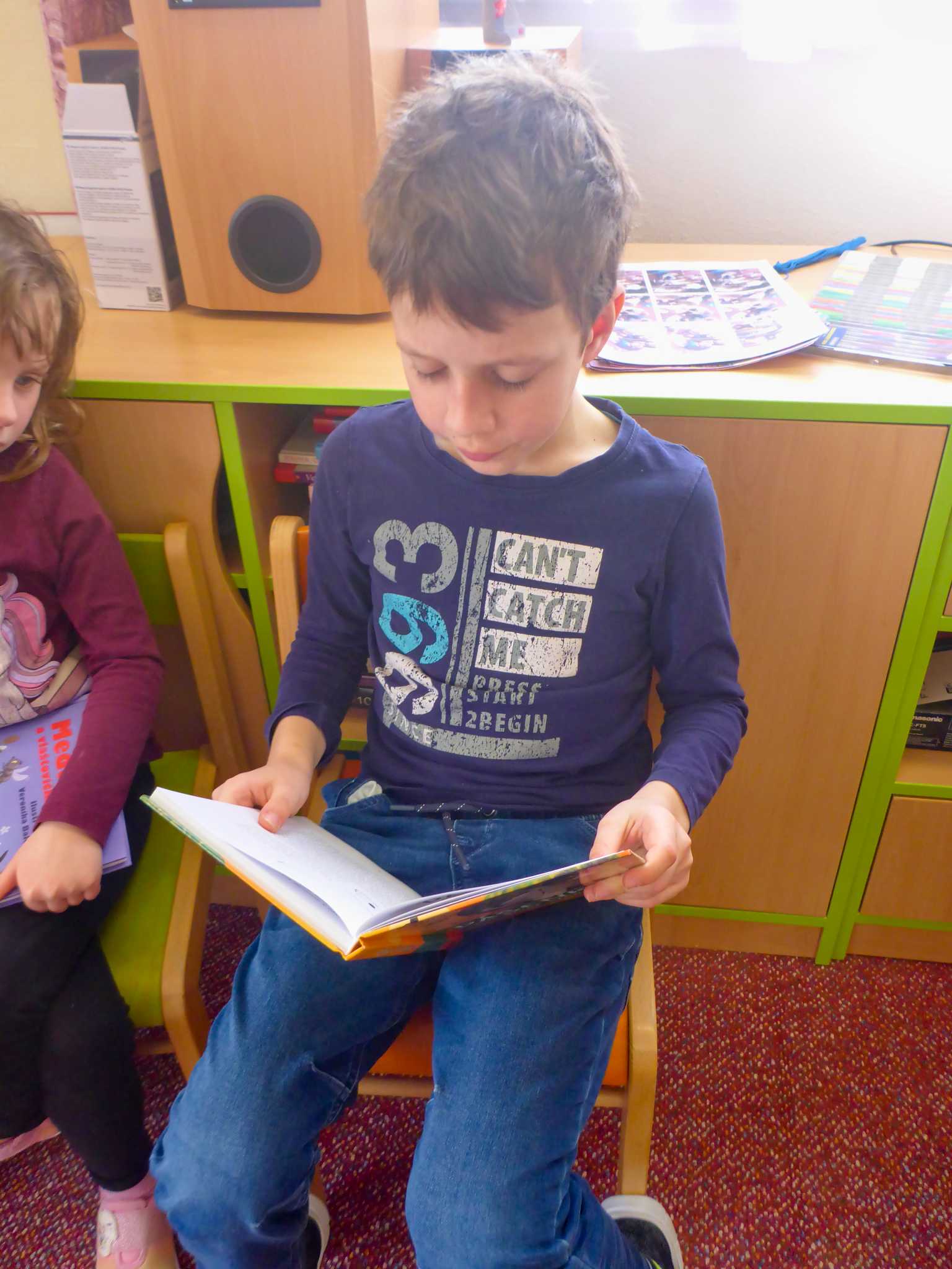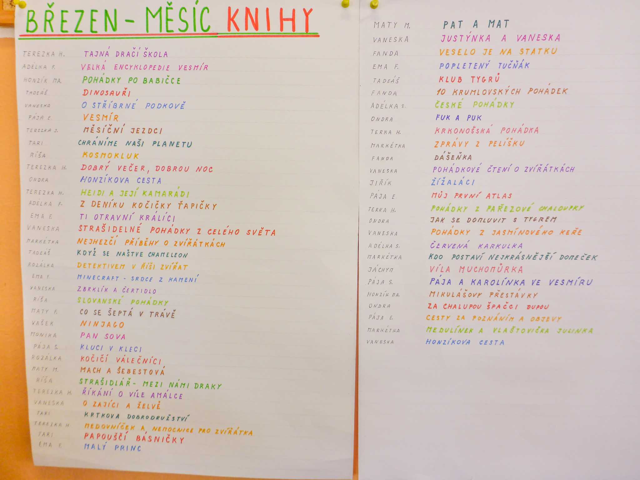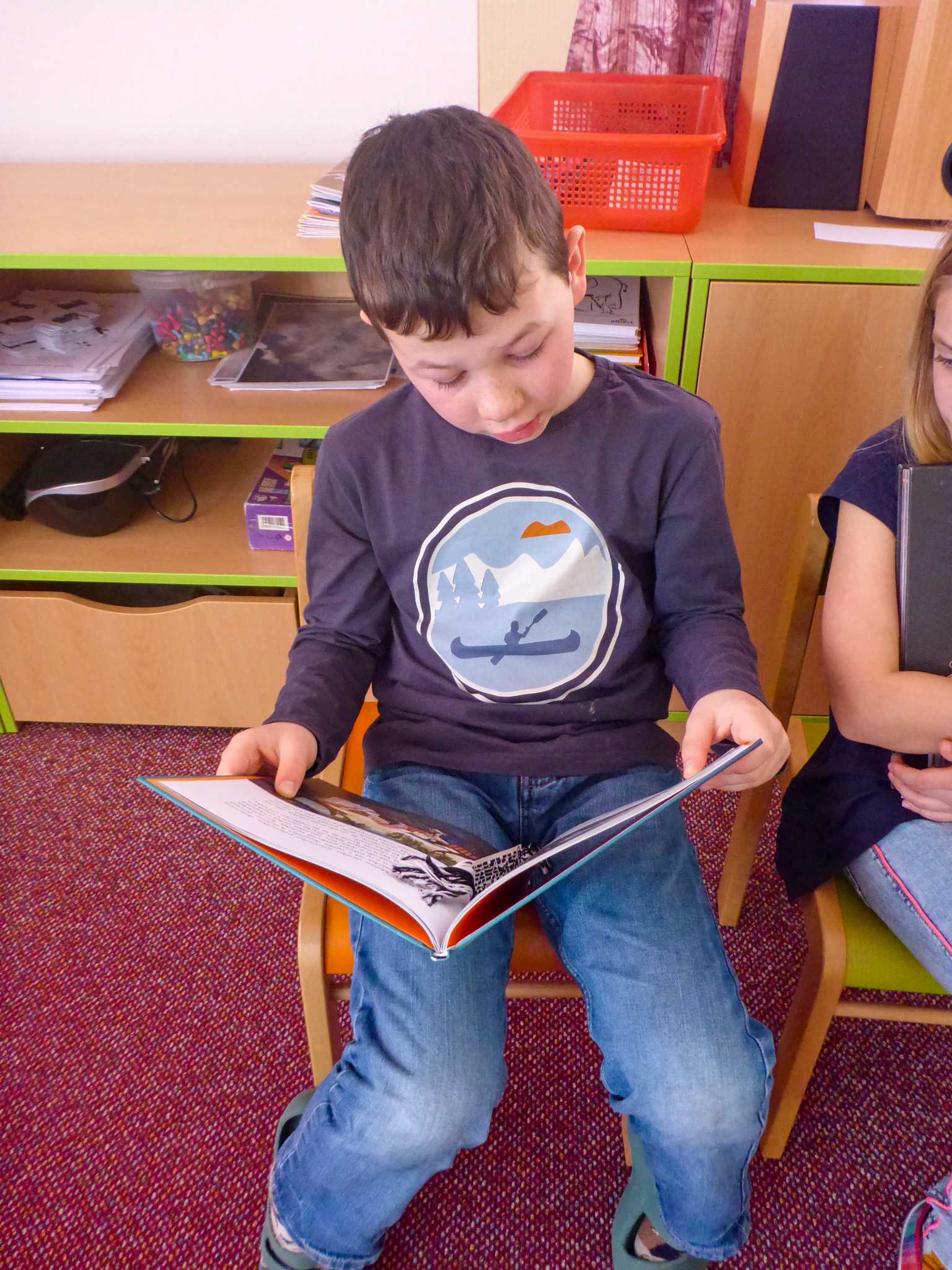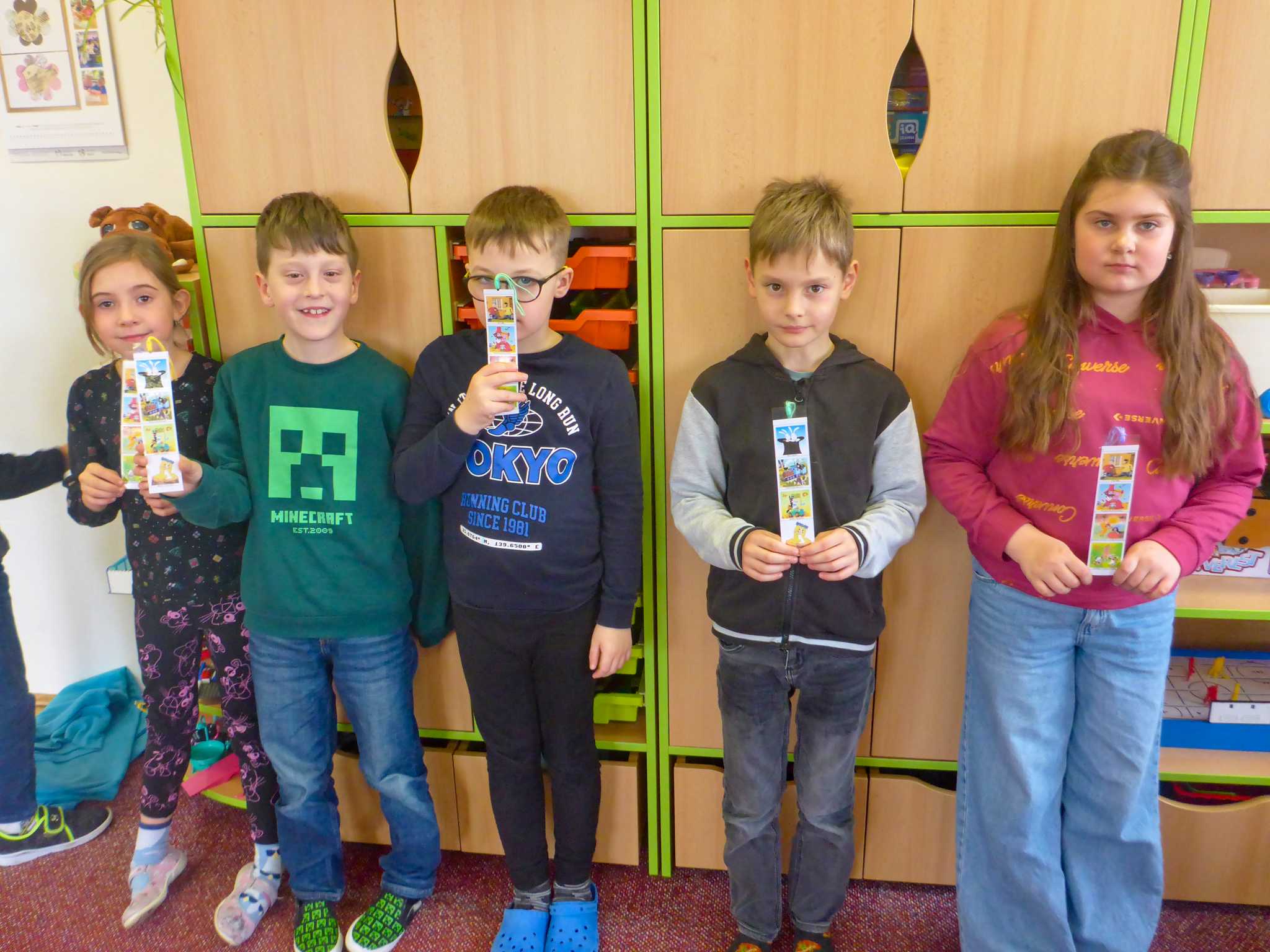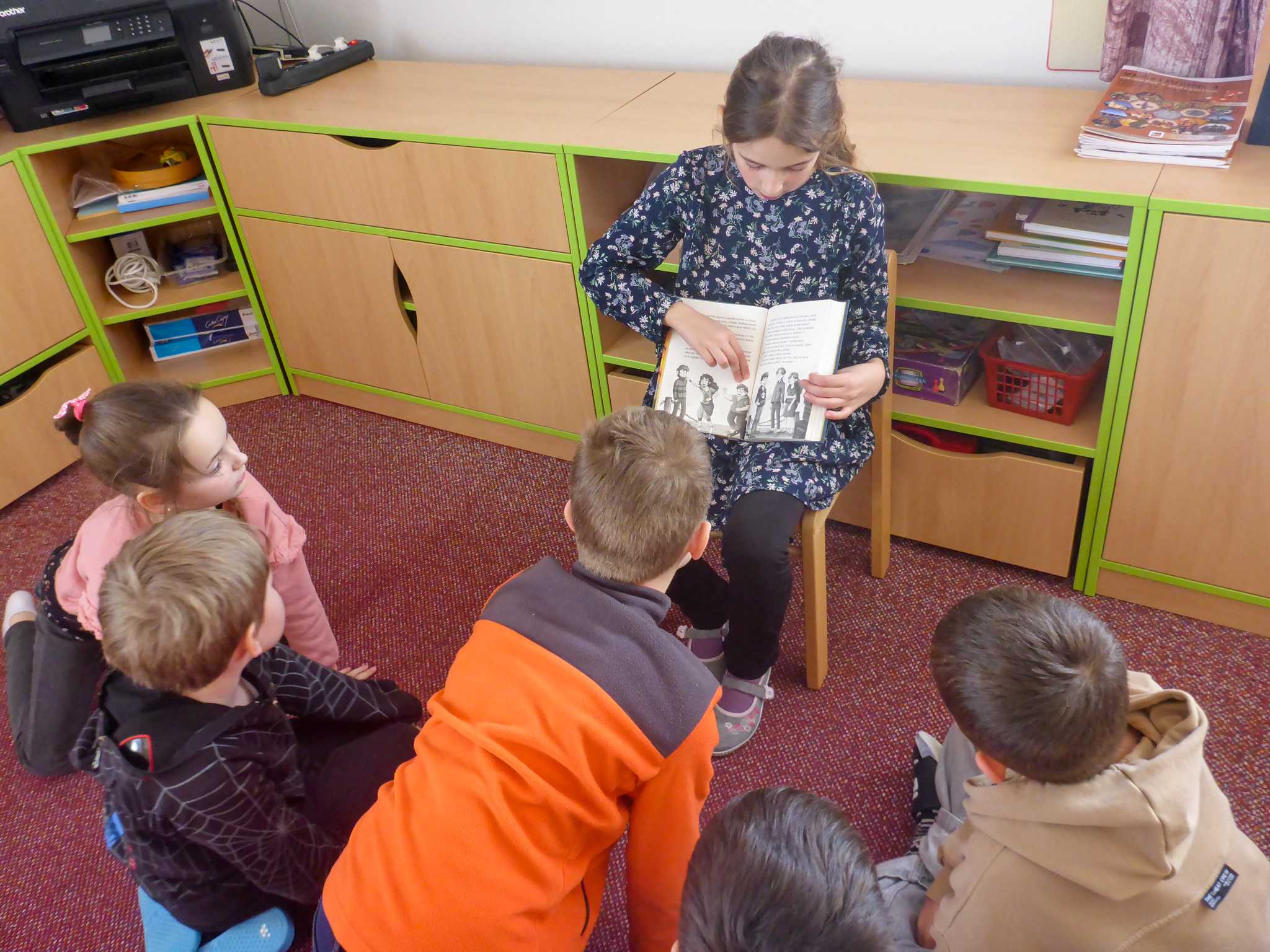 Po celý březen, jak je už zvykem, nás provázely knihy z našich domácích knihovniček. Téměř každý si odprezentoval nějakou svoji oblíbenou knihu. Úspěšně se zapojili i šikovní prvňáčci. Za odměnu každý dostal Večerníčkovou záložku do knihy a nejšikovnější čtenáři si odnesli i diplom.