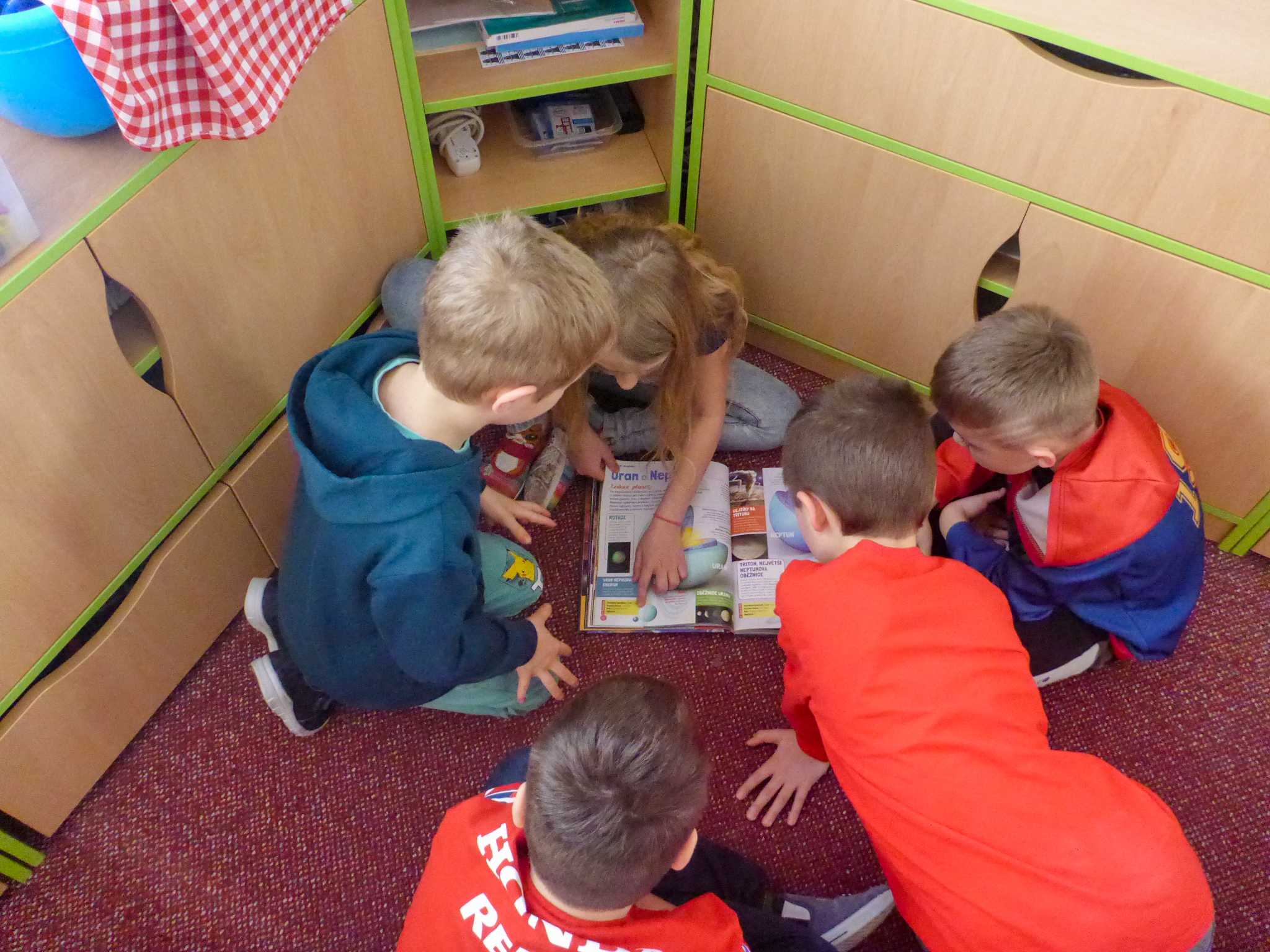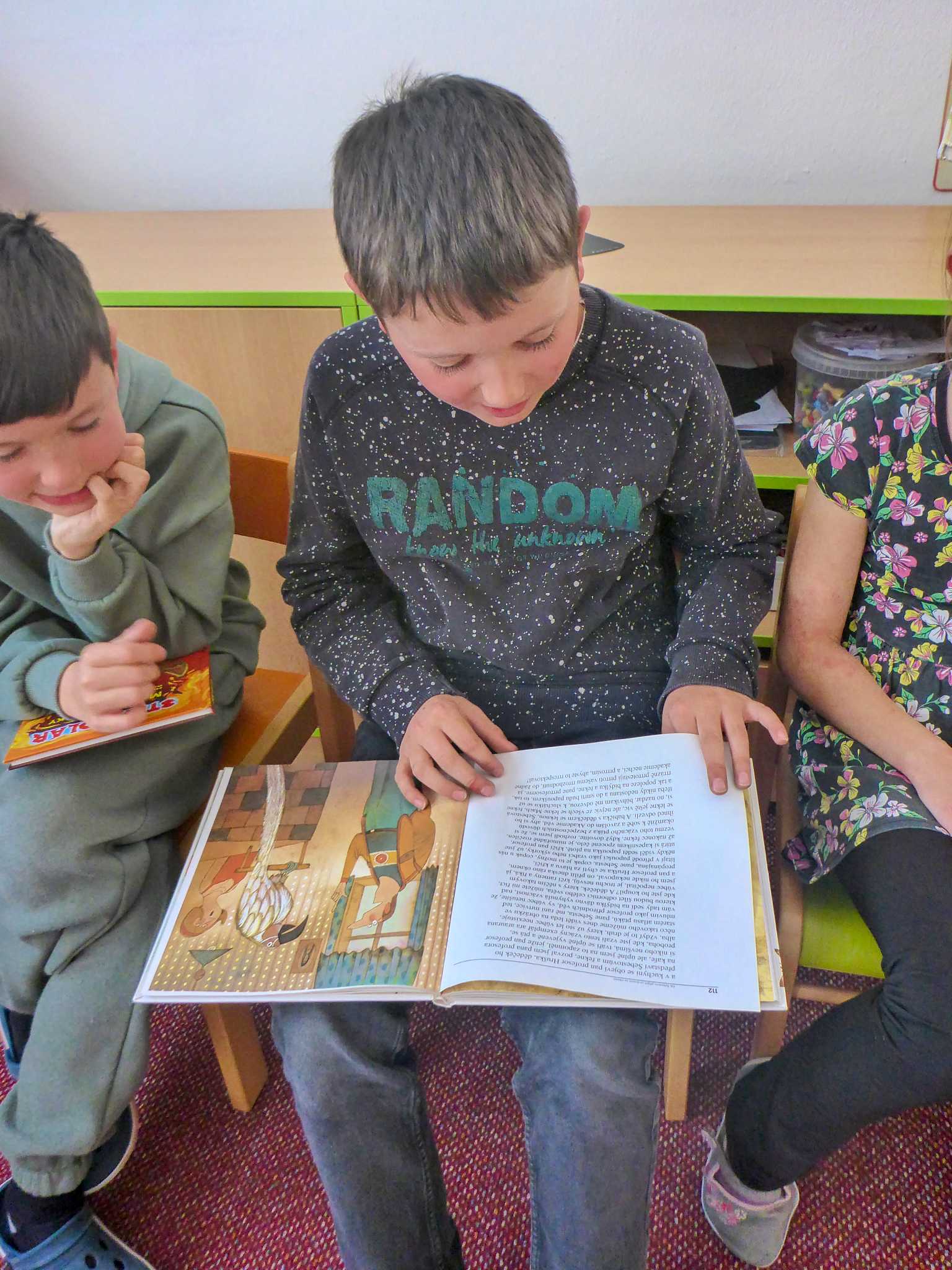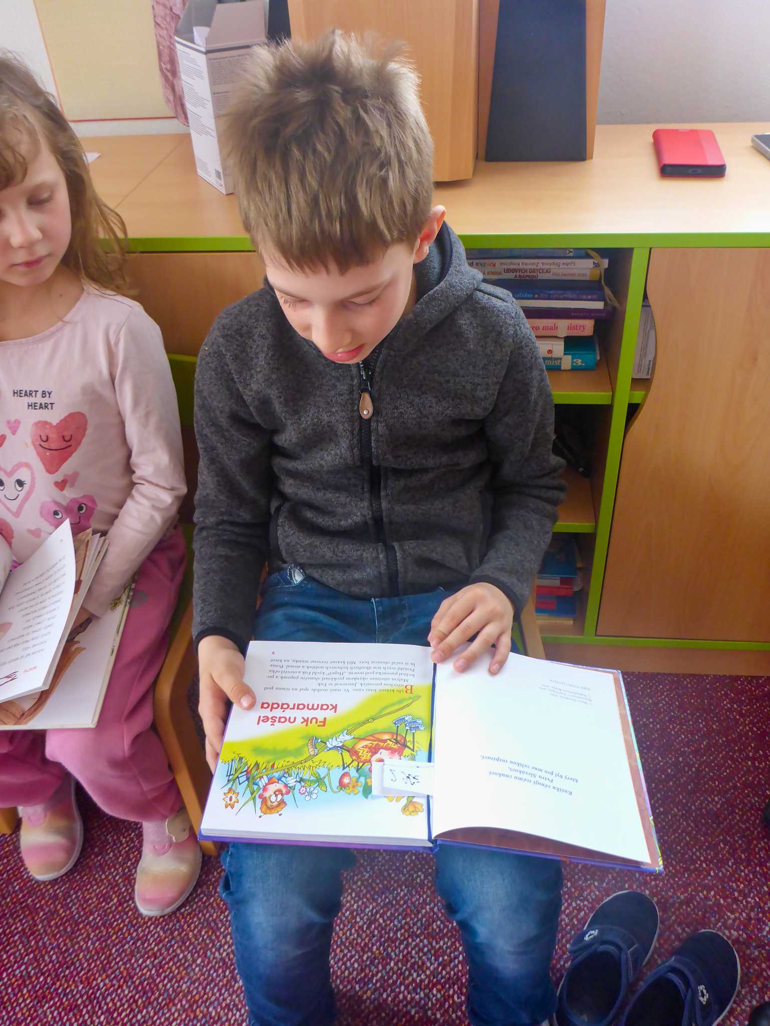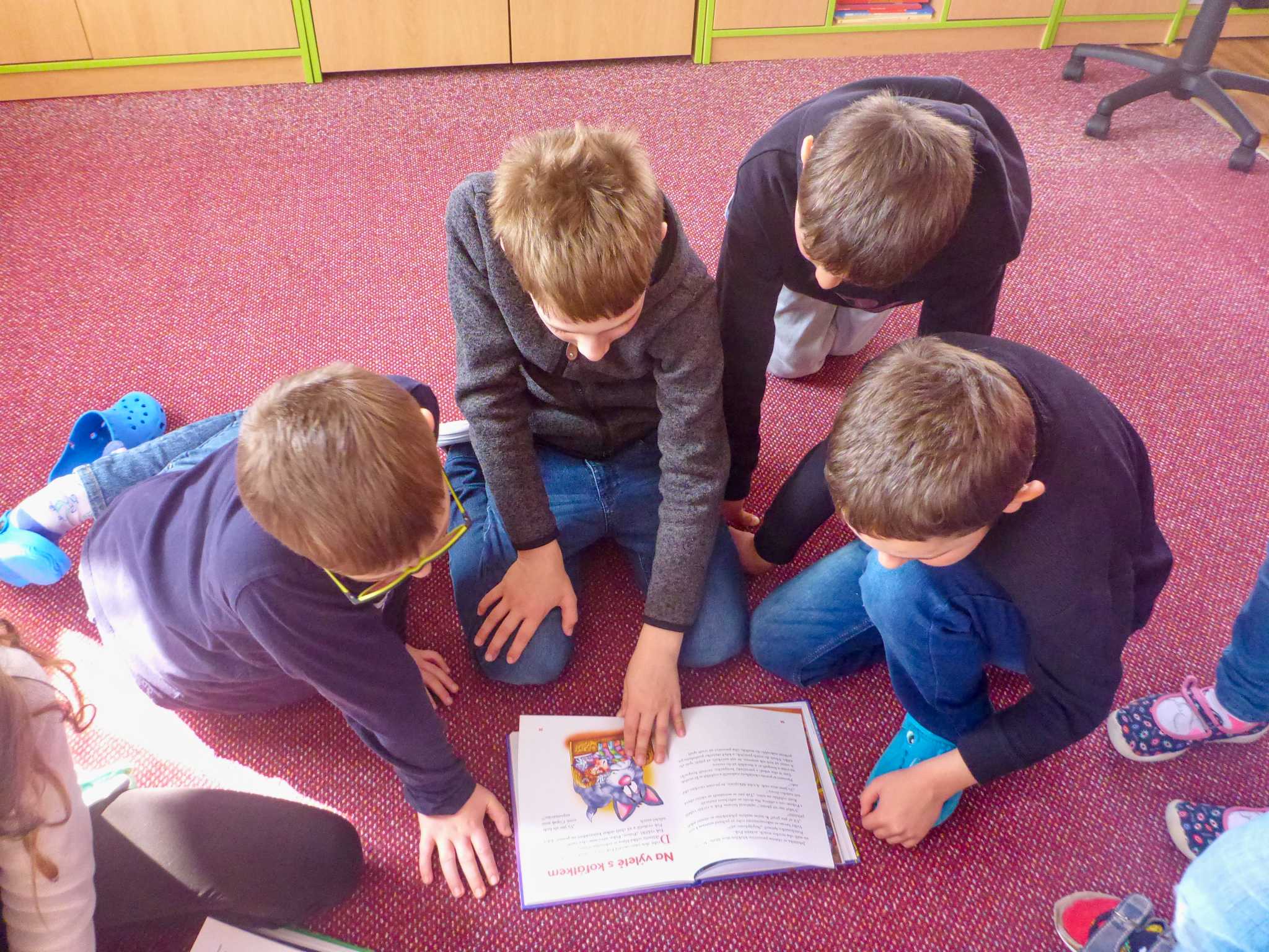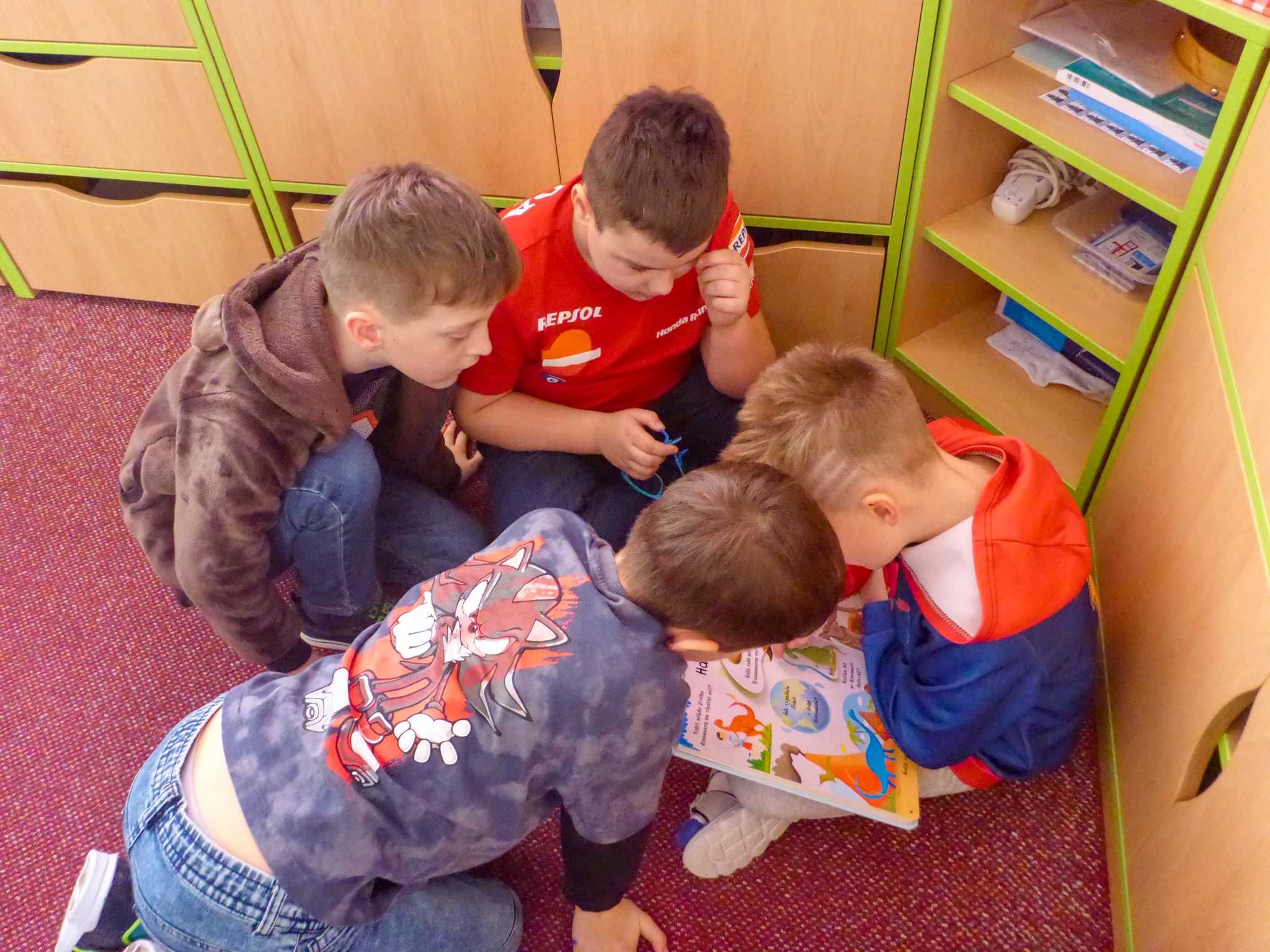 Po celý březen, jak je už zvykem, nás provázely knihy z našich domácích knihovniček. Téměř každý si odprezentoval nějakou svoji oblíbenou knihu. Úspěšně se zapojili i šikovní prvňáčci. Za odměnu každý dostal Večerníčkovou záložku do knihy a nejšikovnější čtenáři si odnesli i diplom.