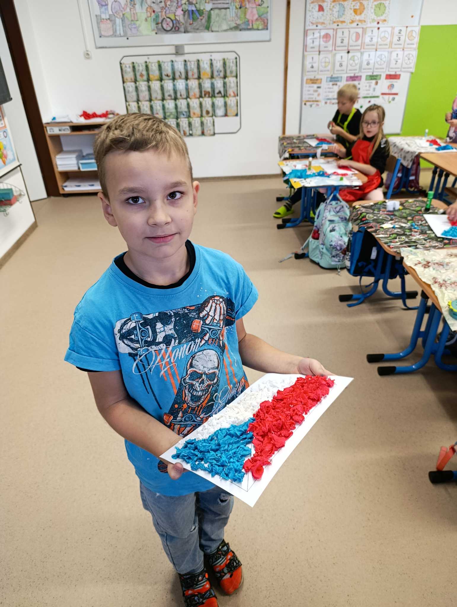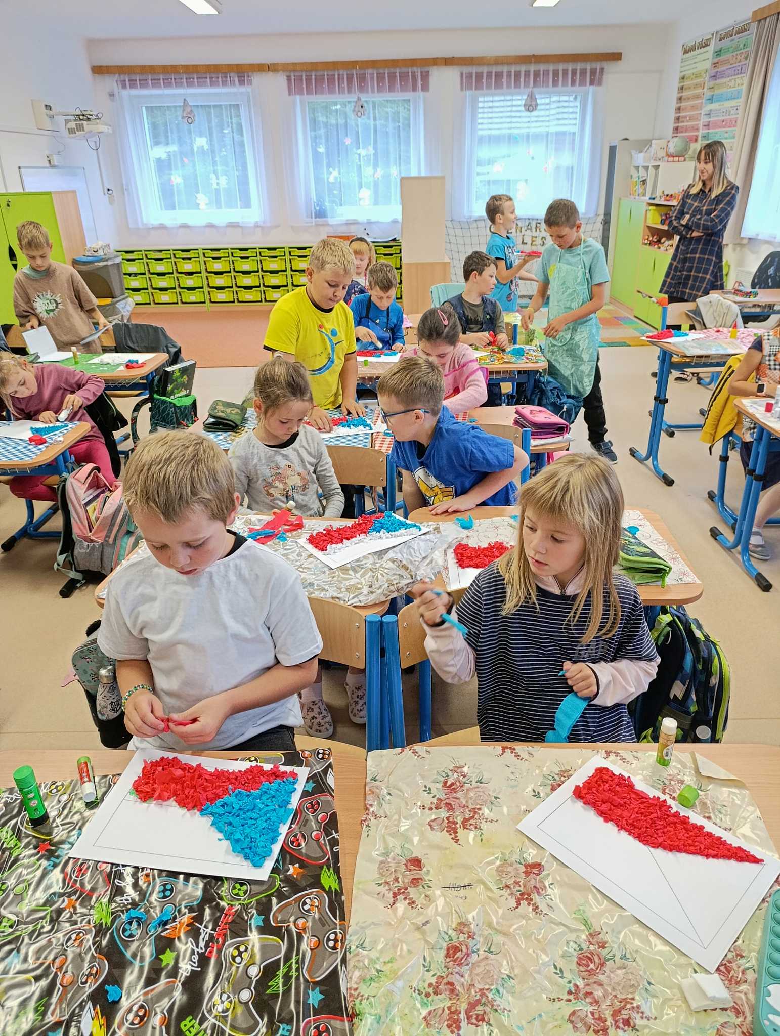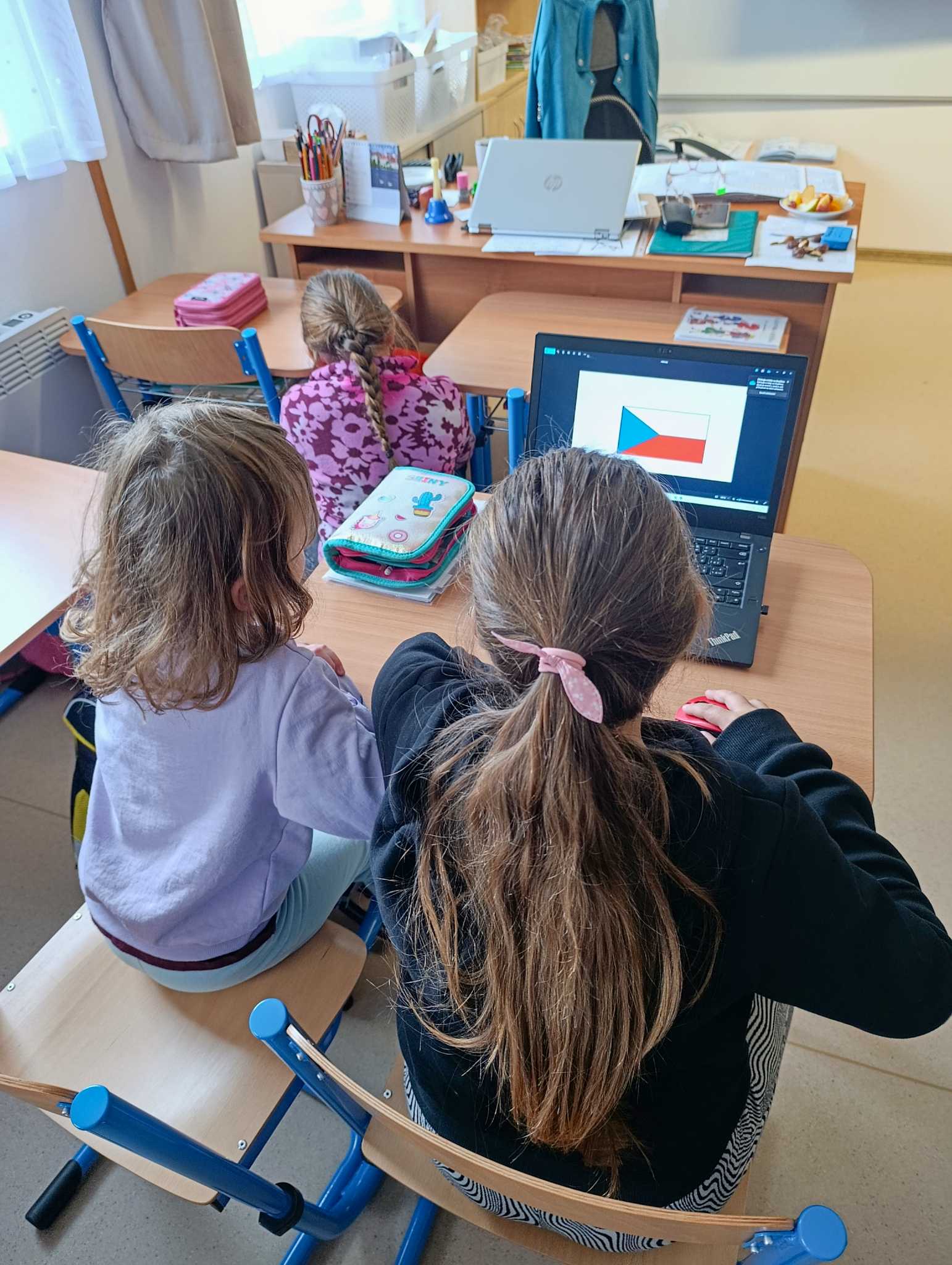 Děti si vyzkoušely vytvořit českou vlajku v programu Malování. Moc je to bavilo, všichni zvládli svůj výtvor uložit a odeslat mailem. Poté jsme tvořili vlajku z krepového papíru. Děti si prošly i Svatováclavskou stezku.