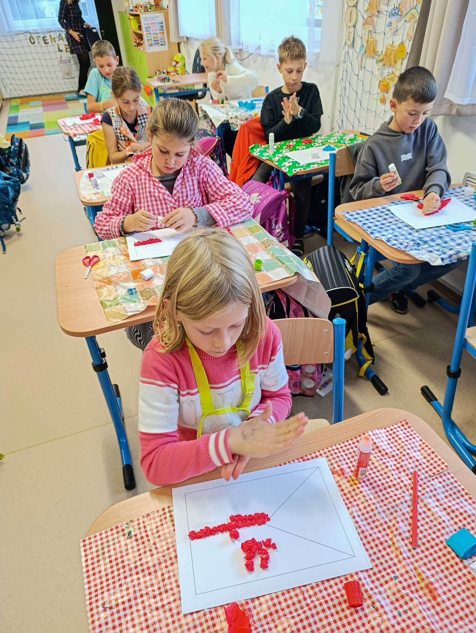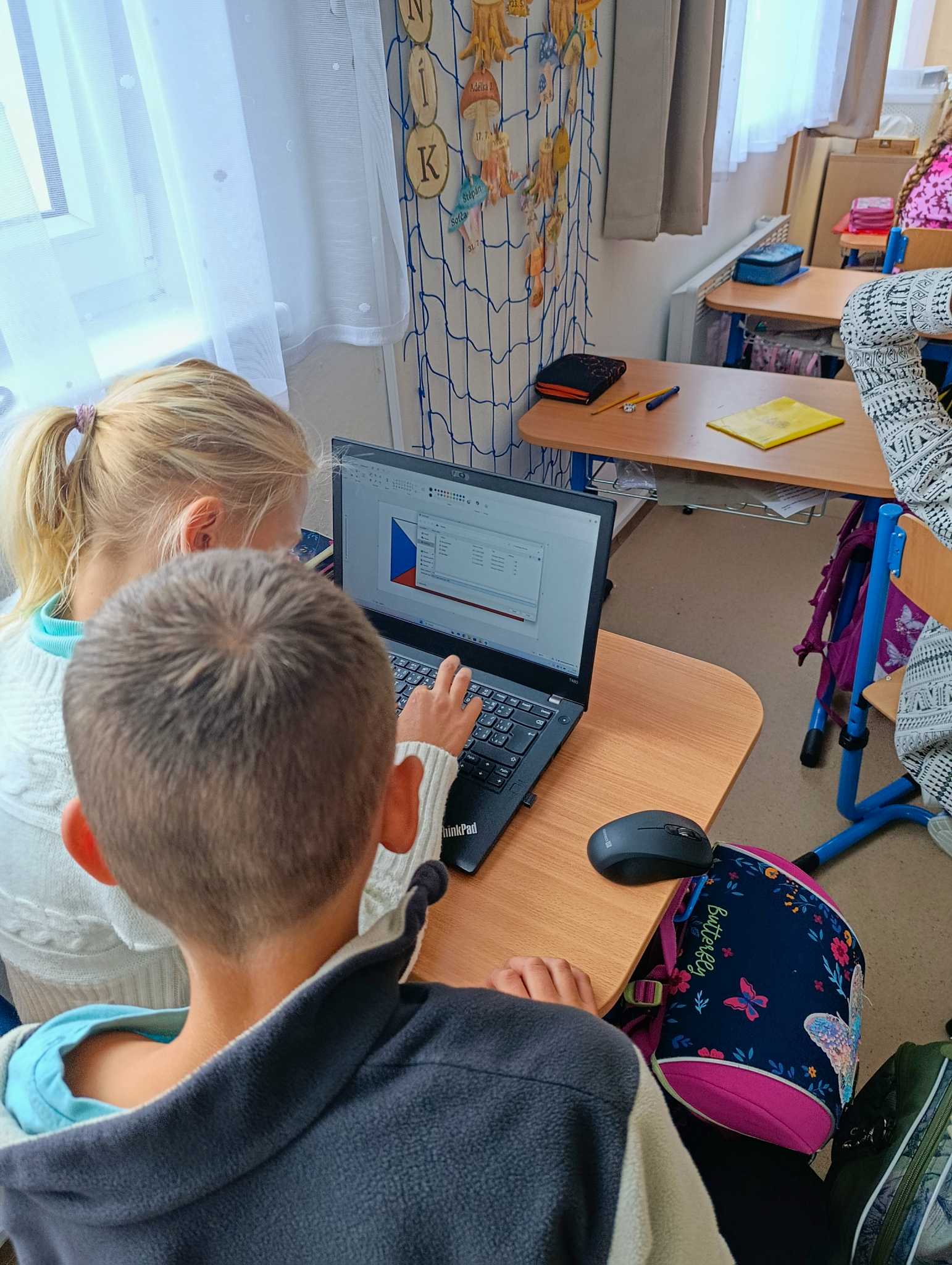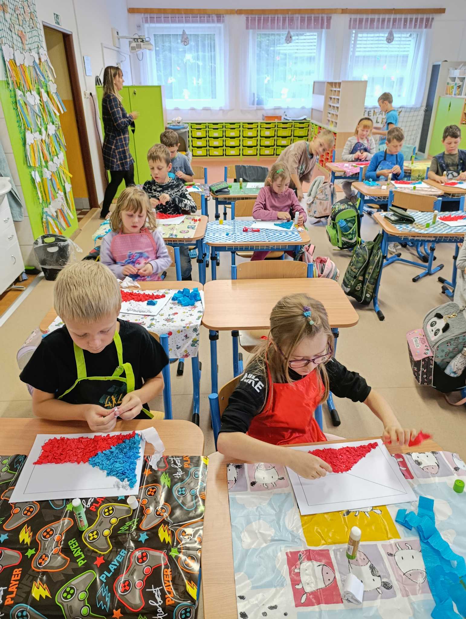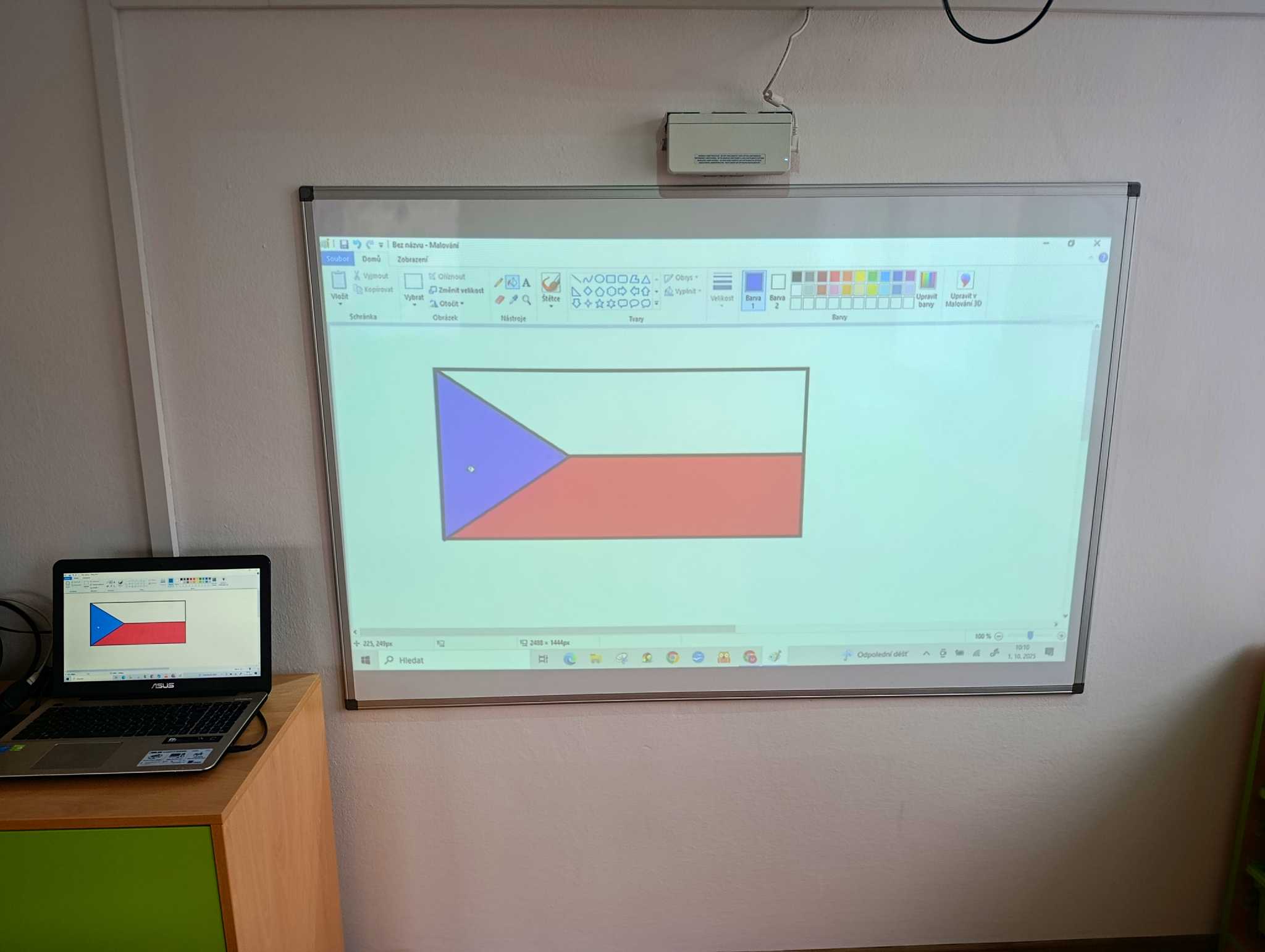 Děti si vyzkoušely vytvořit českou vlajku v programu Malování. Moc je to bavilo, všichni zvládli svůj výtvor uložit a odeslat mailem. Poté jsme tvořili vlajku z krepového papíru. Děti si prošly i Svatováclavskou stezku.