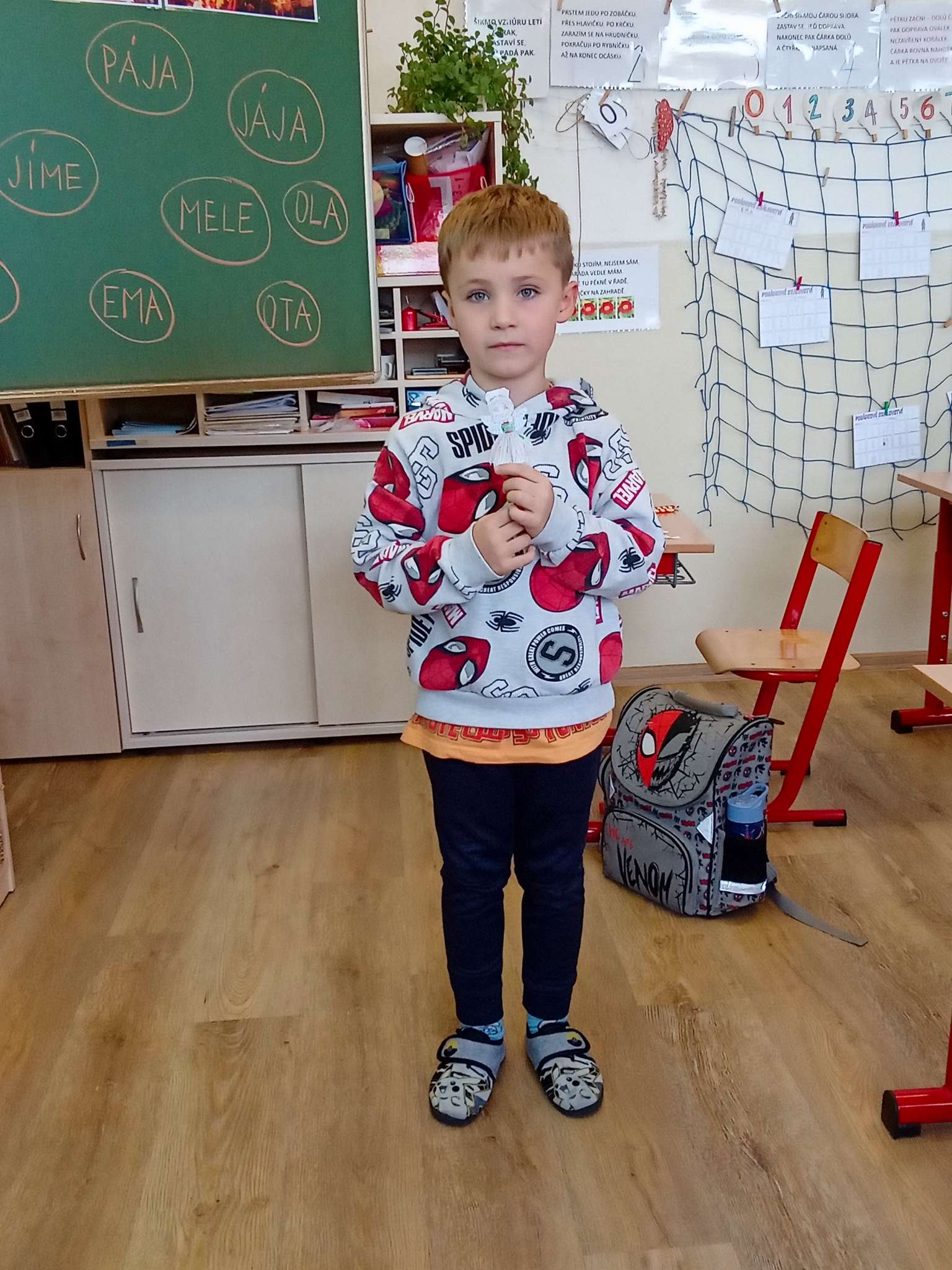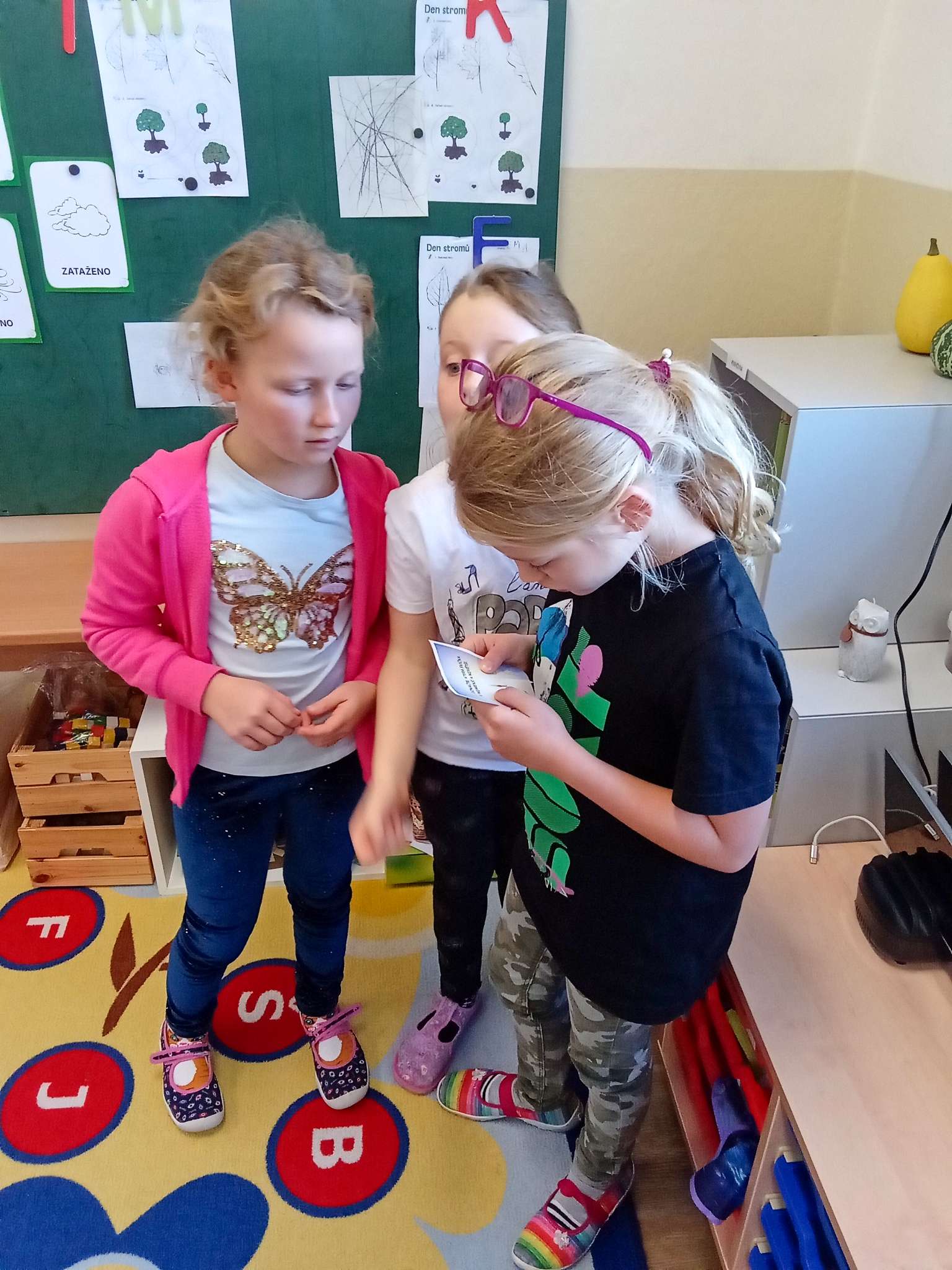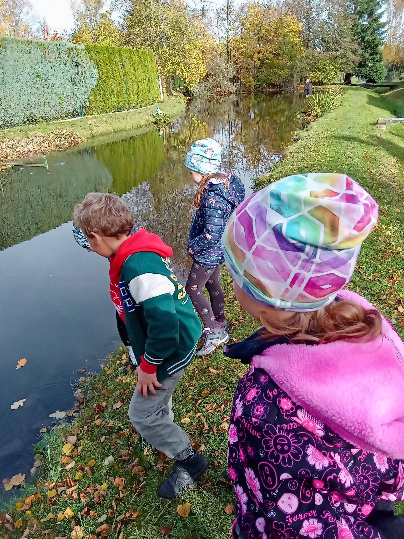 Posledním úkolem Jeřabinky byla cesta ven za poznáváním stromů, podzimních plodů. Děti si našly list dubu, pošeptaly do něj vzkaz pro ty nejbližší, kteří už nejsou a list poslaly po vodě...