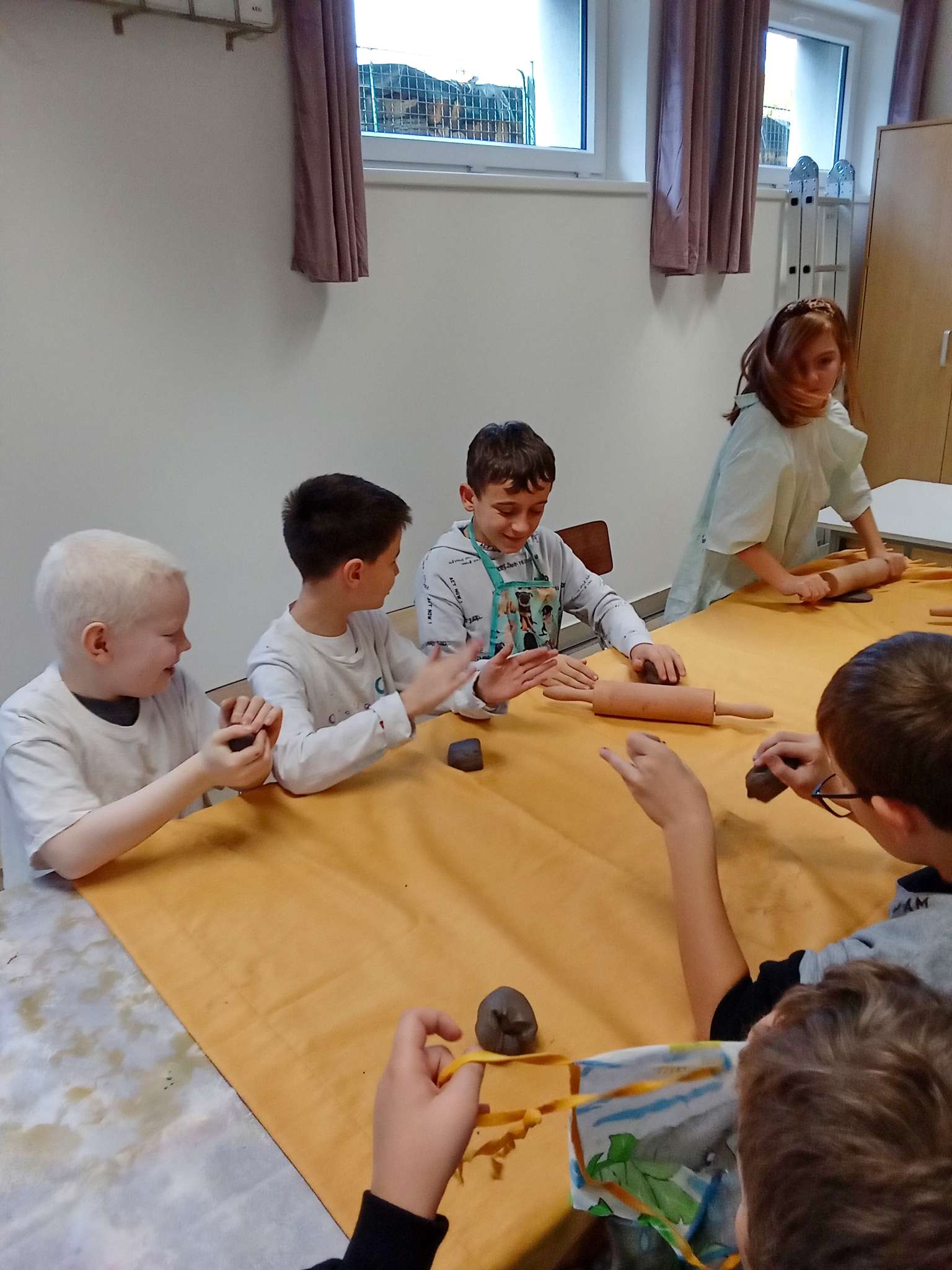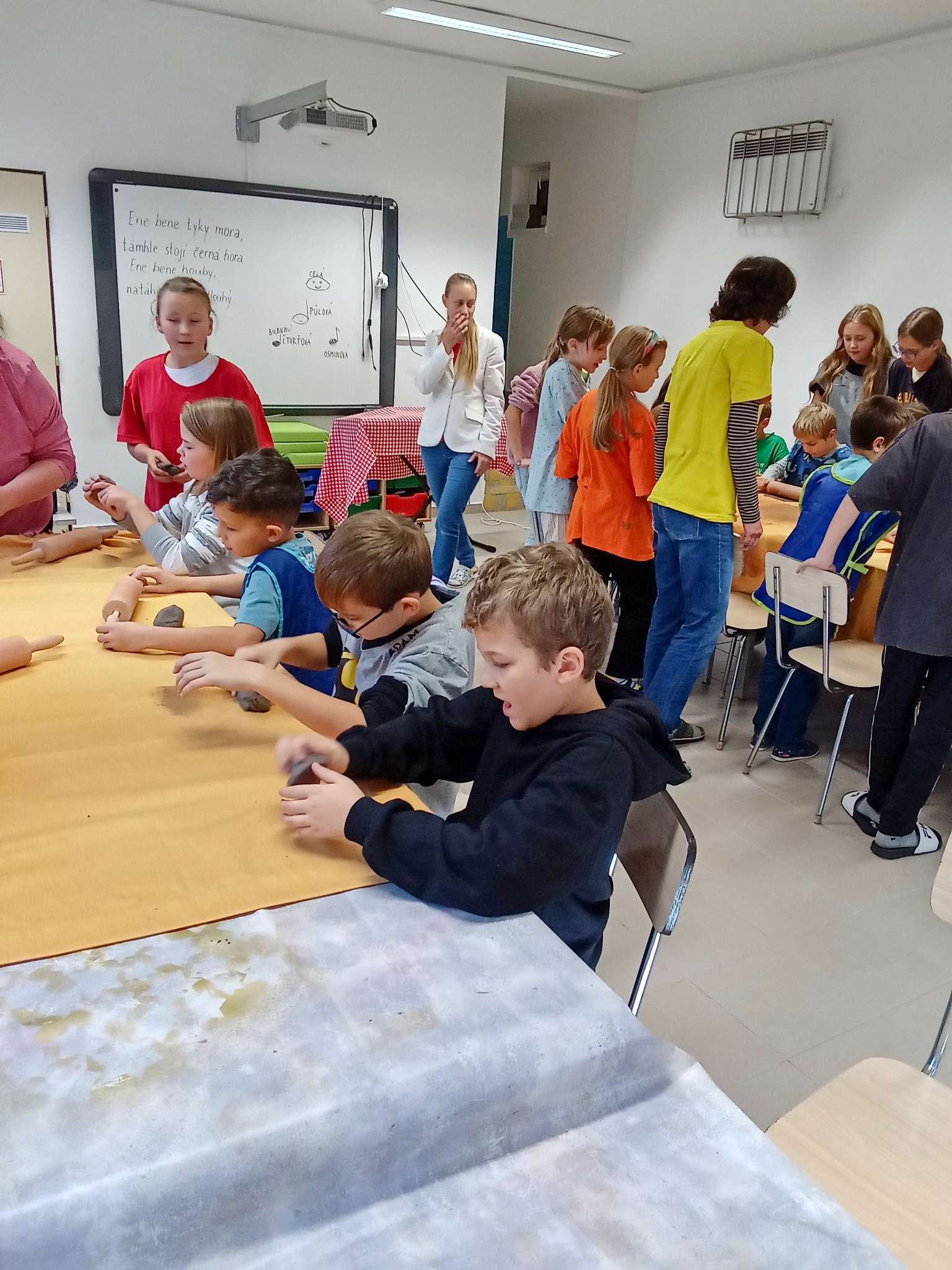 Víla Jeřabinka připravila pro děti různé úkoly, které se vztahovaly k podzimním svátkům. Děti se seznámily s oslavou Dušiček v naší republice, se svátkem Halloween, který slaví v Americe a dokonce se zvyky spojené se svátkem Día de murteos v Mexiku. Po splnění úkolů nás pozvali žáci ze 4. a 5. ročníku na výrobu ozdob z hlíny.