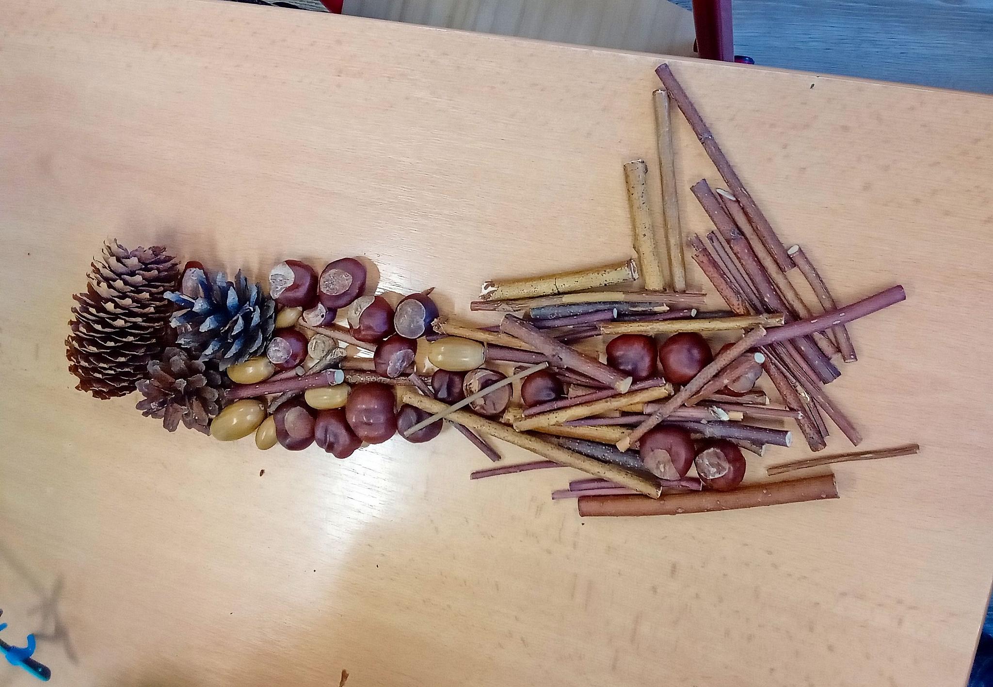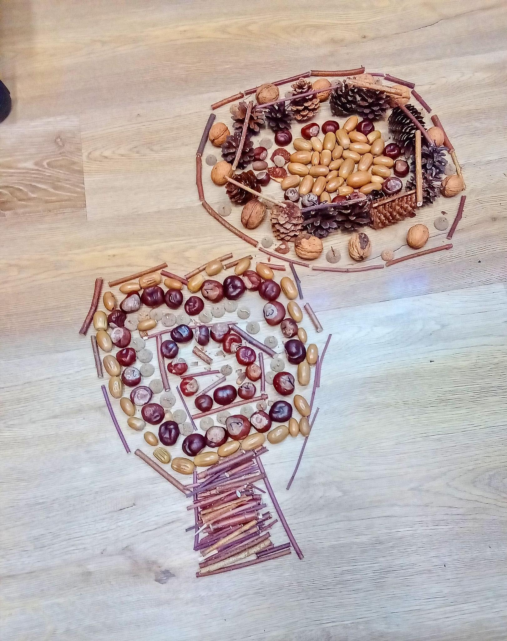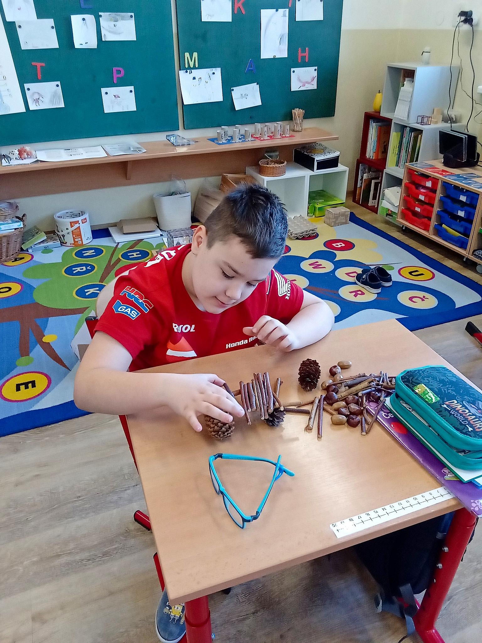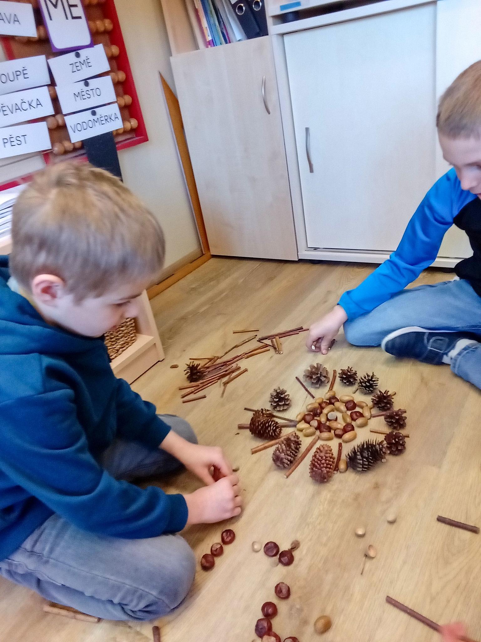 Děti v 1. ročníku si zkusily utvořit různé obrazy z přírodnin, které měly k dispozici. O vytvořených obrázcích jsme si popovídali a uznali, že se povedly.