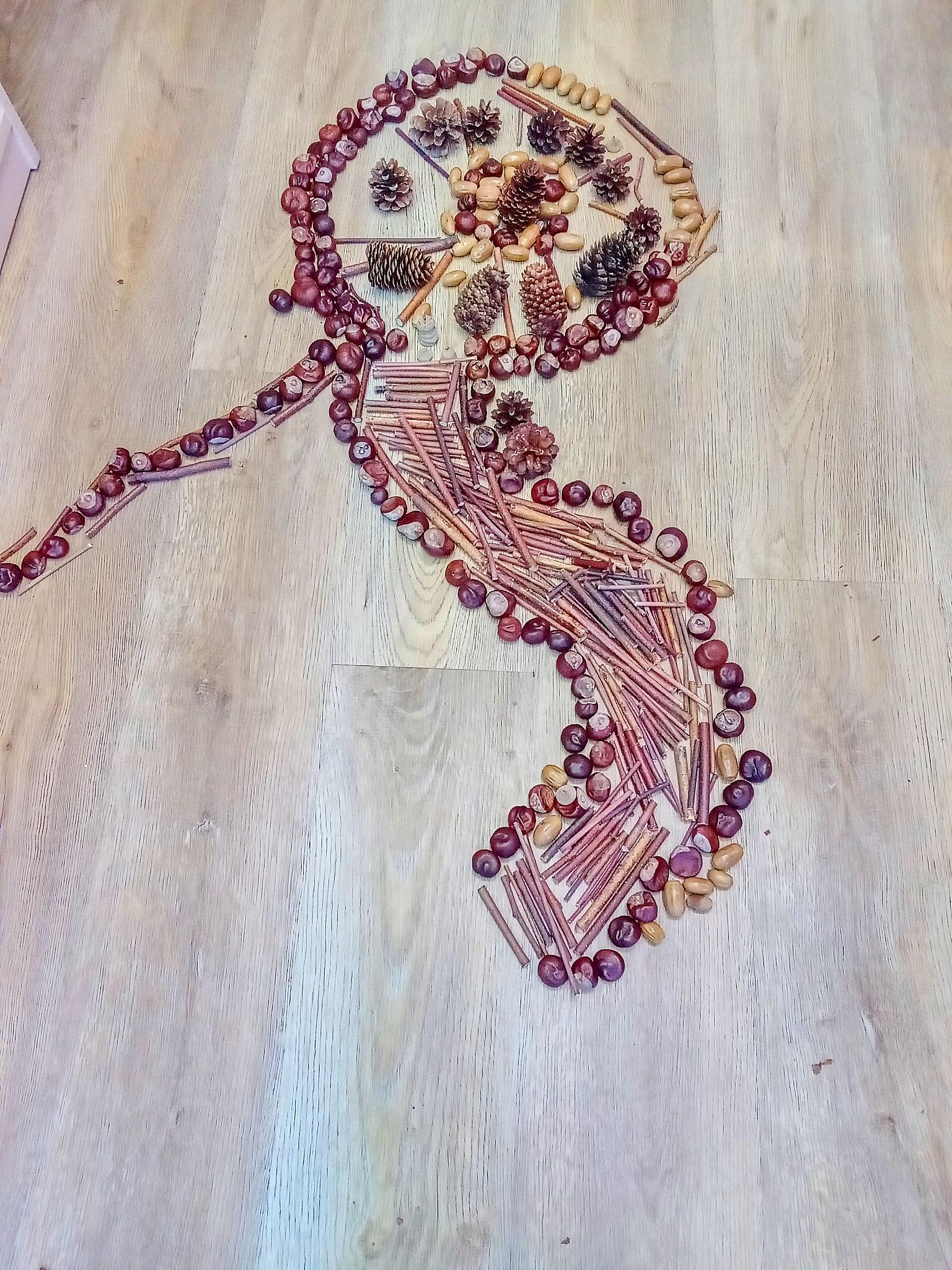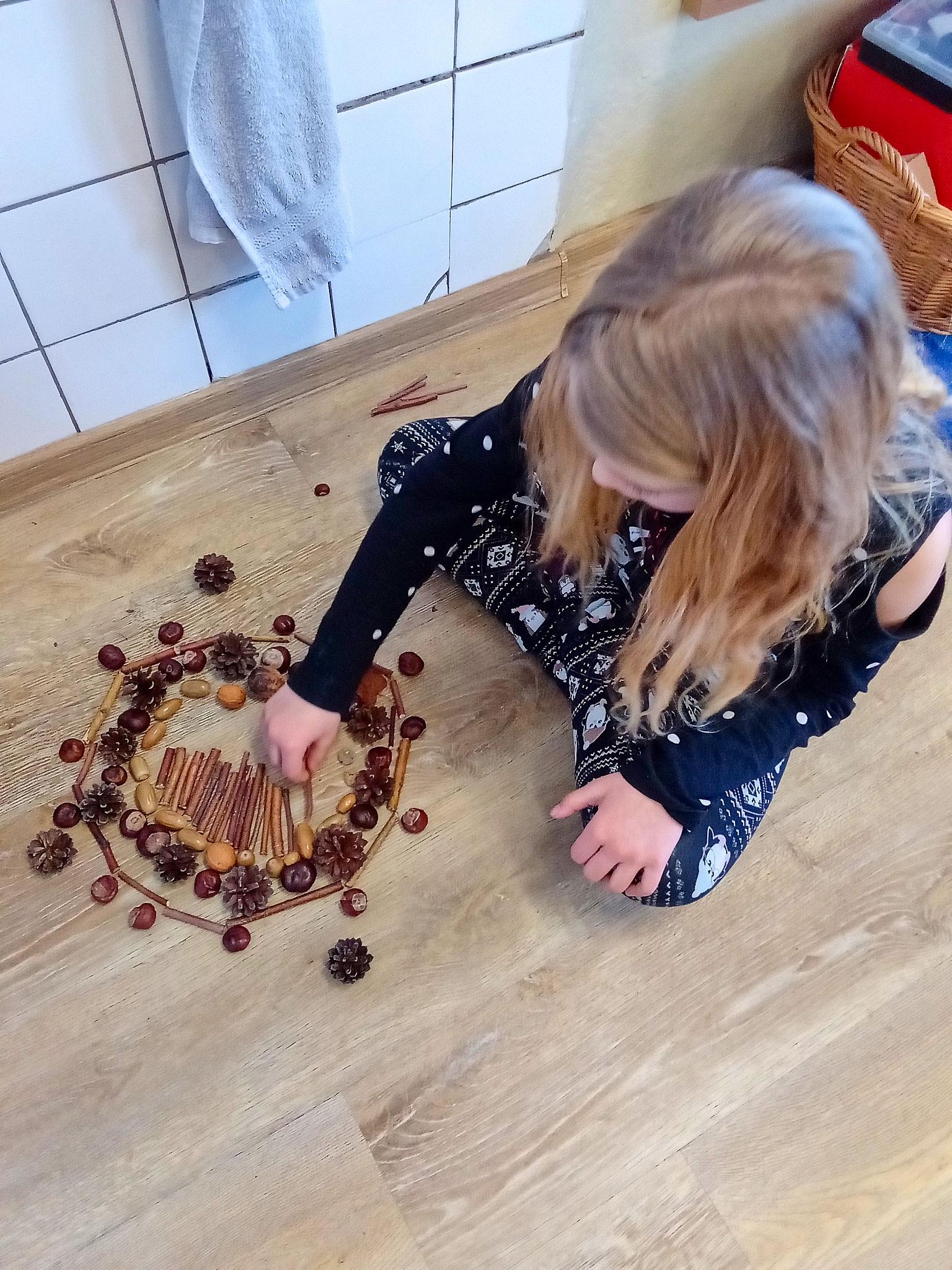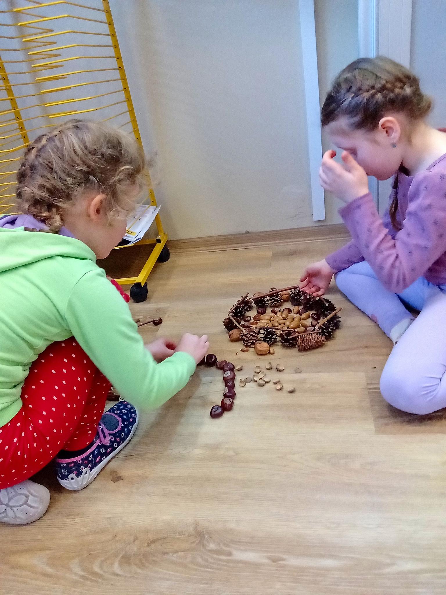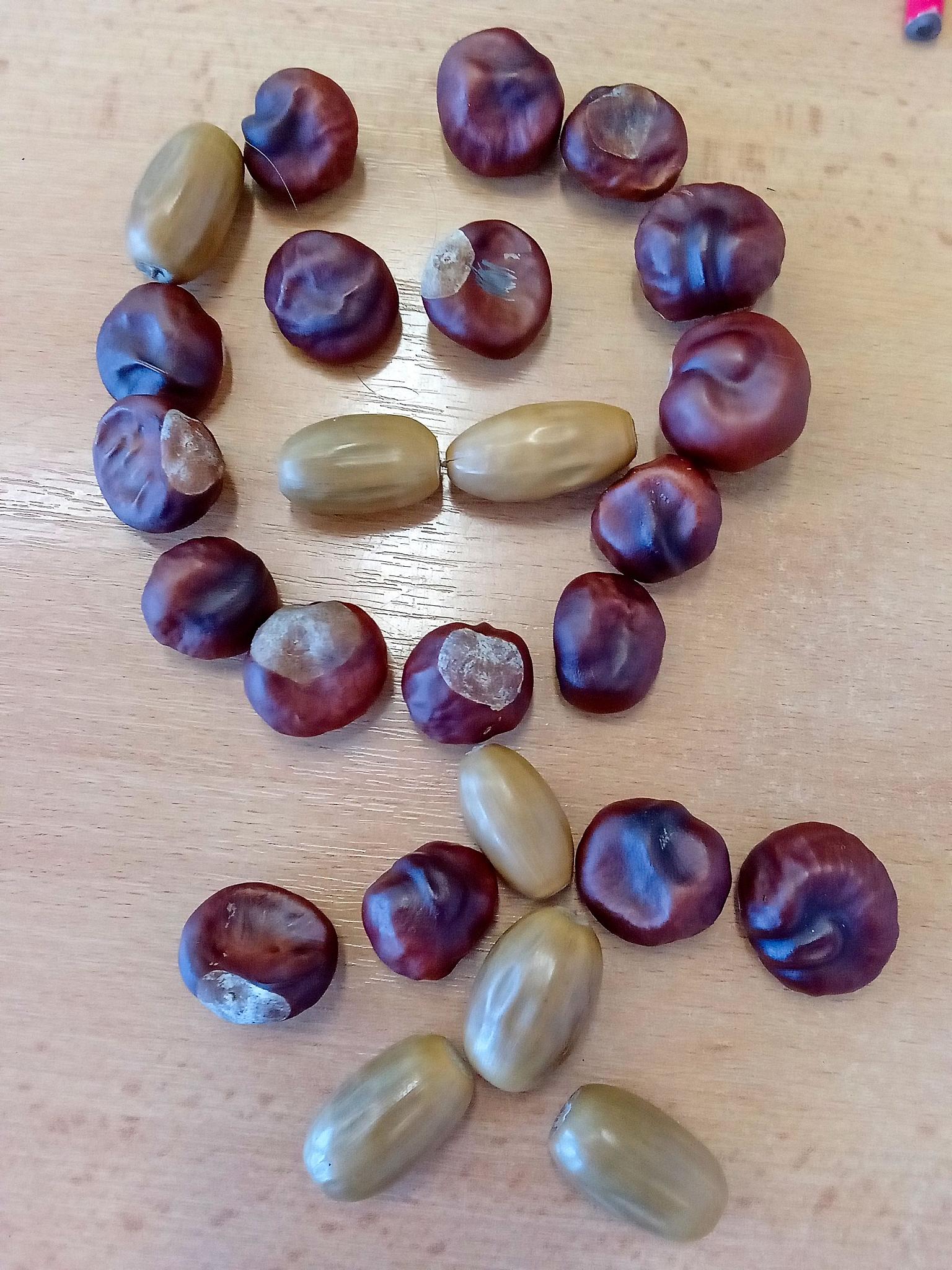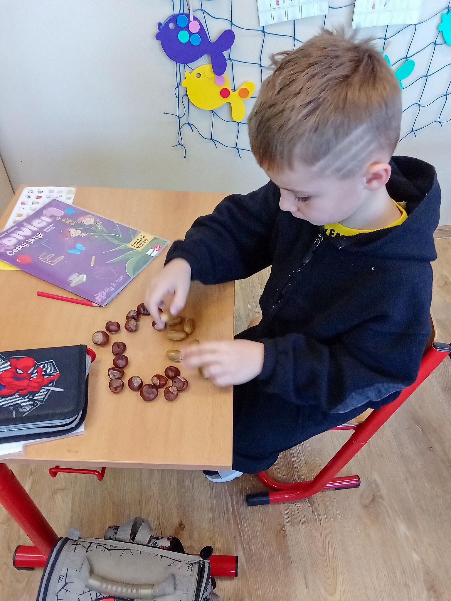 Děti v 1. ročníku si zkusily utvořit různé obrazy z přírodnin, které měly k dispozici. O vytvořených obrázcích jsme si popovídali a uznali, že se povedly.