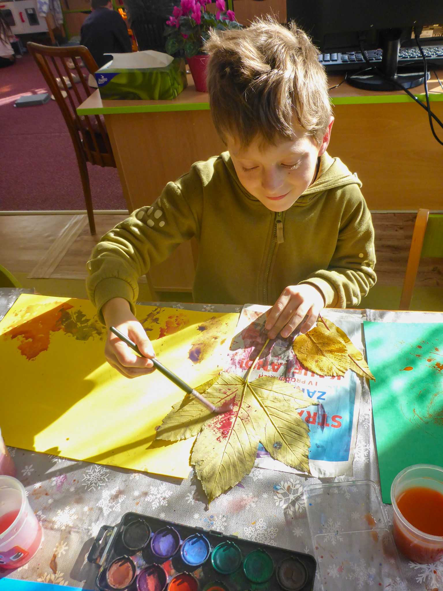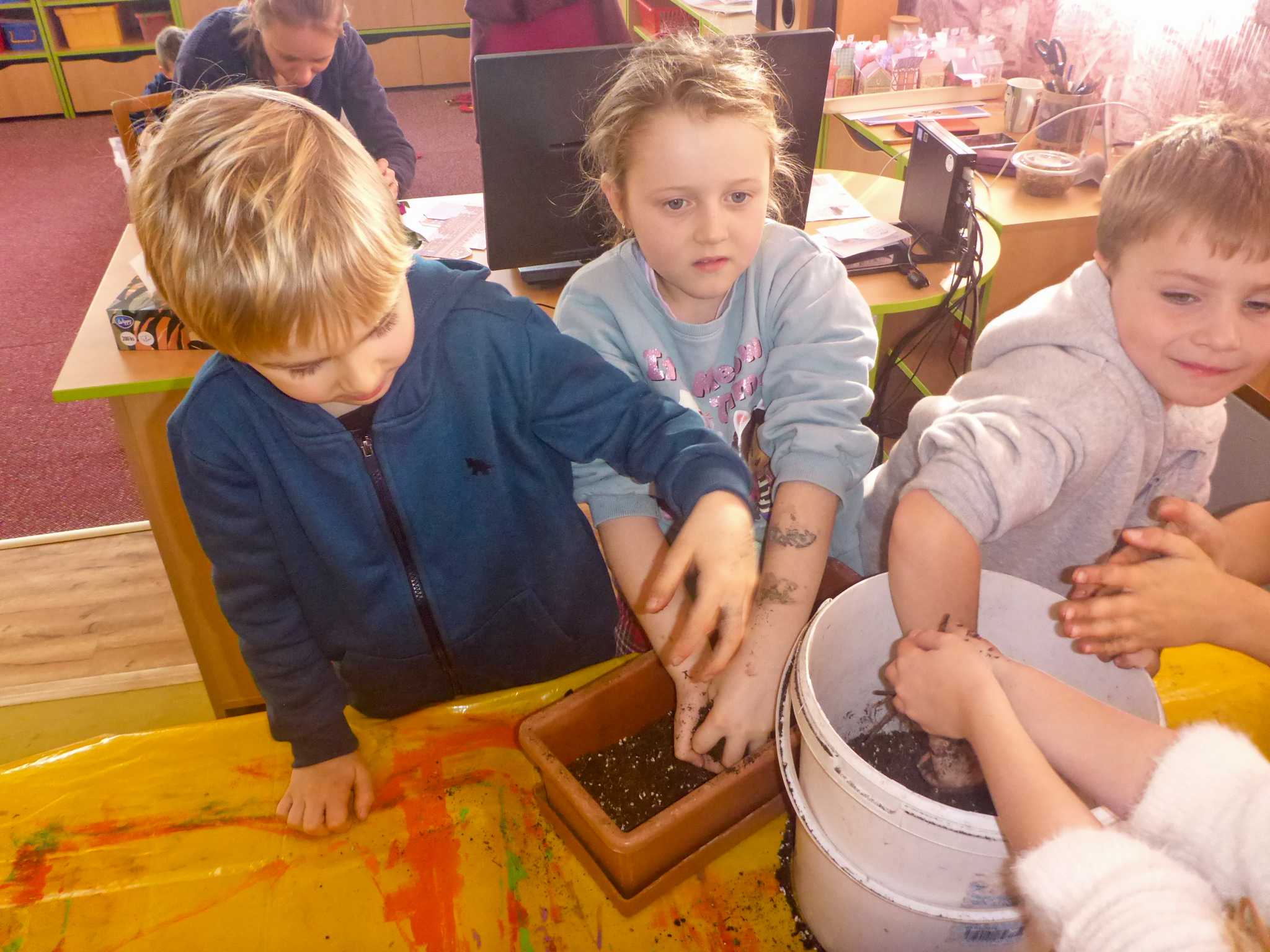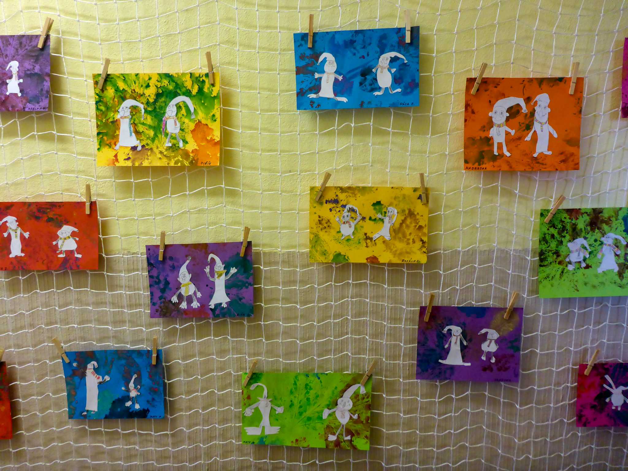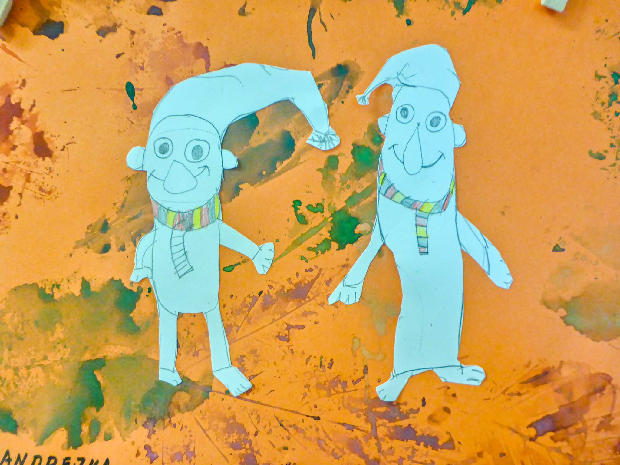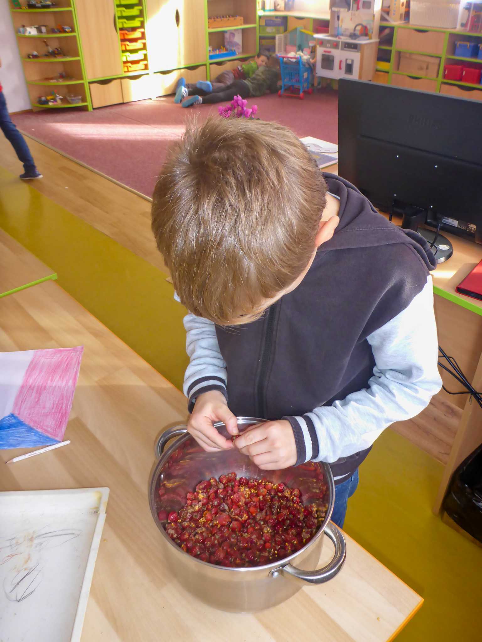 Celý listopad nás provázeli Křemílek s Vochomůrkou. Vytvořili jsme koláž obou postaviček na pozadí z otisků podzimních listů. Četly se jako obvykle příběhy z knihy "Z mechu a kapradí". Zasadili jsme podle příběhu semínka, zalévali je a pozorovali jejich růst. Na vycházce nás čekalo trhání šípků a samozřejmě vaření šípkového čaje. S medem byl vynikající. Pro zábavu se průběžně hrálo pohádkové kvarteto.
