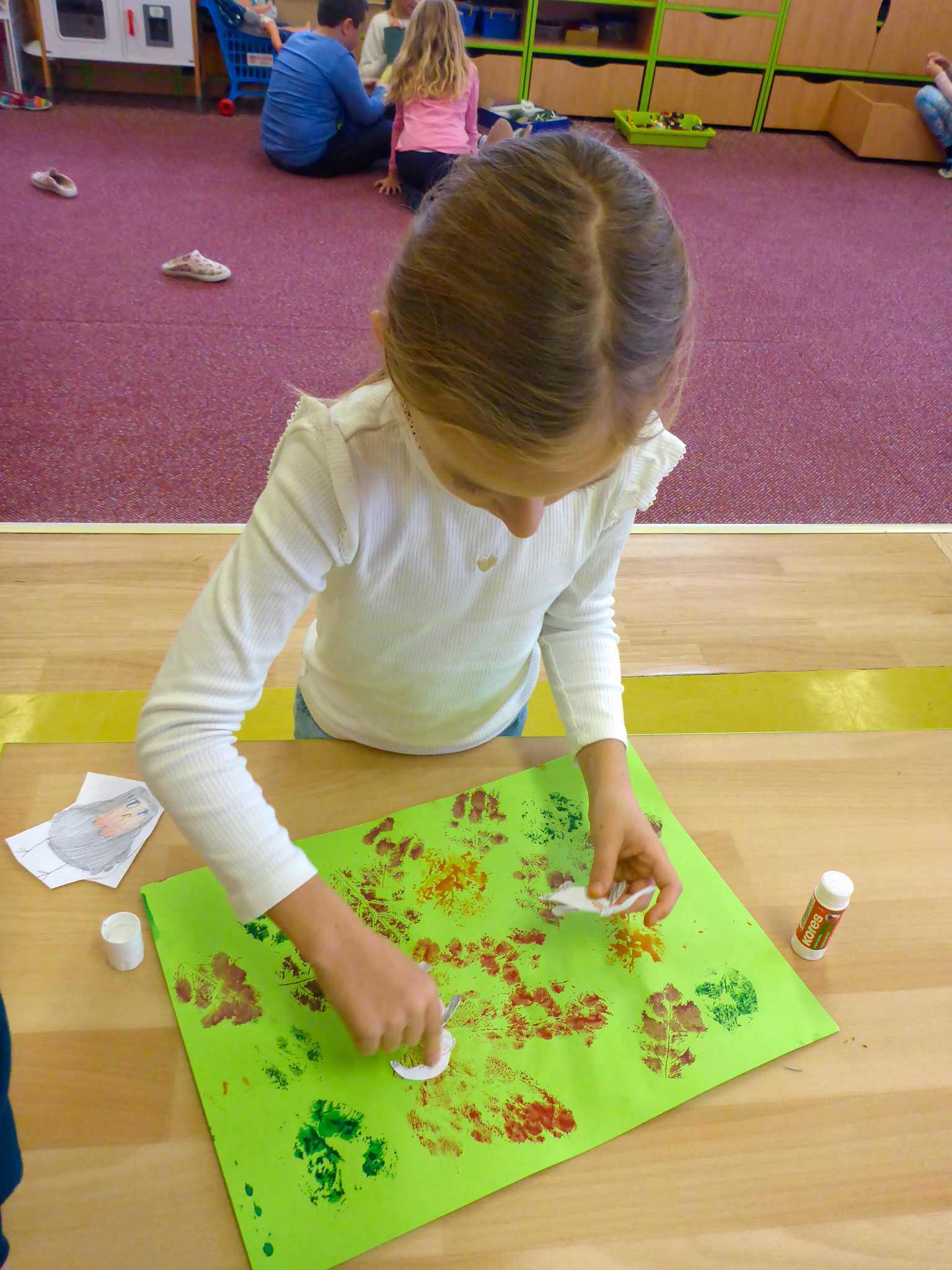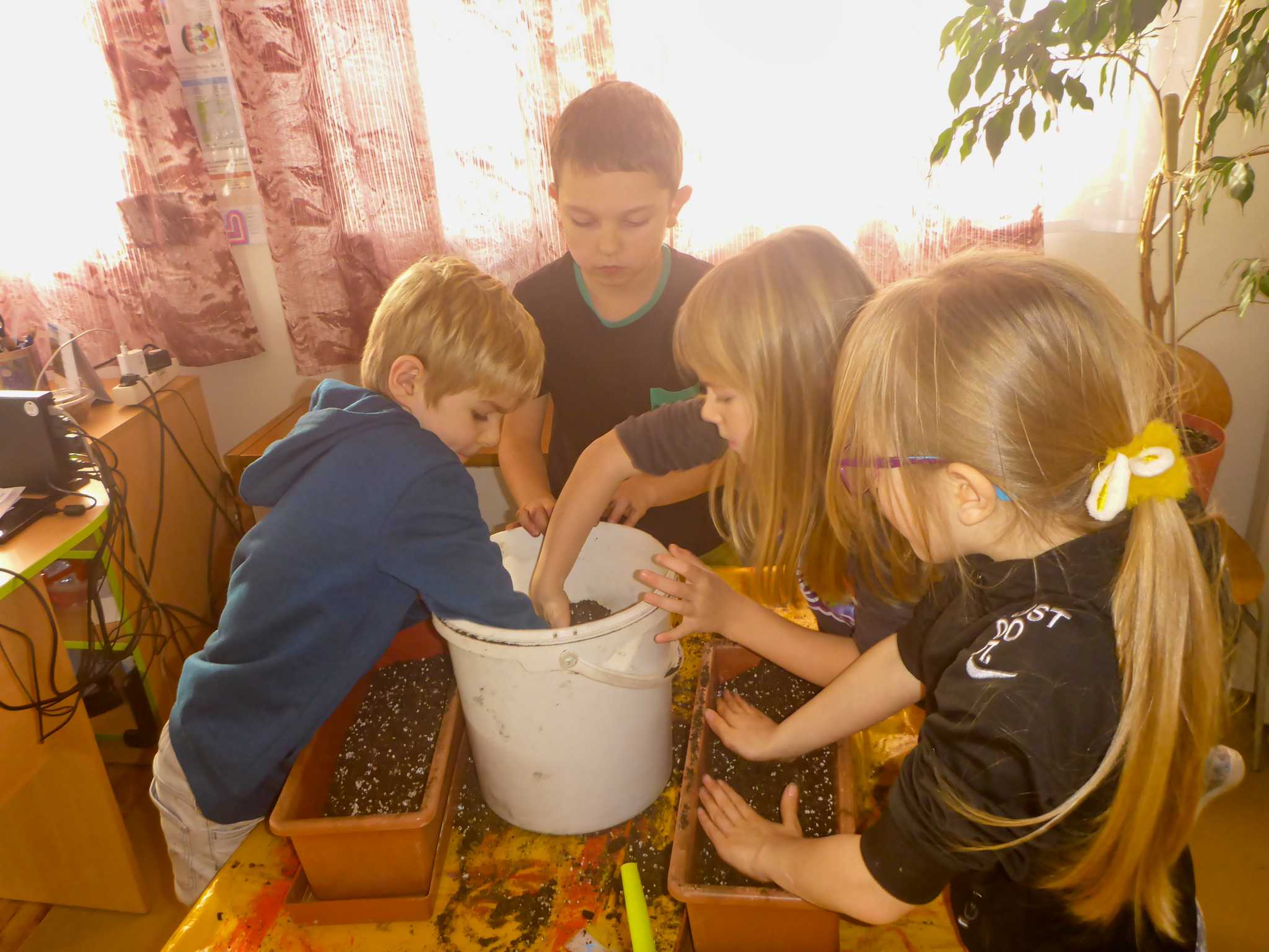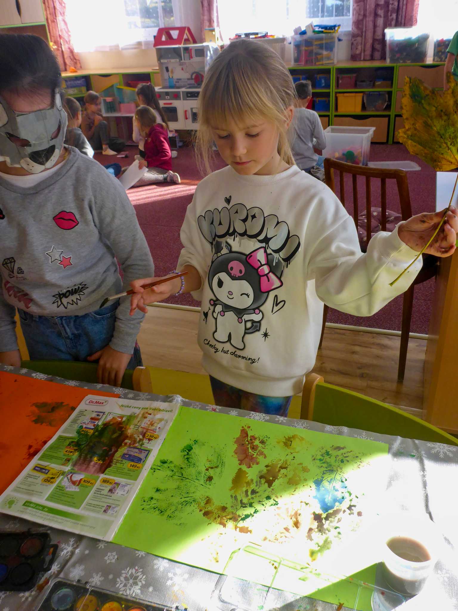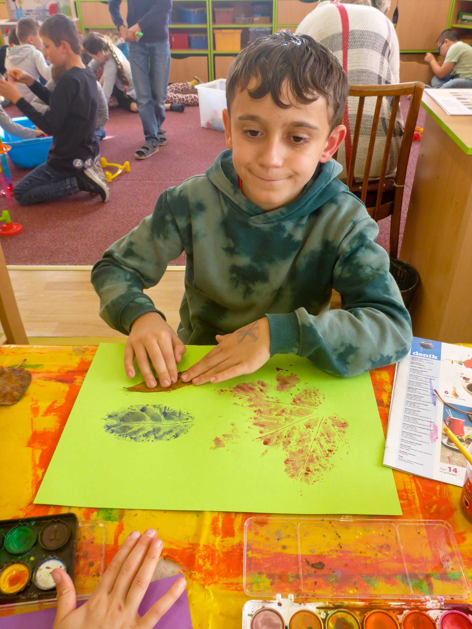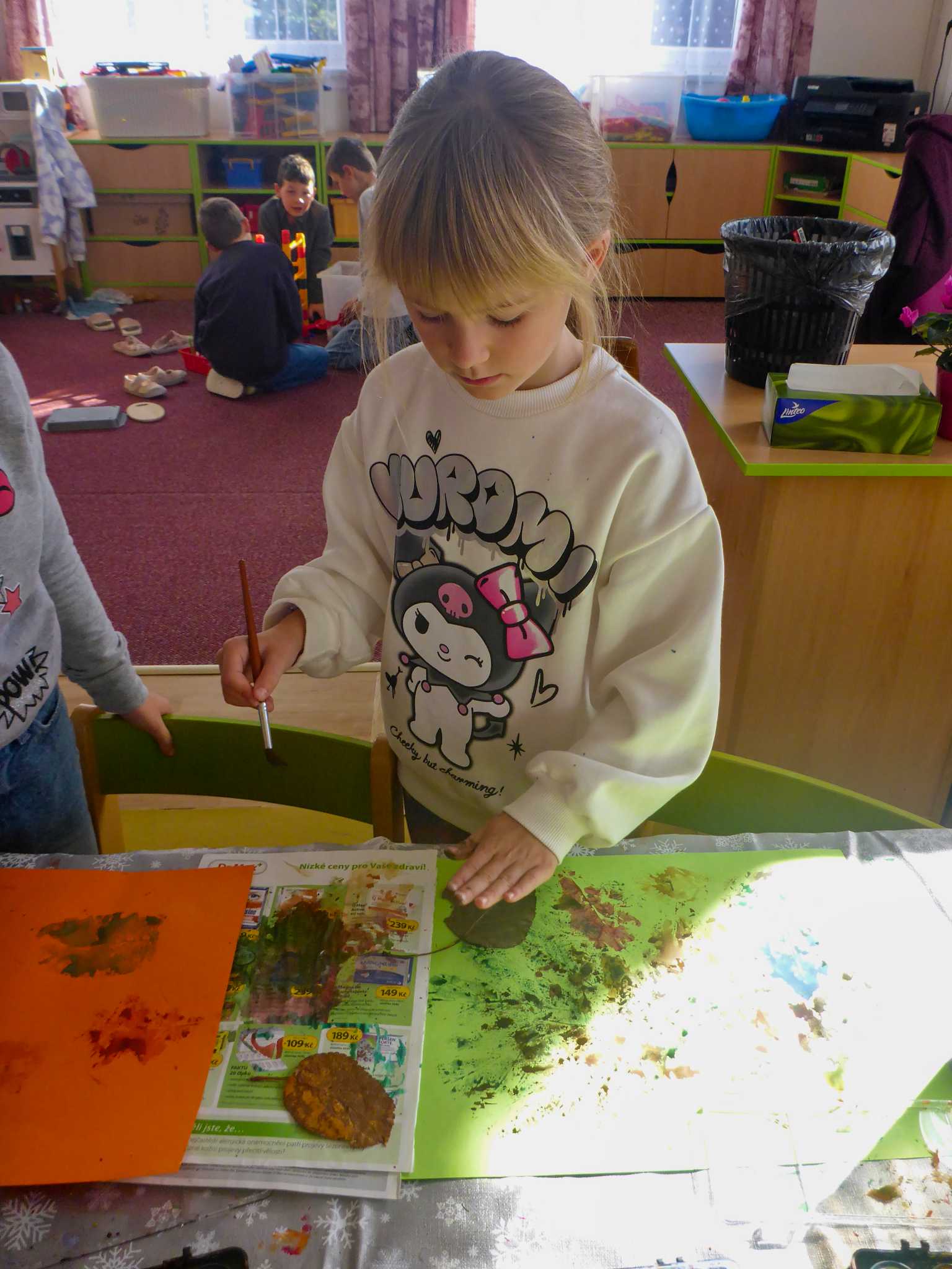 Celý listopad nás provázeli Křemílek s Vochomůrkou. Vytvořili jsme koláž obou postaviček na pozadí z otisků podzimních listů. Četly se jako obvykle příběhy z knihy "Z mechu a kapradí". Zasadili jsme podle příběhu semínka, zalévali je a pozorovali jejich růst. Na vycházce nás čekalo trhání šípků a samozřejmě vaření šípkového čaje. S medem byl vynikající. Pro zábavu se průběžně hrálo pohádkové kvarteto.