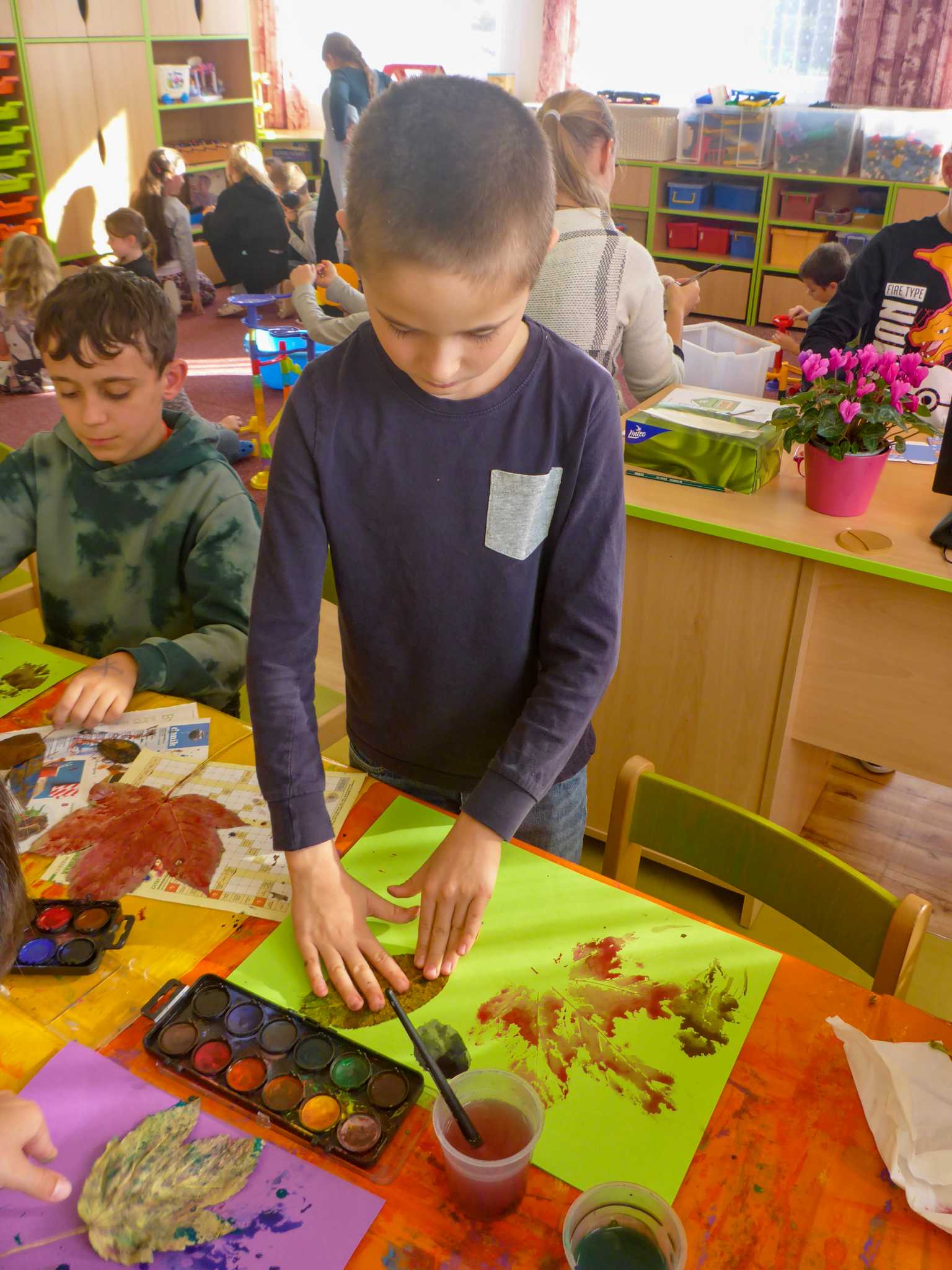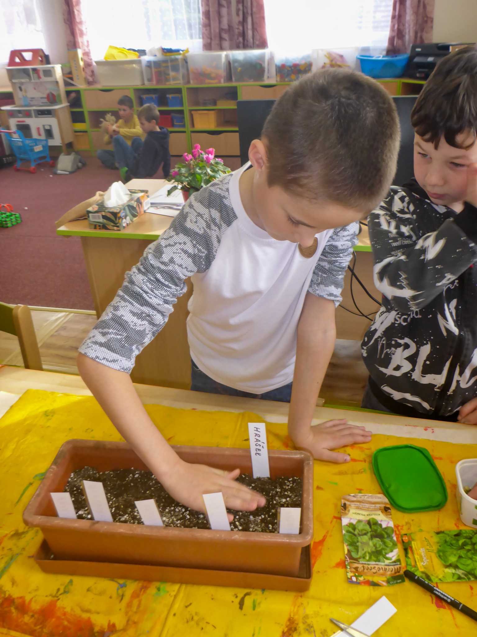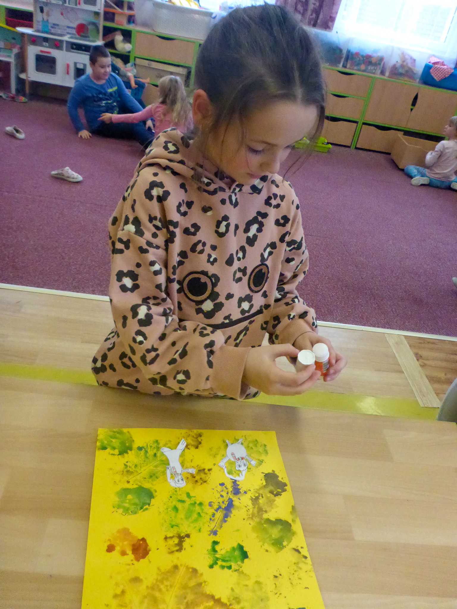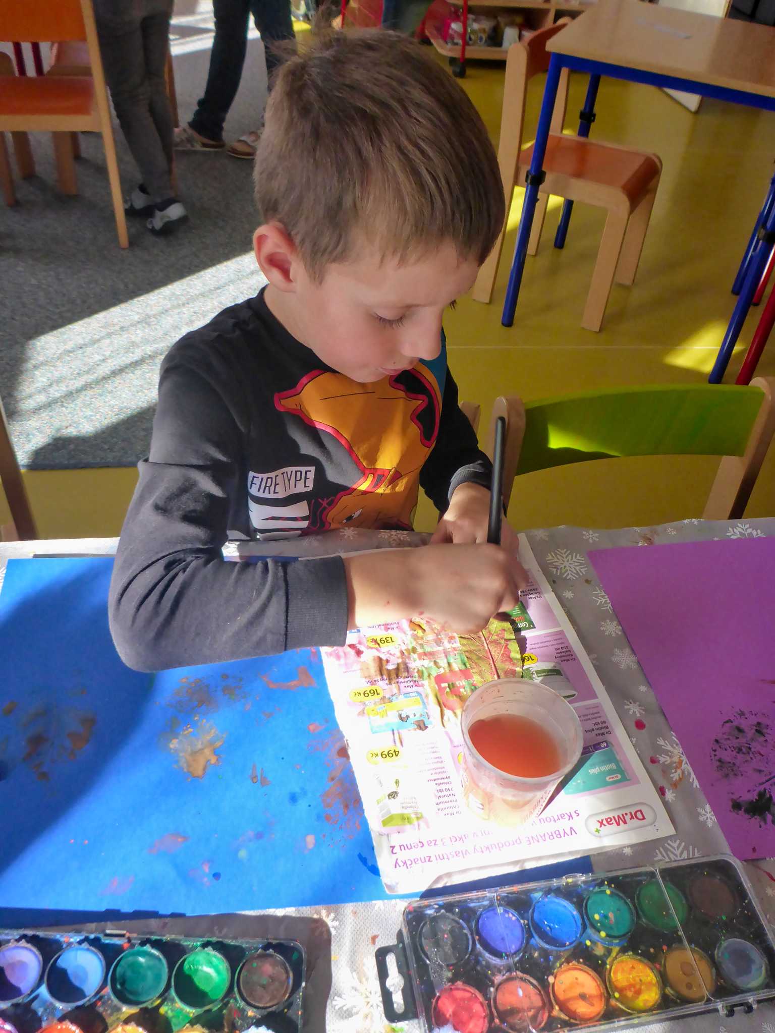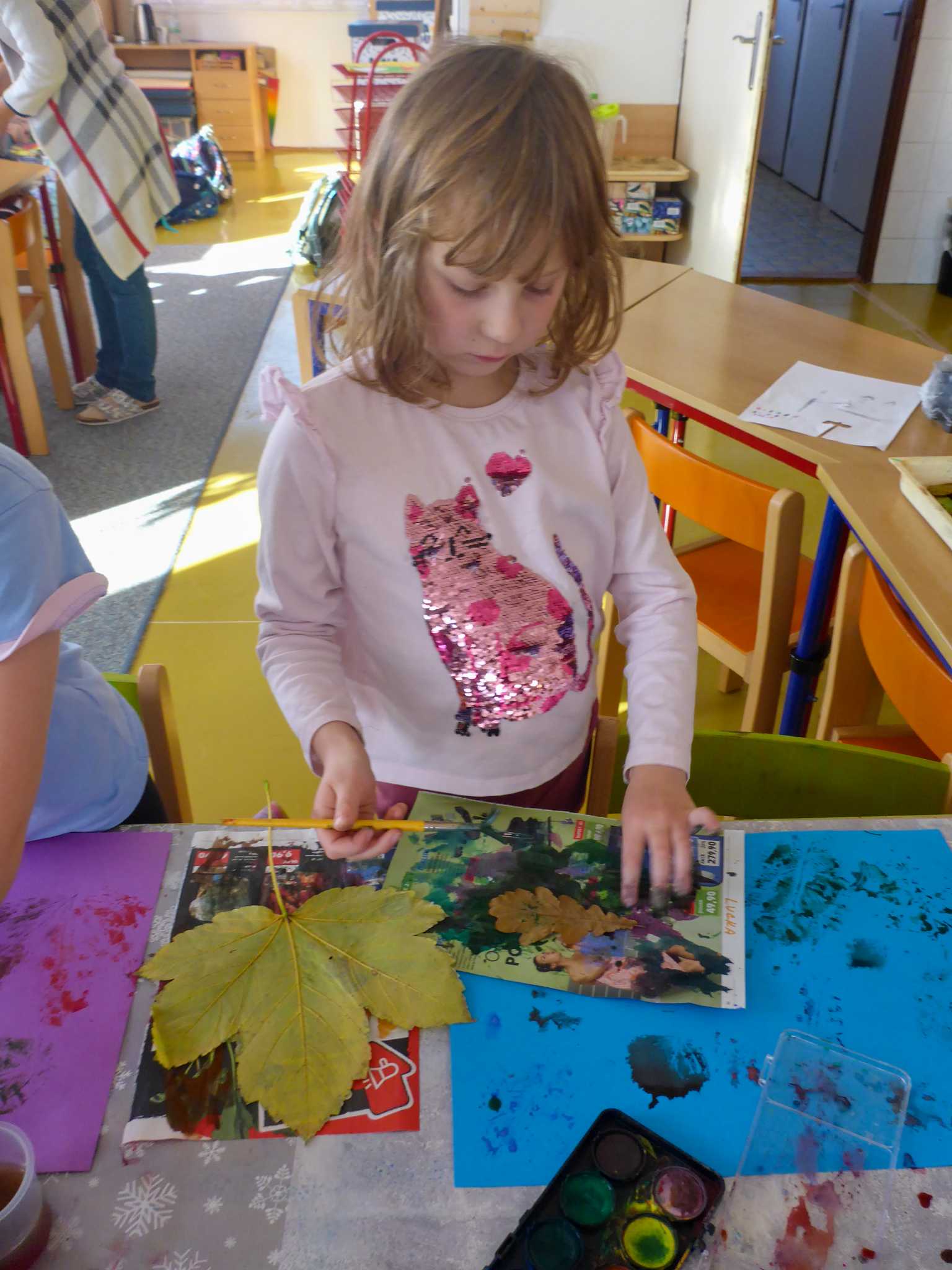Celý listopad nás provázeli Křemílek s Vochomůrkou. Vytvořili jsme koláž obou postaviček na pozadí z otisků podzimních listů. Četly se jako obvykle příběhy z knihy "Z mechu a kapradí". Zasadili jsme podle příběhu semínka, zalévali je a pozorovali jejich růst. Na vycházce nás čekalo trhání šípků a samozřejmě vaření šípkového čaje. S medem byl vynikající. Pro zábavu se průběžně hrálo pohádkové kvarteto.