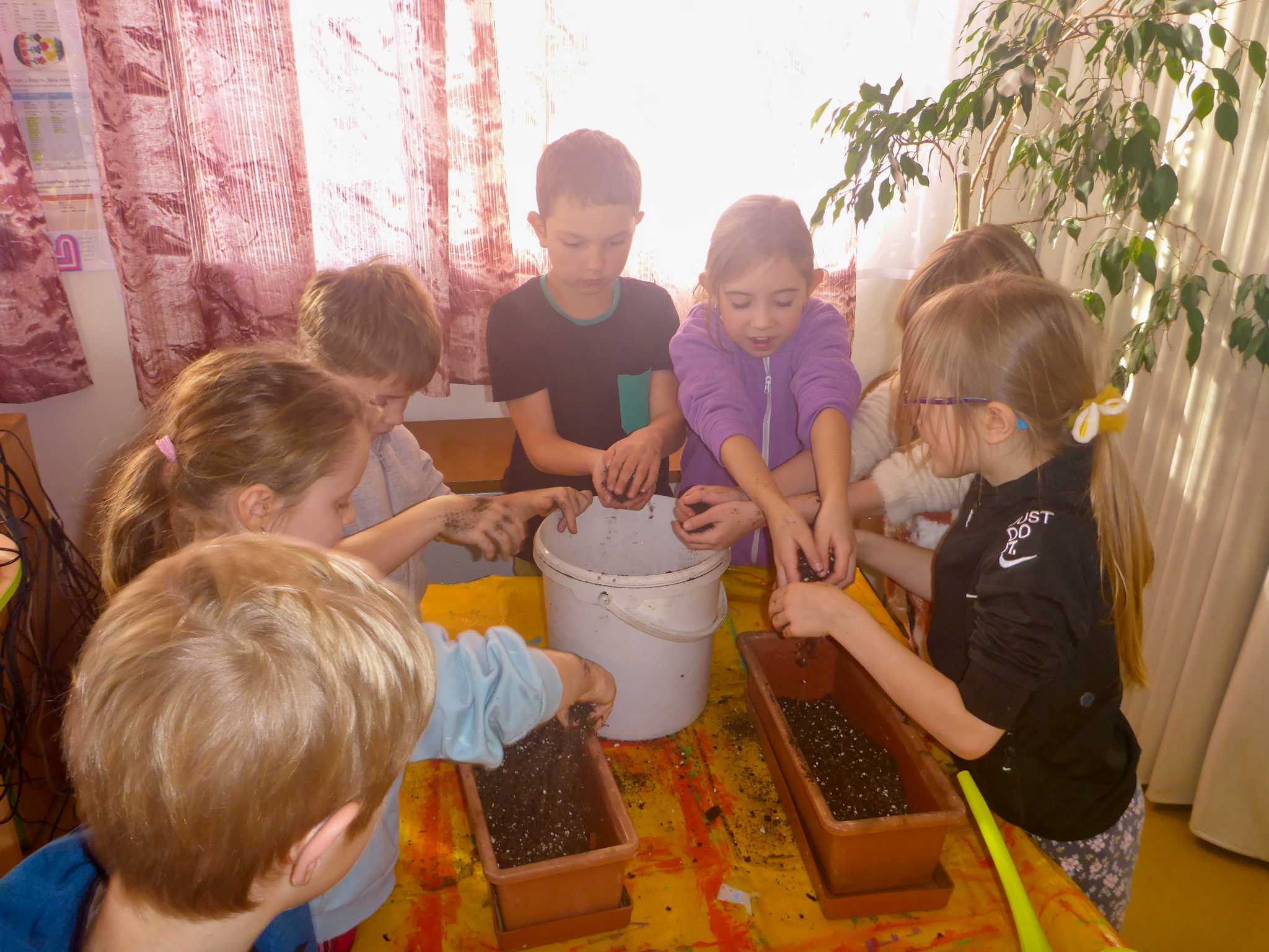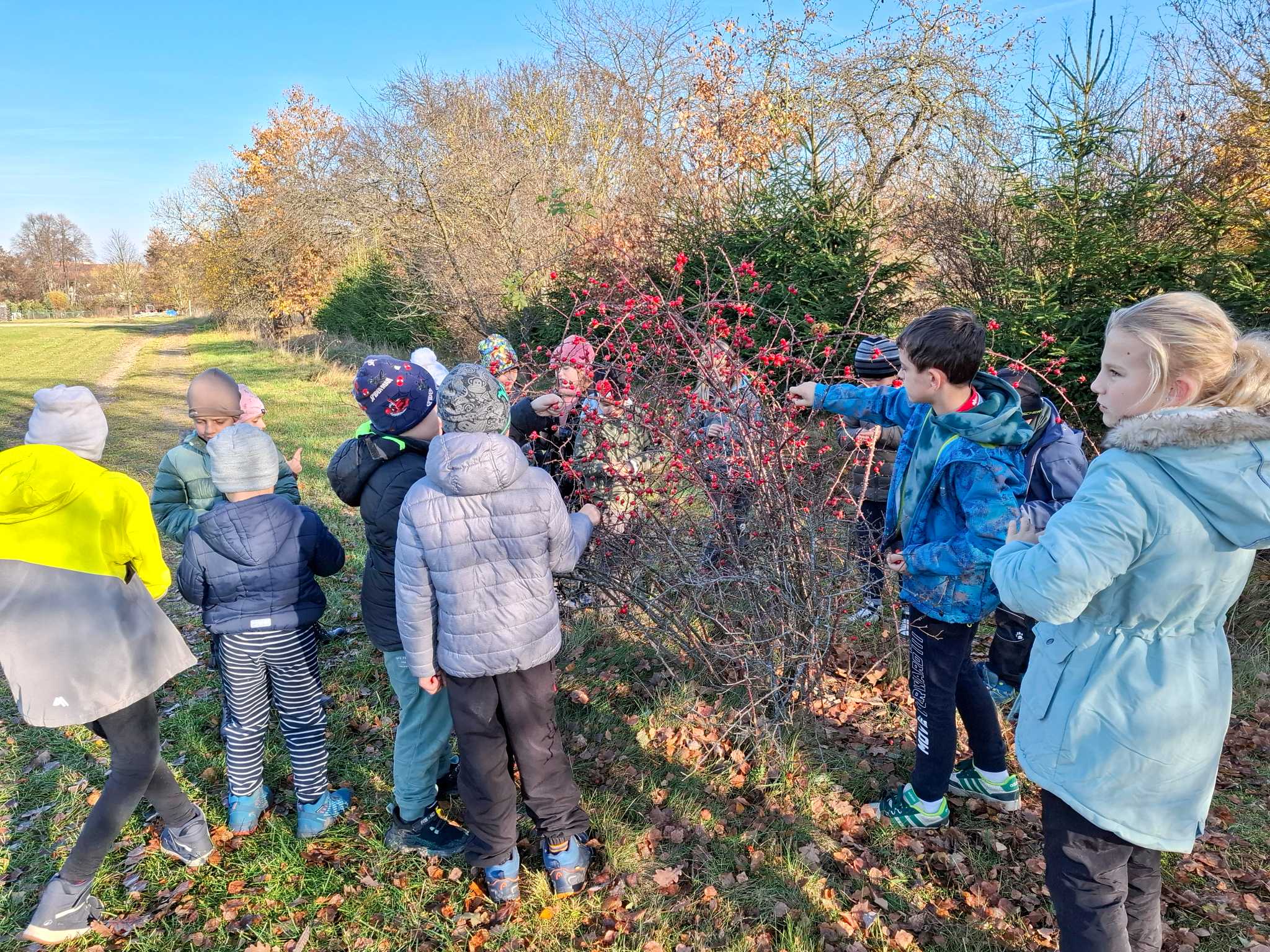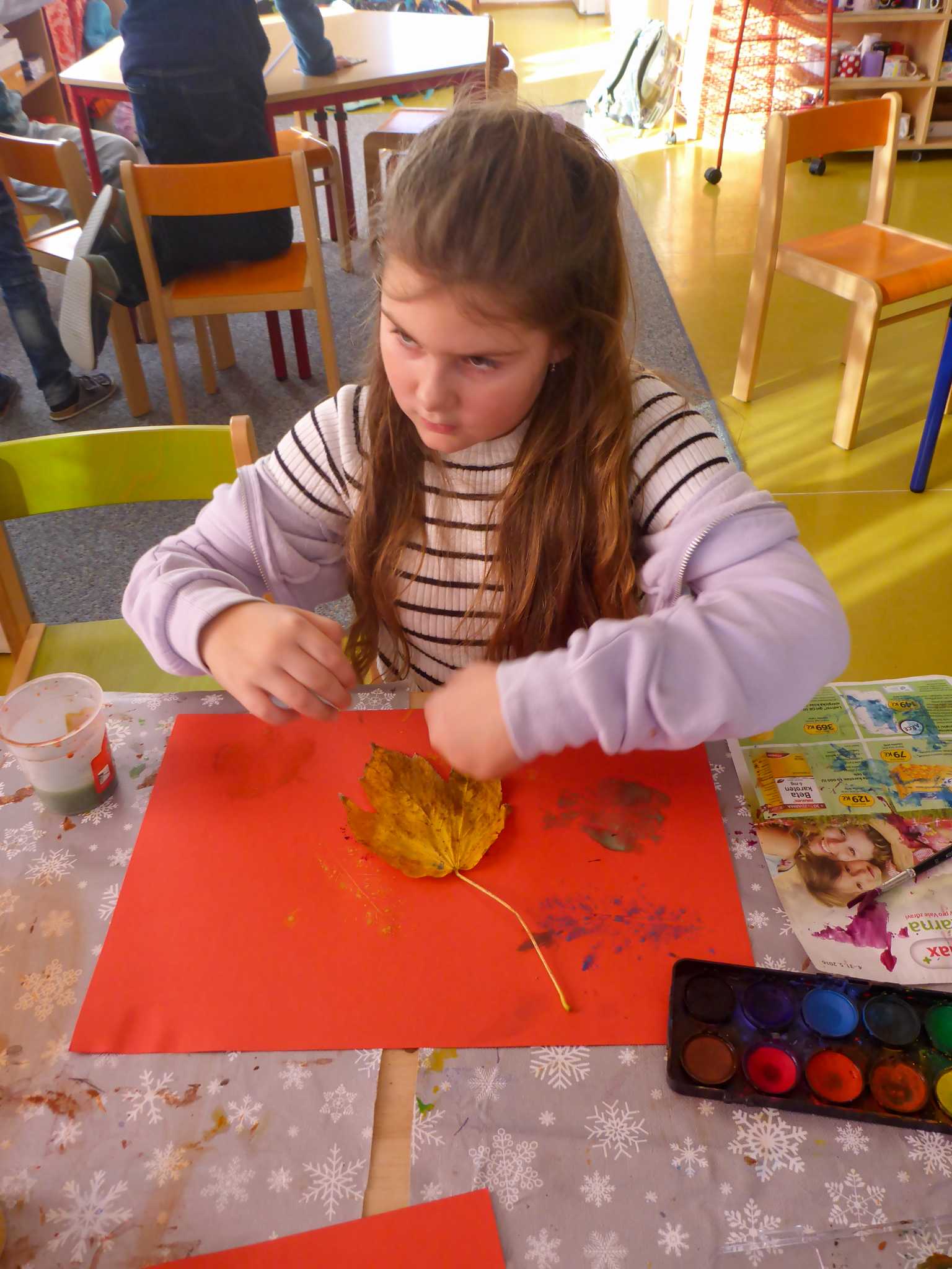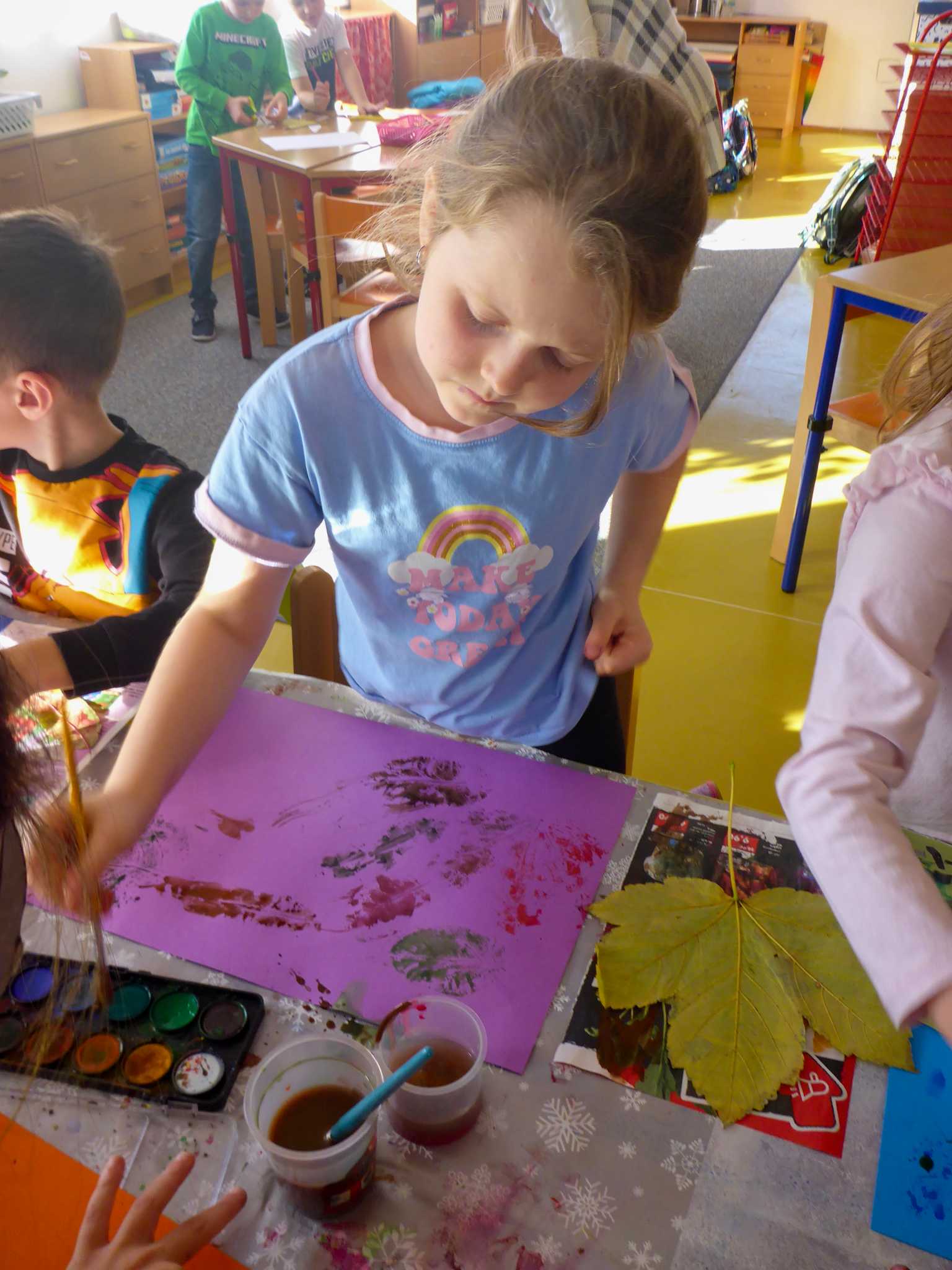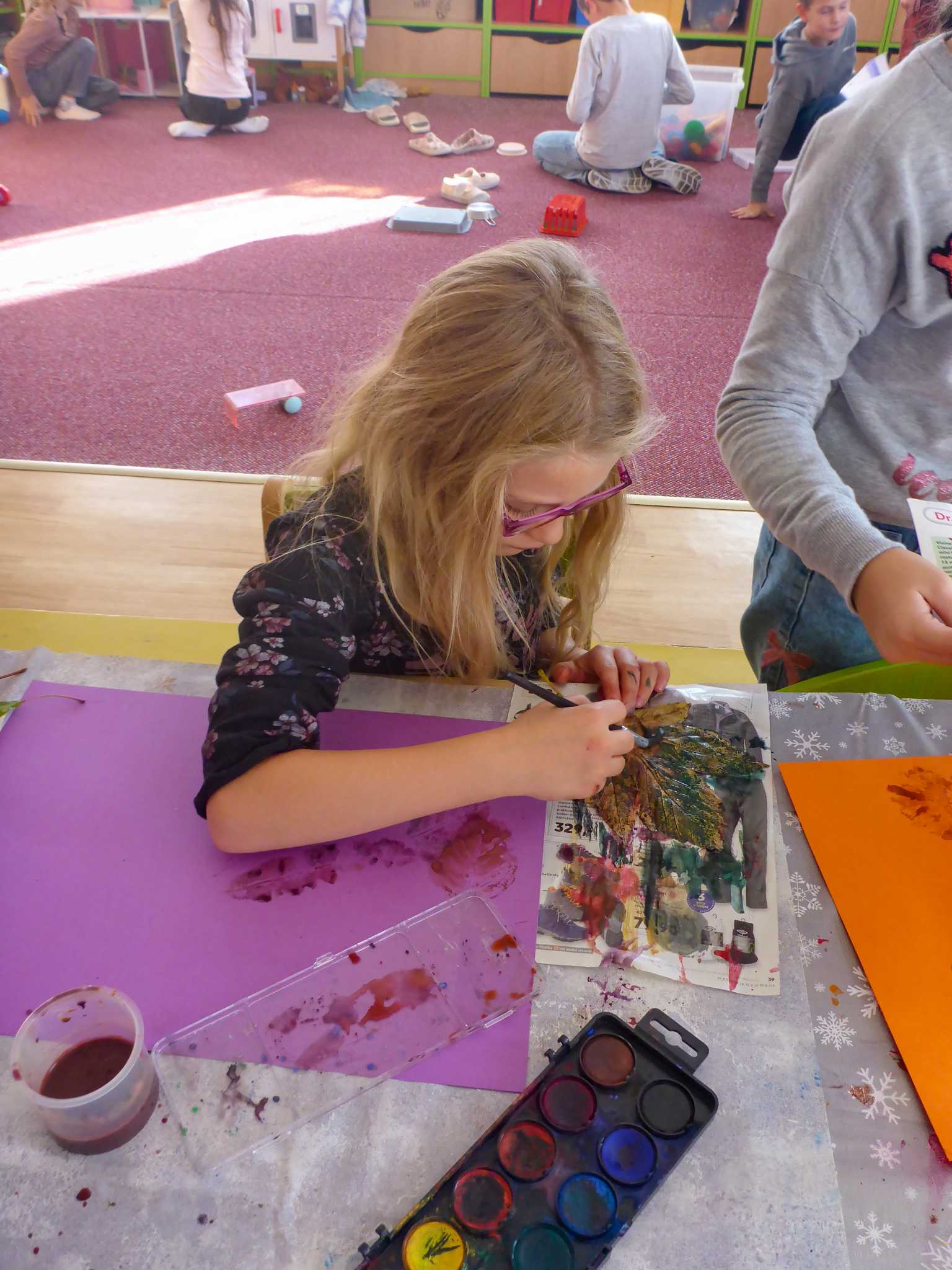 Celý listopad nás provázeli Křemílek s Vochomůrkou. Vytvořili jsme koláž obou postaviček na pozadí z otisků podzimních listů. Četly se jako obvykle příběhy z knihy "Z mechu a kapradí". Zasadili jsme podle příběhu semínka, zalévali je a pozorovali jejich růst. Na vycházce nás čekalo trhání šípků a samozřejmě vaření šípkového čaje. S medem byl vynikající. Pro zábavu se průběžně hrálo pohádkové kvarteto.