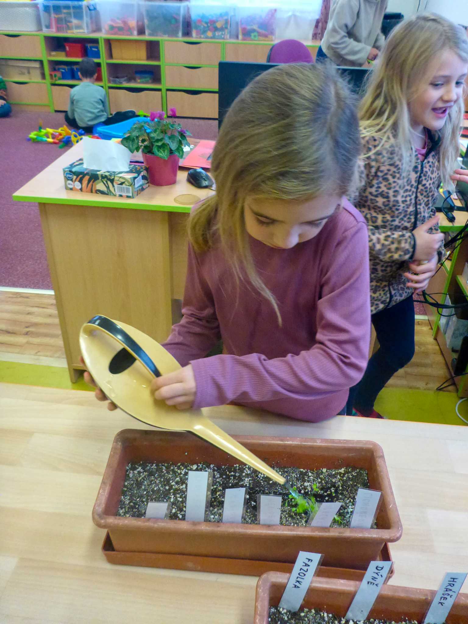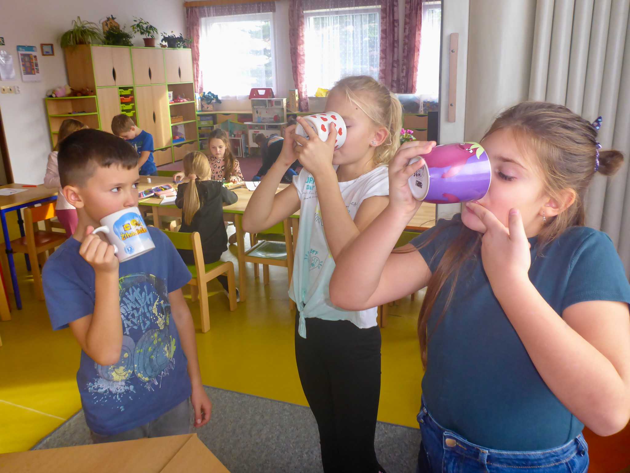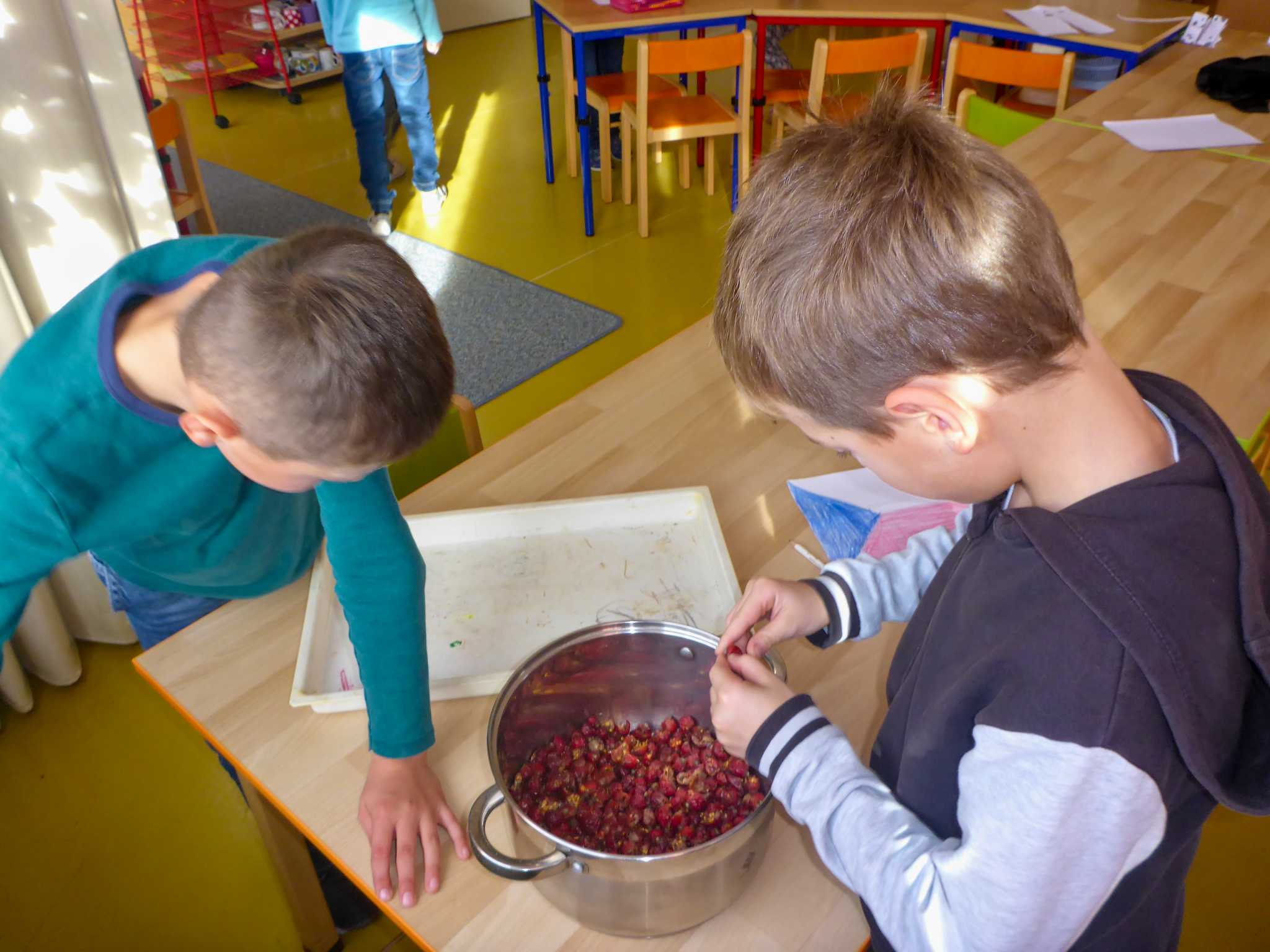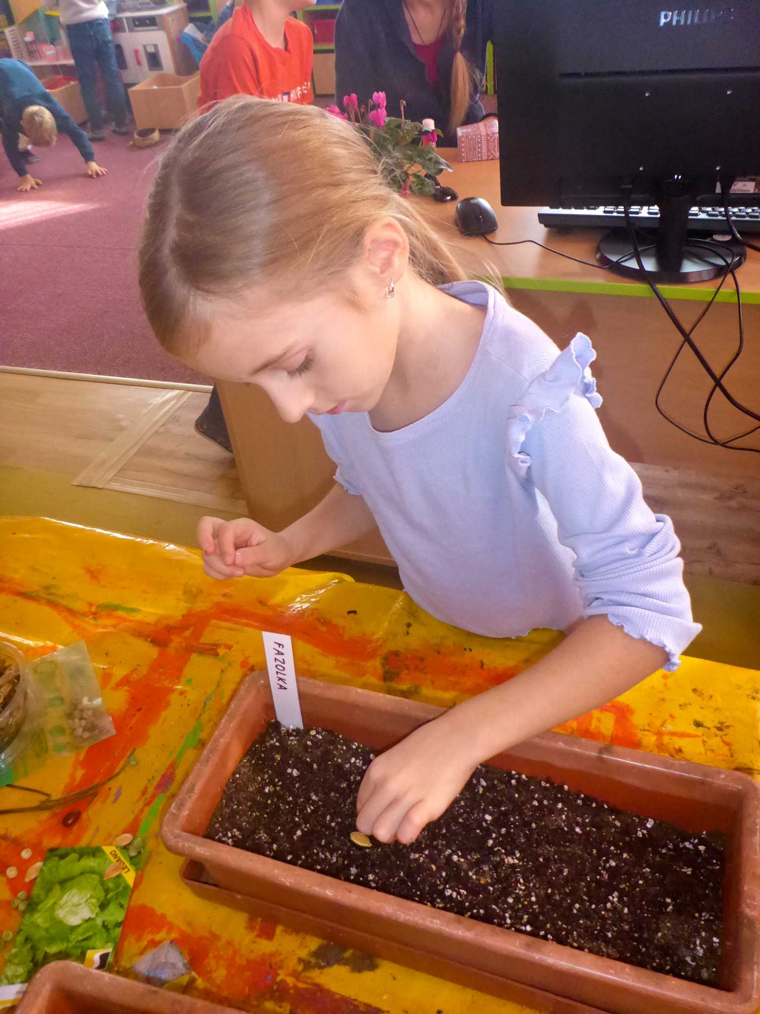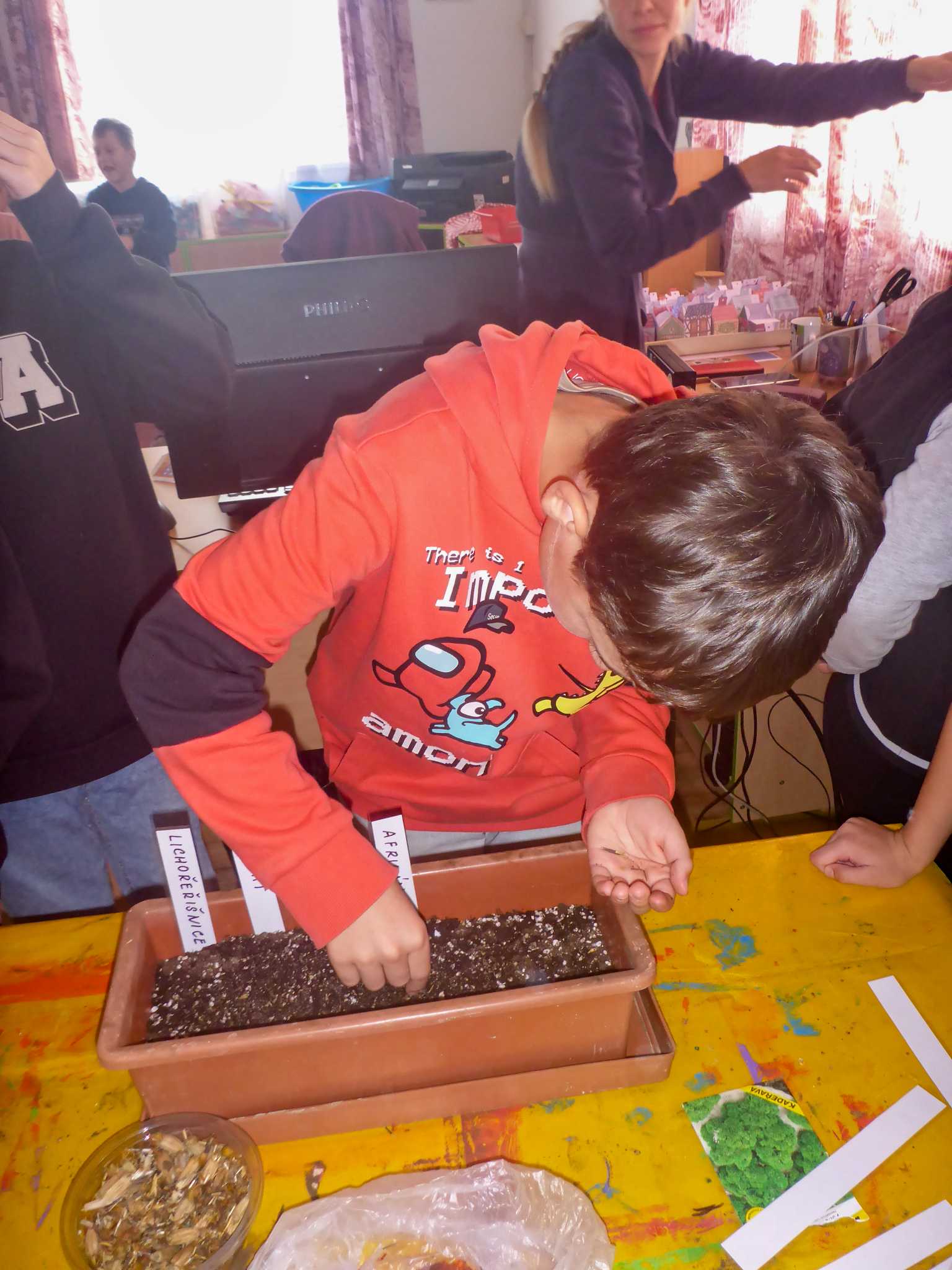 Celý listopad nás provázeli Křemílek s Vochomůrkou. Vytvořili jsme koláž obou postaviček na pozadí z otisků podzimních listů. Četly se jako obvykle příběhy z knihy "Z mechu a kapradí". Zasadili jsme podle příběhu semínka, zalévali je a pozorovali jejich růst. Na vycházce nás čekalo trhání šípků a samozřejmě vaření šípkového čaje. S medem byl vynikající. Pro zábavu se průběžně hrálo pohádkové kvarteto.