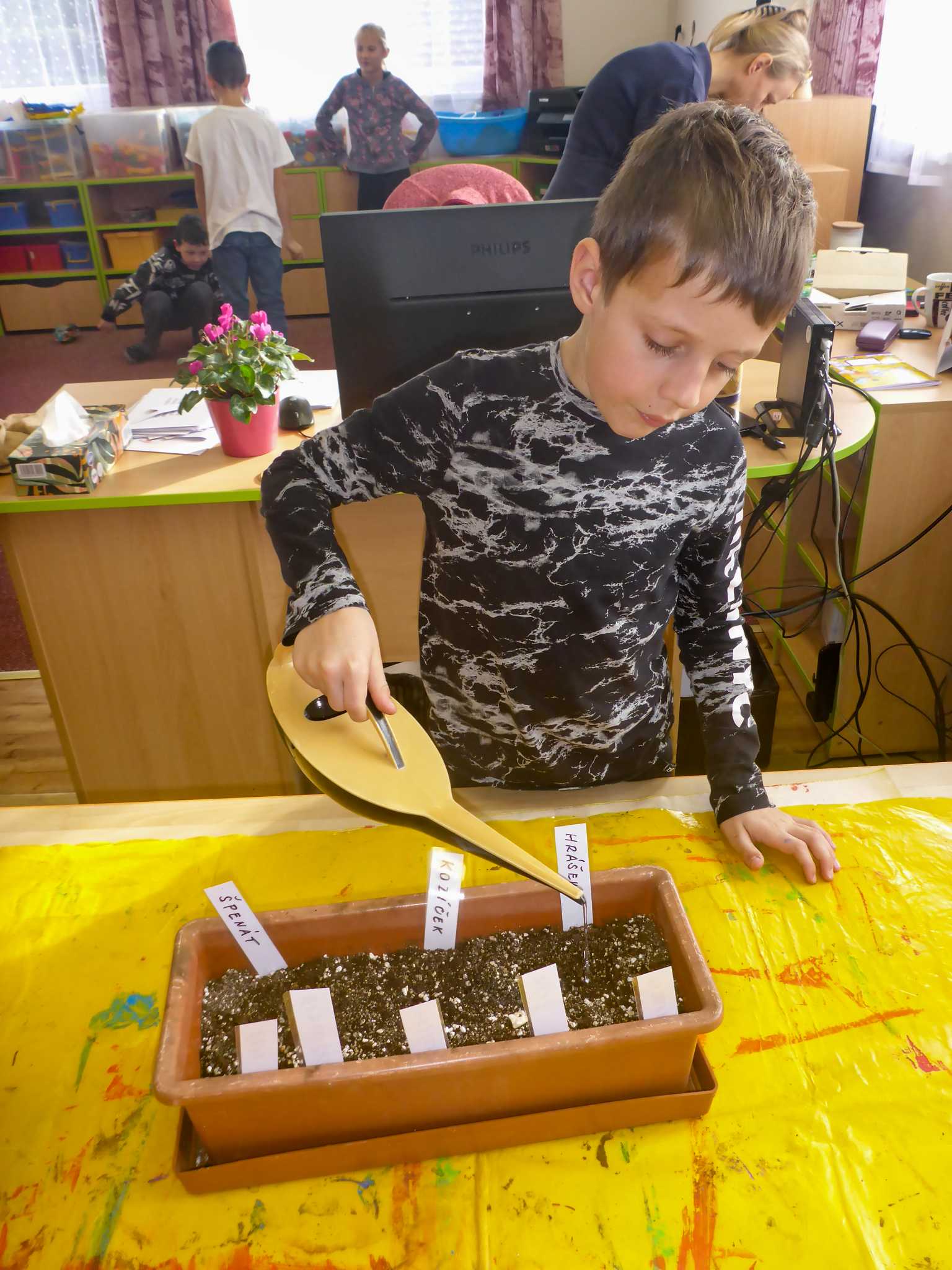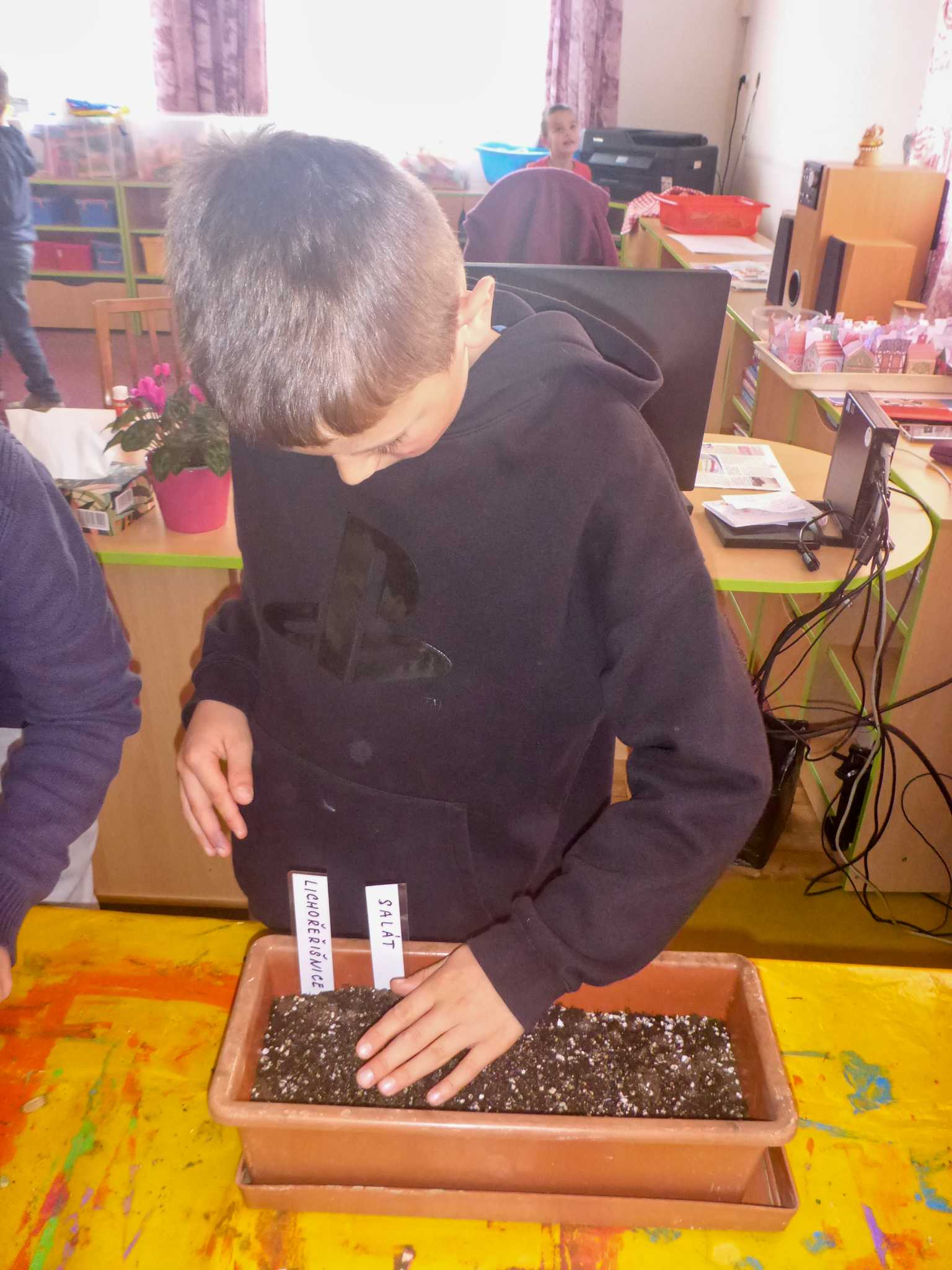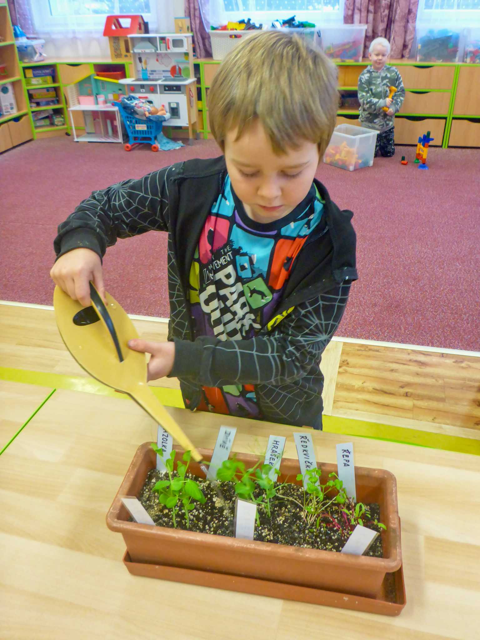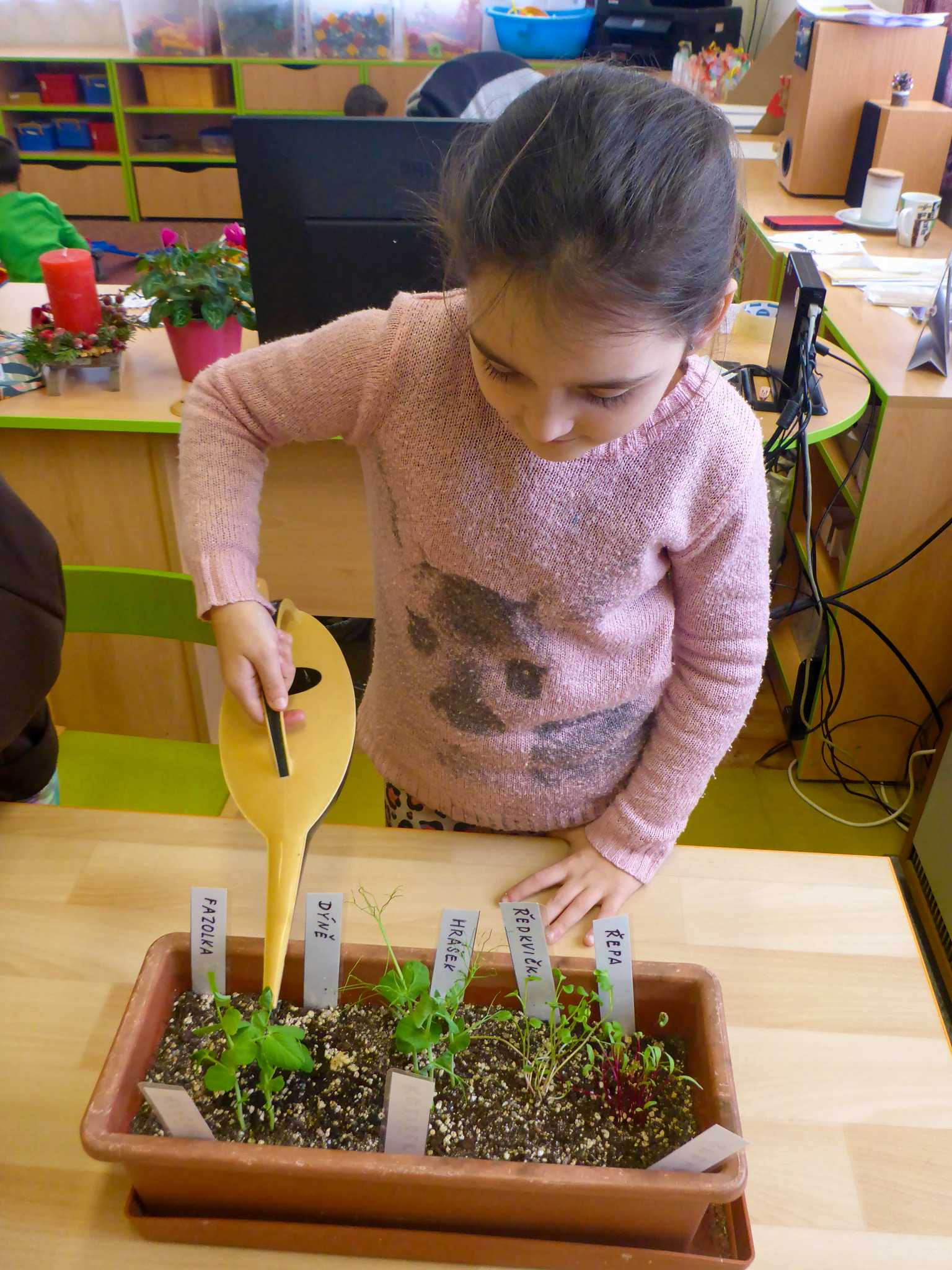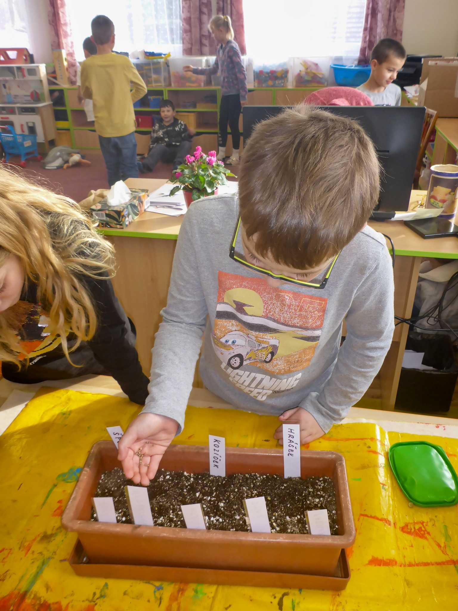 Celý listopad nás provázeli Křemílek s Vochomůrkou. Vytvořili jsme koláž obou postaviček na pozadí z otisků podzimních listů. Četly se jako obvykle příběhy z knihy "Z mechu a kapradí". Zasadili jsme podle příběhu semínka, zalévali je a pozorovali jejich růst. Na vycházce nás čekalo trhání šípků a samozřejmě vaření šípkového čaje. S medem byl vynikající. Pro zábavu se průběžně hrálo pohádkové kvarteto.