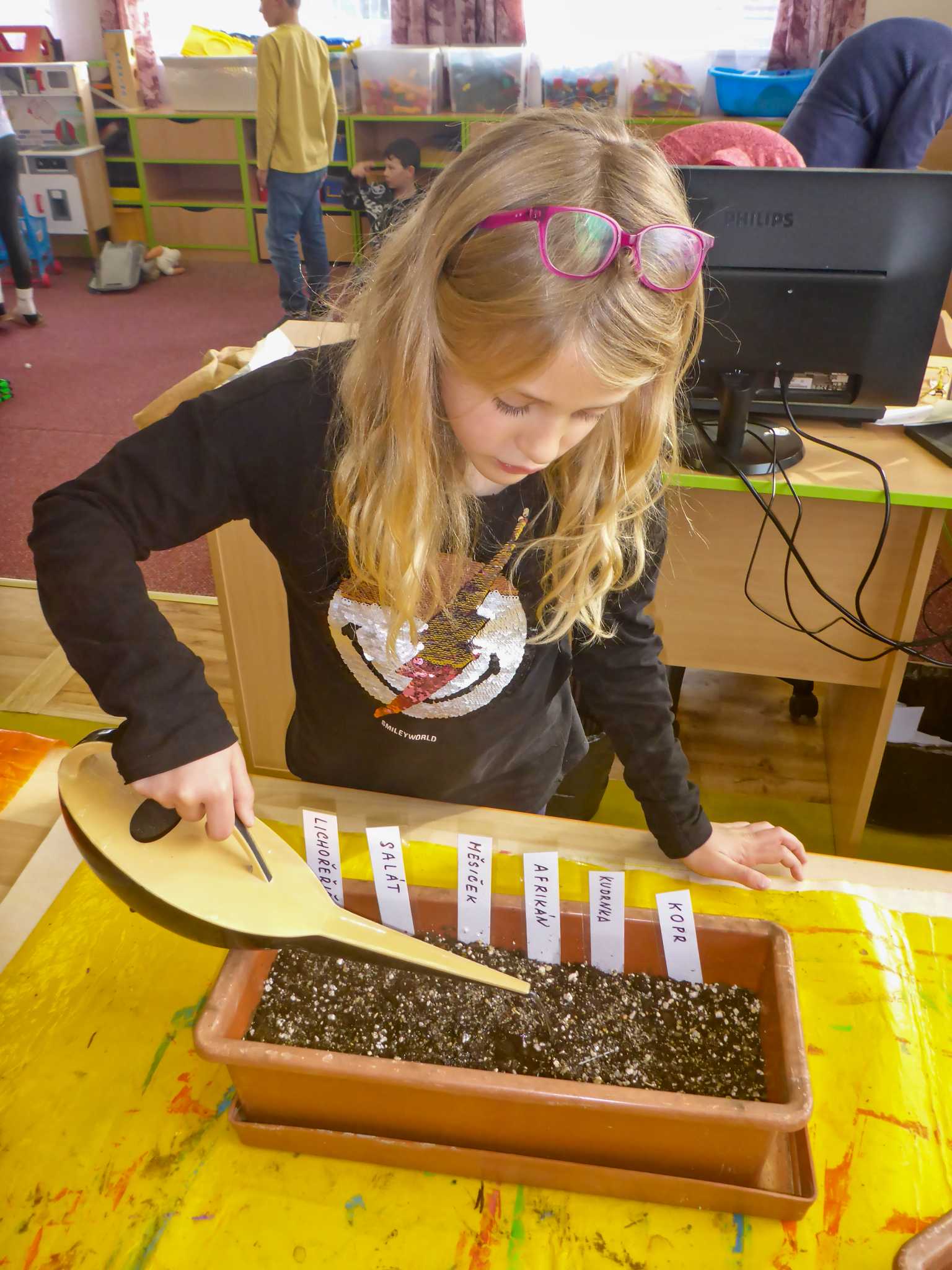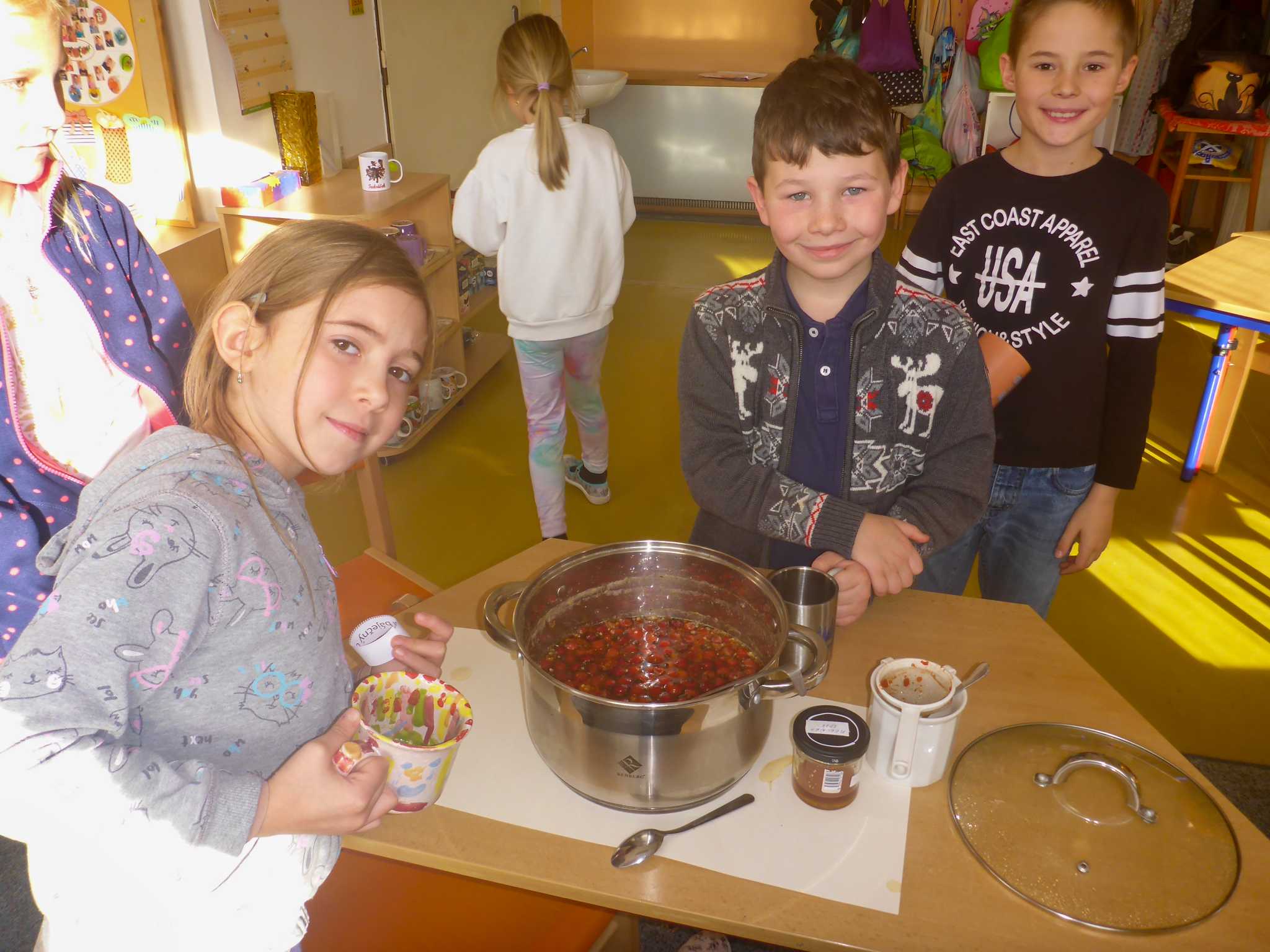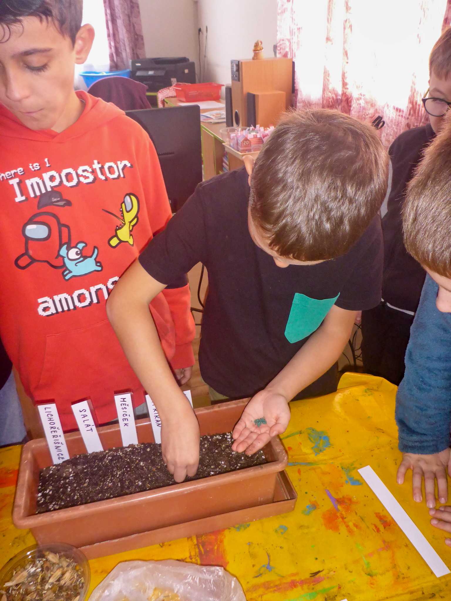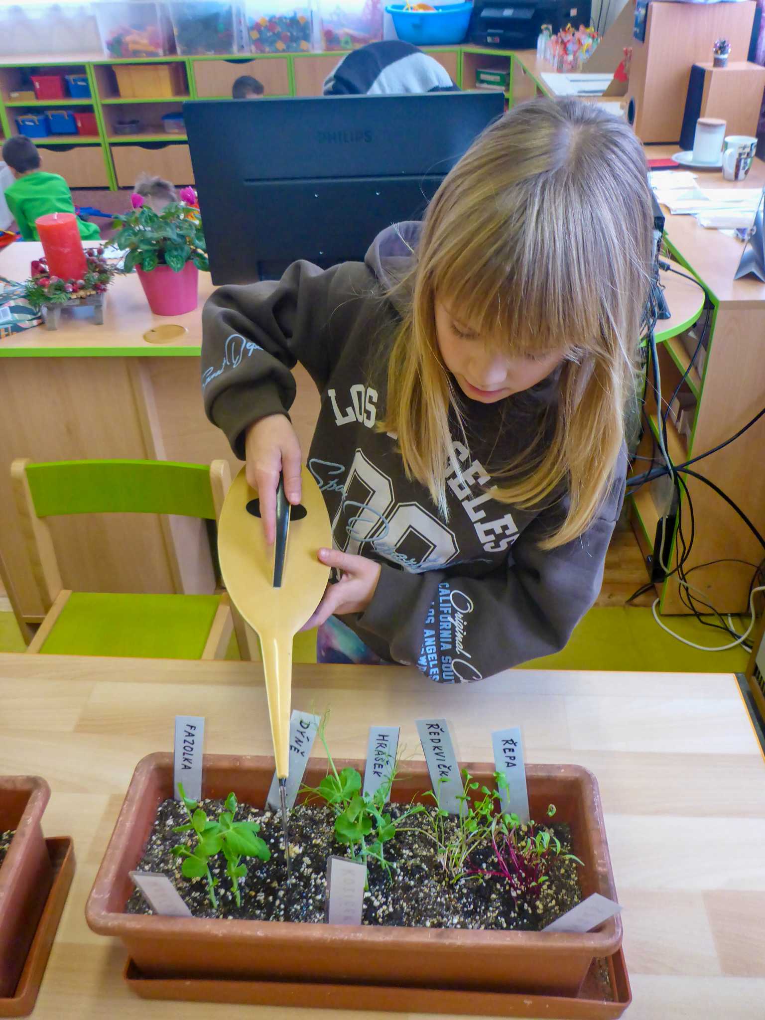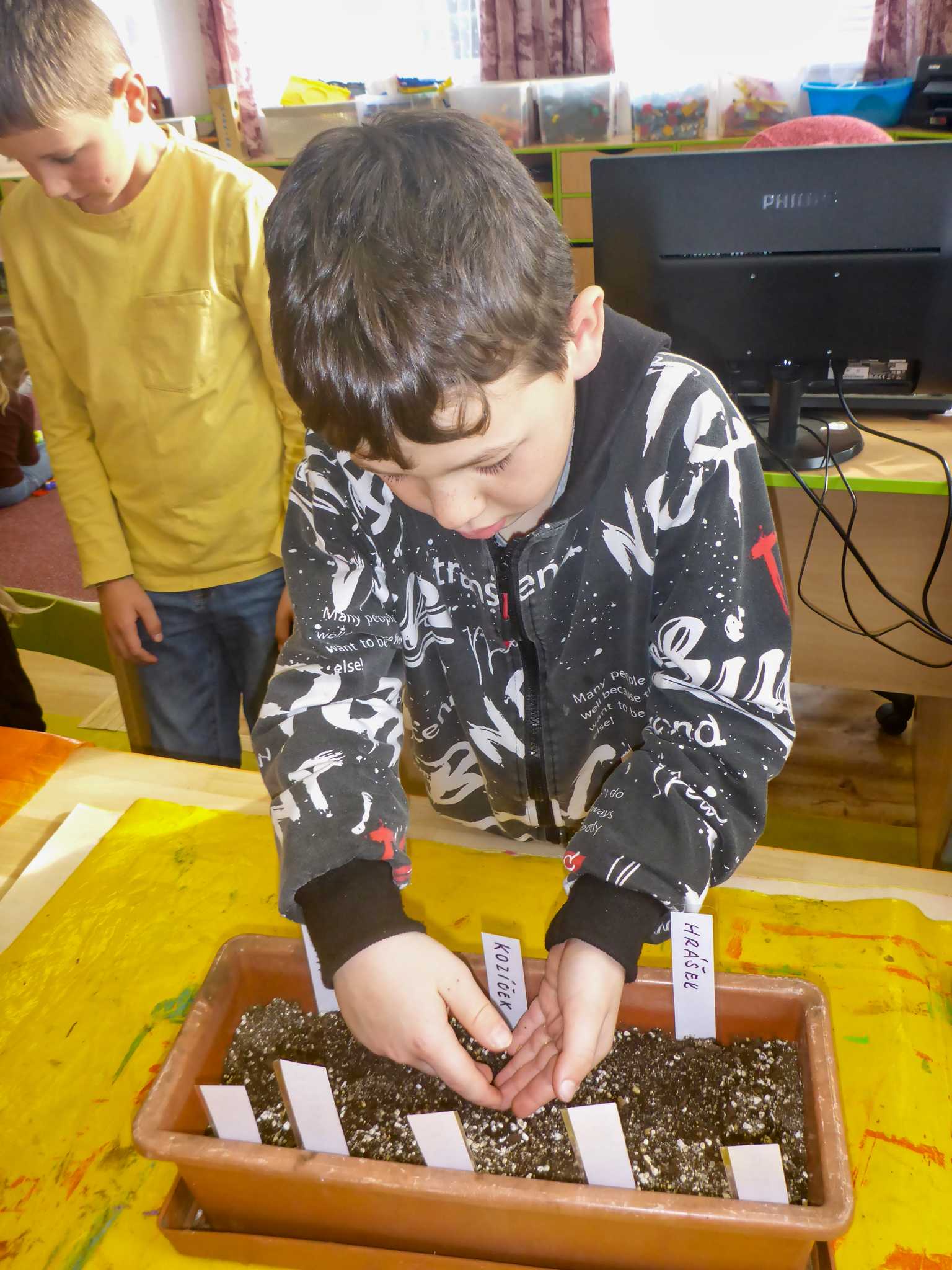 Celý listopad nás provázeli Křemílek s Vochomůrkou. Vytvořili jsme koláž obou postaviček na pozadí z otisků podzimních listů. Četly se jako obvykle příběhy z knihy "Z mechu a kapradí". Zasadili jsme podle příběhu semínka, zalévali je a pozorovali jejich růst. Na vycházce nás čekalo trhání šípků a samozřejmě vaření šípkového čaje. S medem byl vynikající. Pro zábavu se průběžně hrálo pohádkové kvarteto.