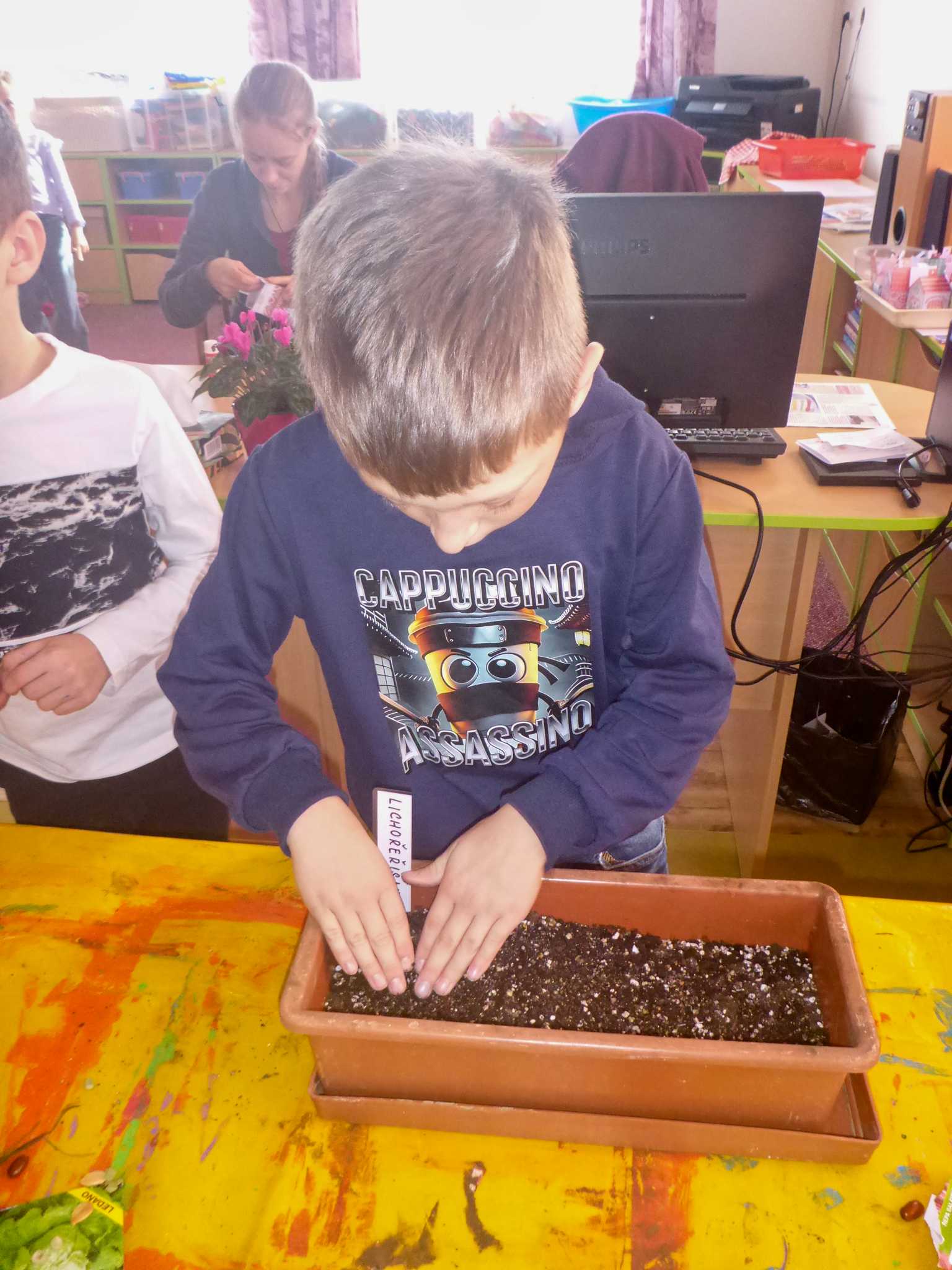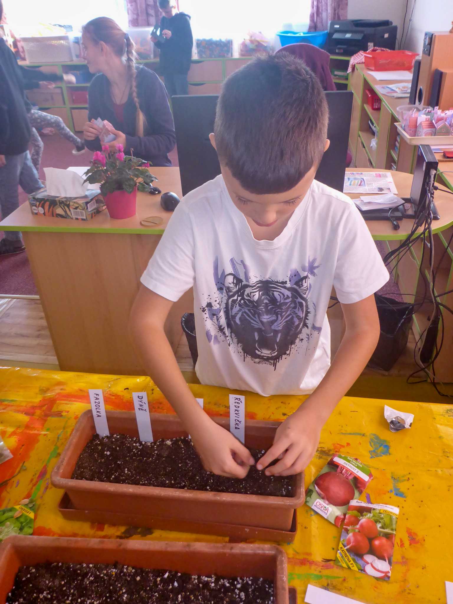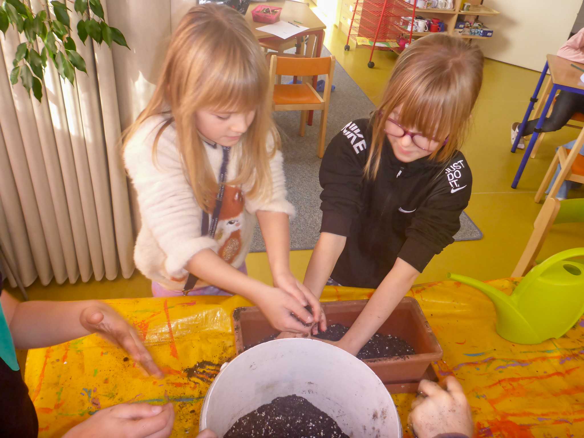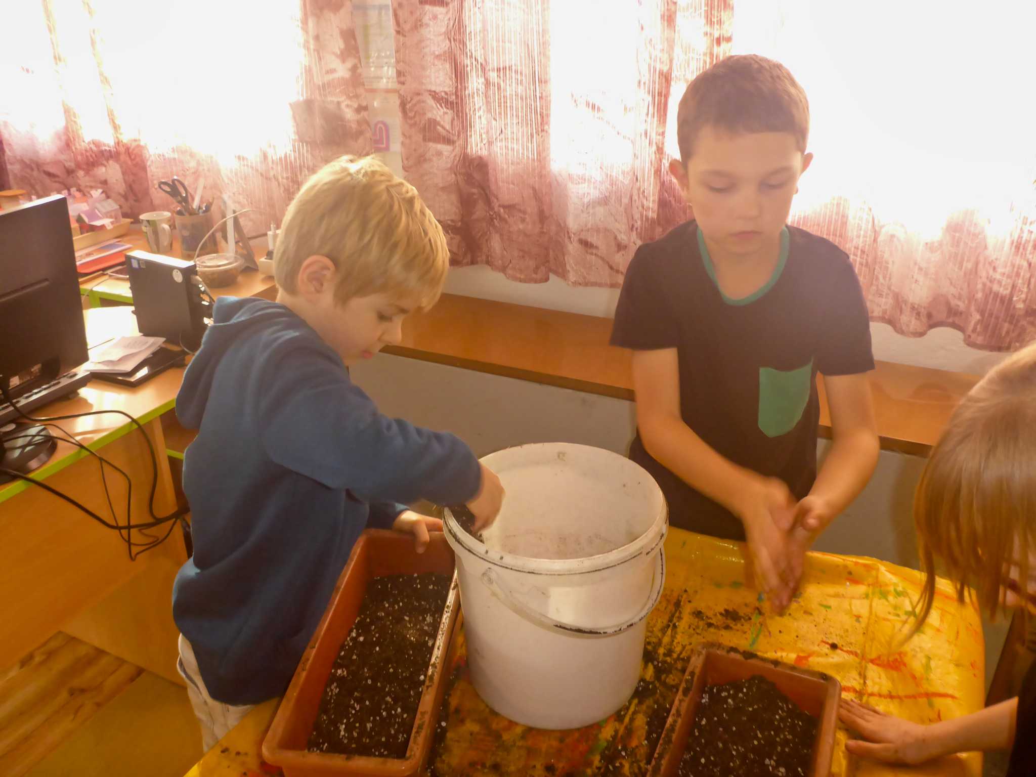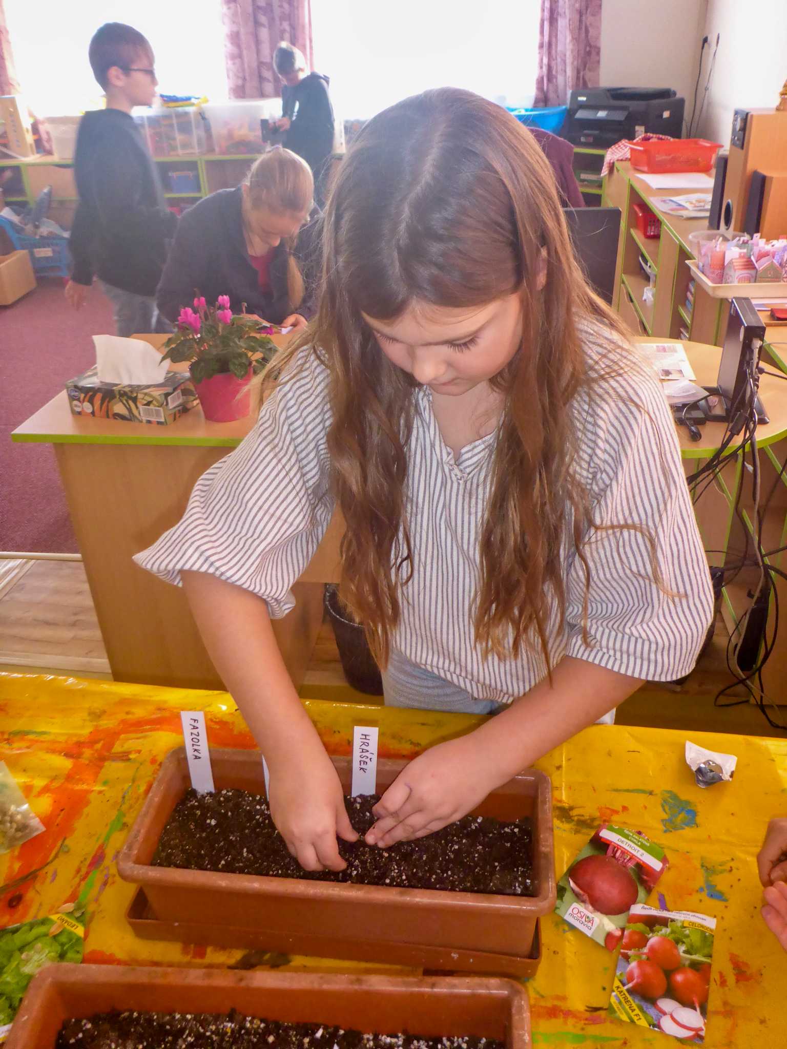 Celý listopad nás provázeli Křemílek s Vochomůrkou. Vytvořili jsme koláž obou postaviček na pozadí z otisků podzimních listů. Četly se jako obvykle příběhy z knihy "Z mechu a kapradí". Zasadili jsme podle příběhu semínka, zalévali je a pozorovali jejich růst. Na vycházce nás čekalo trhání šípků a samozřejmě vaření šípkového čaje. S medem byl vynikající. Pro zábavu se průběžně hrálo pohádkové kvarteto.