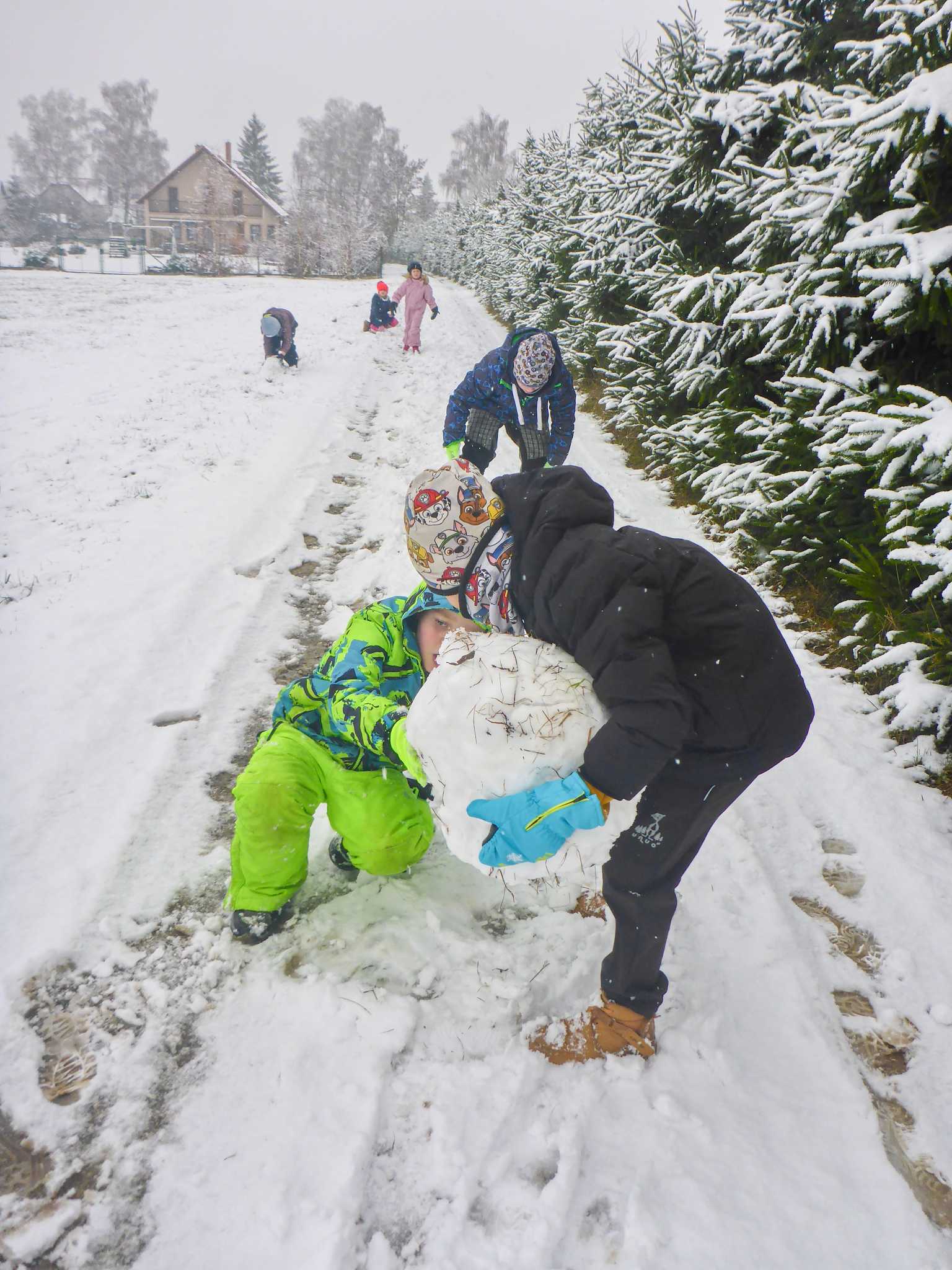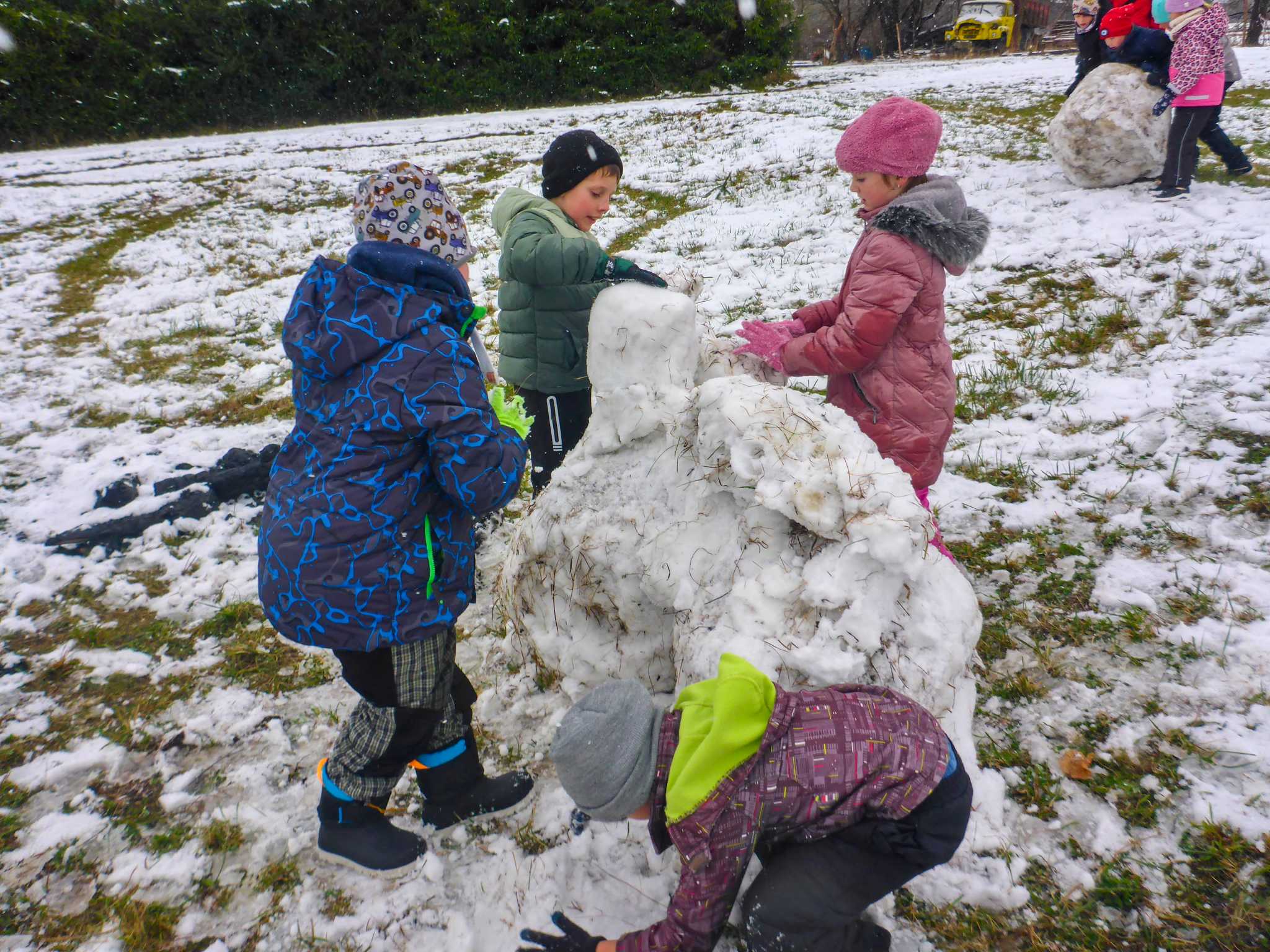 V listopadu nám krátce nasněžilo, a tak jsme si rychle užívali sněhových radovánek. Bylo to moc fajn.
