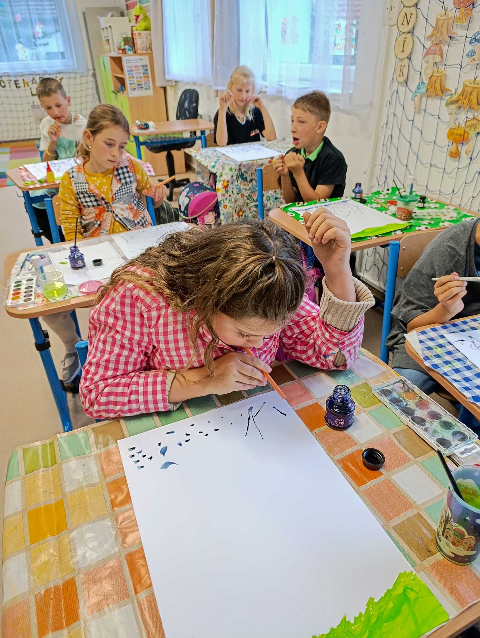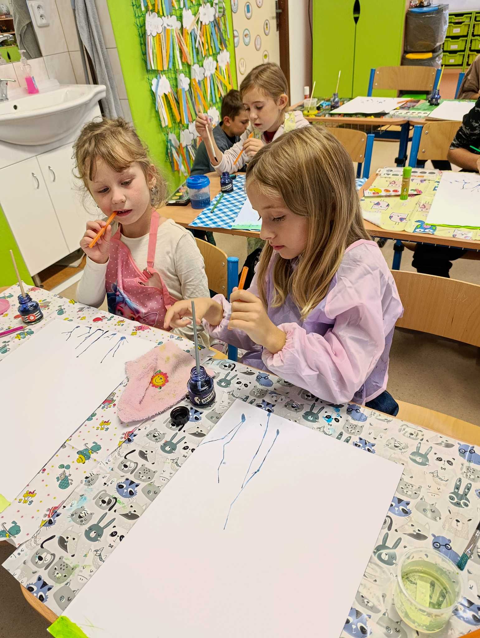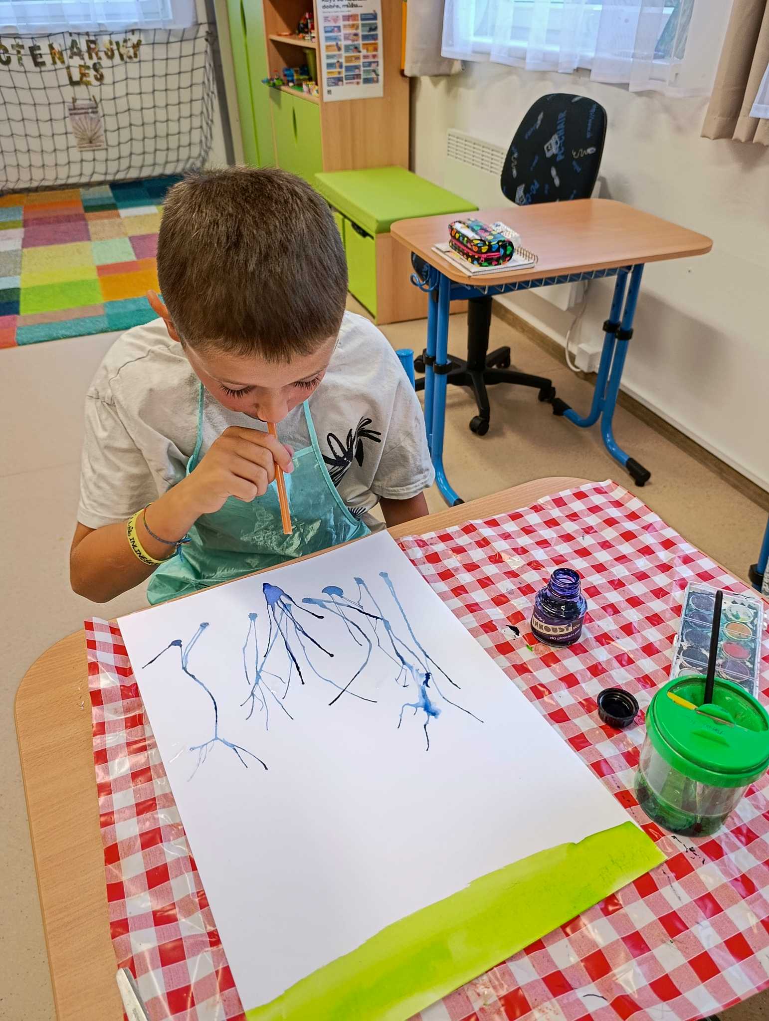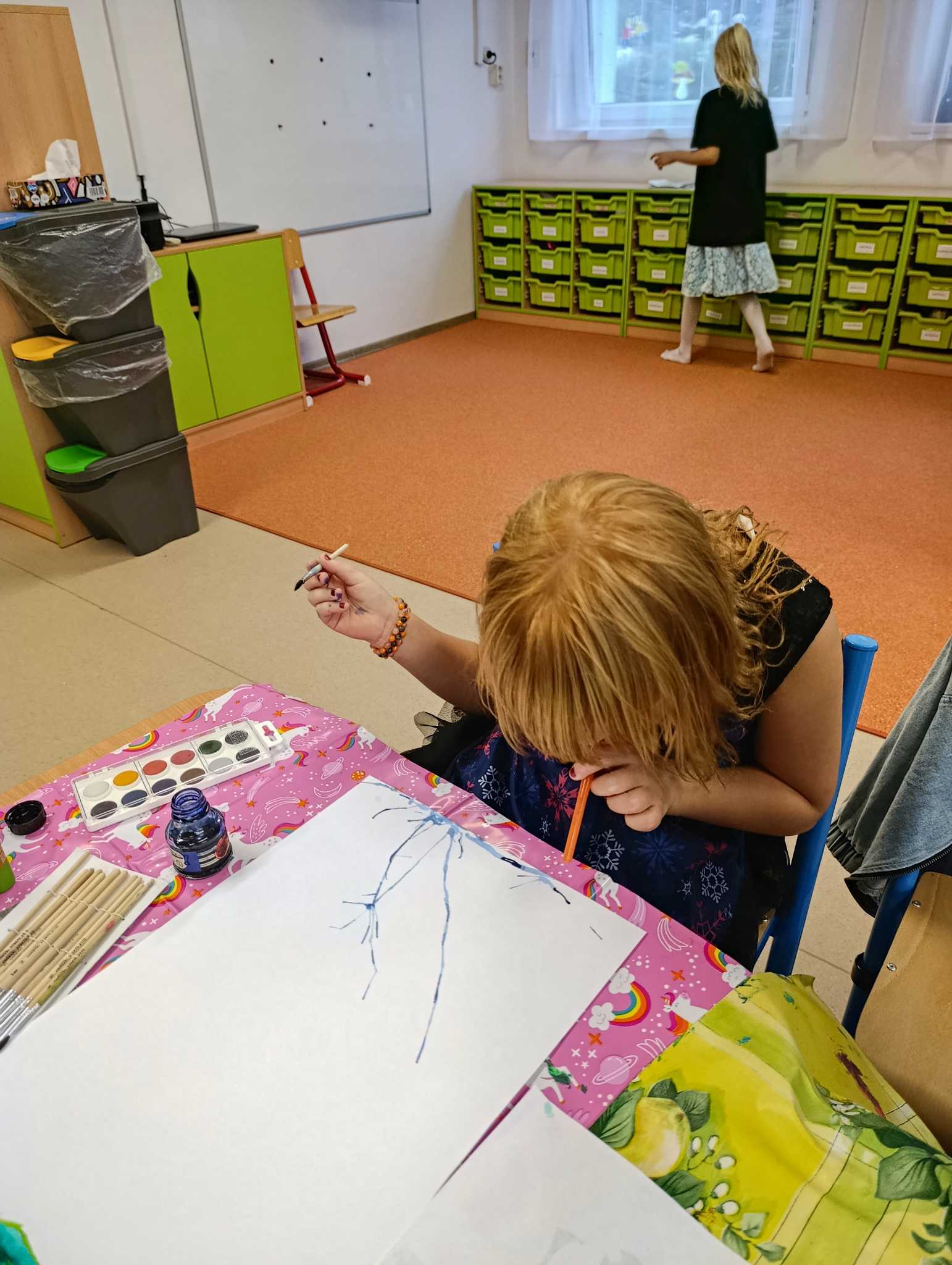 Děti si dnes pořádně zafoukaly. Protože už máme podzim, hráli jsme si na déšť. Všichni moc hezky pracovali.