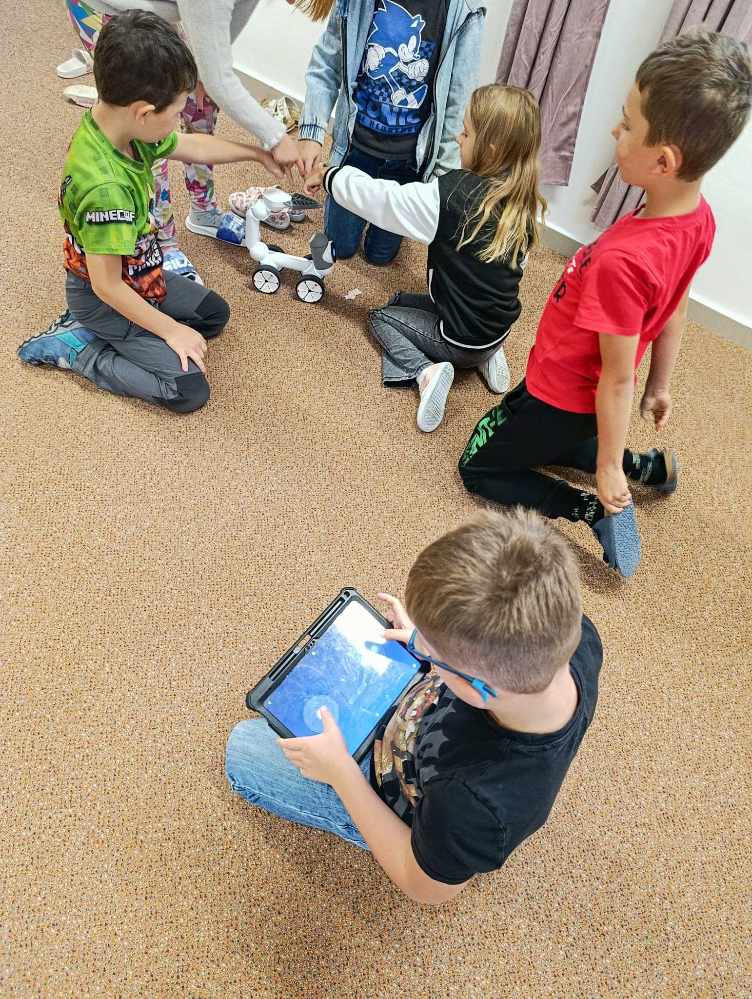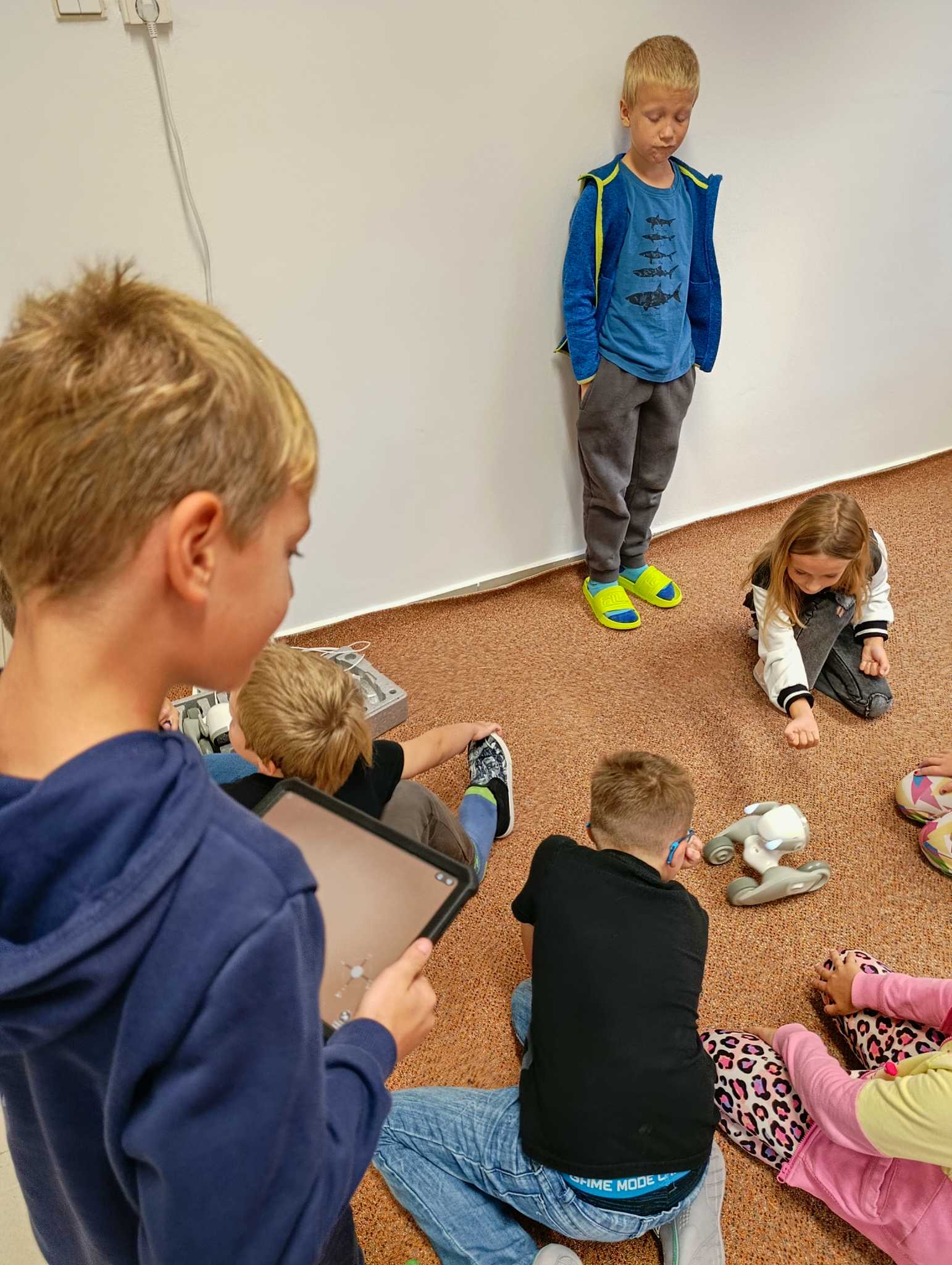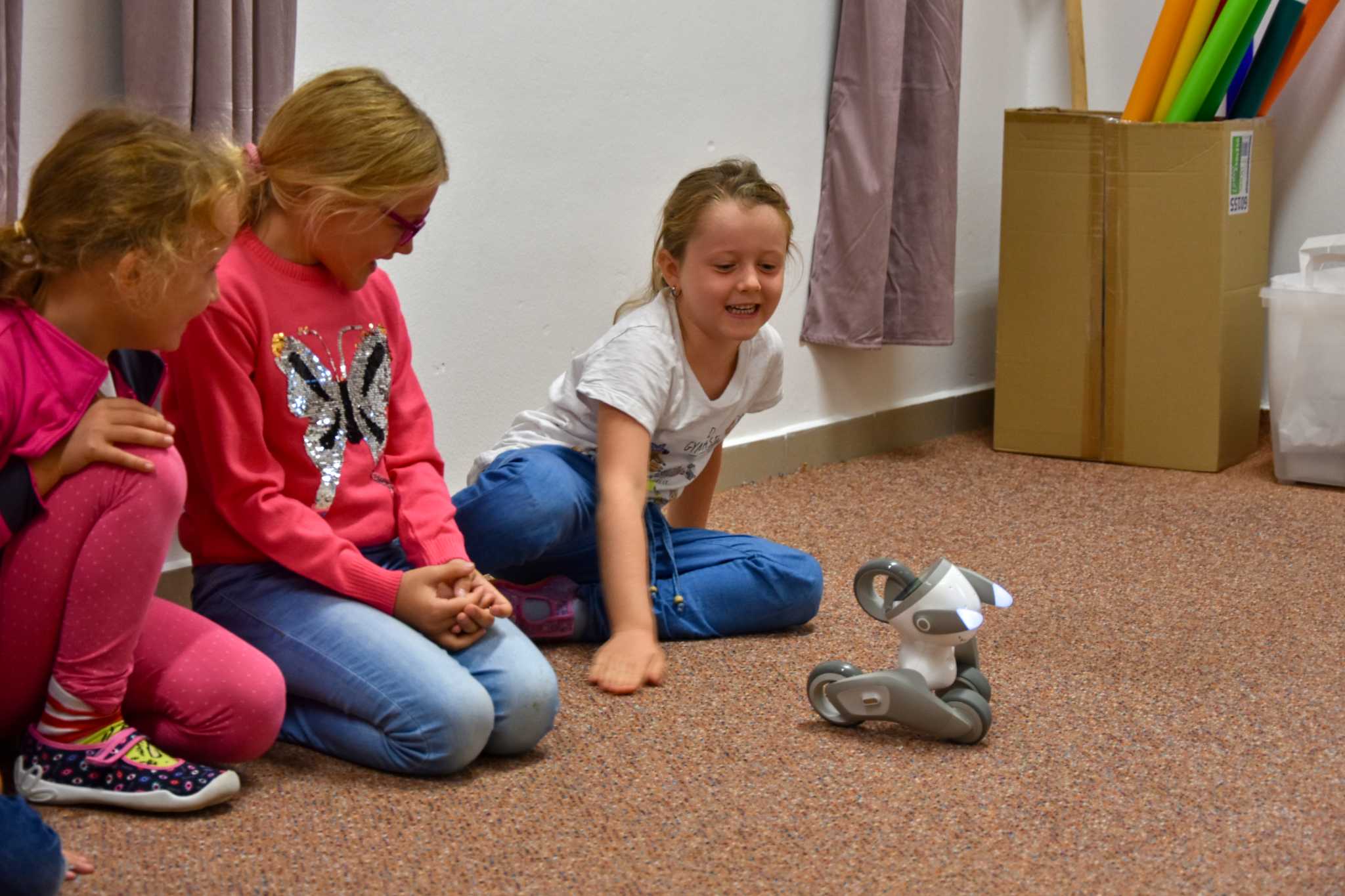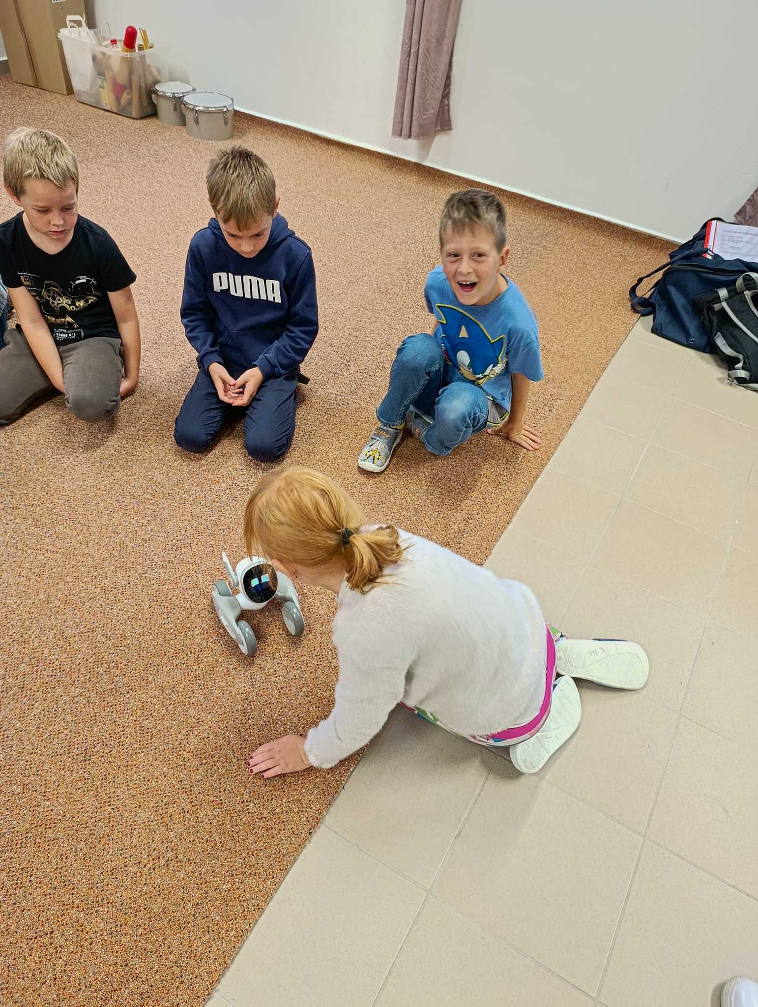 Během projektového dne si všichni žáci školy vyzkoušeli ve skupinách interakci se zajímavými roboty ClicBot a Loona. Měli tak možnost se seznámit s technologiemi, které využívají umělou inteligenci, reagují na pohyb a mluvené slovo.