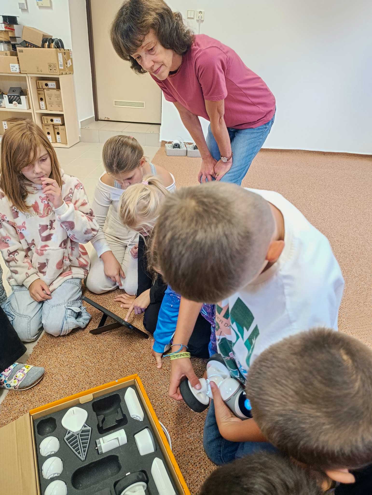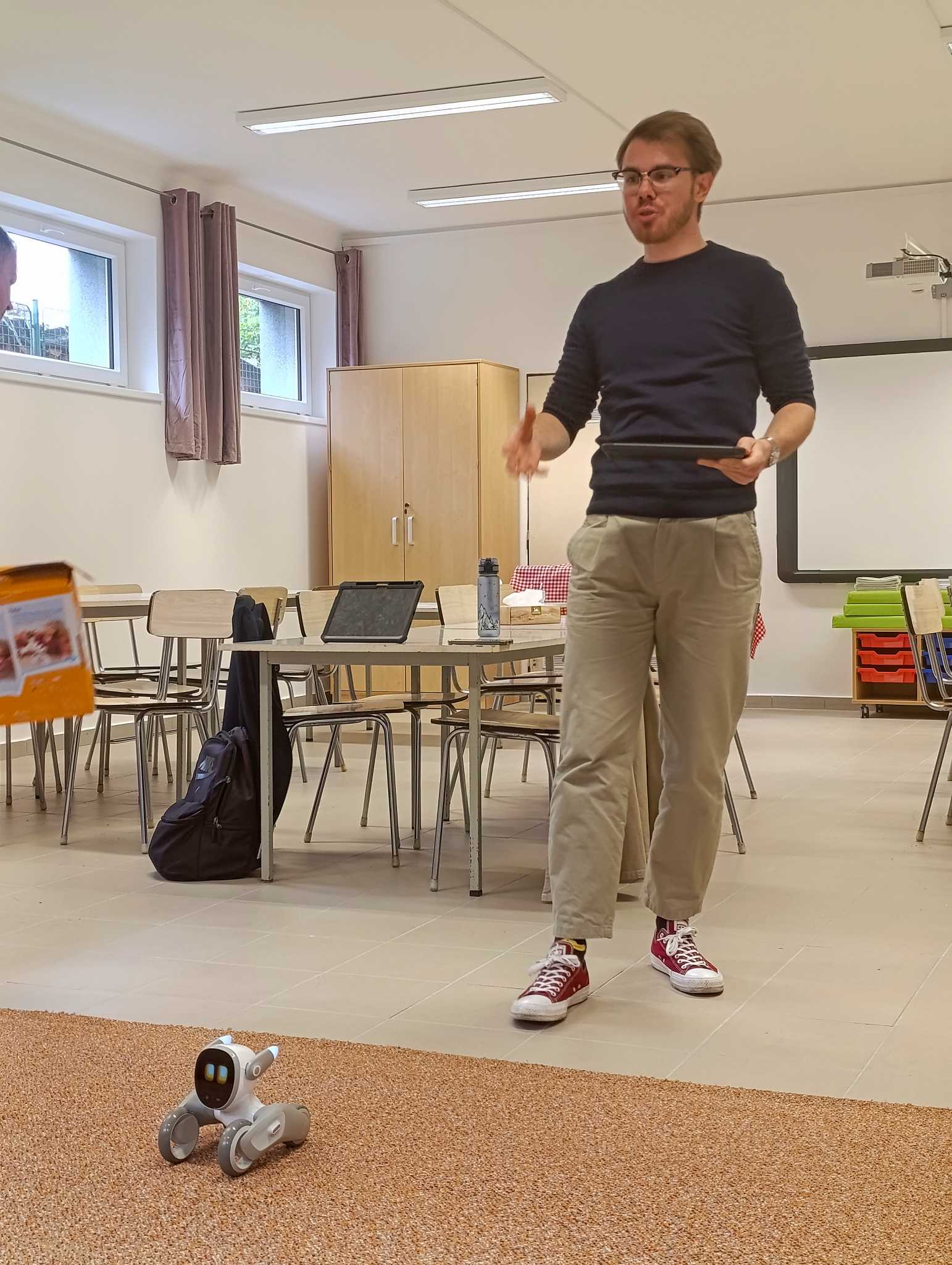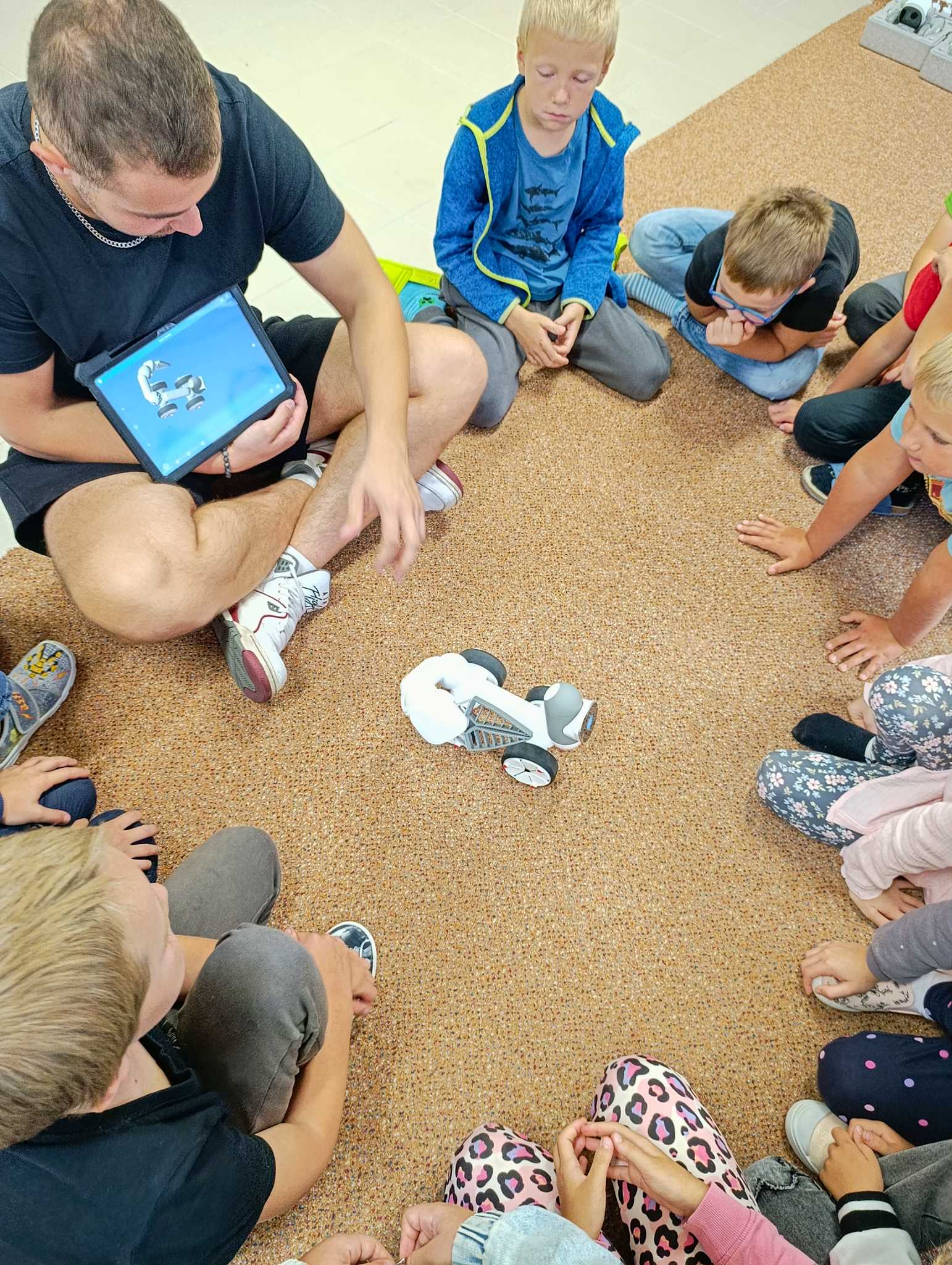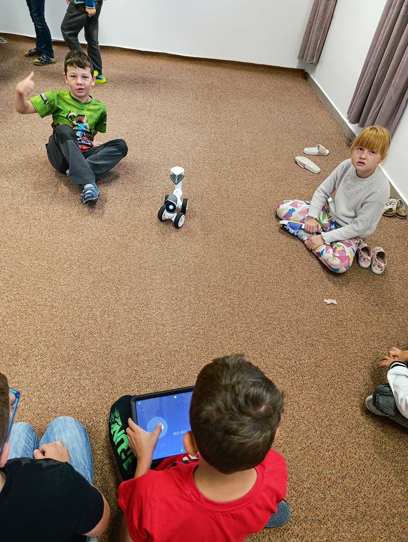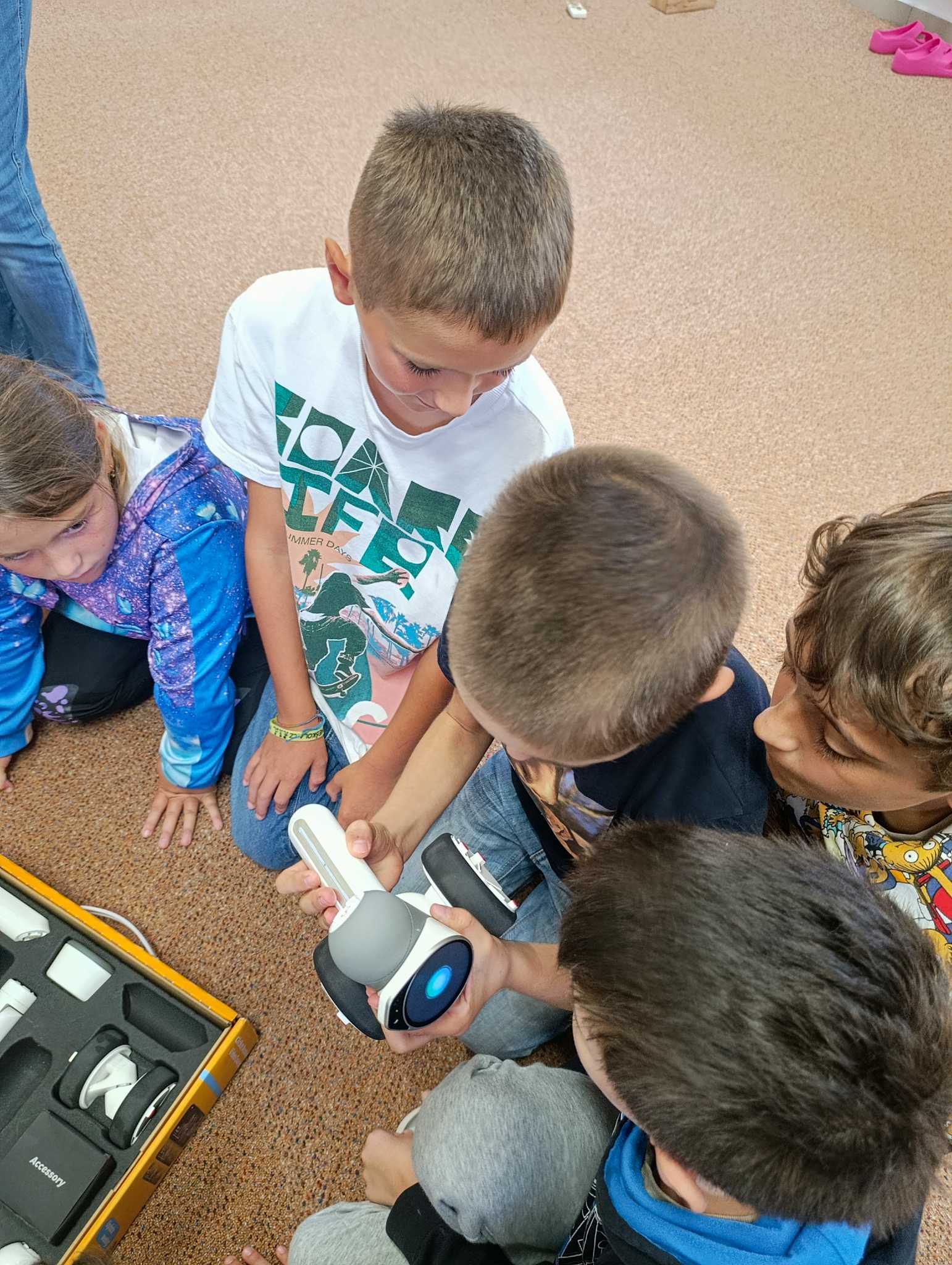 Během projektového dne si všichni žáci školy vyzkoušeli ve skupinách interakci se zajímavými roboty ClicBot a Loona. Měli tak možnost se seznámit s technologiemi, které využívají umělou inteligenci, reagují na pohyb a mluvené slovo.