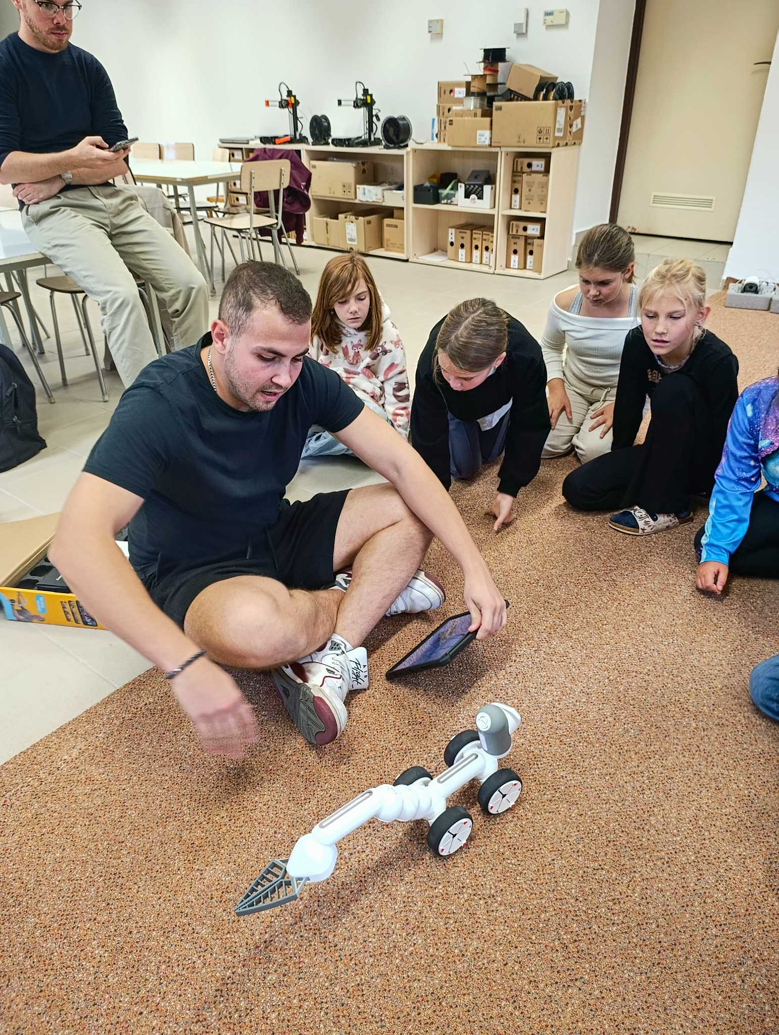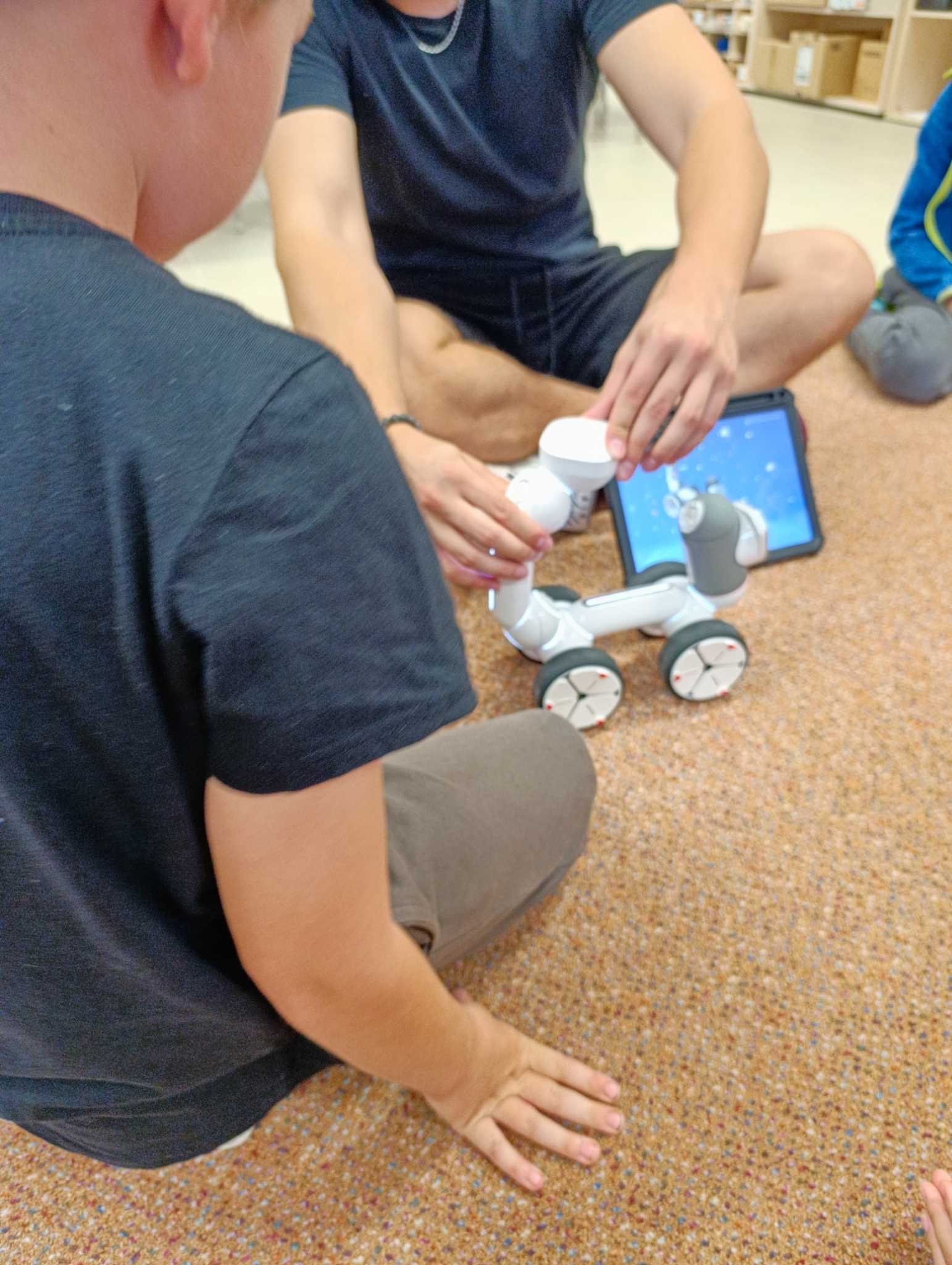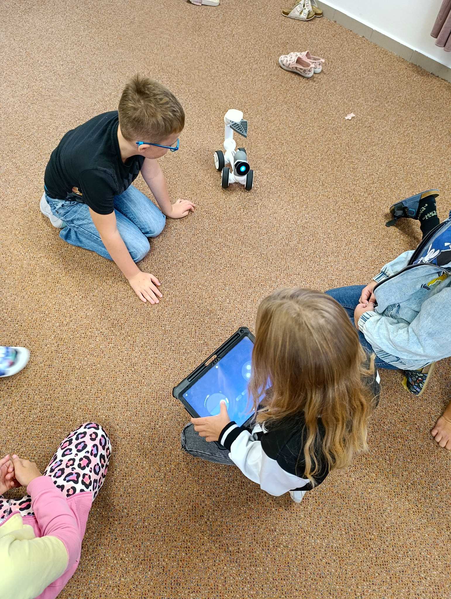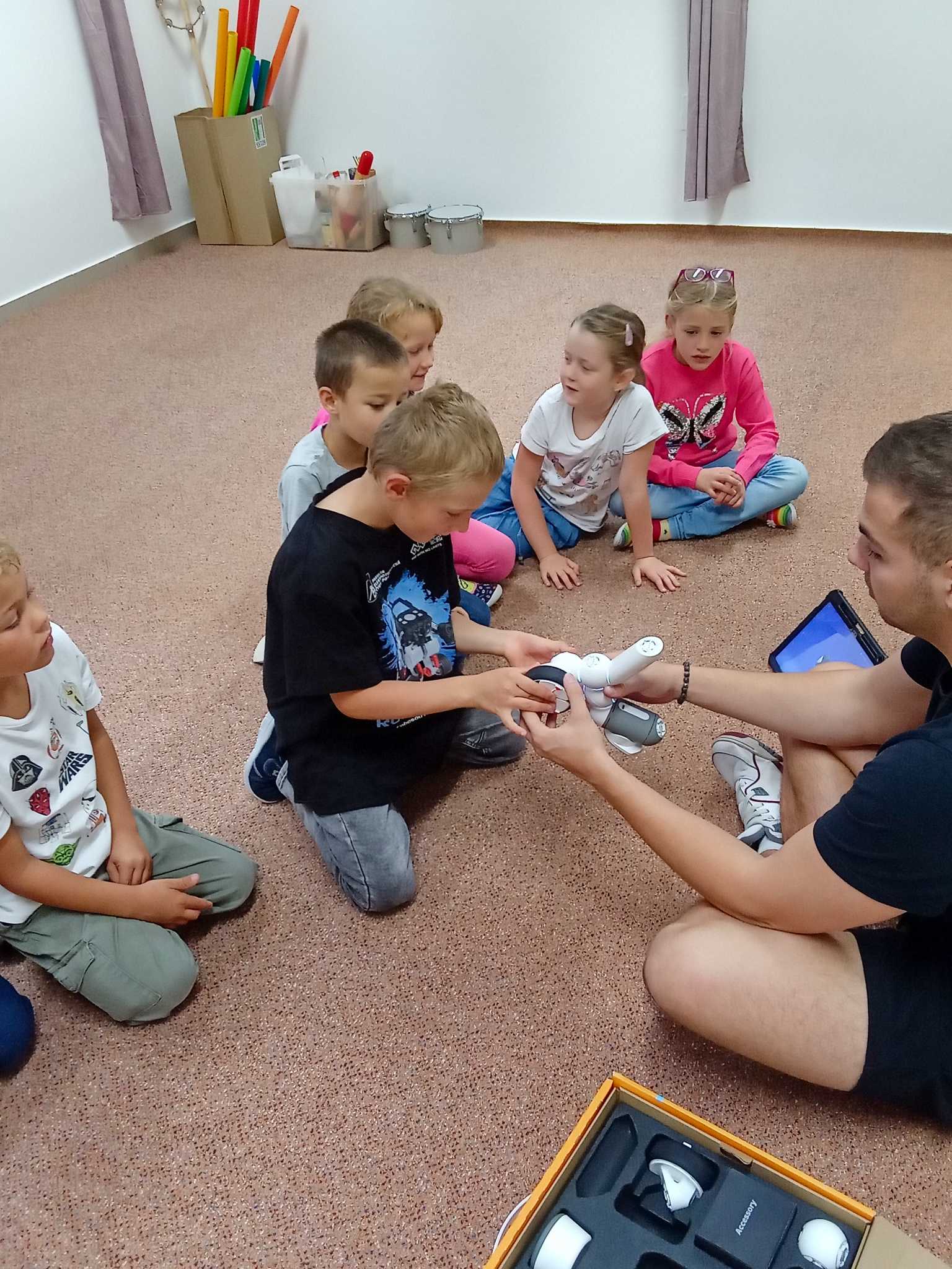 Během projektového dne si všichni žáci školy vyzkoušeli ve skupinách interakci se zajímavými roboty ClicBot a Loona. Měli tak možnost se seznámit s technologiemi, které využívají umělou inteligenci, reagují na pohyb a mluvené slovo.