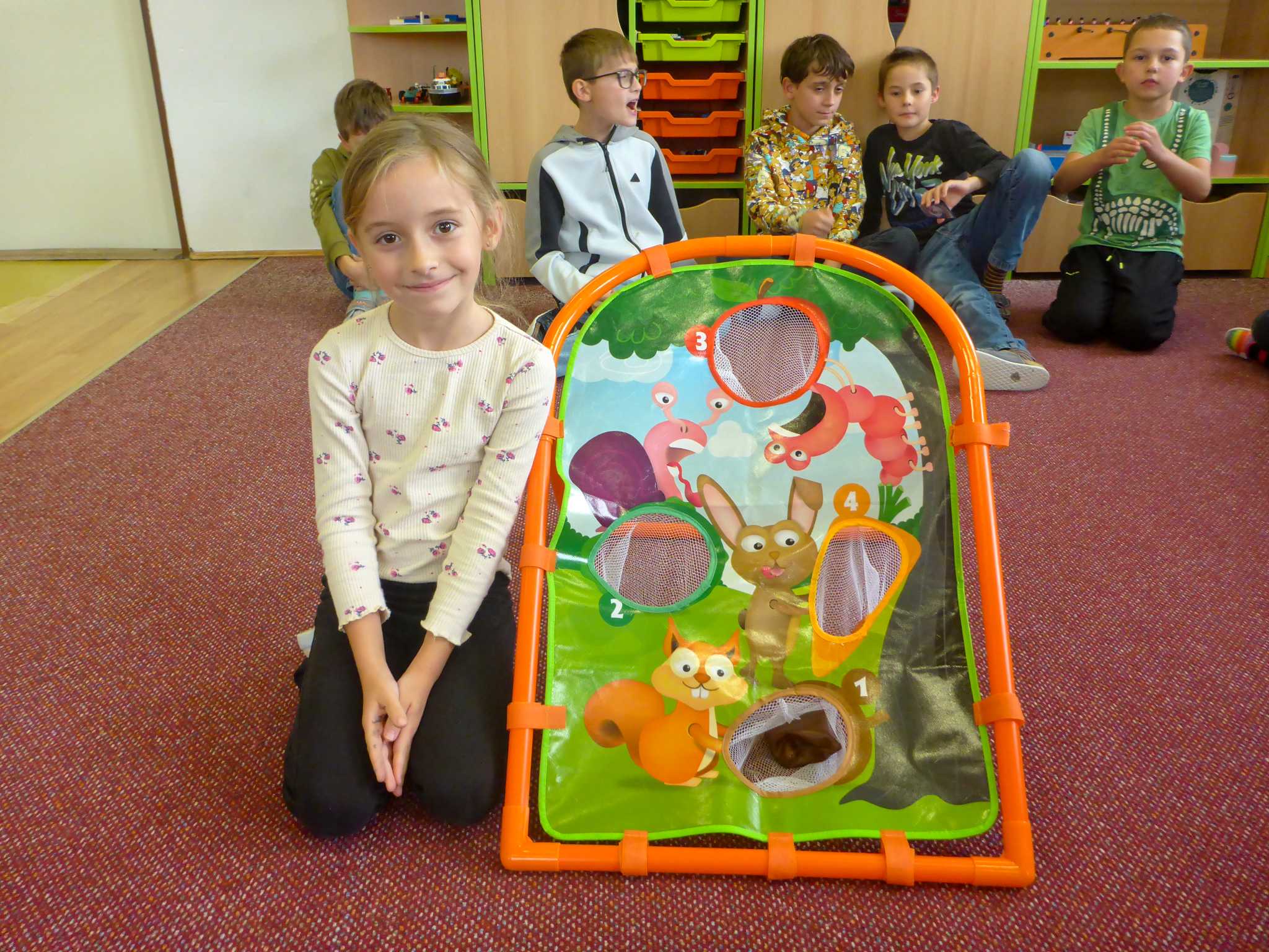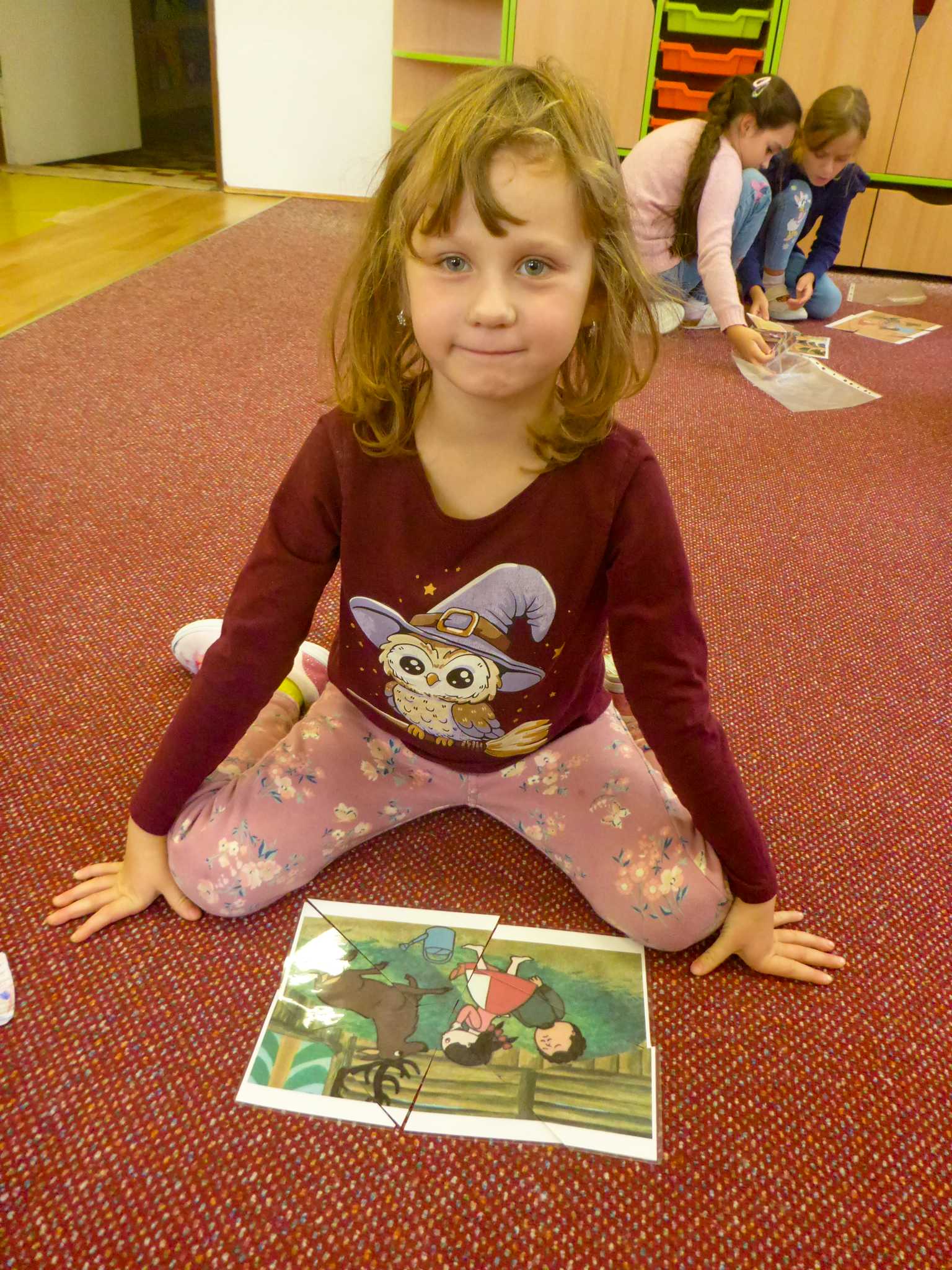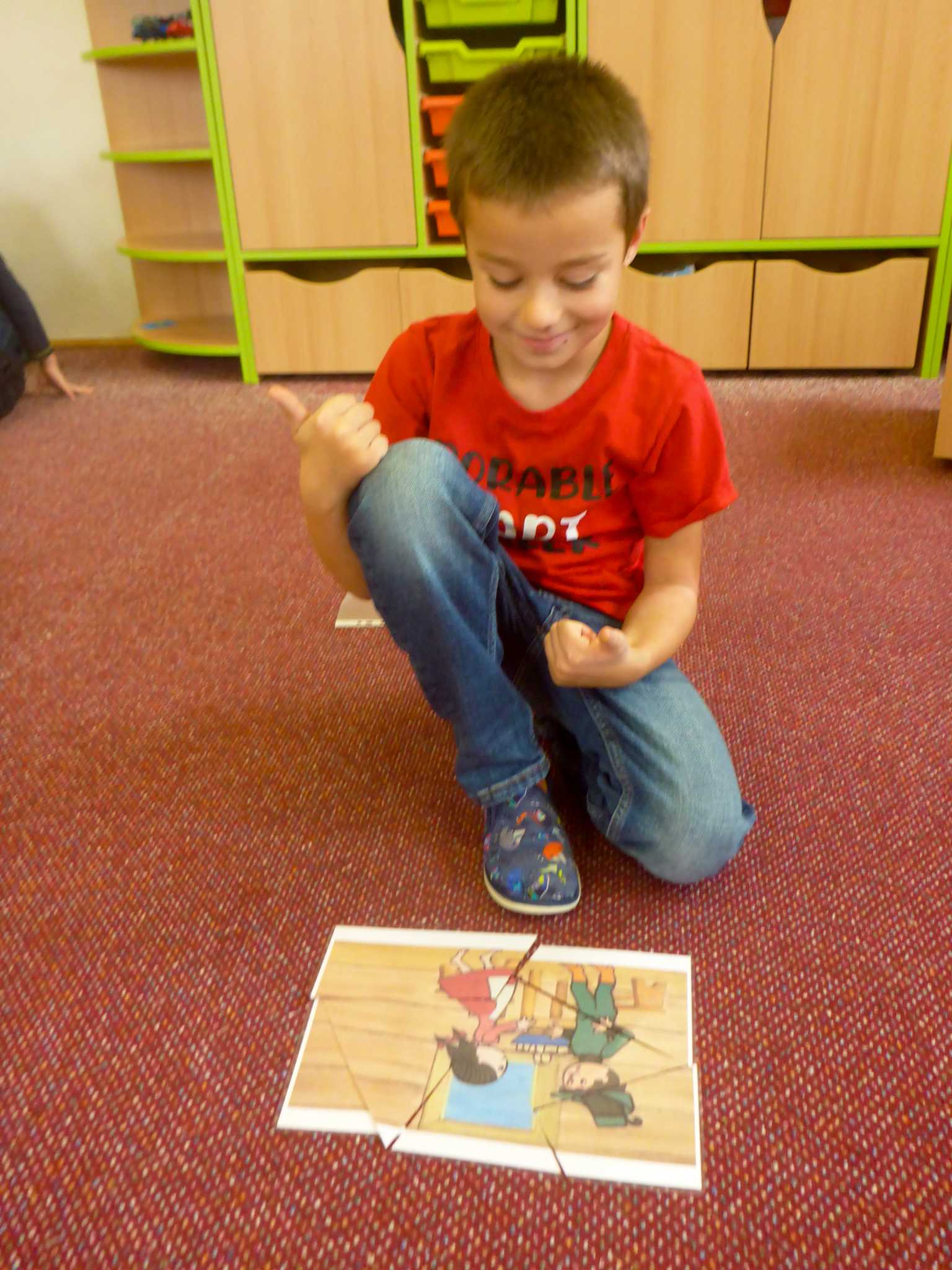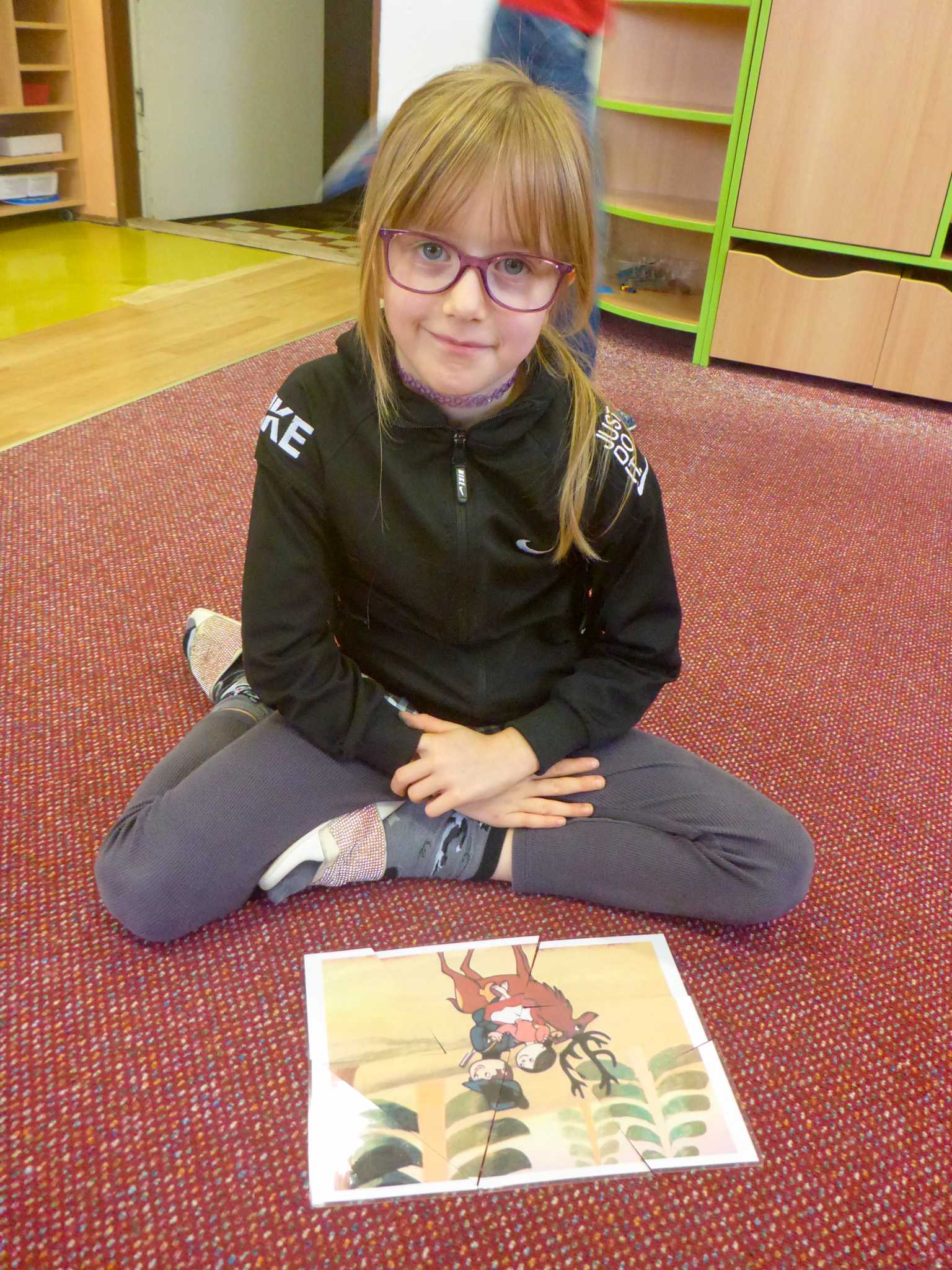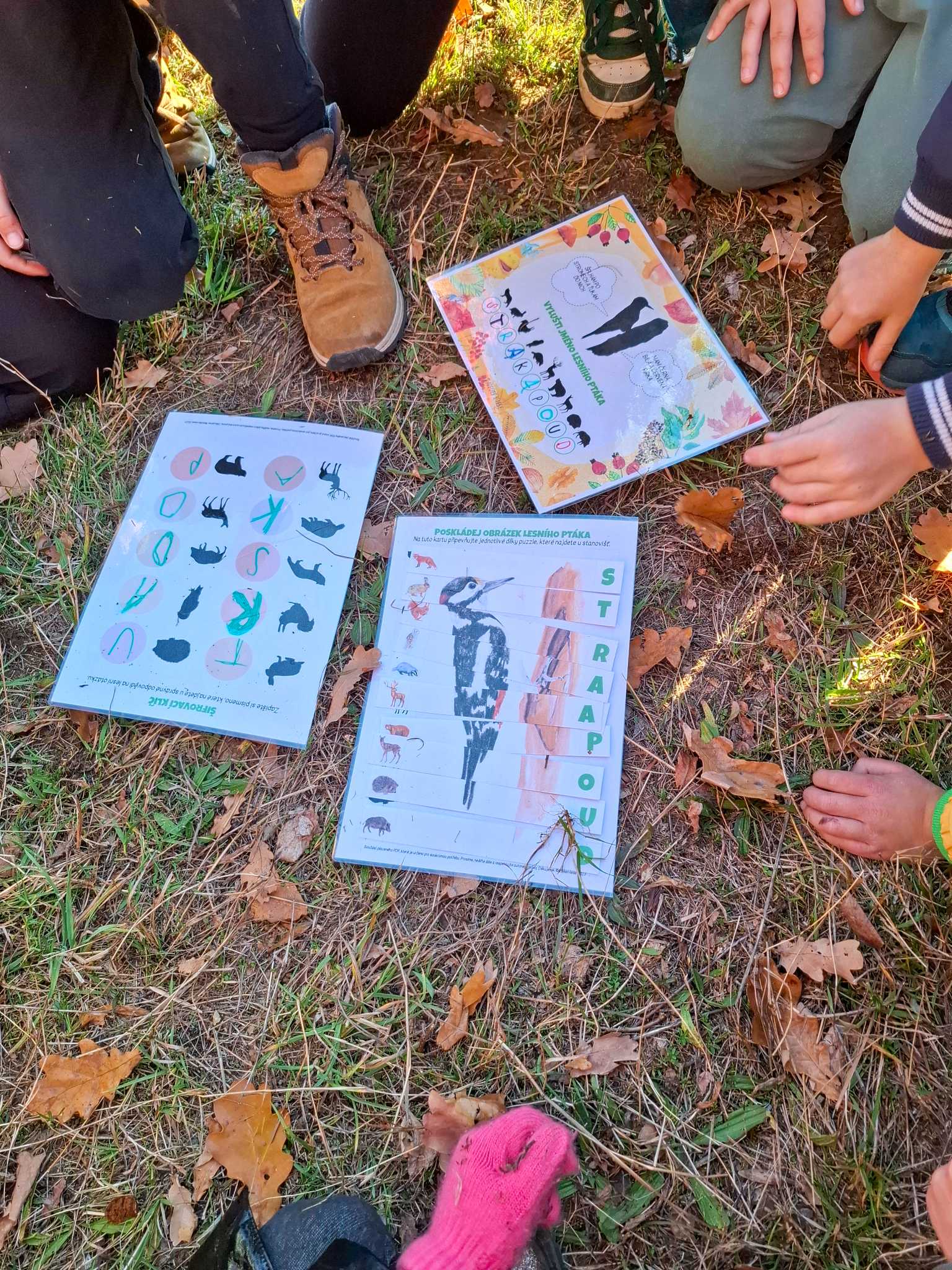Také tentokrát nás čekala četba na pokračování. Povídali jsme si o lese a zvířátkách. Ve družině si všichni zahráli hru "Matalaki" - krmení zvířátek. Skládalo se puzzle a hrála společenská hra "Pan Kotrč hledá večerníčky". Na vycházce jsme se vydali podzimní stezkou za zvířátky. Chodilo se po značkách a plnily zvířátkové úkoly. Na závěr jsme vyluštili tajenku ptáka - strakapouda. Další den se v lese hledaly obrázky jelena Větrníka nebo skládalo puzzle.