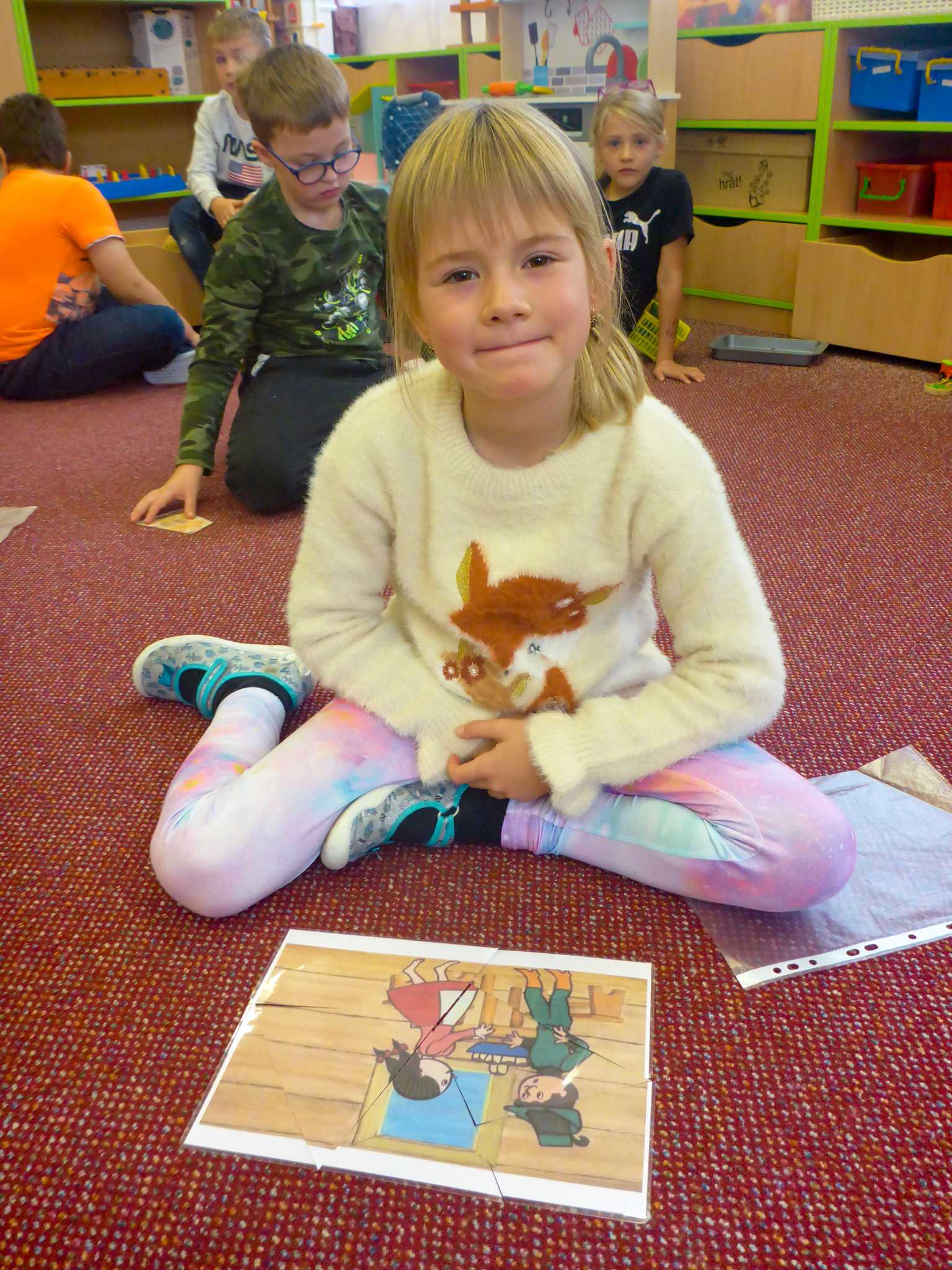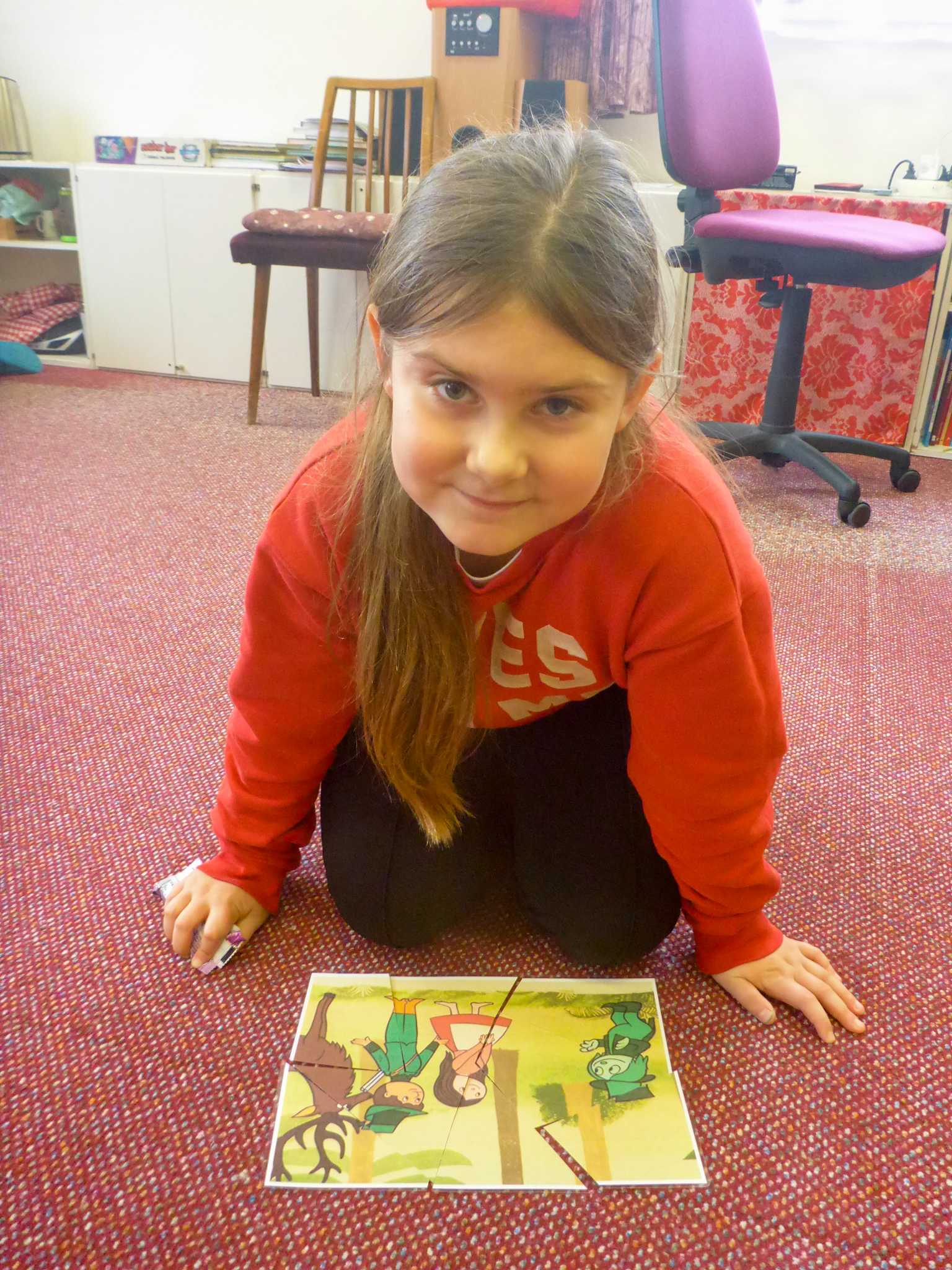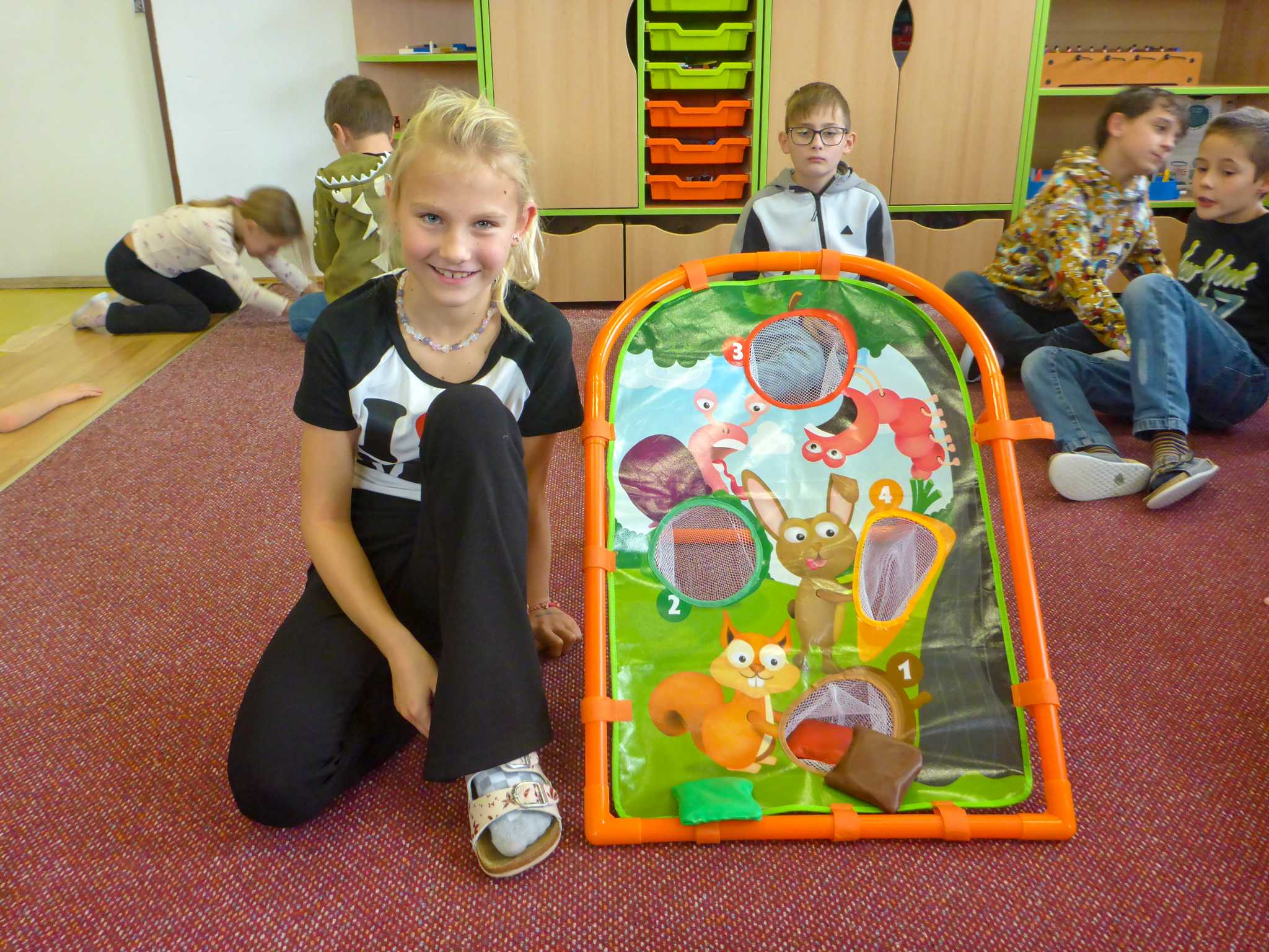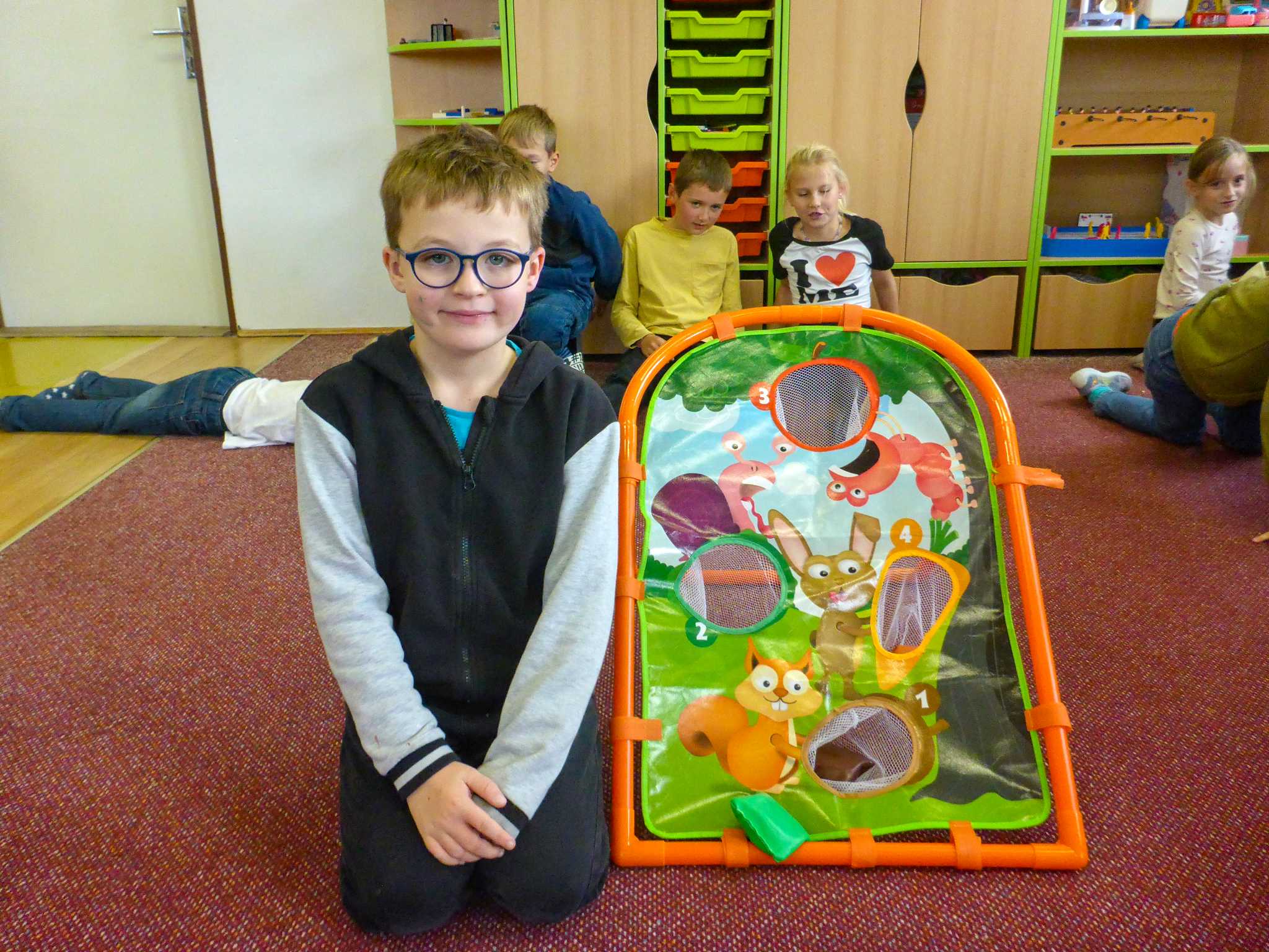 Také tentokrát nás čekala četba na pokračování. Povídali jsme si o lese a zvířátkách. Ve družině si všichni zahráli hru "Matalaki" - krmení zvířátek. Skládalo se puzzle a hrála společenská hra "Pan Kotrč hledá večerníčky". Na vycházce jsme se vydali podzimní stezkou za zvířátky. Chodilo se po značkách a plnily zvířátkové úkoly. Na závěr jsme vyluštili tajenku ptáka - strakapouda. Další den se v lese hledaly obrázky jelena Větrníka nebo skládalo puzzle.