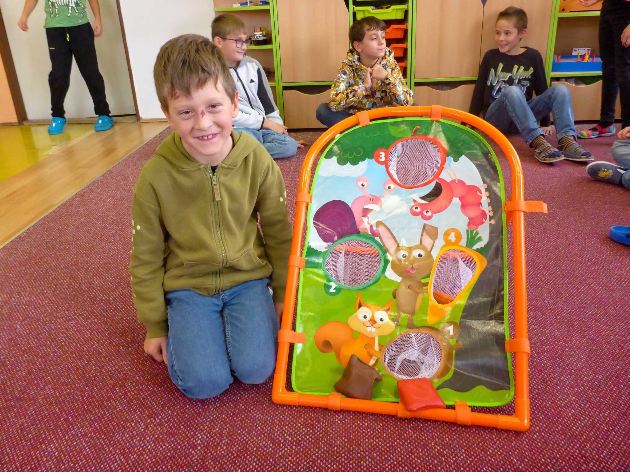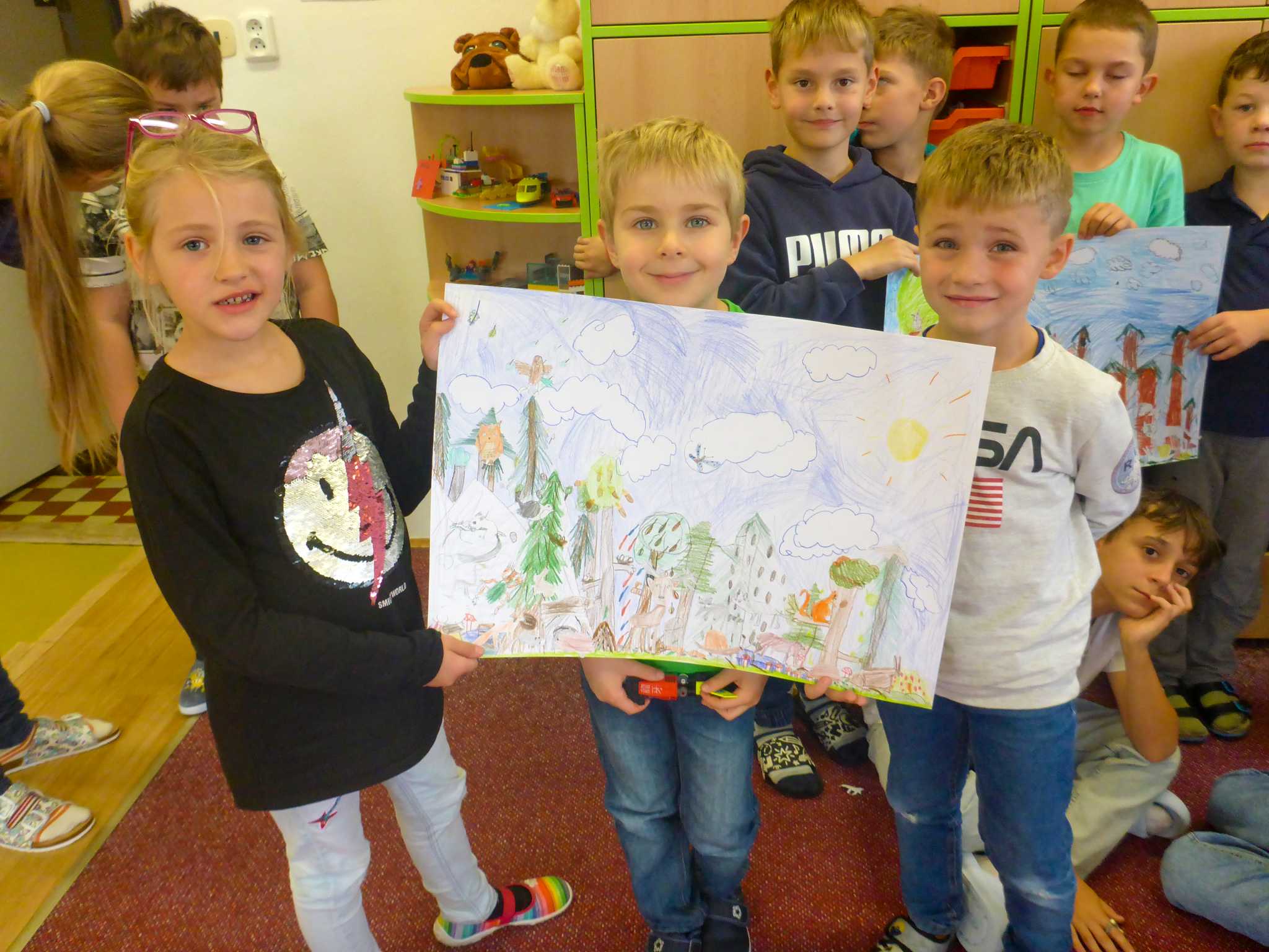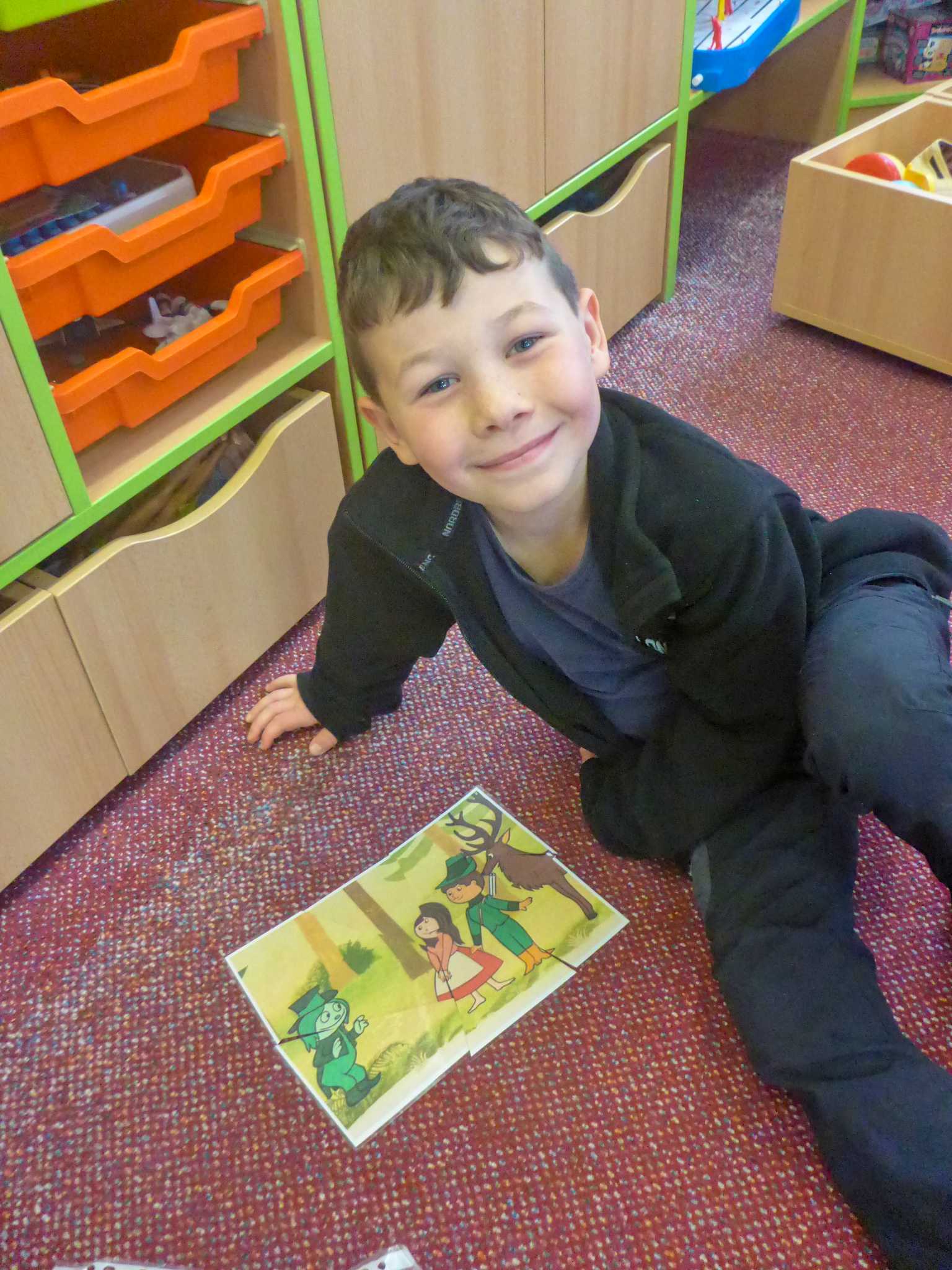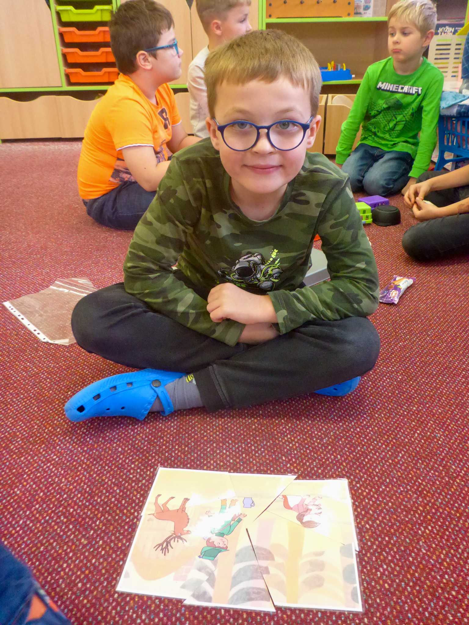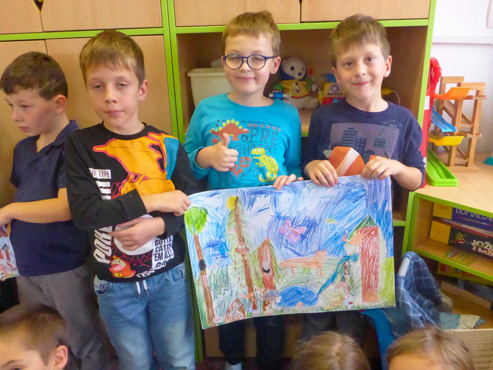 Také tentokrát nás čekala četba na pokračování. Povídali jsme si o lese a zvířátkách. Ve družině si všichni zahráli hru "Matalaki" - krmení zvířátek. Skládalo se puzzle a hrála společenská hra "Pan Kotrč hledá večerníčky". Na vycházce jsme se vydali podzimní stezkou za zvířátky. Chodilo se po značkách a plnily zvířátkové úkoly. Na závěr jsme vyluštili tajenku ptáka - strakapouda. Další den se v lese hledaly obrázky jelena Větrníka nebo skládalo puzzle.