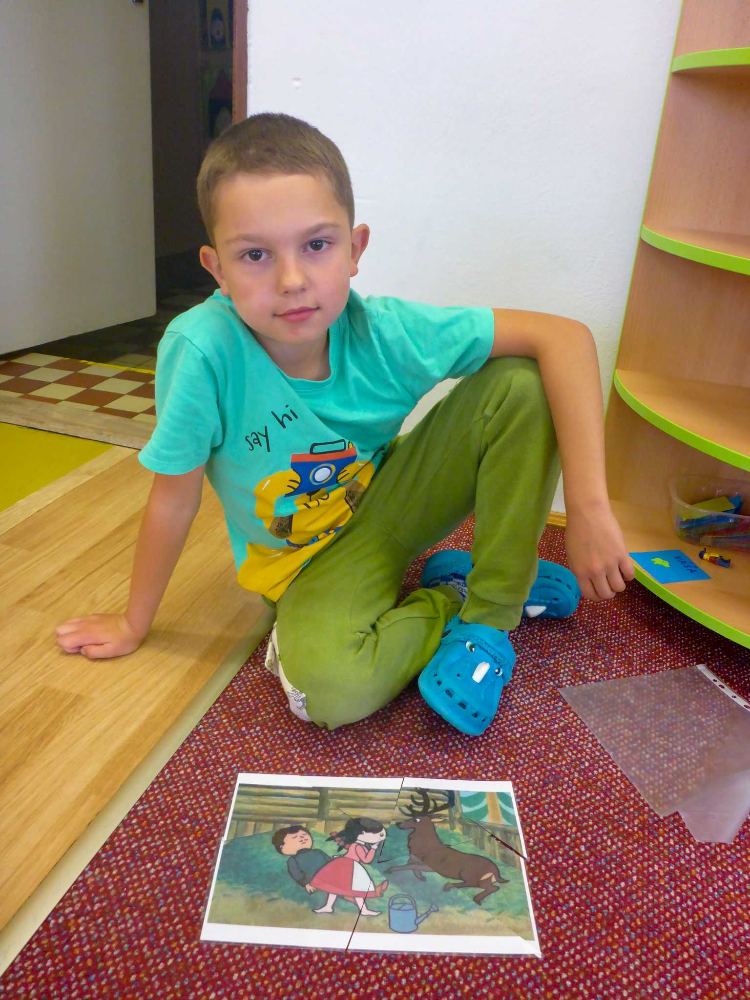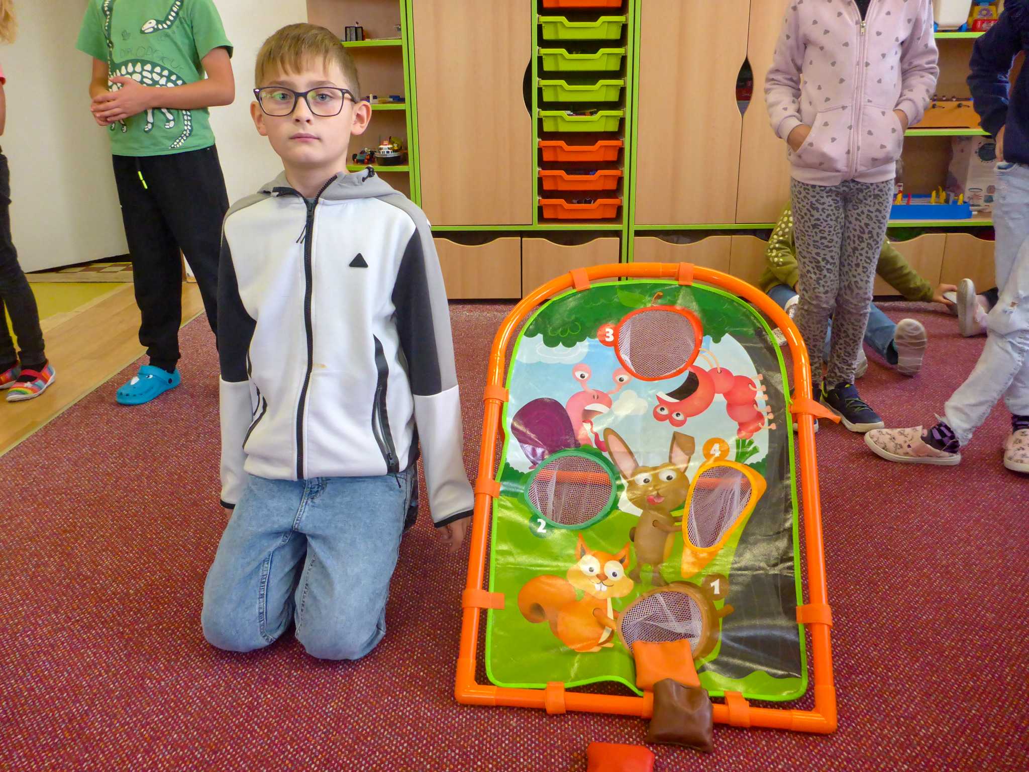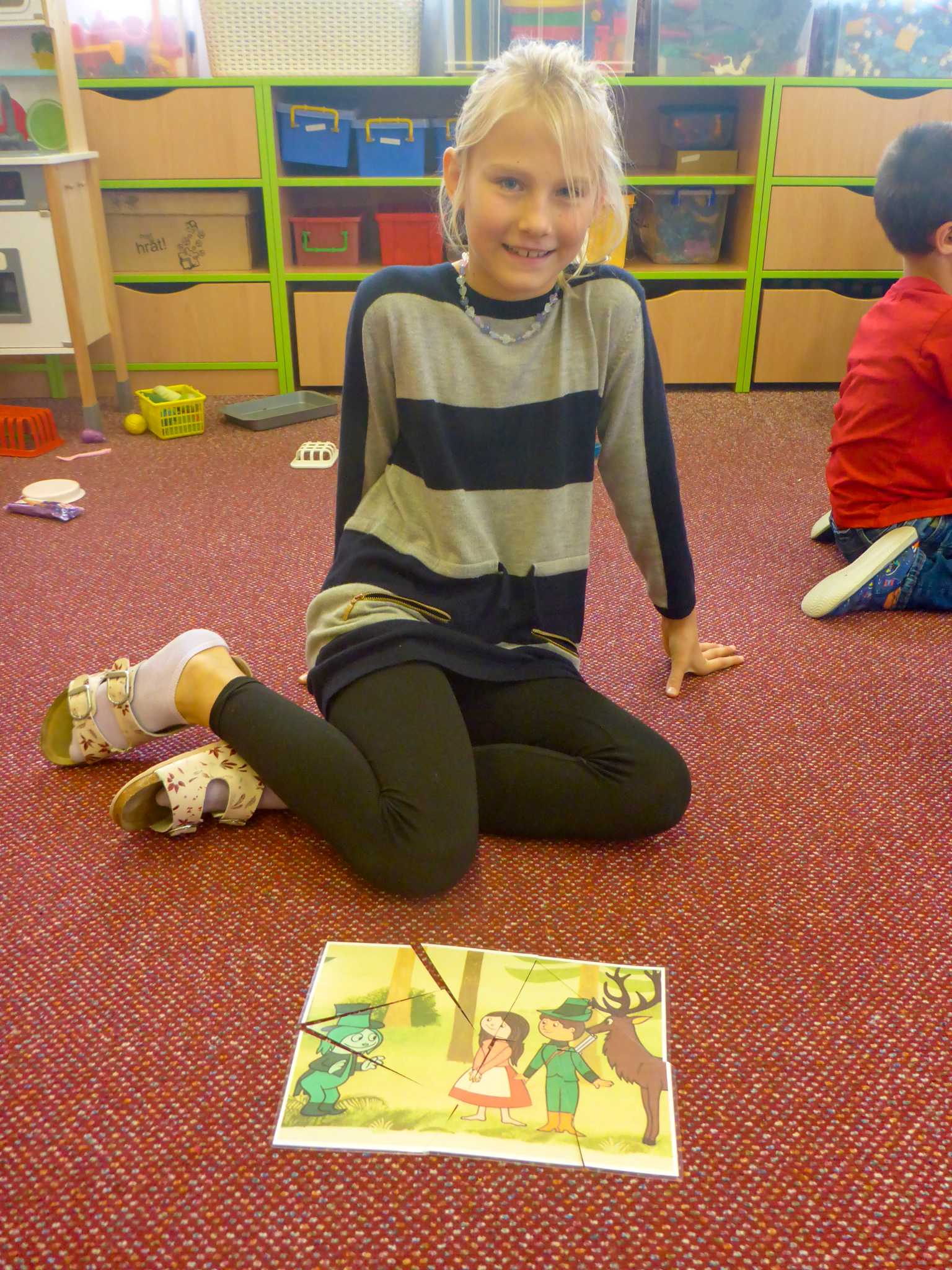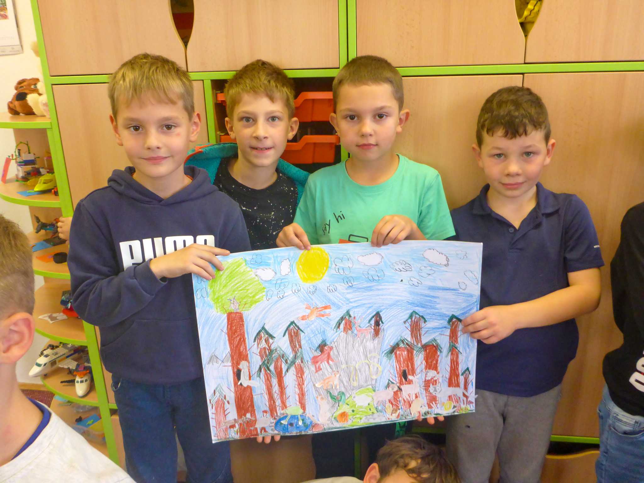 Také tentokrát nás čekala četba na pokračování. Povídali jsme si o lese a zvířátkách. Ve družině si všichni zahráli hru "Matalaki" - krmení zvířátek. Skládalo se puzzle a hrála společenská hra "Pan Kotrč hledá večerníčky". Na vycházce jsme se vydali podzimní stezkou za zvířátky. Chodilo se po značkách a plnily zvířátkové úkoly. Na závěr jsme vyluštili tajenku ptáka - strakapouda. Další den se v lese hledaly obrázky jelena Větrníka nebo skládalo puzzle.
