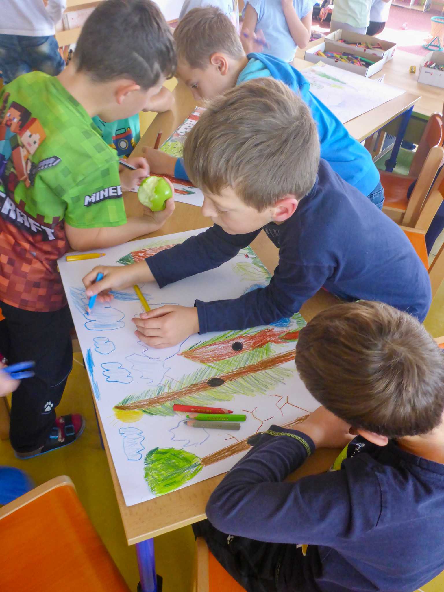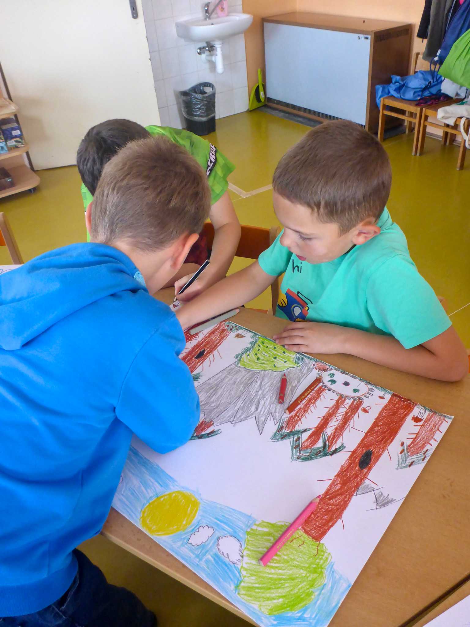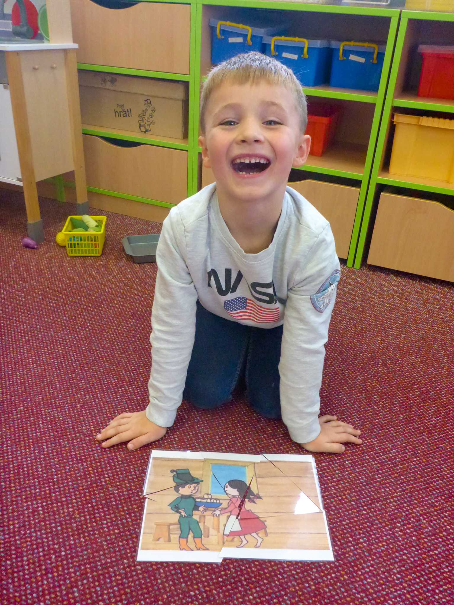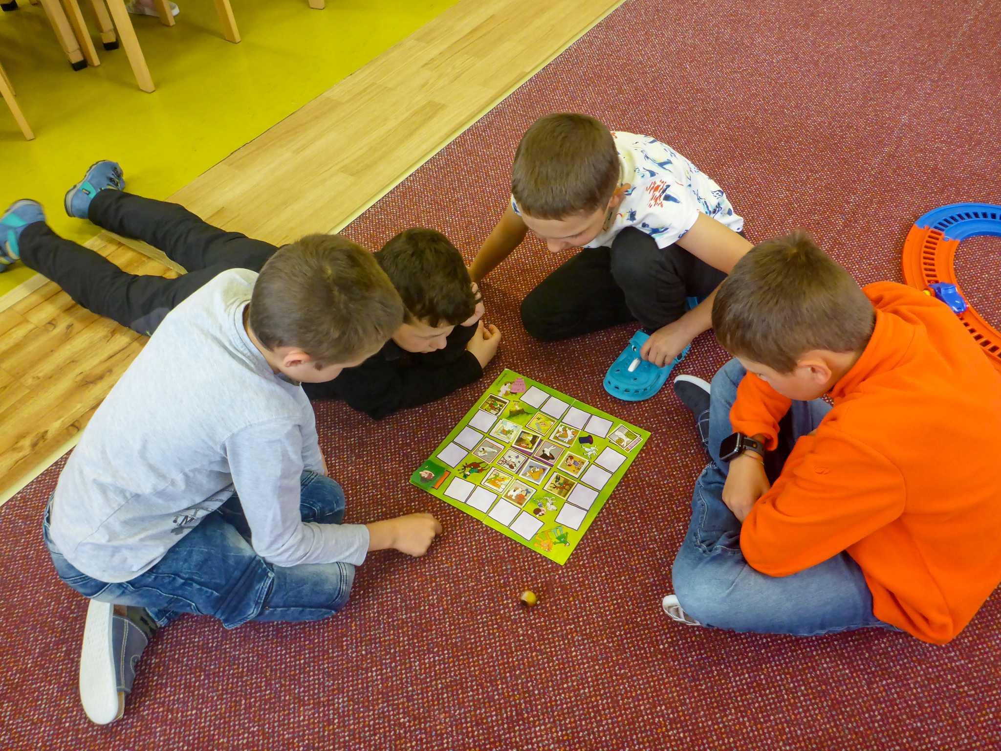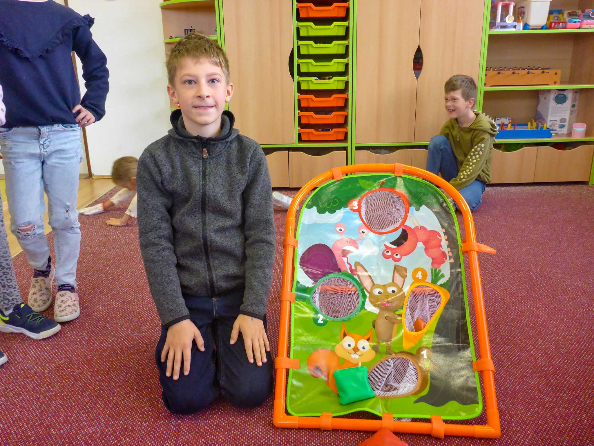 Také tentokrát nás čekala četba na pokračování. Povídali jsme si o lese a zvířátkách. Ve družině si všichni zahráli hru "Matalaki" - krmení zvířátek. Skládalo se puzzle a hrála společenská hra "Pan Kotrč hledá večerníčky". Na vycházce jsme se vydali podzimní stezkou za zvířátky. Chodilo se po značkách a plnily zvířátkové úkoly. Na závěr jsme vyluštili tajenku ptáka - strakapouda. Další den se v lese hledaly obrázky jelena Větrníka nebo skládalo puzzle.