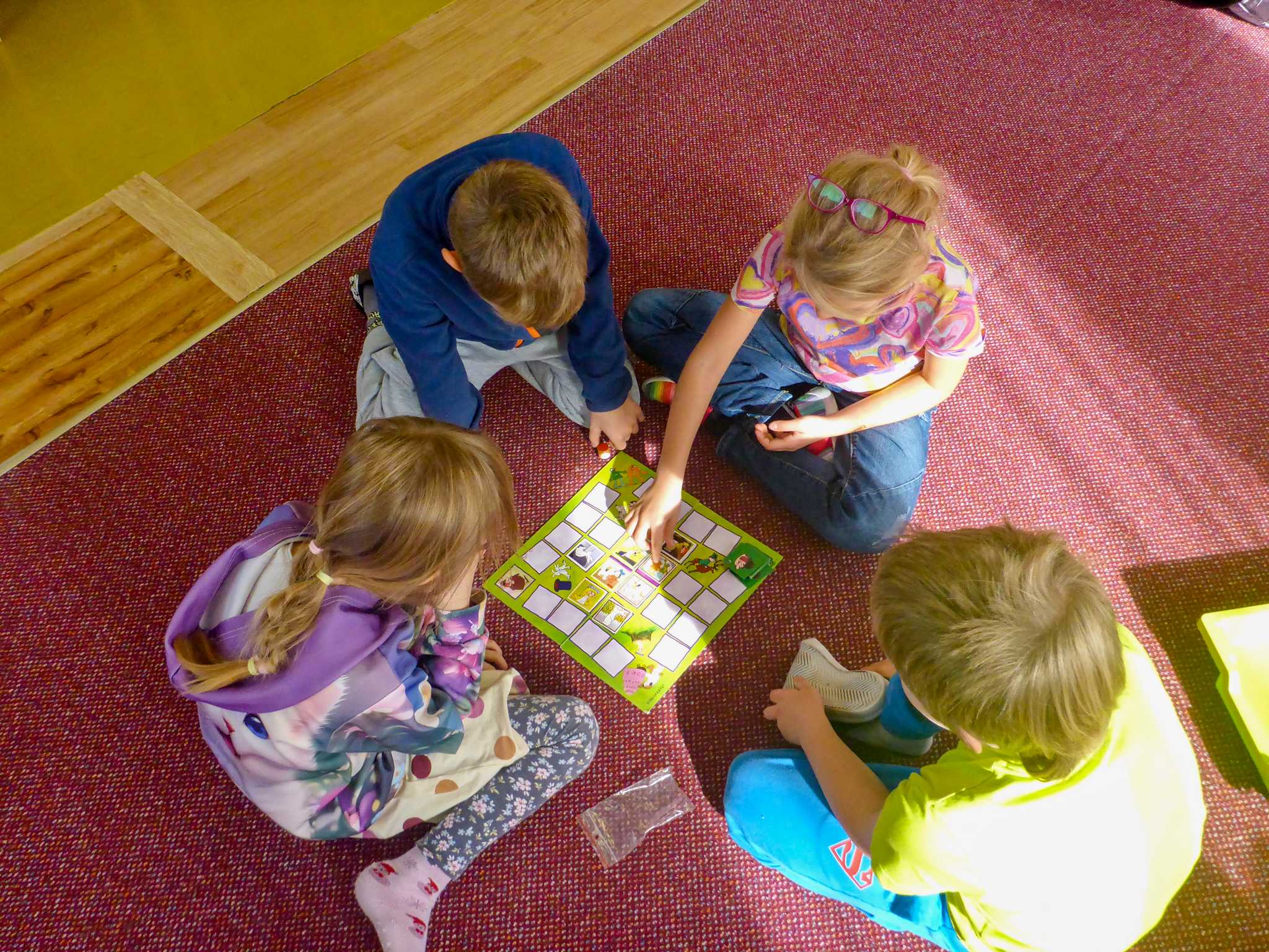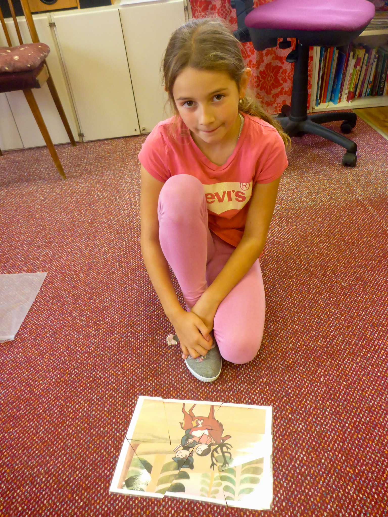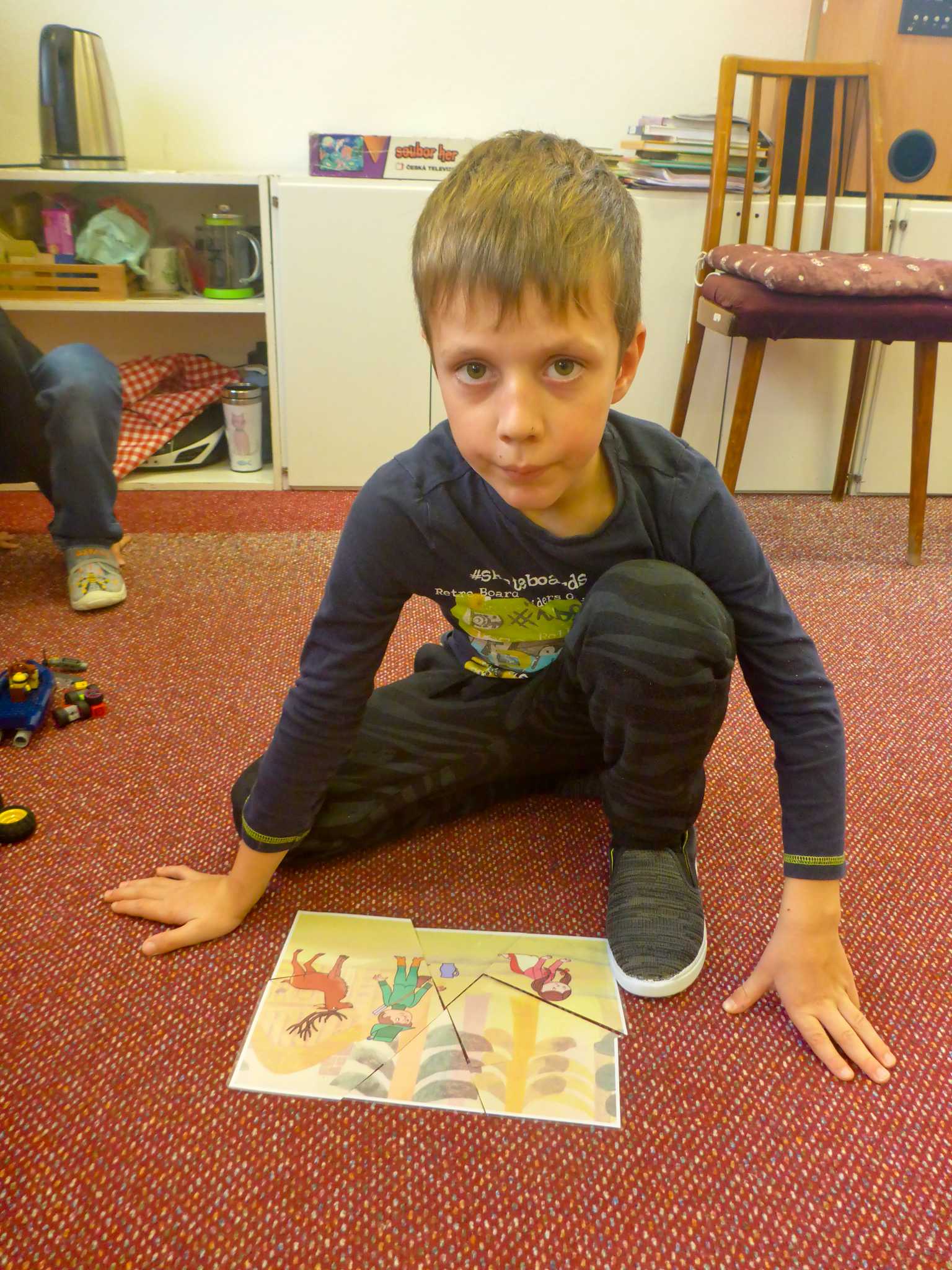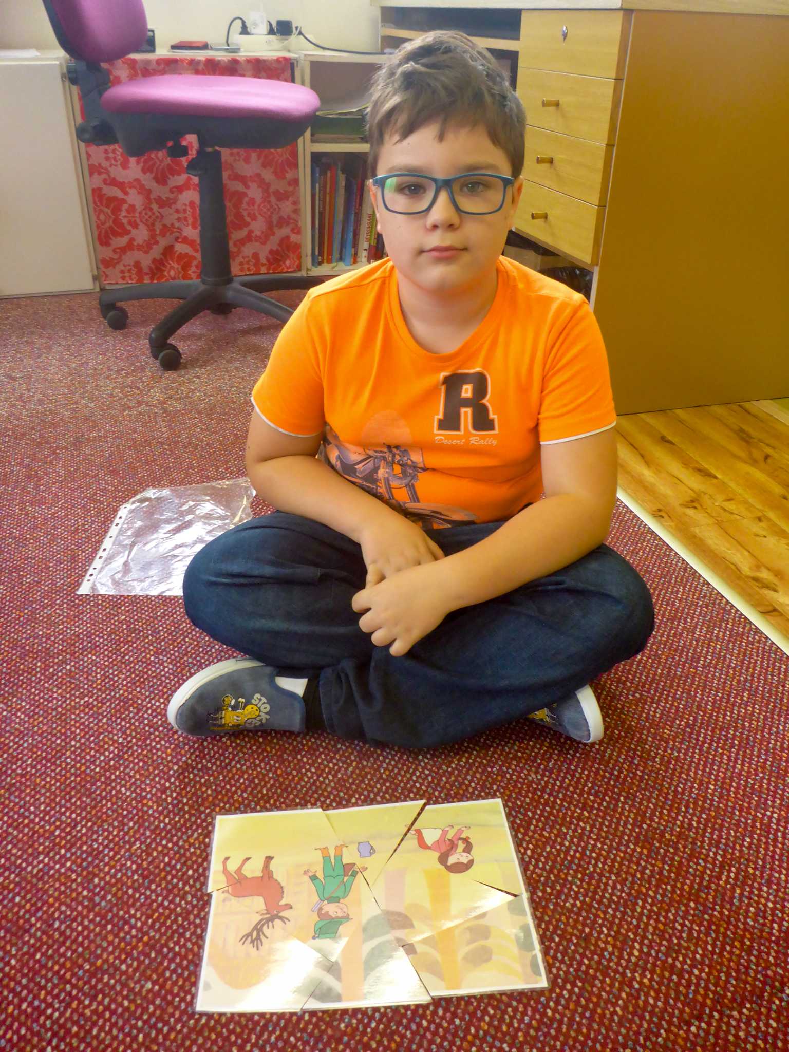 Také tentokrát nás čekala četba na pokračování. Povídali jsme si o lese a zvířátkách. Ve družině si všichni zahráli hru "Matalaki" - krmení zvířátek. Skládalo se puzzle a hrála společenská hra "Pan Kotrč hledá večerníčky". Na vycházce jsme se vydali podzimní stezkou za zvířátky. Chodilo se po značkách a plnily zvířátkové úkoly. Na závěr jsme vyluštili tajenku ptáka - strakapouda. Další den se v lese hledaly obrázky jelena Větrníka nebo skládalo puzzle.