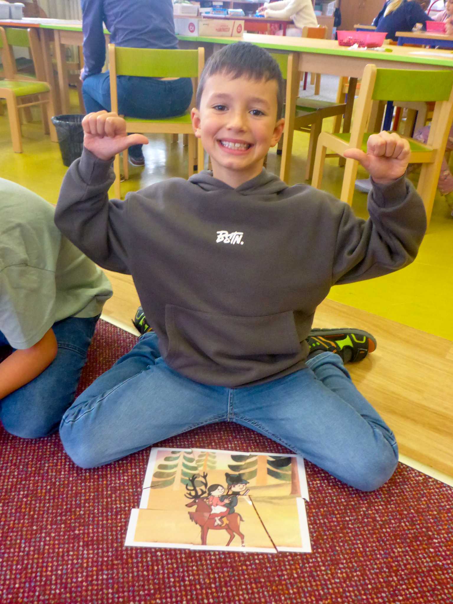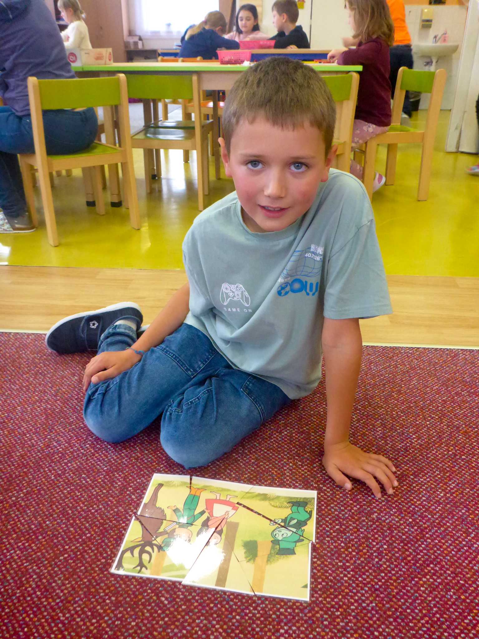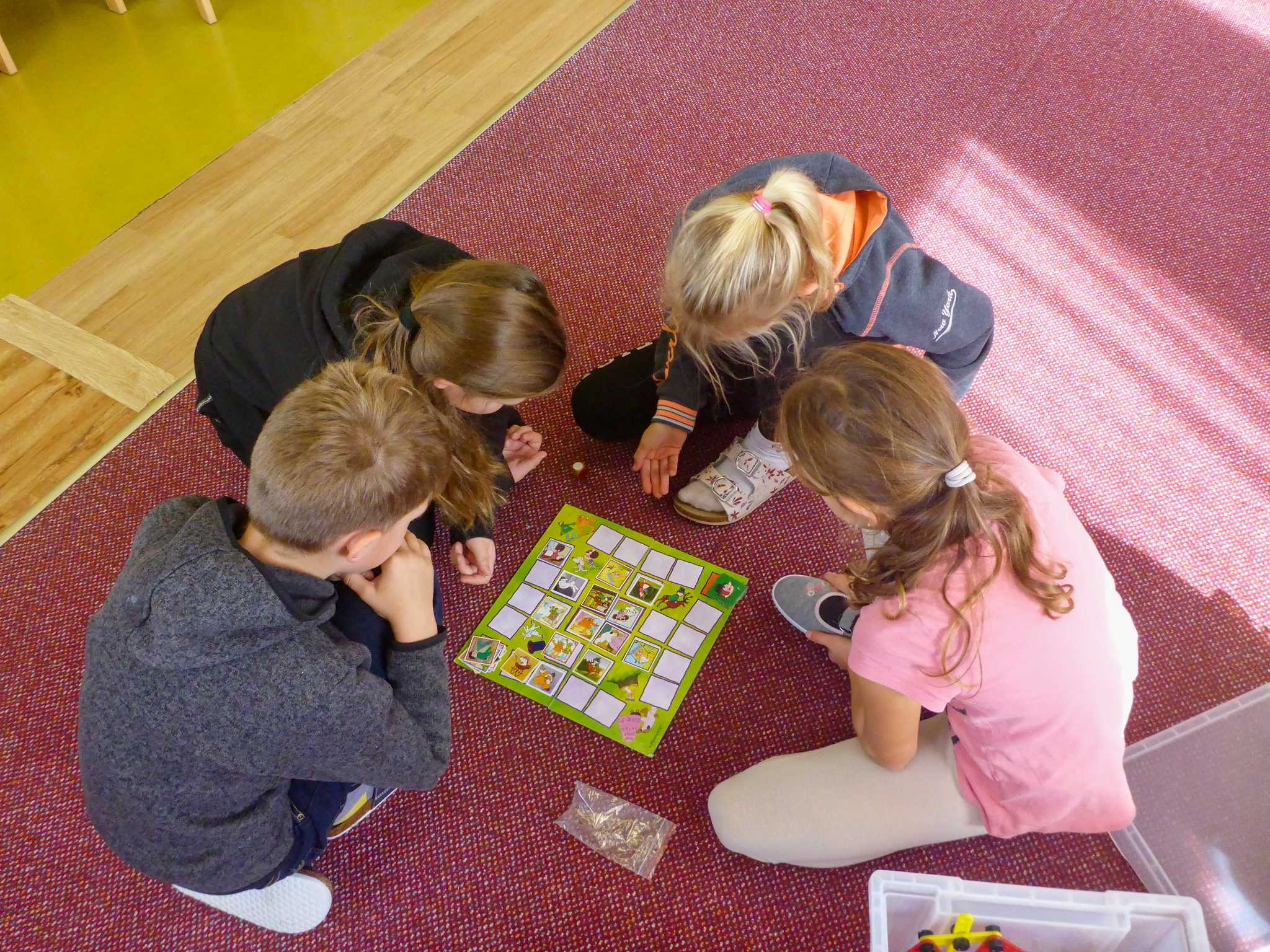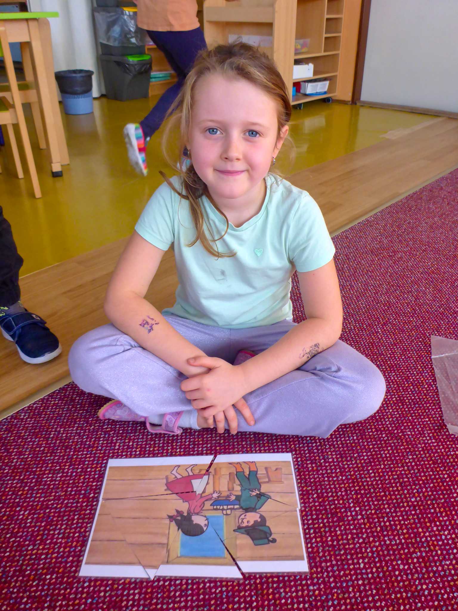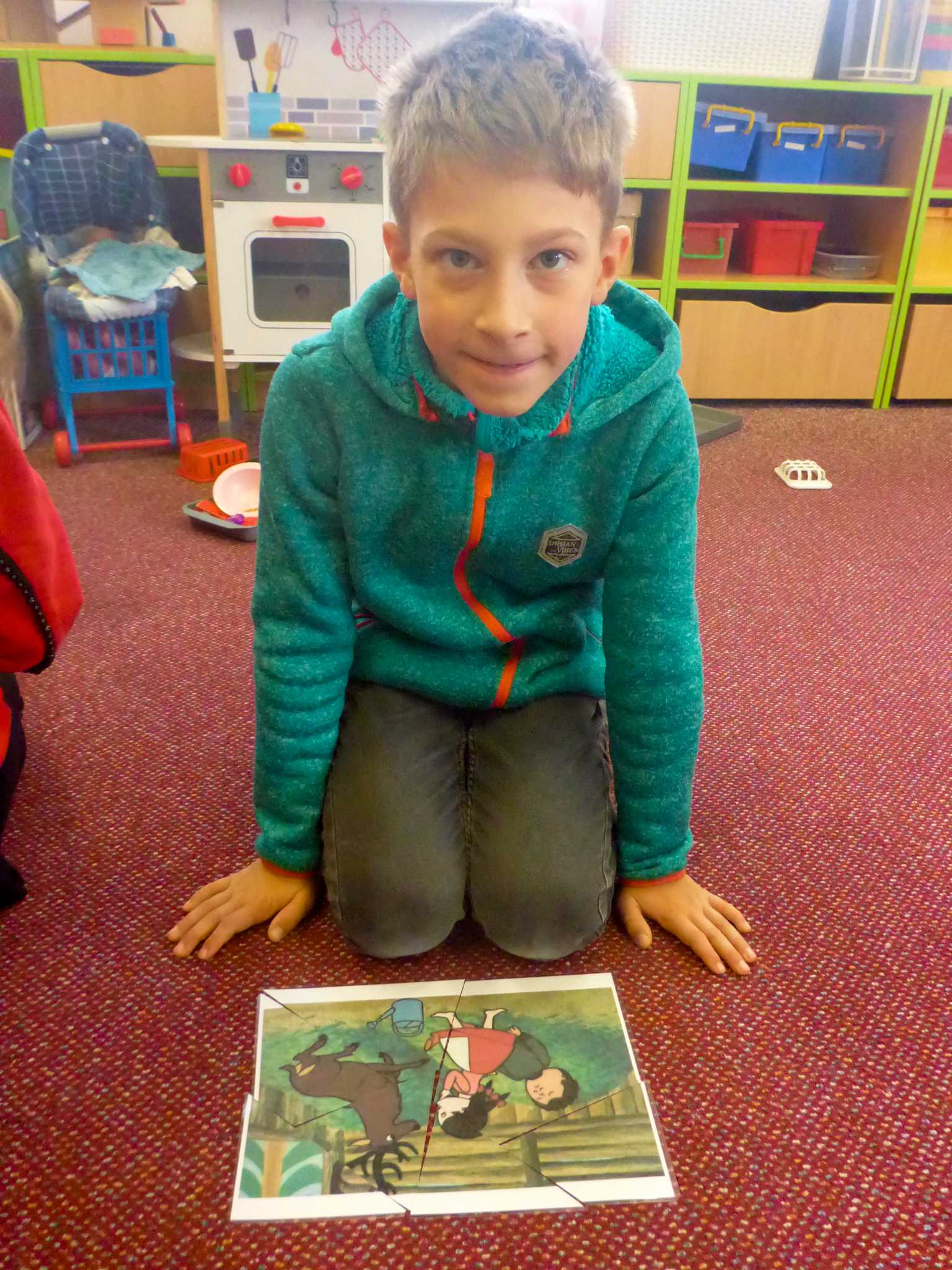 Také tentokrát nás čekala četba na pokračování. Povídali jsme si o lese a zvířátkách. Ve družině si všichni zahráli hru "Matalaki" - krmení zvířátek. Skládalo se puzzle a hrála společenská hra "Pan Kotrč hledá večerníčky". Na vycházce jsme se vydali podzimní stezkou za zvířátky. Chodilo se po značkách a plnily zvířátkové úkoly. Na závěr jsme vyluštili tajenku ptáka - strakapouda. Další den se v lese hledaly obrázky jelena Větrníka nebo skládalo puzzle.