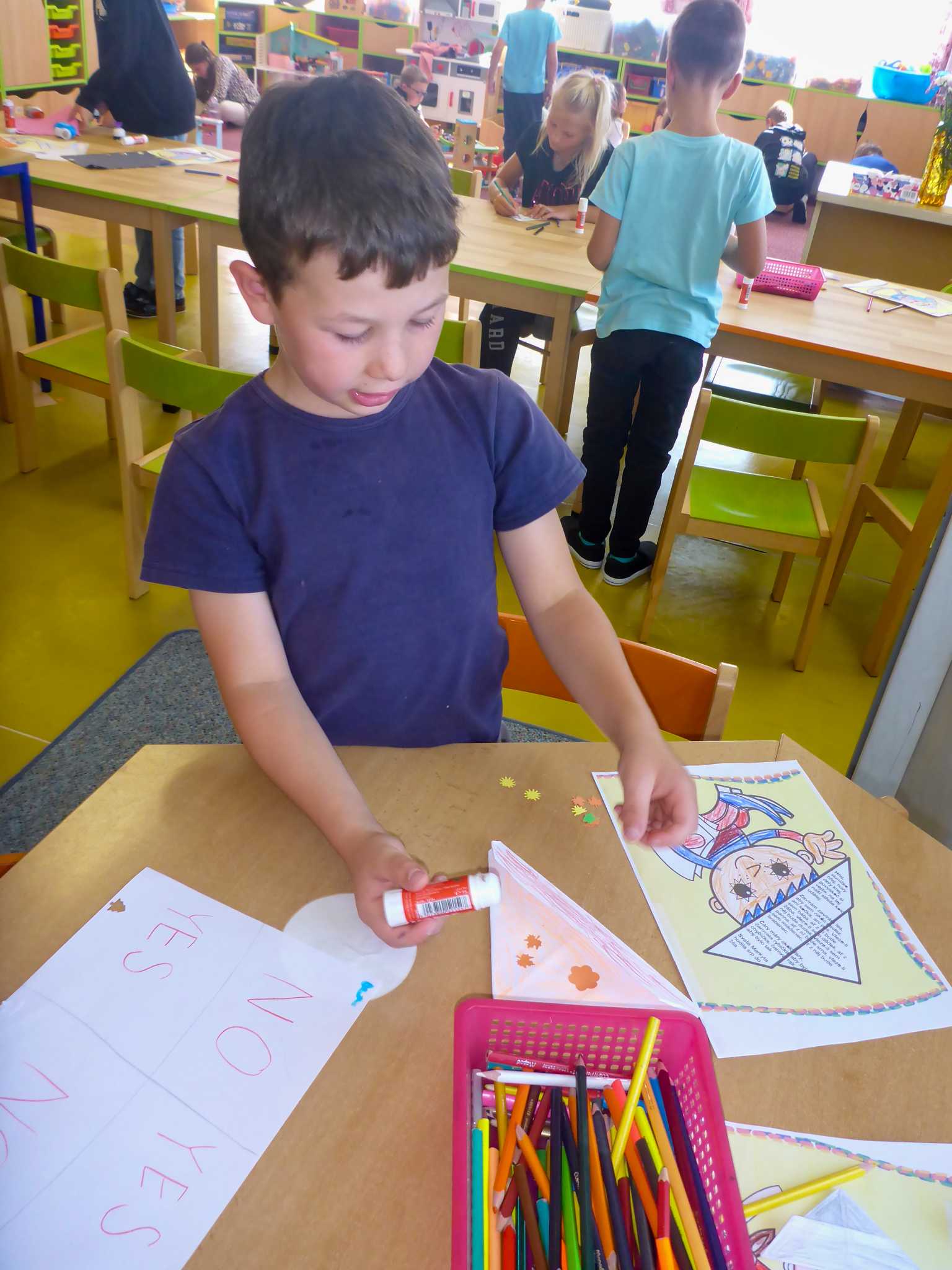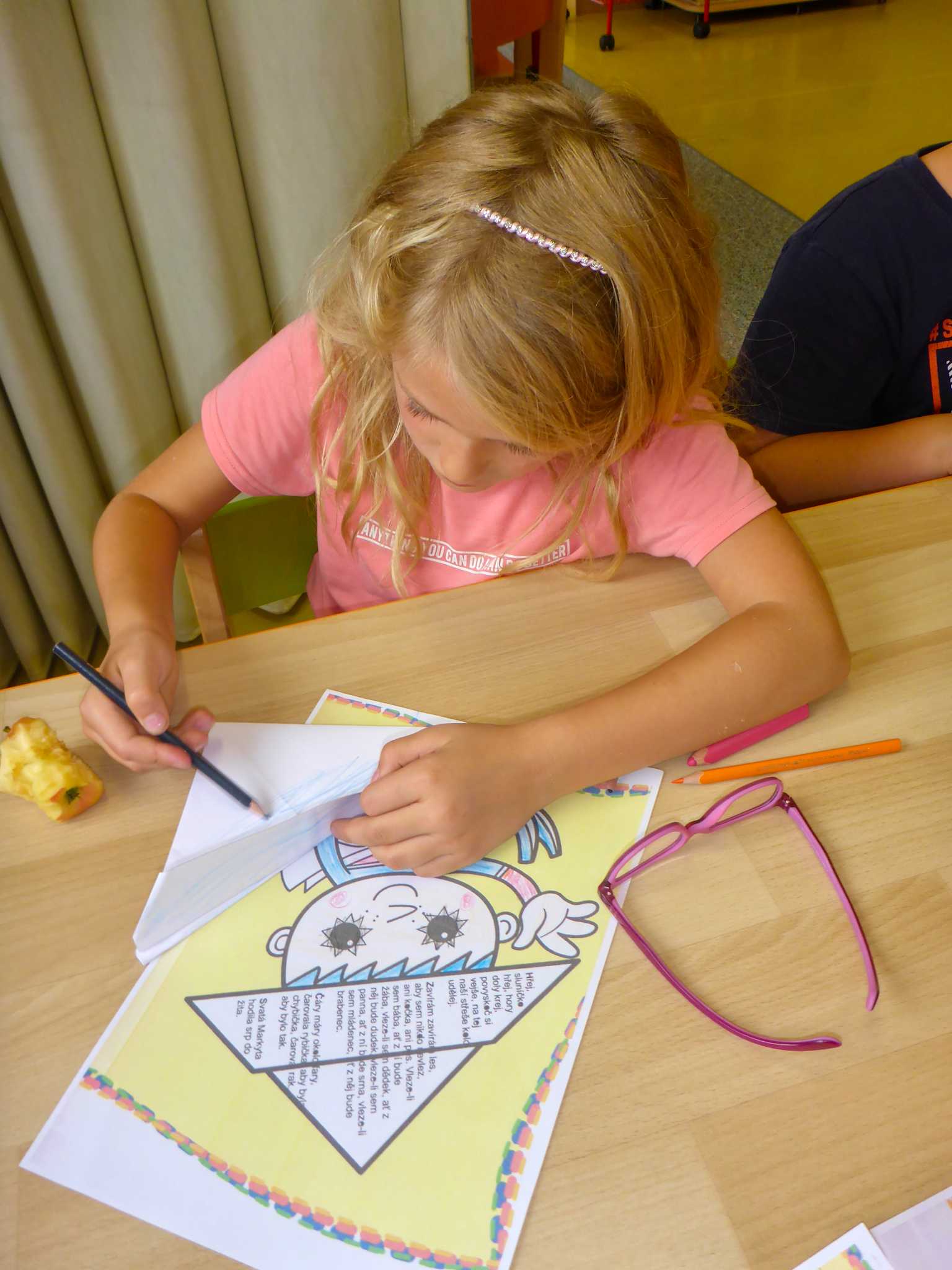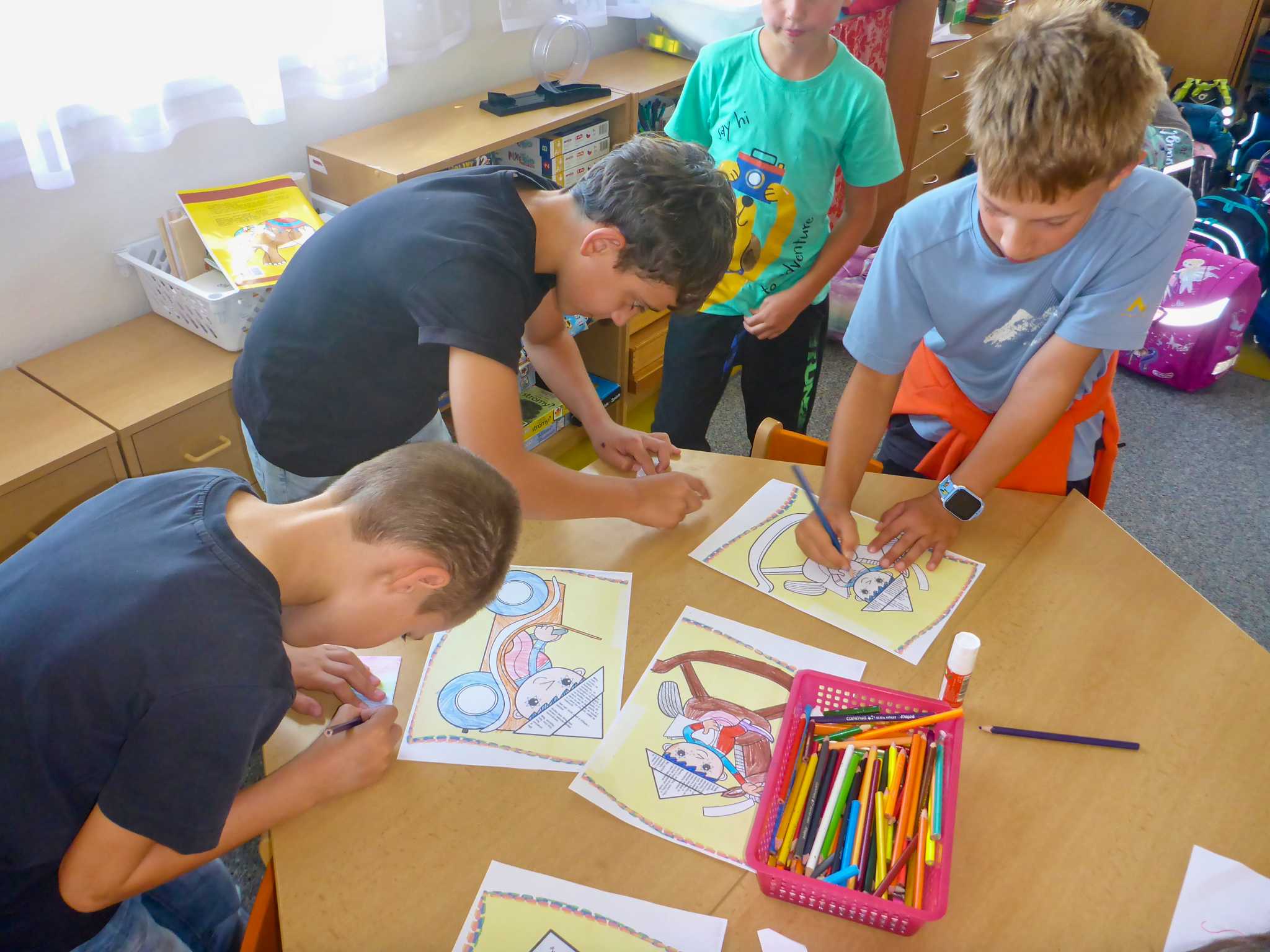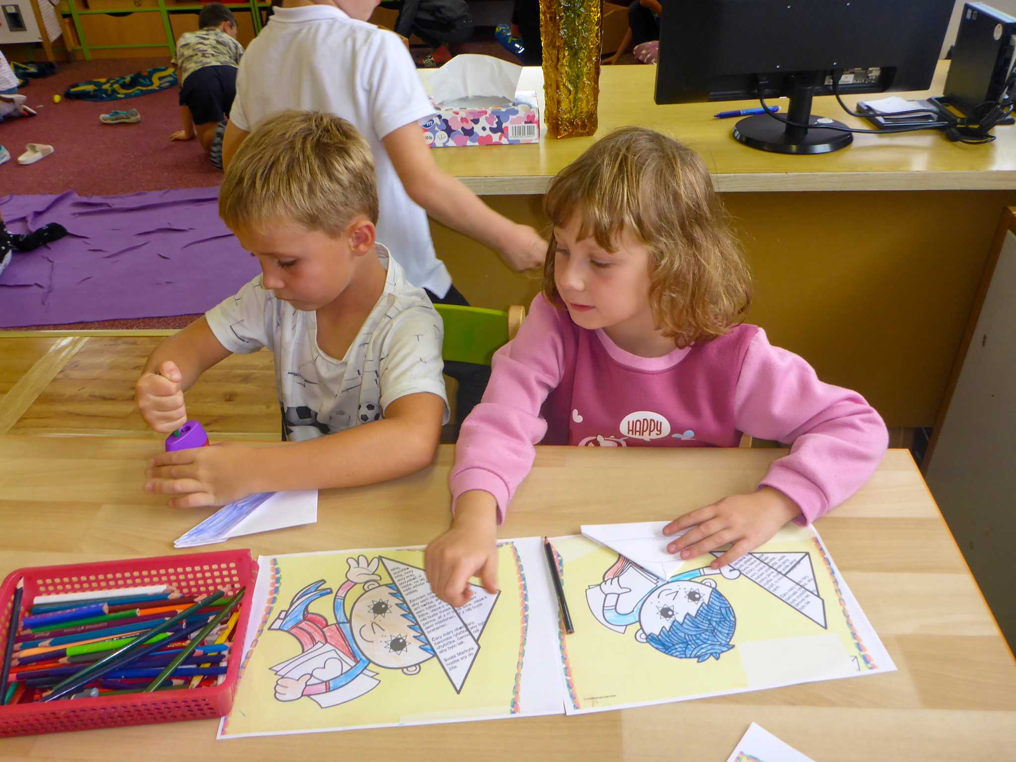 Celým rokem ve školní družině nás budou provázet Večerníčkové postavičky a jejich příběhy. Večerníček totiž letos slaví 60. narozeniny, proto jsme mu vytvořili z papíru narozeninový dort a veselou čepičku. Poslechli jsme si TV pořad o tom, jak se Večerníček narodil a jak vypadaly jeho první pohádky. Za odměnu každý dostal Večerníčkovou záložku do knihy.