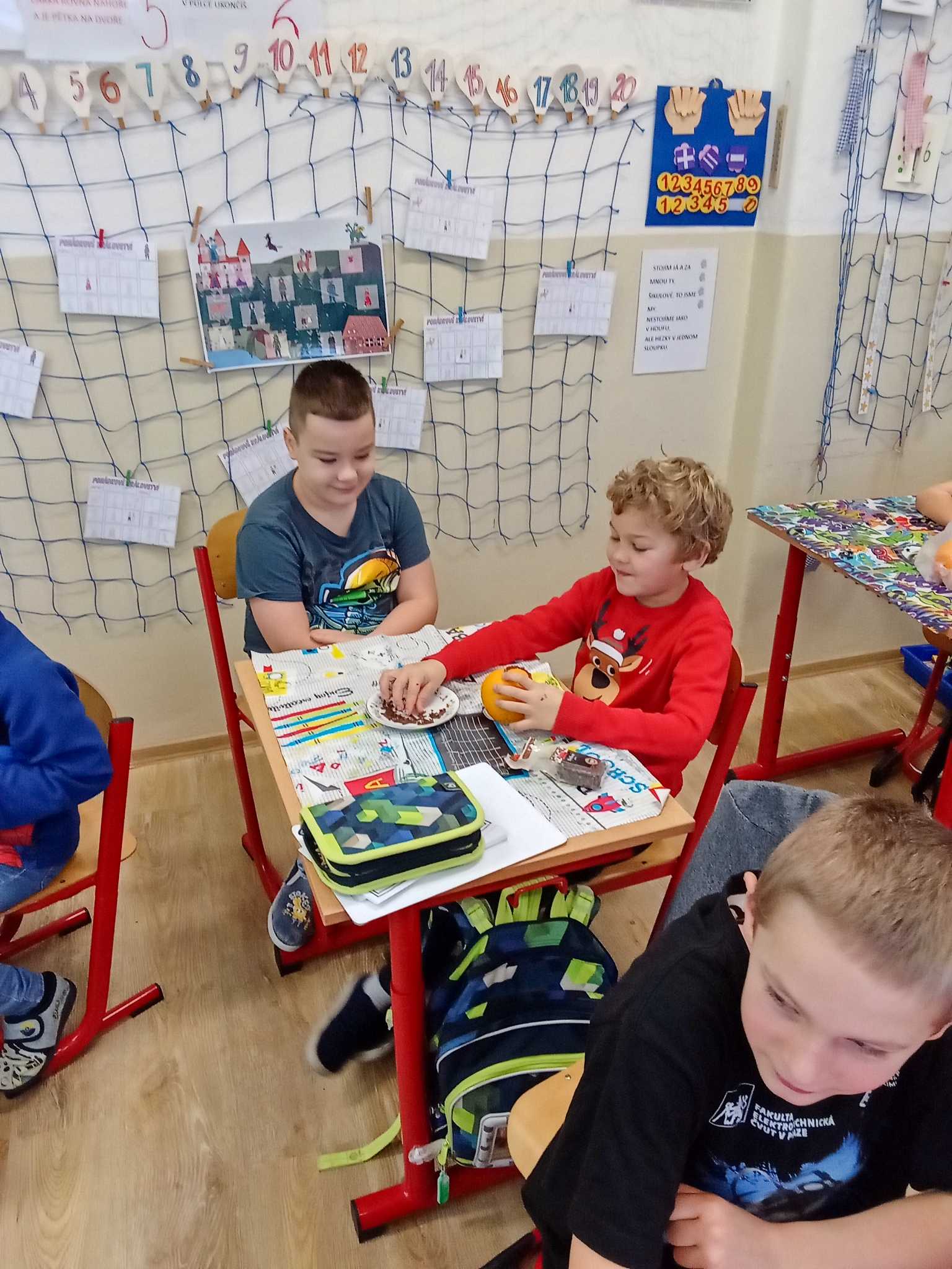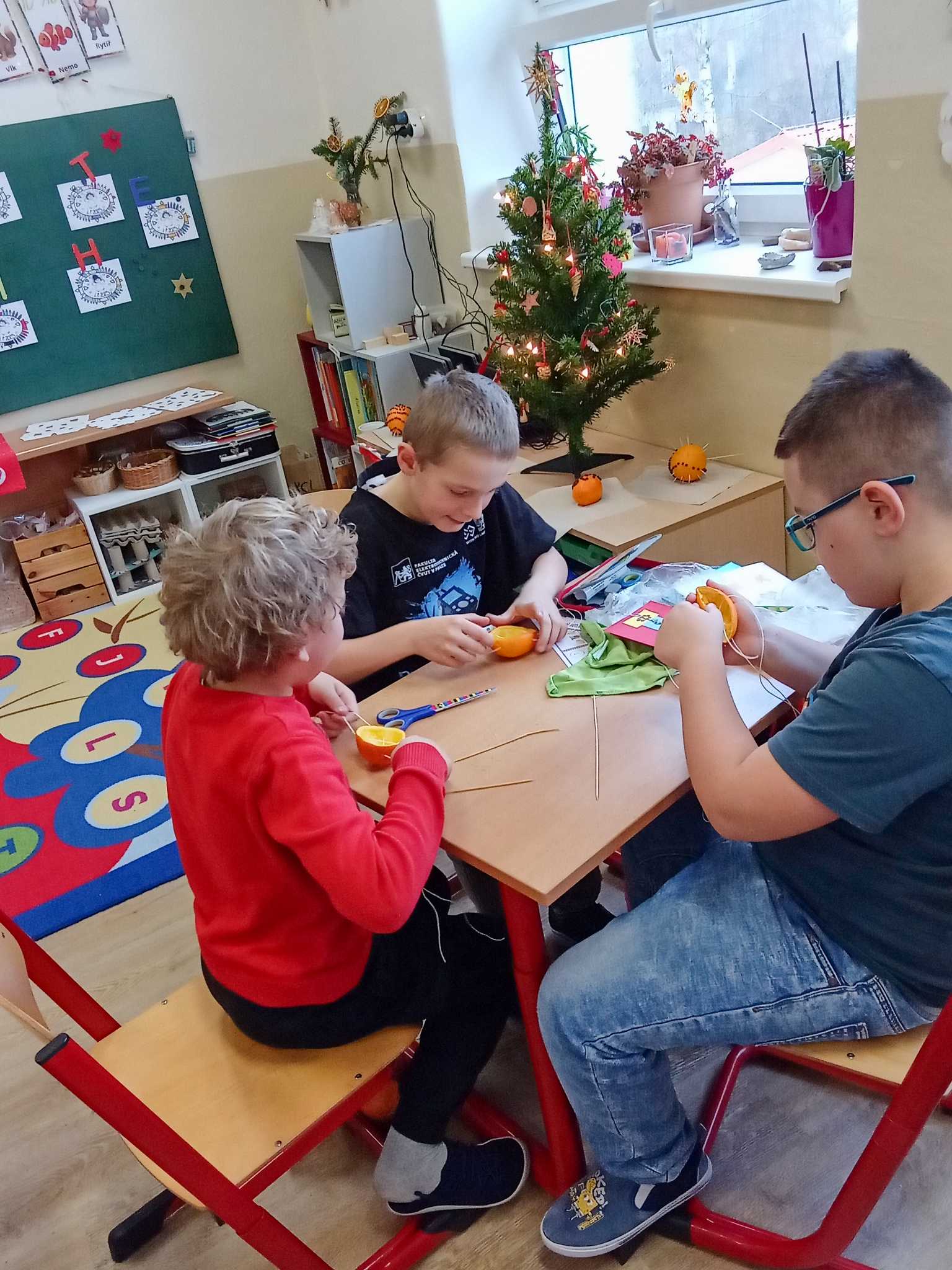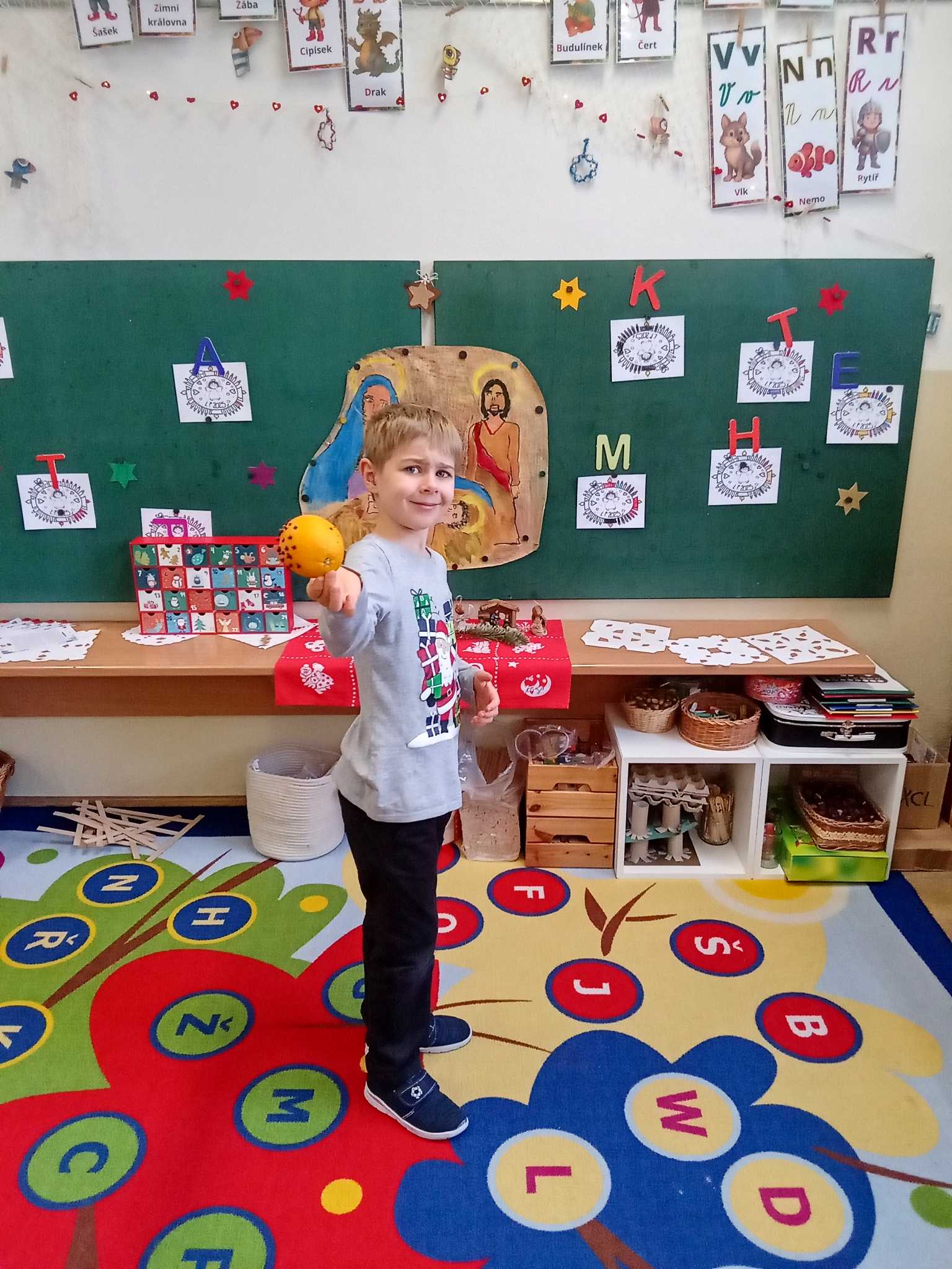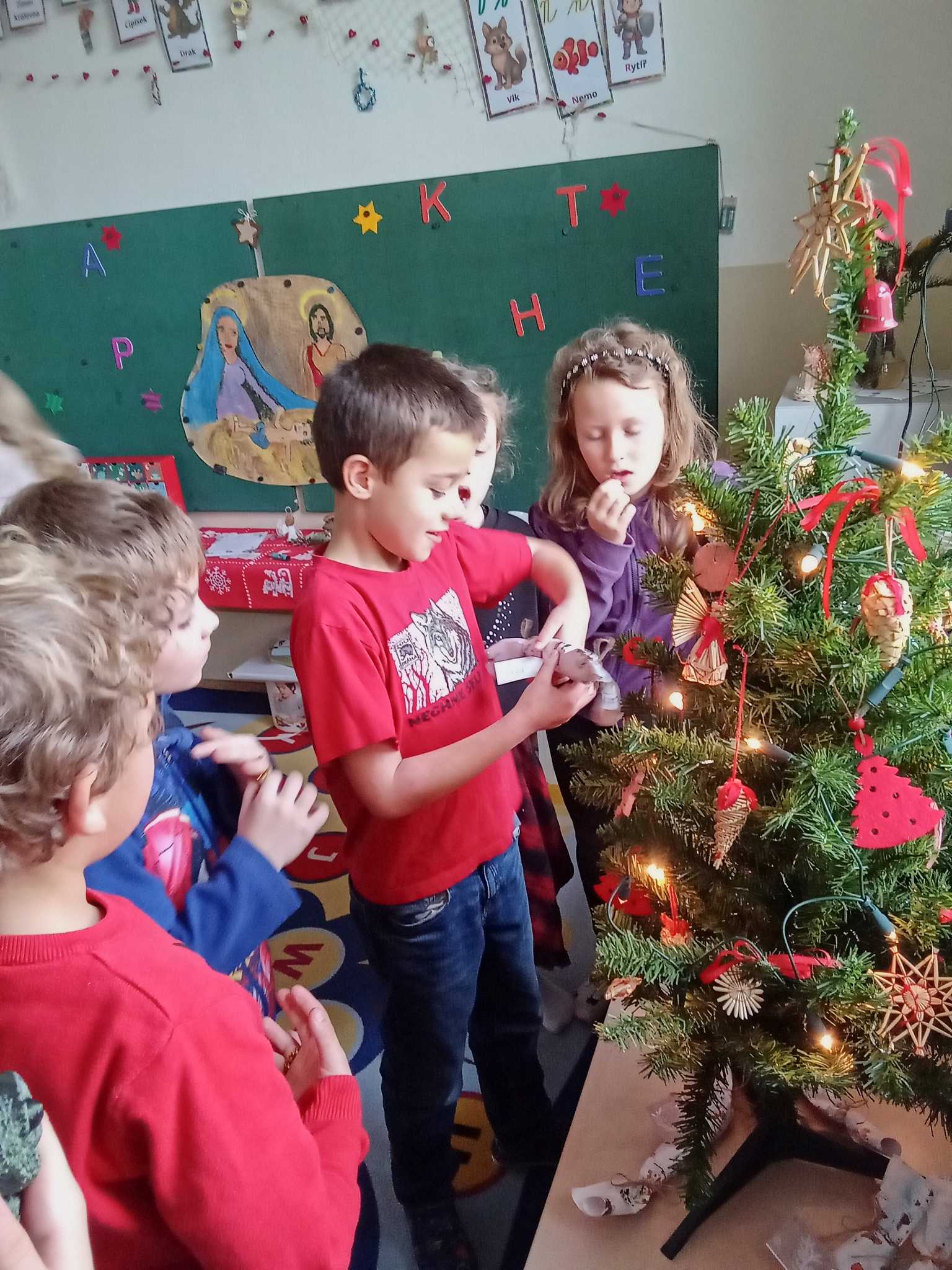 Tento týden byl plný tvoření a inspirace. Děti tvořily vánoční přání, voňavou ozdobu z pomeranče a také jednoduché krmítko pro ptáčky. Objevil se kapřík Bonifác, který přinesl různé úkoly a hry pro všechny. V závěru týdne jsme se dozvěděli příběh o narození Ježíška a také venku pověsili a naplnili krmítka pro ptáčky. Nejhezčím dnem byl pátek. Po návratu z kina nás čekalo překvapení - školní Ježíšek nám nadělil dárečky. Nejhezčím dárkem byla pera!