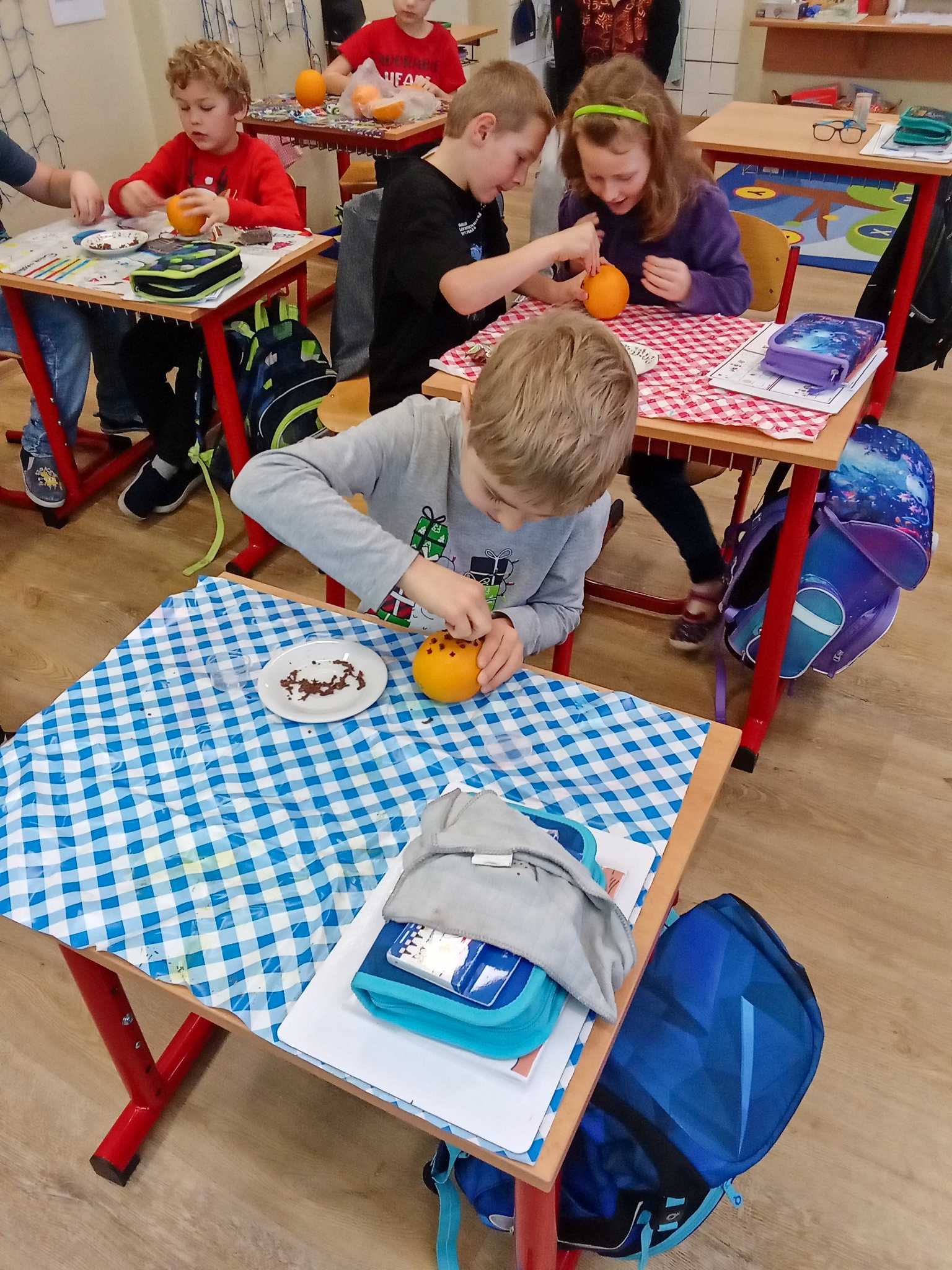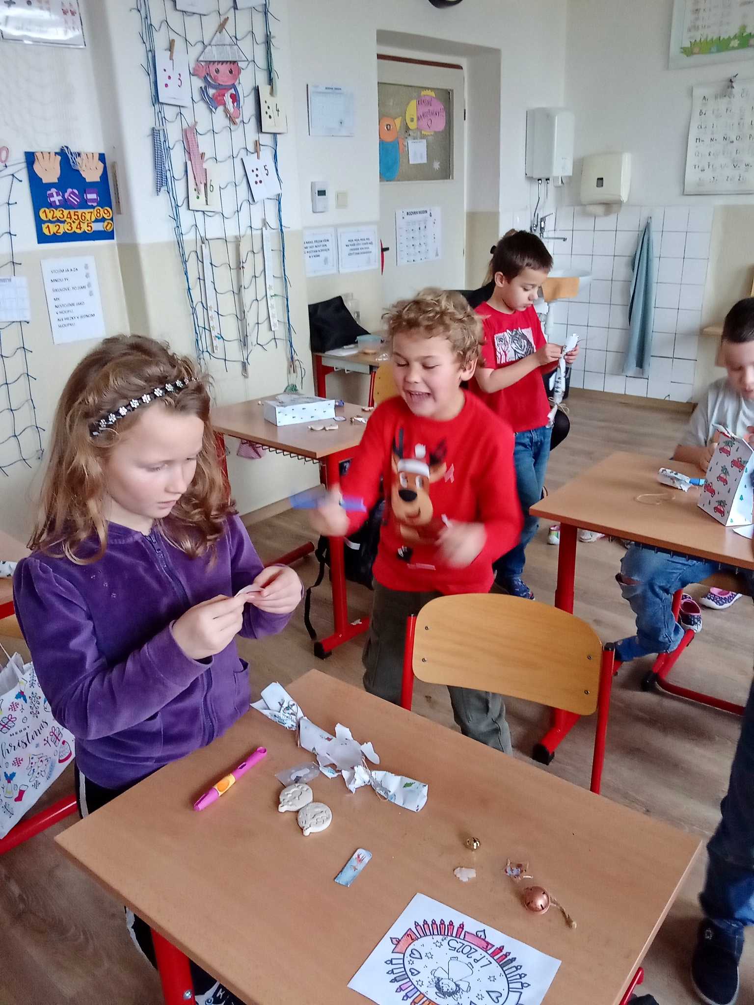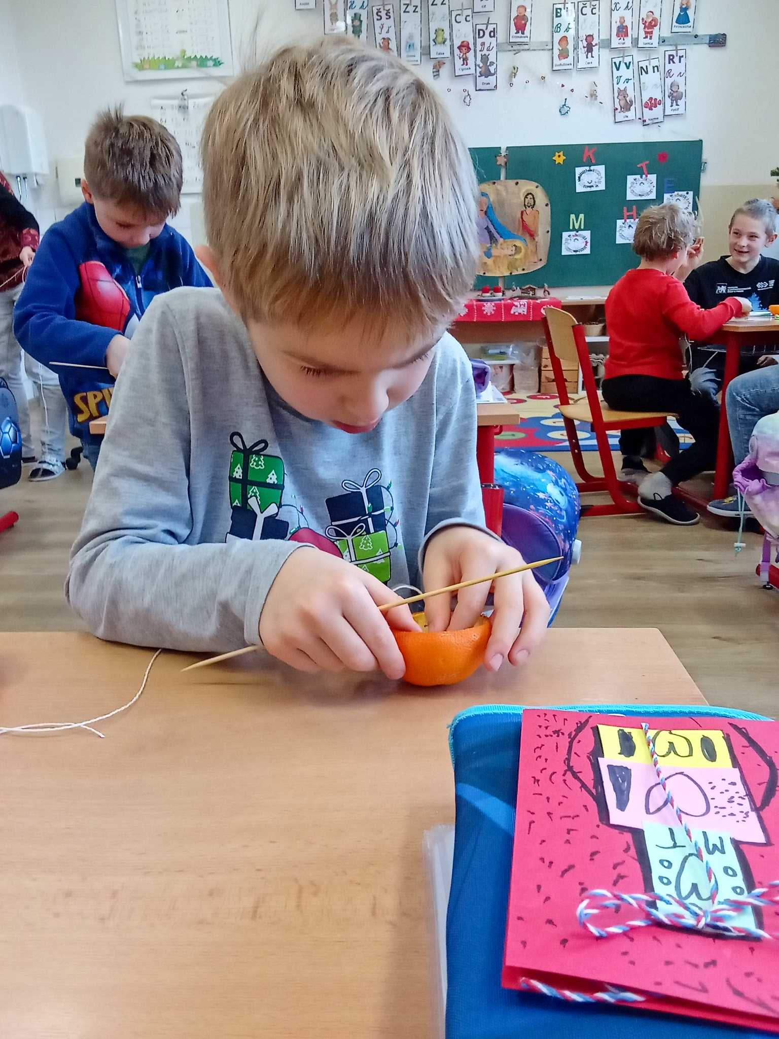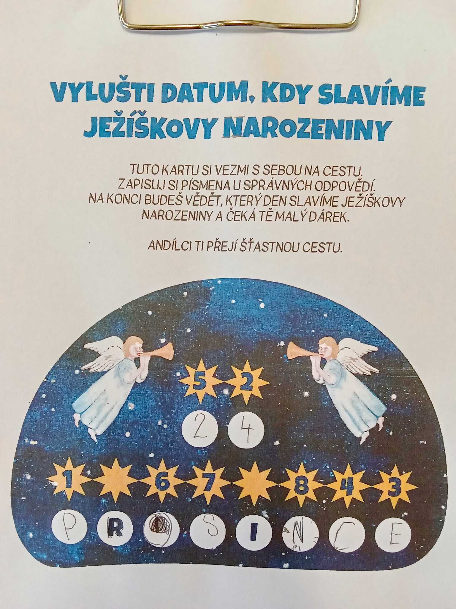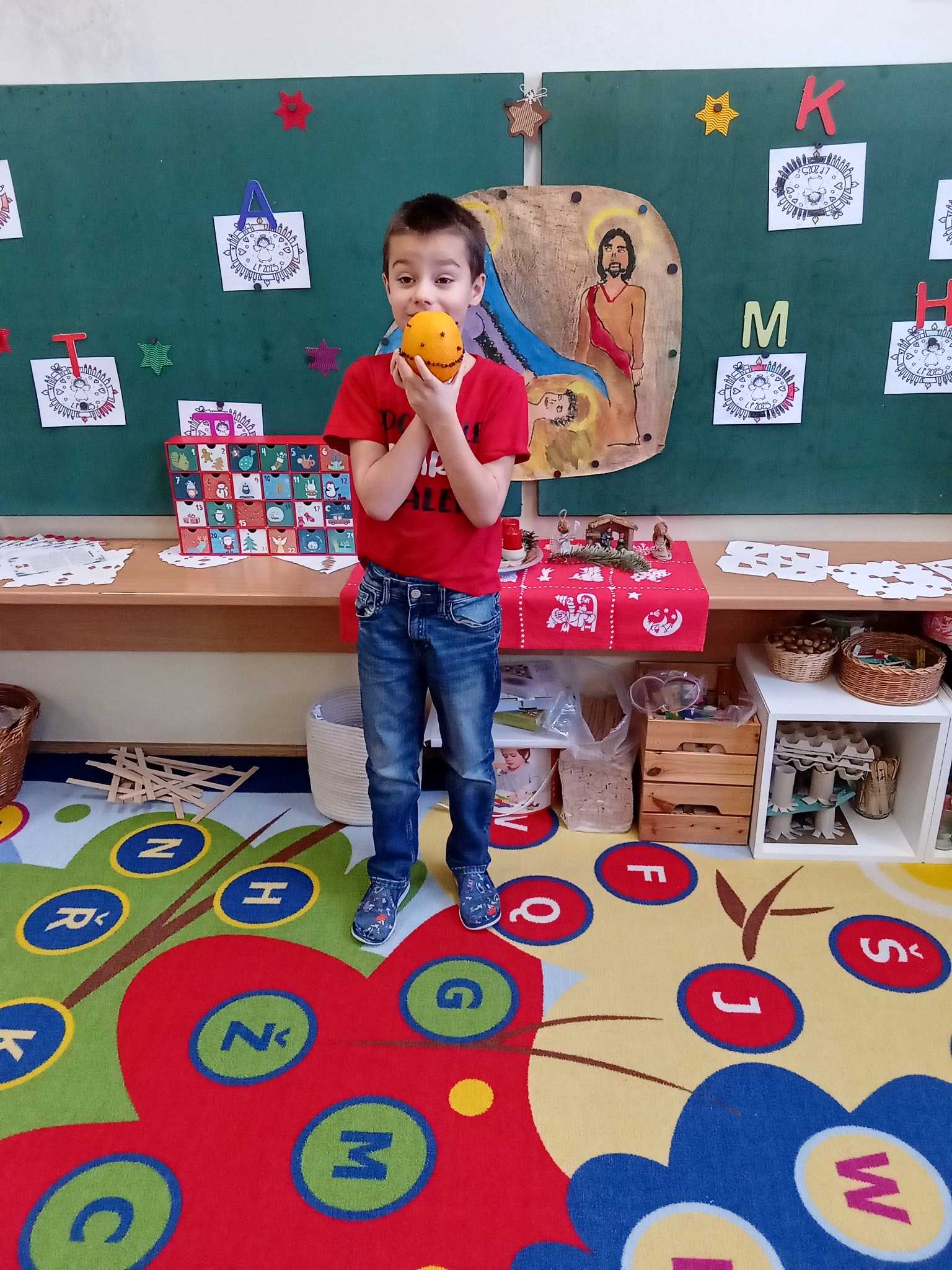 Tento týden byl plný tvoření a inspirace. Děti tvořily vánoční přání, voňavou ozdobu z pomeranče a také jednoduché krmítko pro ptáčky. Objevil se kapřík Bonifác, který přinesl různé úkoly a hry pro všechny. V závěru týdne jsme se dozvěděli příběh o narození Ježíška a také venku pověsili a naplnili krmítka pro ptáčky. Nejhezčím dnem byl pátek. Po návratu z kina nás čekalo překvapení - školní Ježíšek nám nadělil dárečky. Nejhezčím dárkem byla pera!