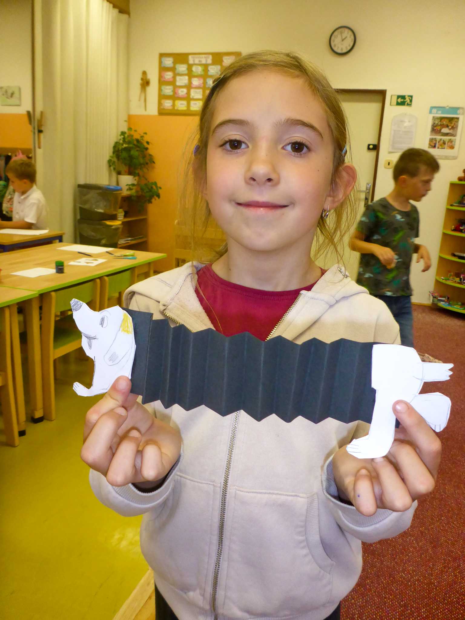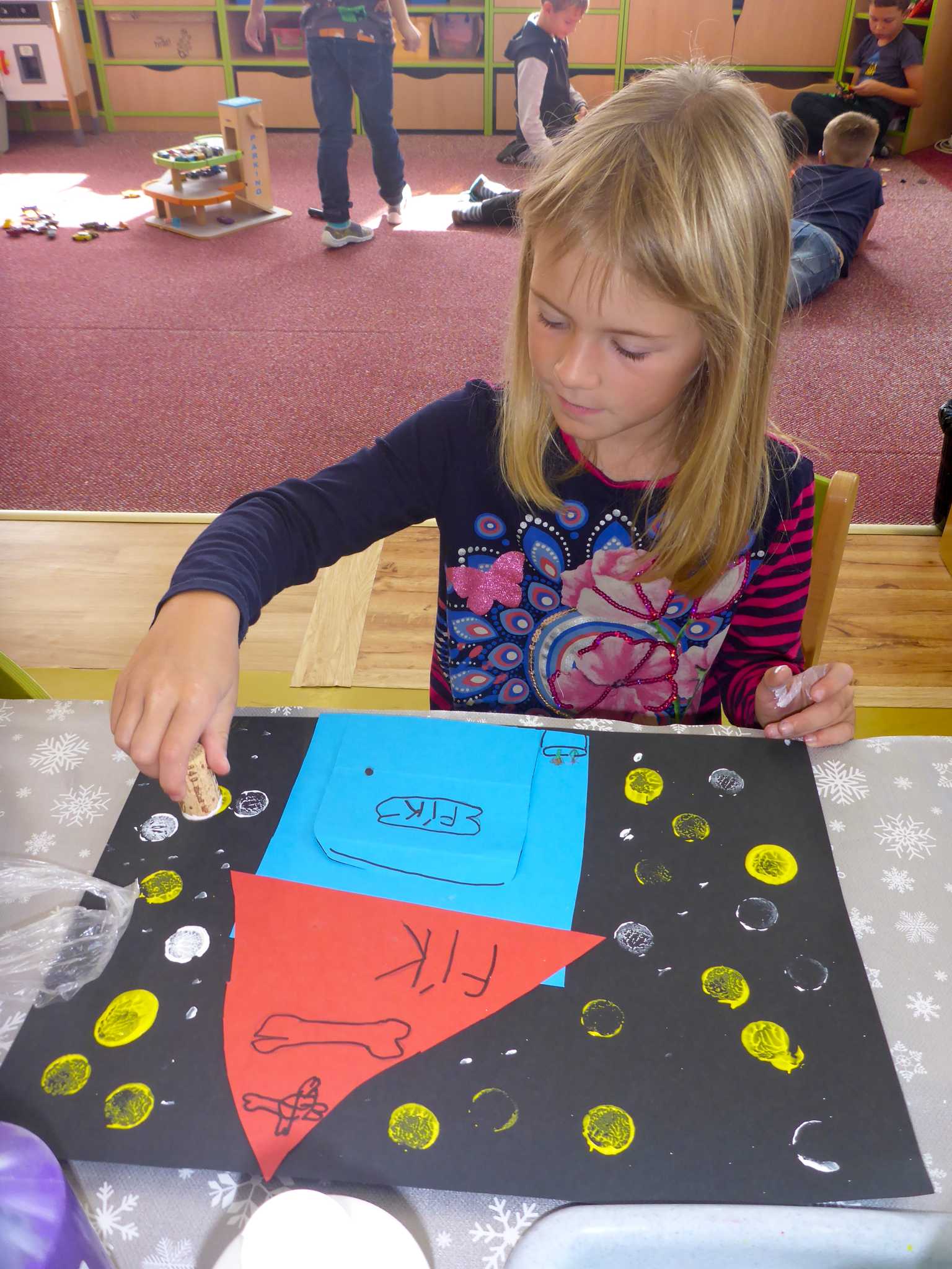Také jsme vyráběli maxipsa z papíru, kreslili Fíka v boudě, hráli deskovou hru "Mistr světa v doskoč pro něco". Na závěr byli všichni odměněni medailí s maxipsem Fíkem.