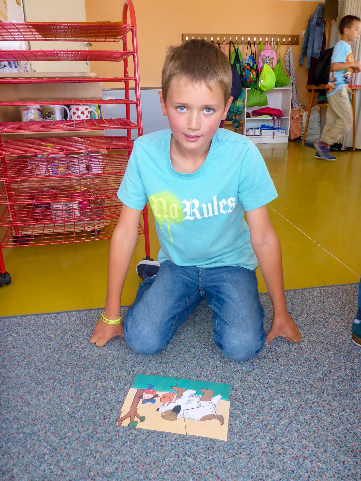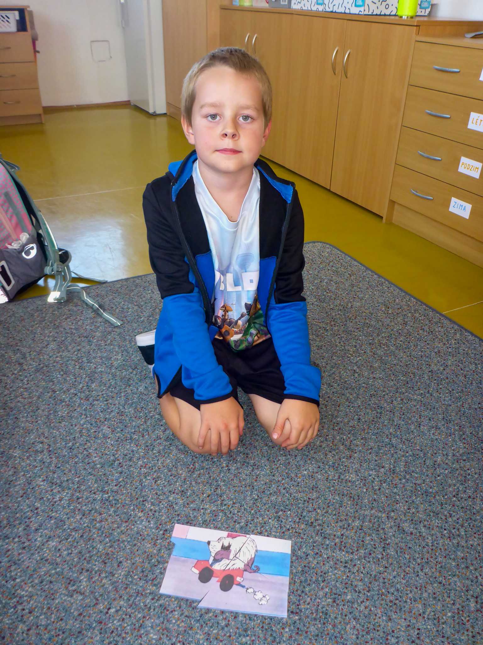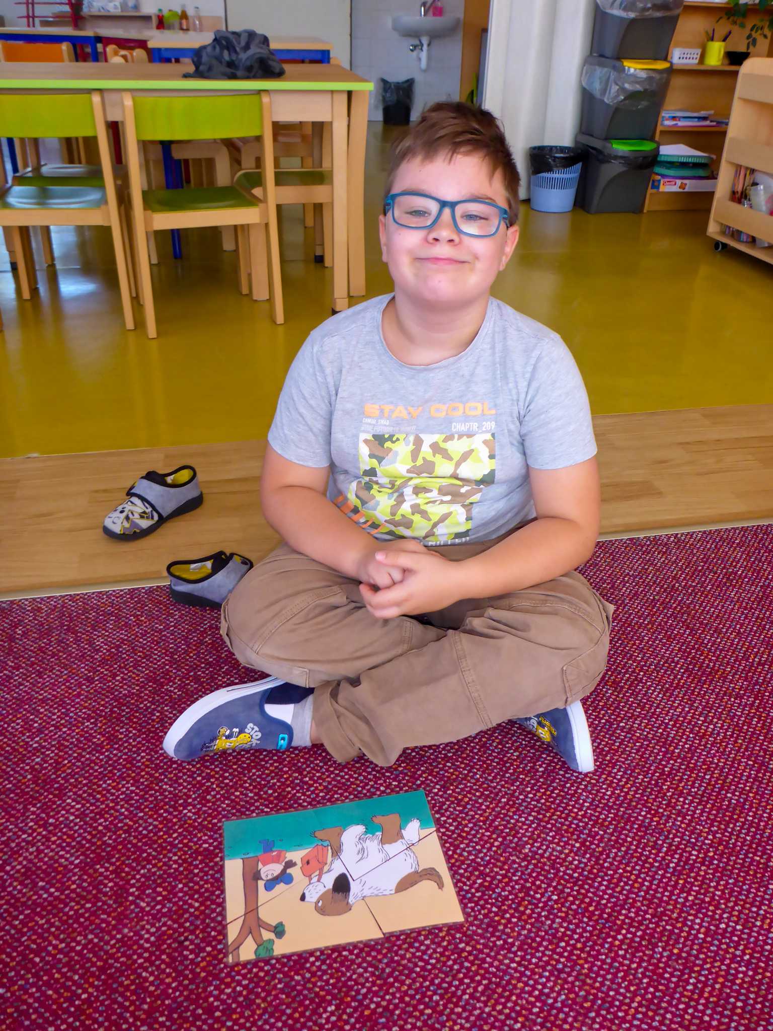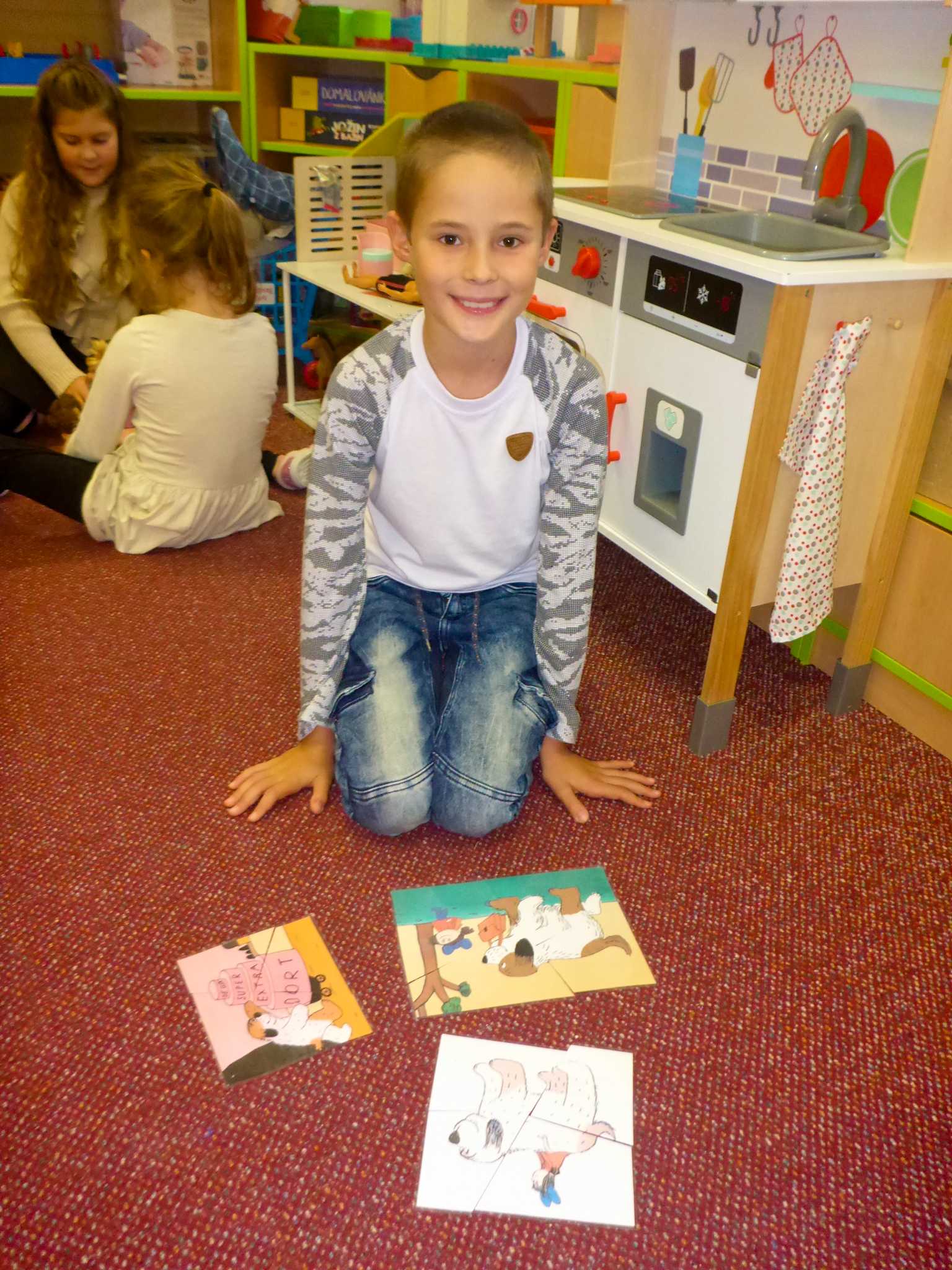 Září jsme si užívali spolu s maxipsem Fíkem. Pravidelně se četlo z knihy, postupně skládalo puzzle a hrálo pexeso.