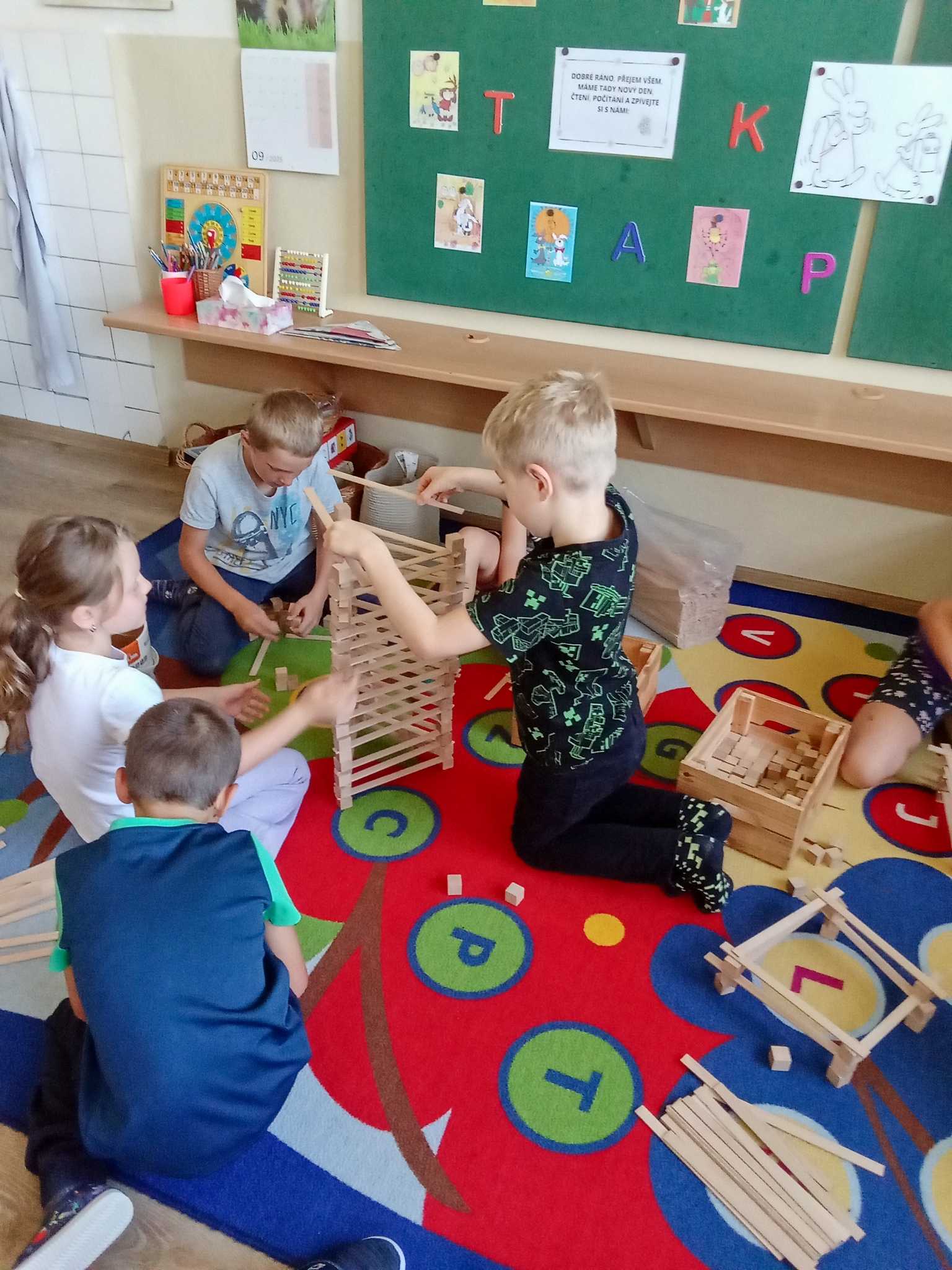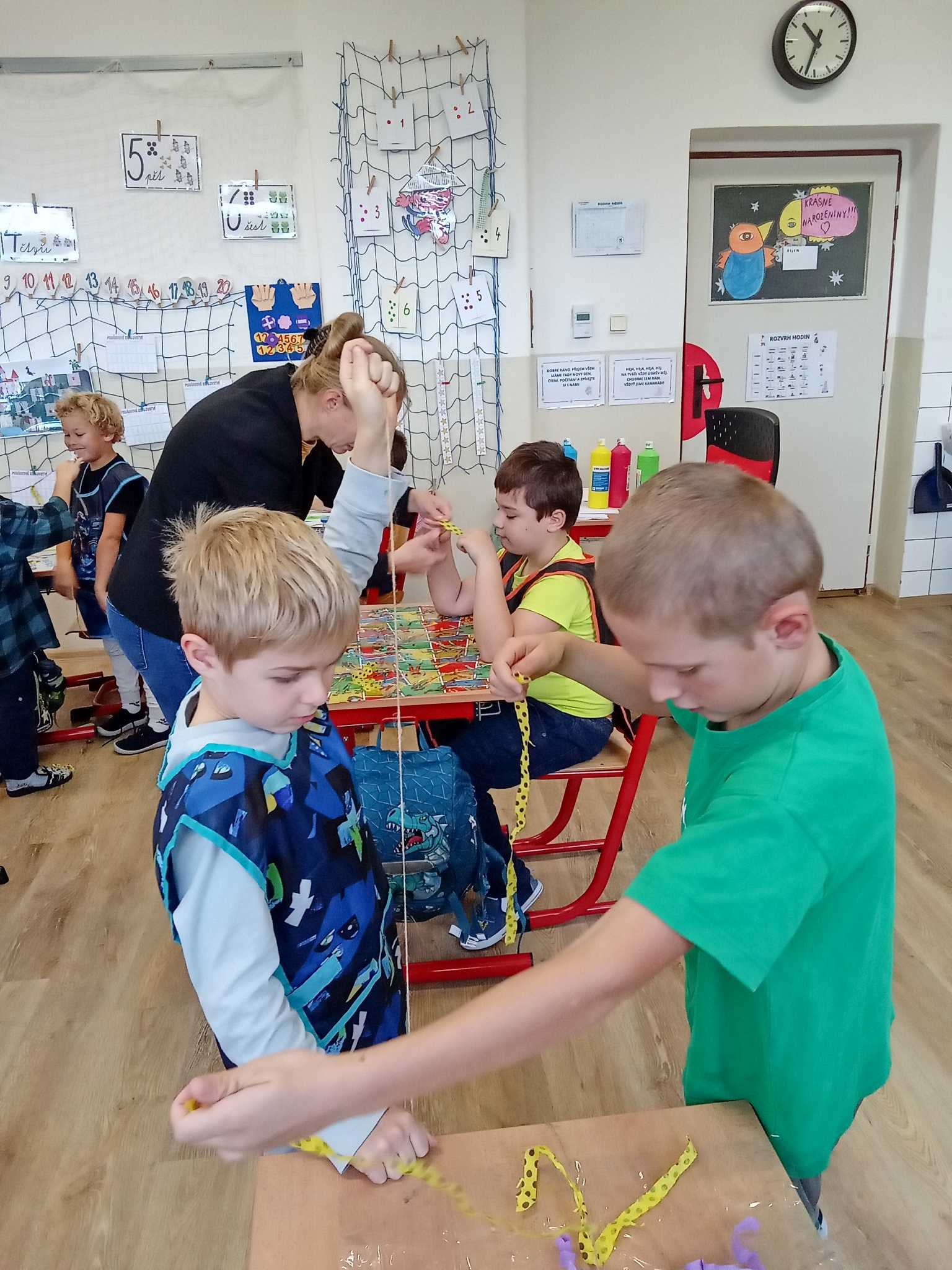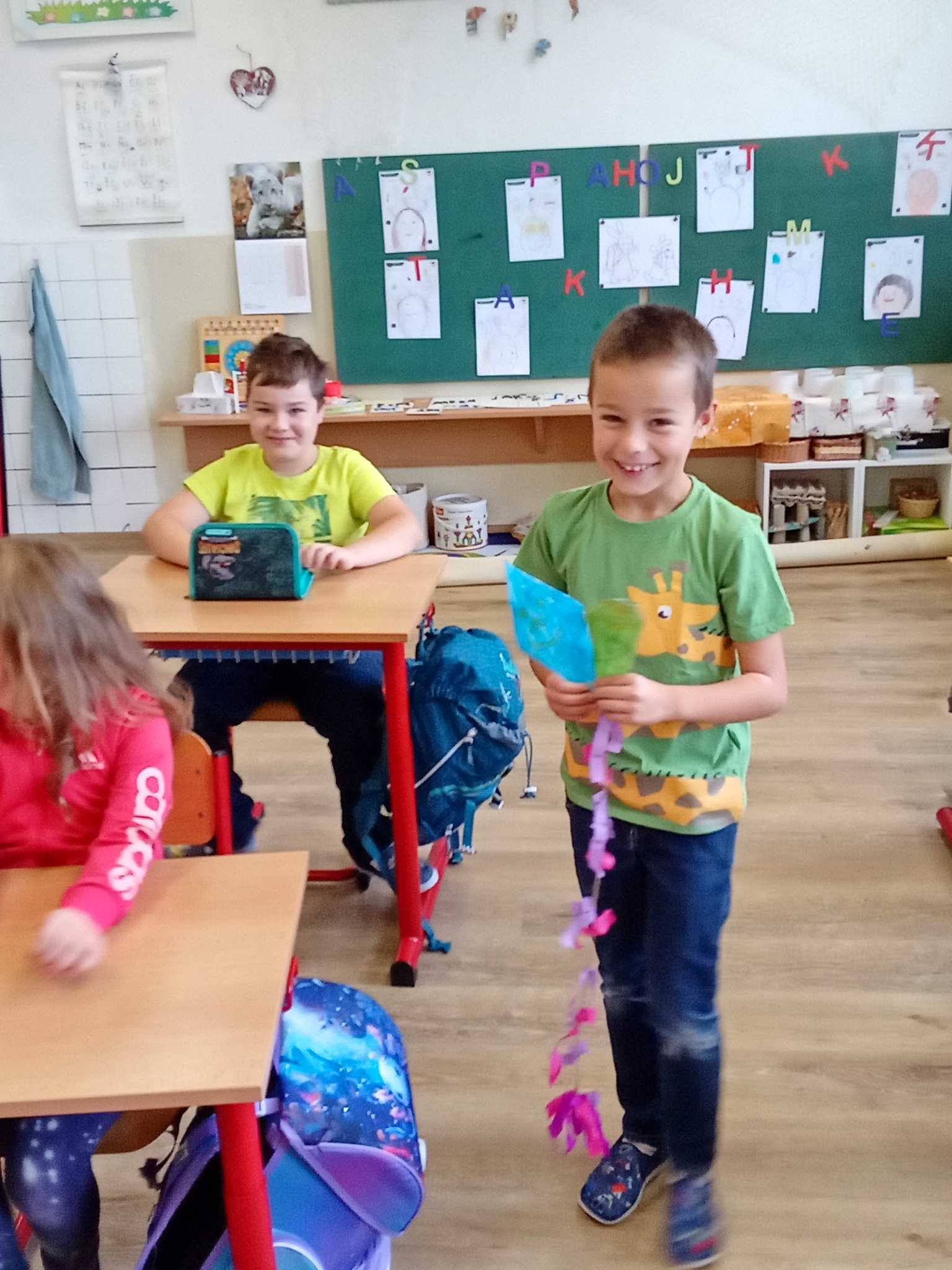 Děti v první třídě se nenudí při hodině ani o přestávce. Přes stavění různých staveb nebo domečků pro skřítky, až ke hledání přírodnin s danou hláskou a výrobu draků.