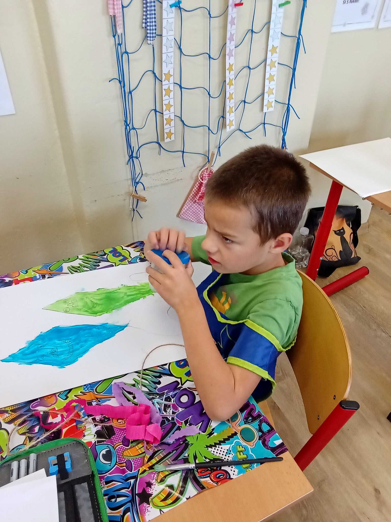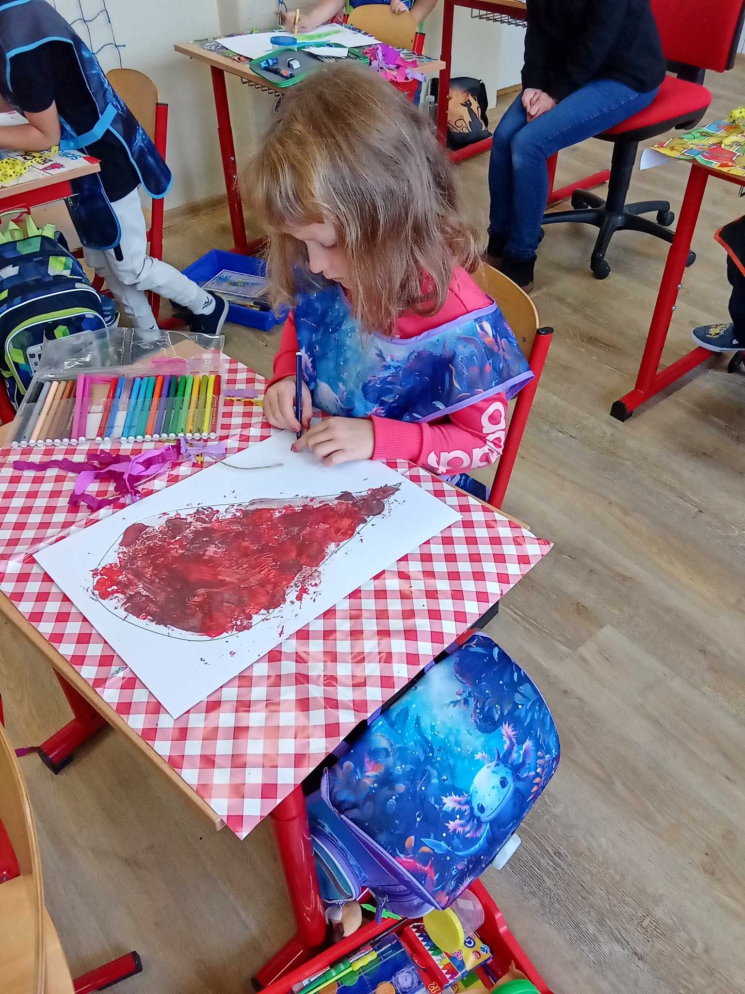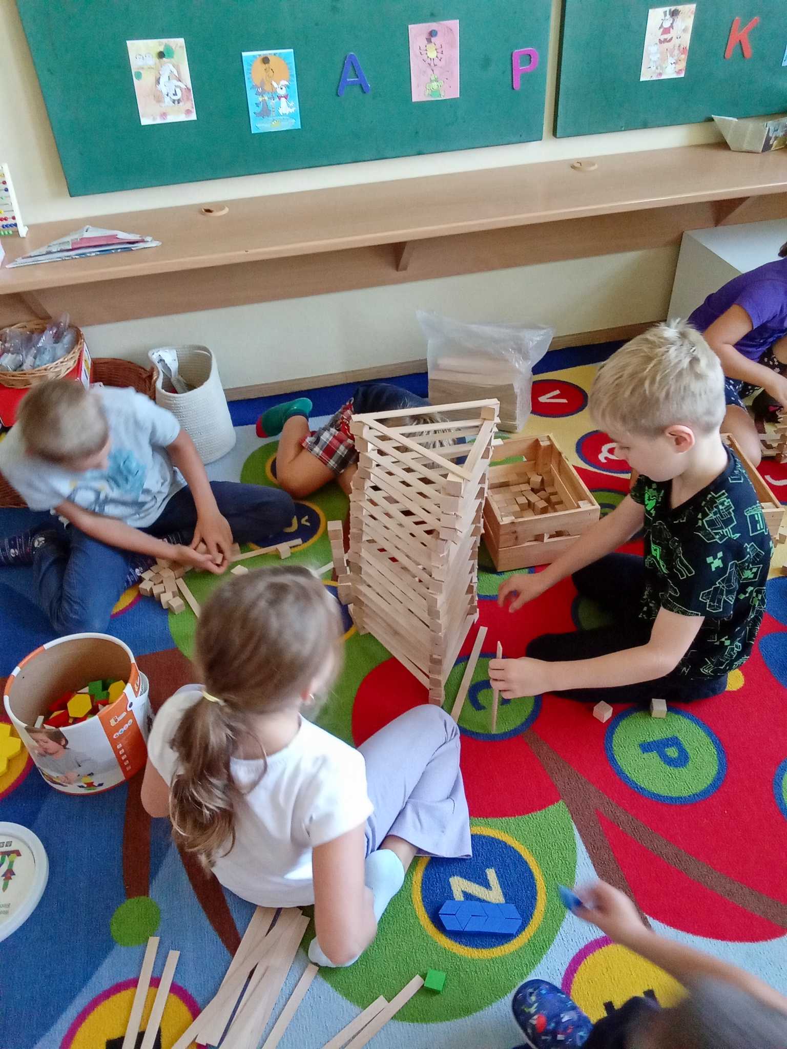 Děti v první třídě se nenudí při hodině ani o přestávce. Přes stavění různých staveb nebo domečků pro skřítky, až ke hledání přírodnin s danou hláskou a výrobu draků.